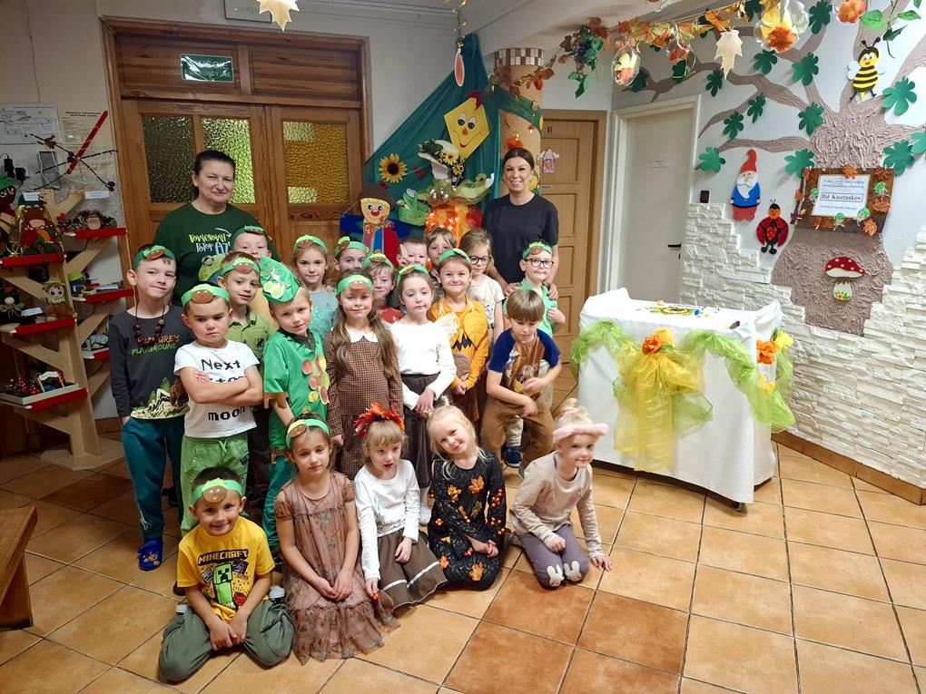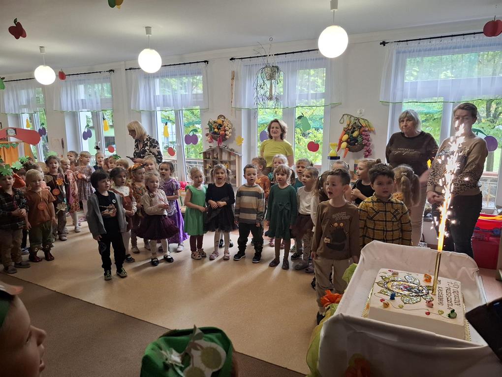 Wielkimi krokami nasze Przedszkole zbliża się do okrągłych urodzin, ale póki co, świętowaliśmy 79 rocznicę działalności. Z tej okazji uczestniczyliśmy w balu Kasztanków, na którym obowiązywały stroje w kolorach kasztankowych. Bal to nie tylko muzyka i tańce, ale również zadania, zagadki, zabawy plastyczne i zręcznościowe. Uwieńczeniem wspólnej zabawy był uroczysty wjazd urodzinowego tortu z piękną dekoracją z naszym logo i tryskającą zimnym ogniem fontanną. Wspólne odśpiewanie "sto lat" i degustacja tortu zakończyły nasze świętowanie.