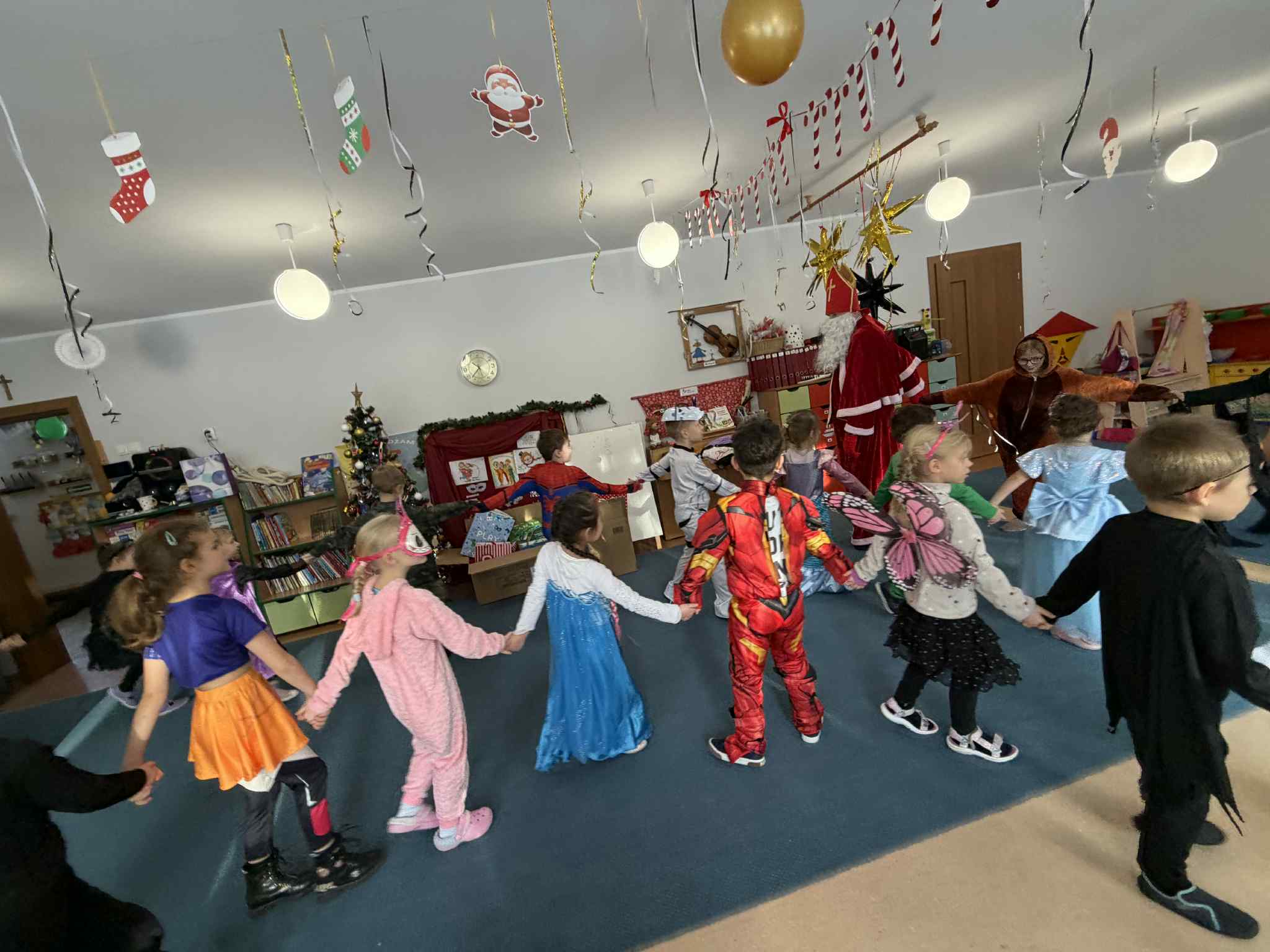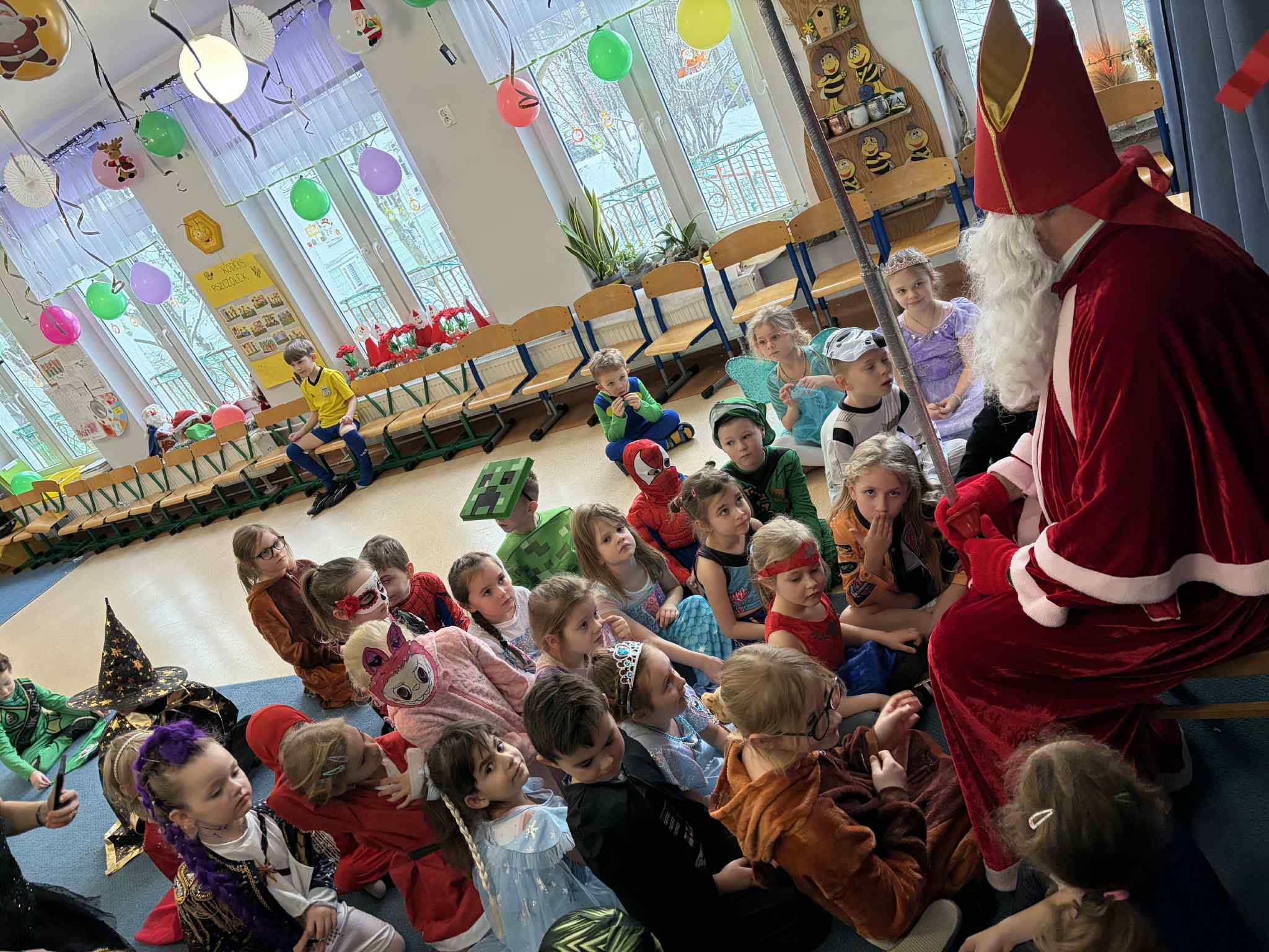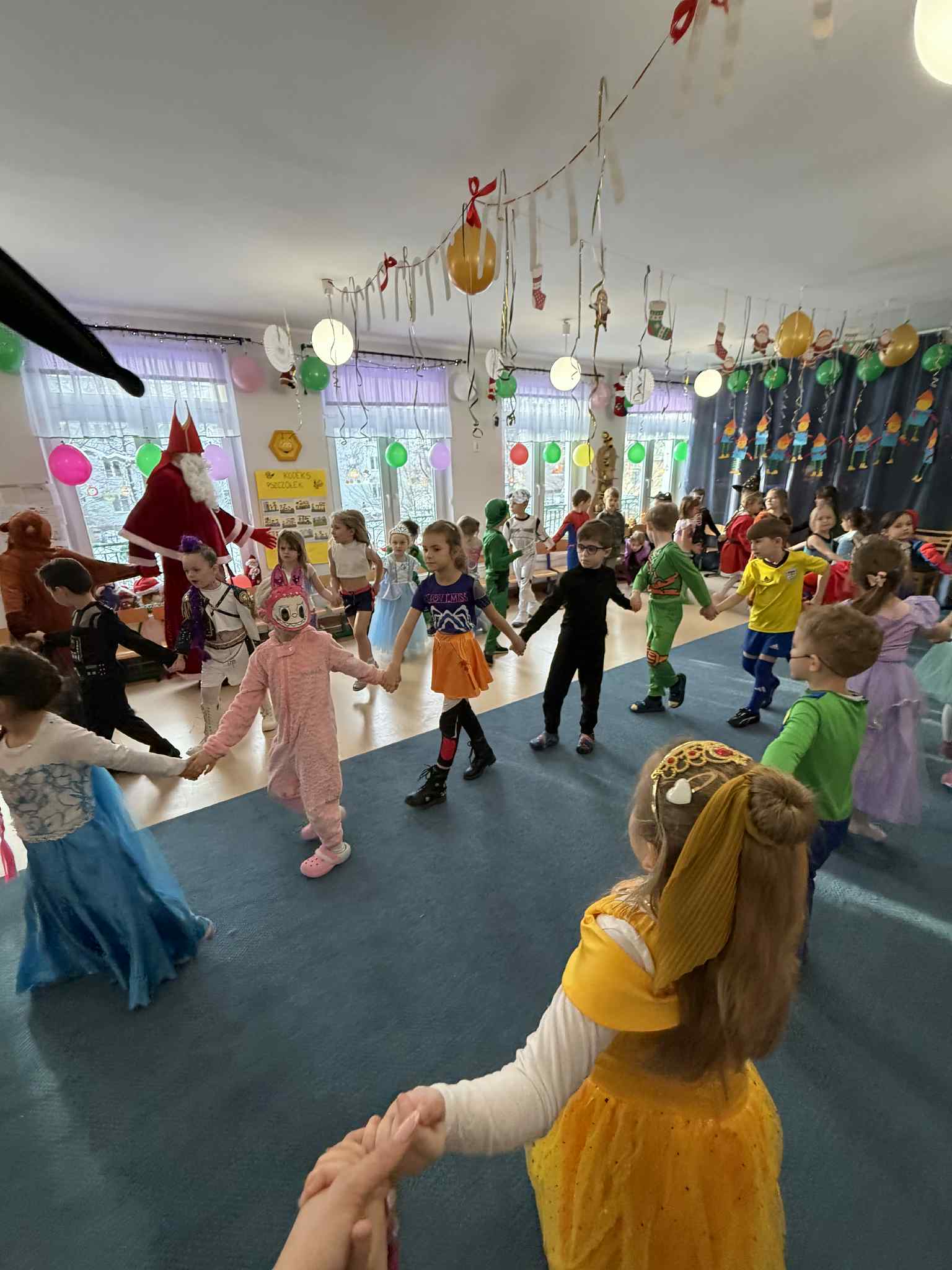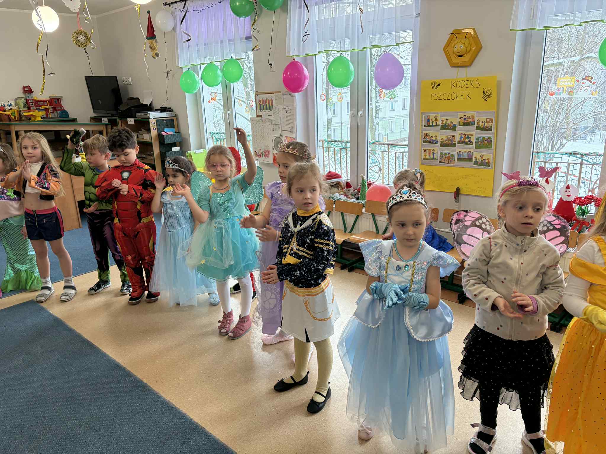 WE WTOREK 13 STYCZNIA W NASZYM PRZEDSZKOLU ODBYŁ SIĘ BAL KARNAWAŁOWY. TEGO DNIA PSZCZÓŁKI RAZEM Z MUCHOMORKAMI WSPÓLNIE TAŃCZYŁY, BRAŁY UDZIAŁ W KONKURSACH ORAZ WESOŁYCH ZABAWACH. NIESPODZIANKĄ BYŁA WIZYTA MIKOŁAJA, KTÓRY NAJPIERW POJAWIŁ SIĘ W OGRODZIE, A NASTĘPNIE ODWIEDZIŁ NAS W SALI. BYŁY ROZMOWY Z MIKOŁAJEM, WSPÓLNE TAŃCE, ZABAWY ORAZ CUDOWNE PREZENTY. MAMY NADZIEJĘ, ŻE W PRZYSZŁYM ROKU MIKOŁAJ RÓWNIEŻ NAS ODWIEDZI.