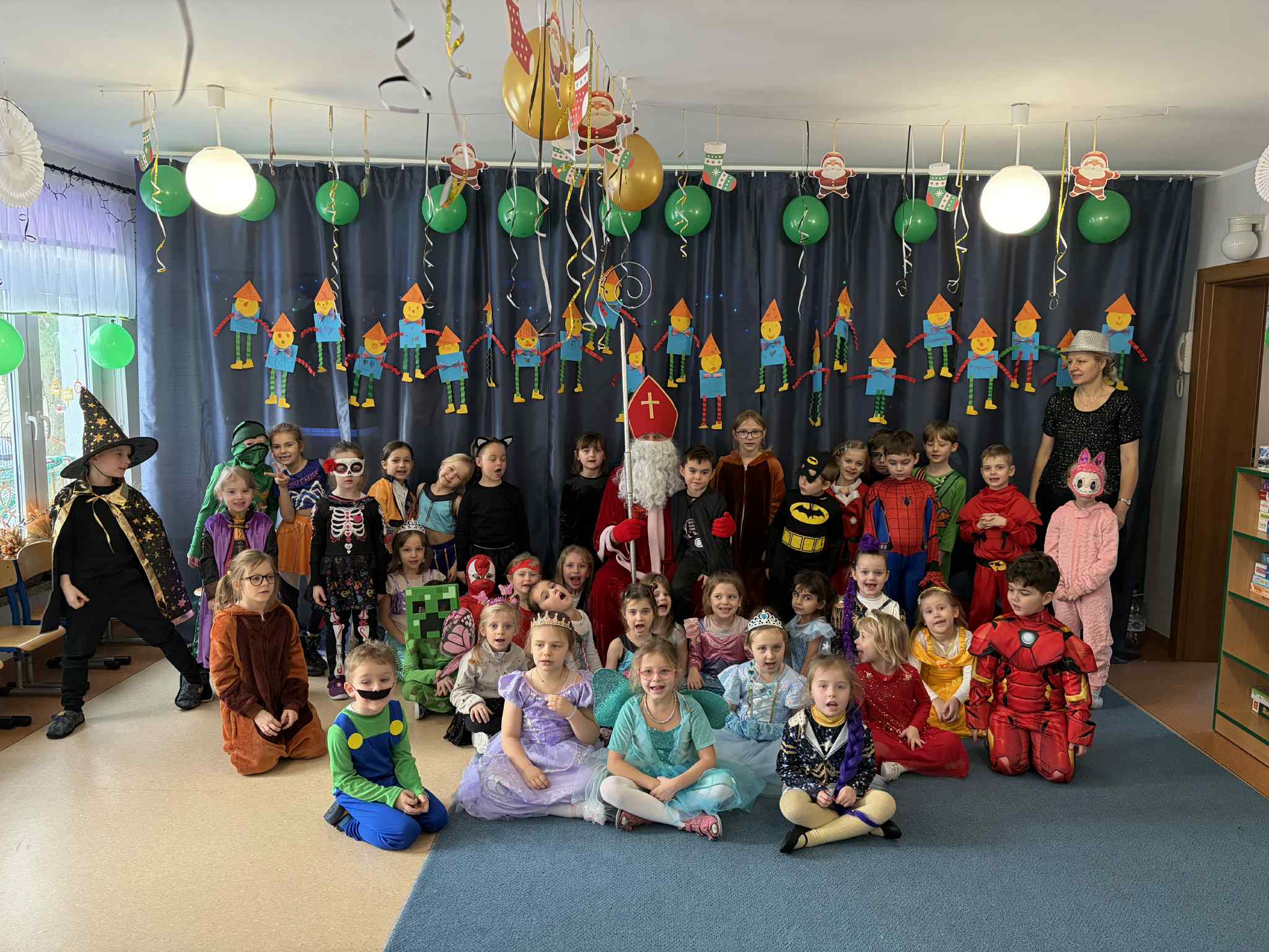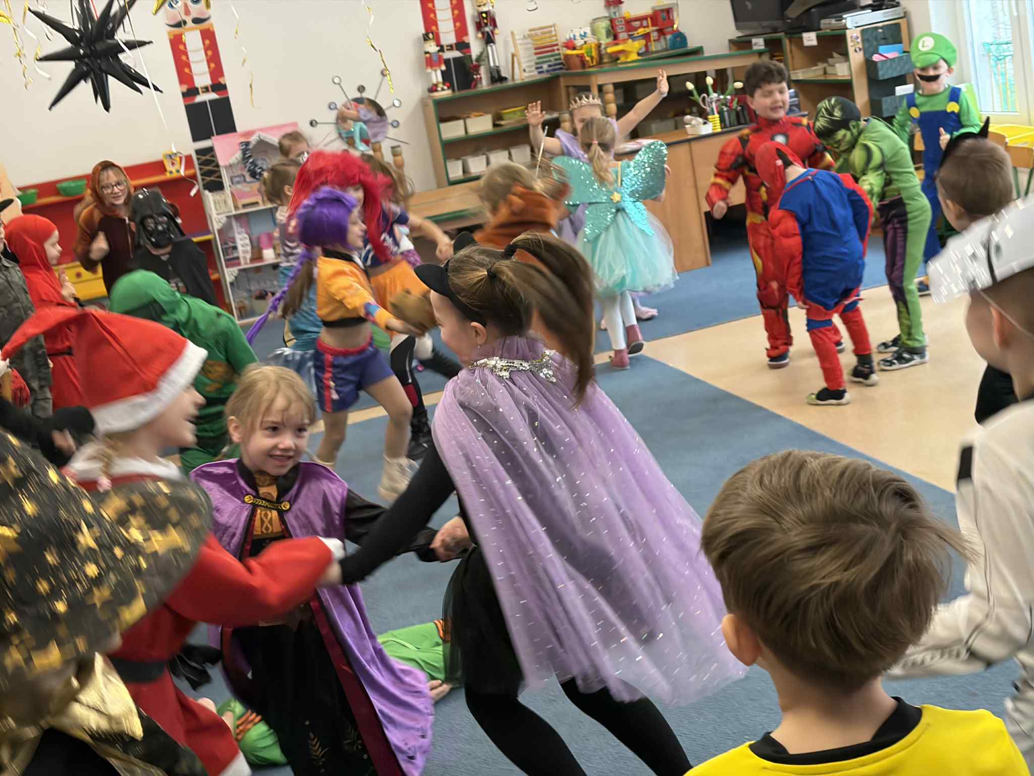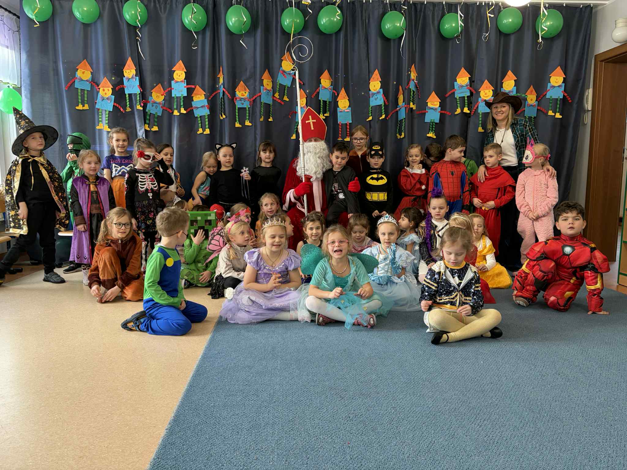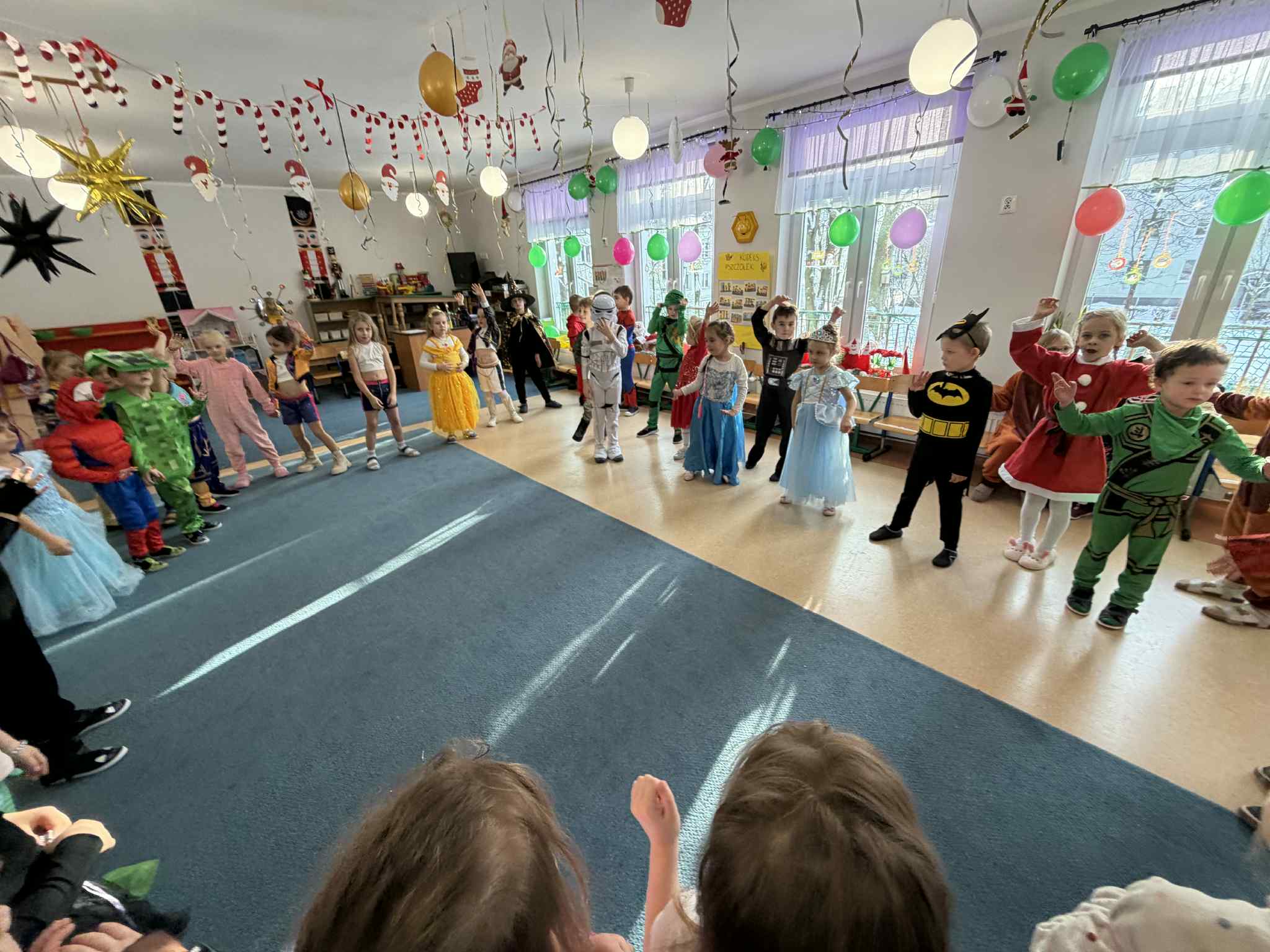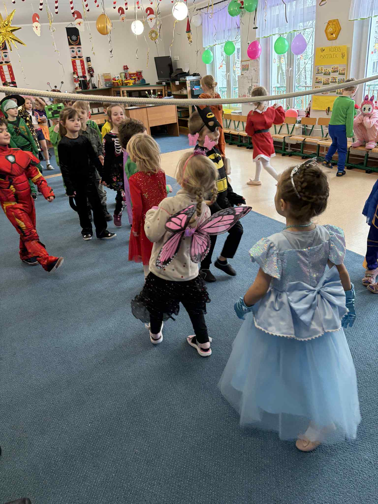 WE WTOREK 13 STYCZNIA W NASZYM PRZEDSZKOLU ODBYŁ SIĘ BAL KARNAWAŁOWY. TEGO DNIA PSZCZÓŁKI RAZEM Z MUCHOMORKAMI WSPÓLNIE TAŃCZYŁY, BRAŁY UDZIAŁ W KONKURSACH ORAZ WESOŁYCH ZABAWACH. NIESPODZIANKĄ BYŁA WIZYTA MIKOŁAJA, KTÓRY NAJPIERW POJAWIŁ SIĘ W OGRODZIE, A NASTĘPNIE ODWIEDZIŁ NAS W SALI. BYŁY ROZMOWY Z MIKOŁAJEM, WSPÓLNE TAŃCE, ZABAWY ORAZ CUDOWNE PREZENTY. MAMY NADZIEJĘ, ŻE W PRZYSZŁYM ROKU MIKOŁAJ RÓWNIEŻ NAS ODWIEDZI.