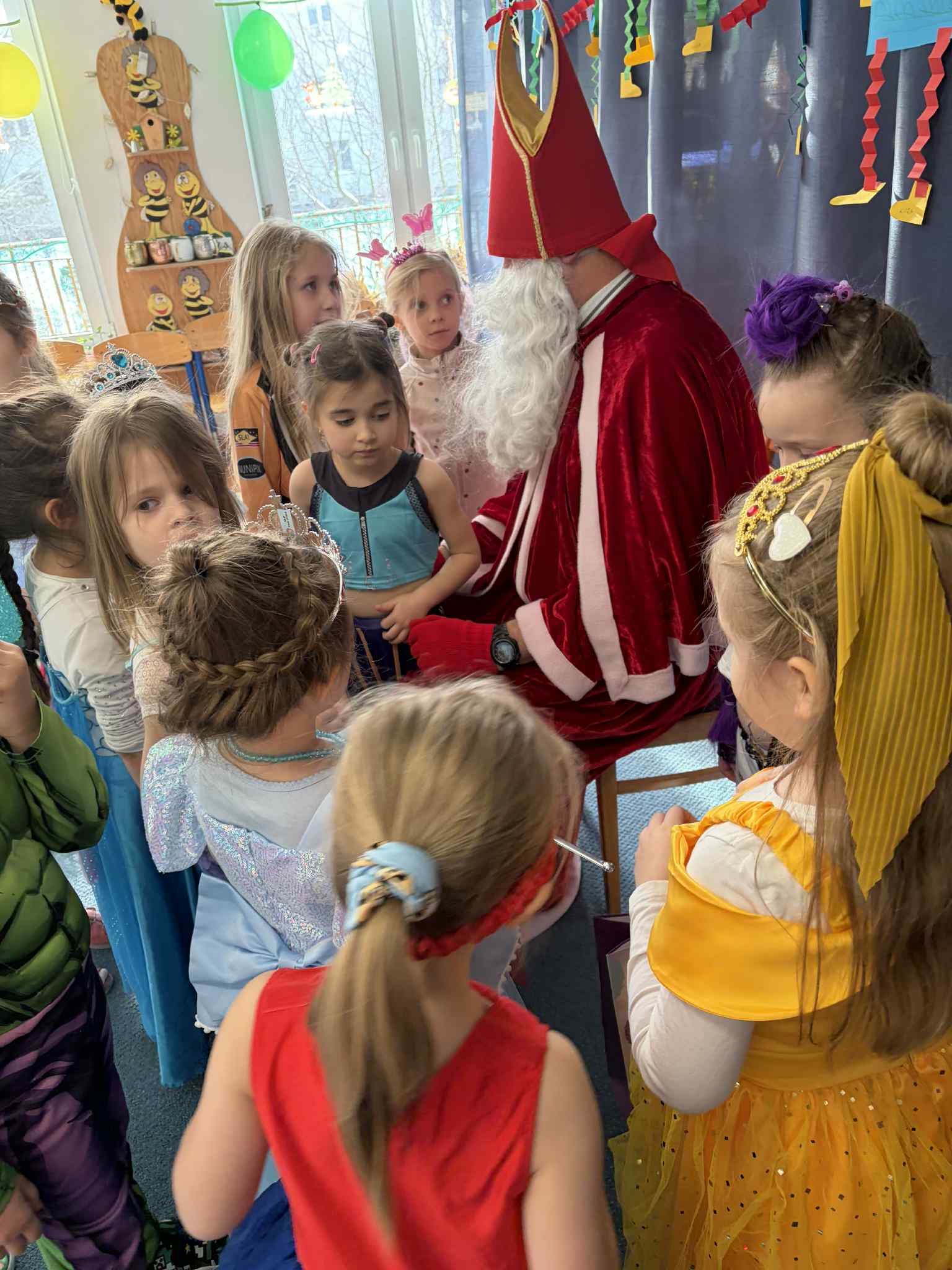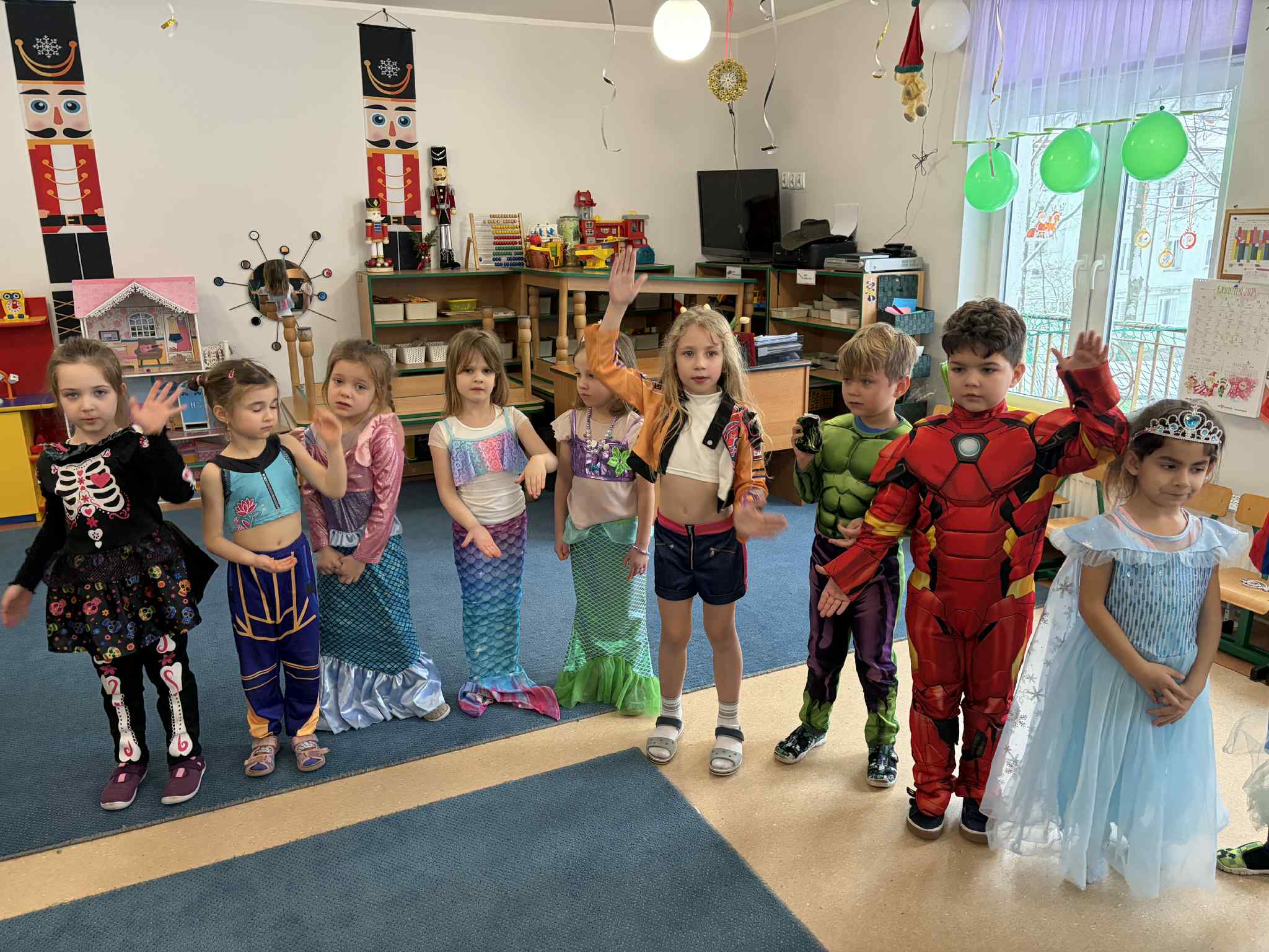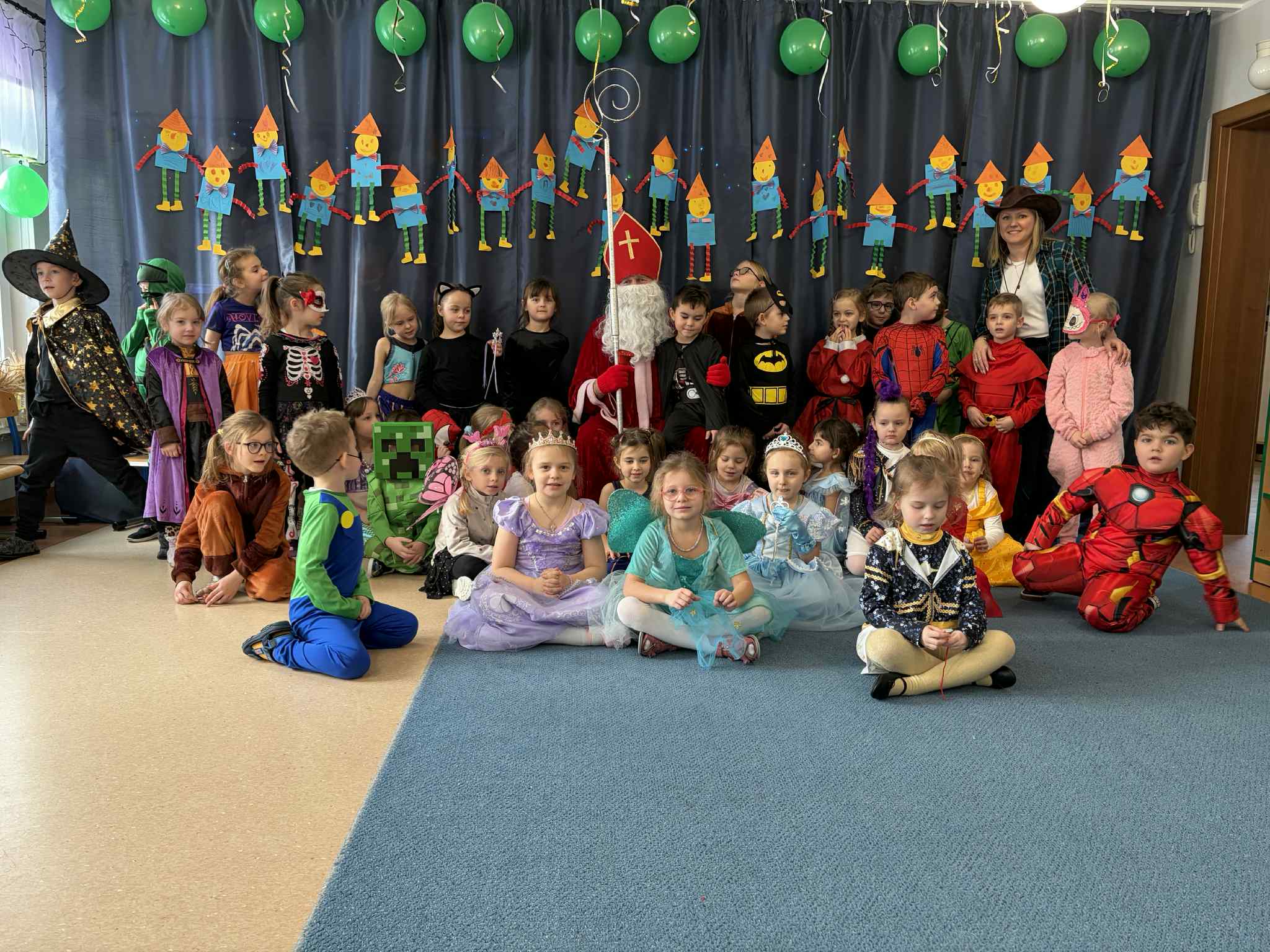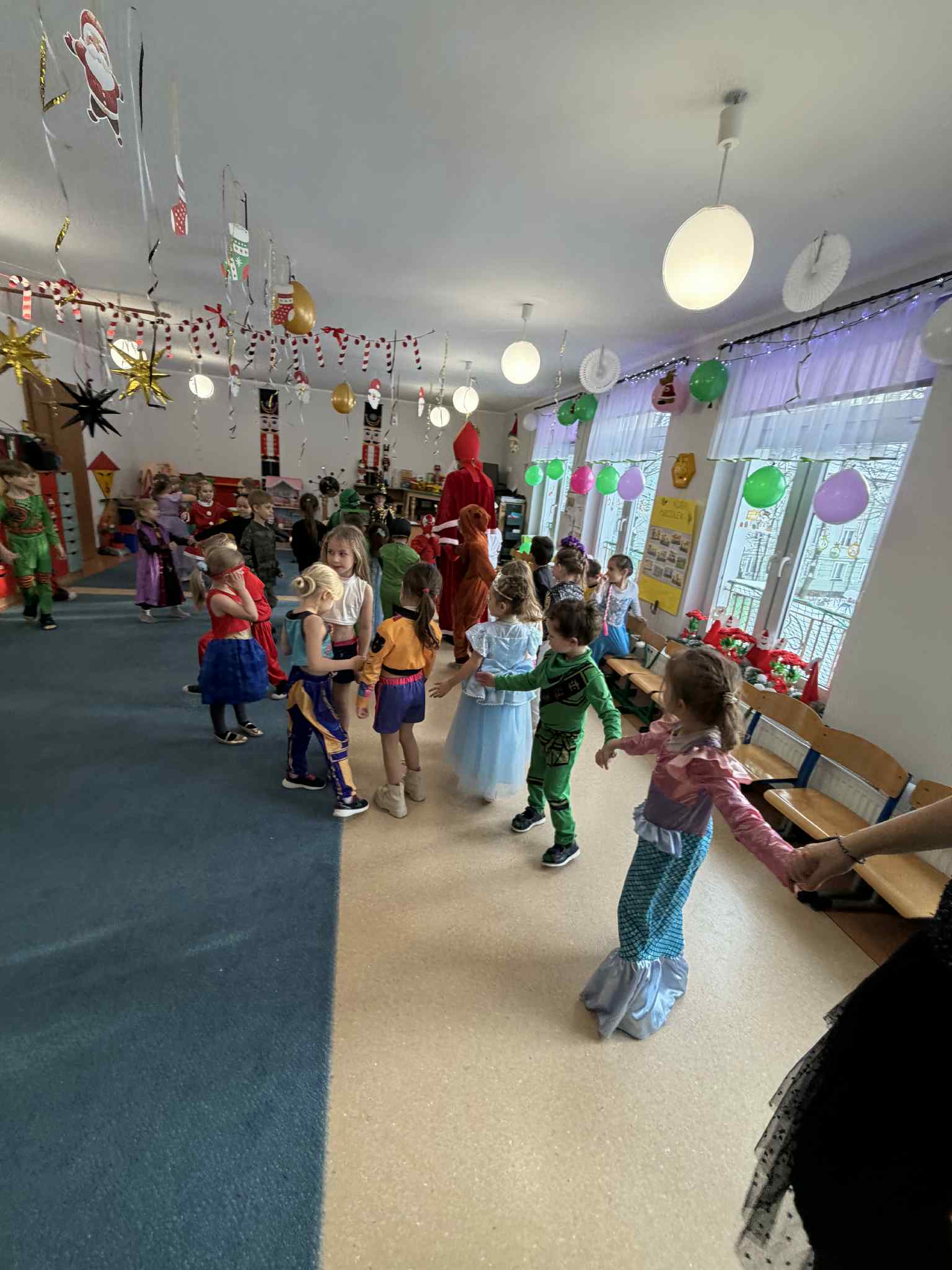 WE WTOREK 13 STYCZNIA W NASZYM PRZEDSZKOLU ODBYŁ SIĘ BAL KARNAWAŁOWY. TEGO DNIA PSZCZÓŁKI RAZEM Z MUCHOMORKAMI WSPÓLNIE TAŃCZYŁY, BRAŁY UDZIAŁ W KONKURSACH ORAZ WESOŁYCH ZABAWACH. NIESPODZIANKĄ BYŁA WIZYTA MIKOŁAJA, KTÓRY NAJPIERW POJAWIŁ SIĘ W OGRODZIE, A NASTĘPNIE ODWIEDZIŁ NAS W SALI. BYŁY ROZMOWY Z MIKOŁAJEM, WSPÓLNE TAŃCE, ZABAWY ORAZ CUDOWNE PREZENTY. MAMY NADZIEJĘ, ŻE W PRZYSZŁYM ROKU MIKOŁAJ RÓWNIEŻ NAS ODWIEDZI.