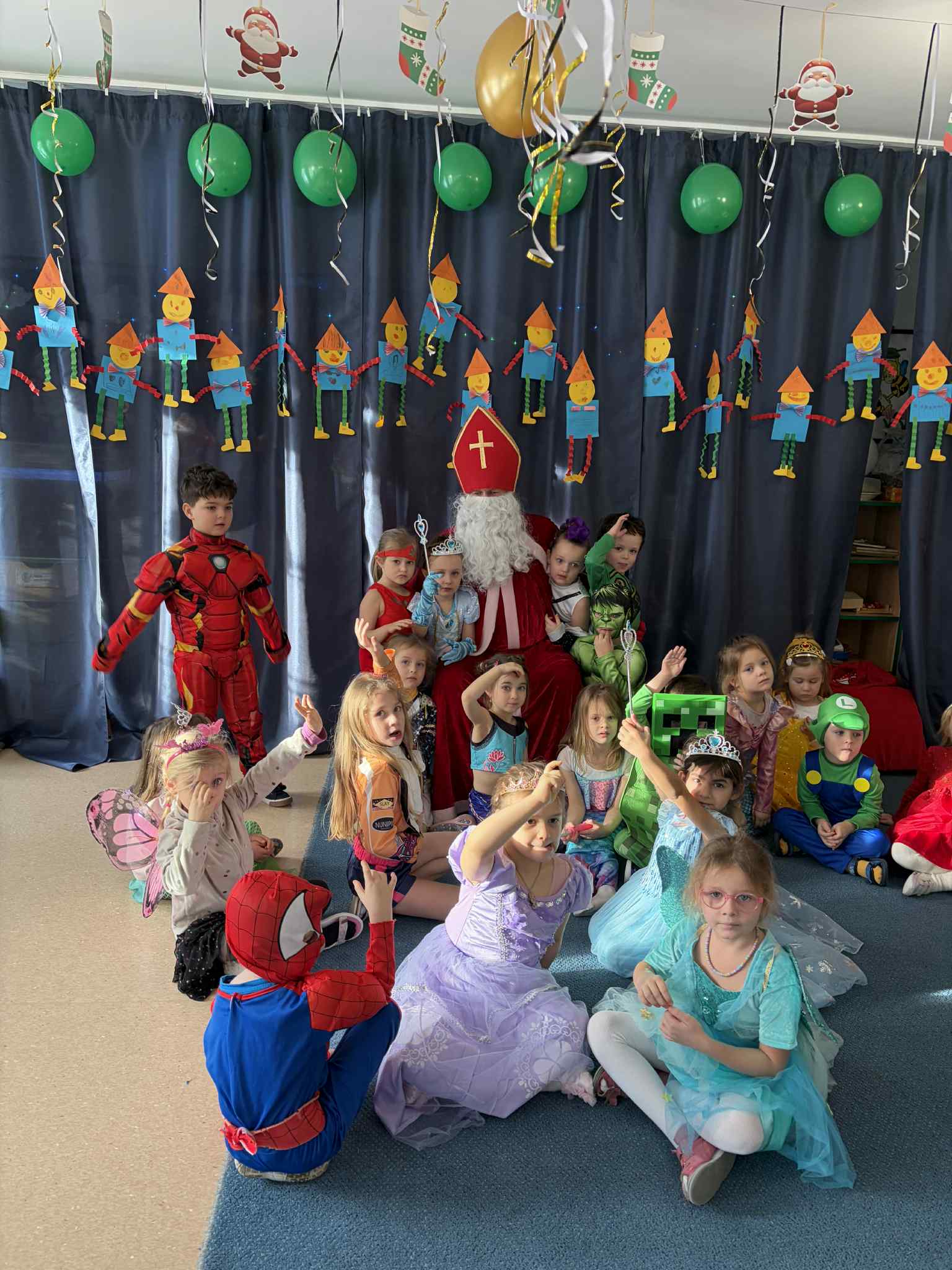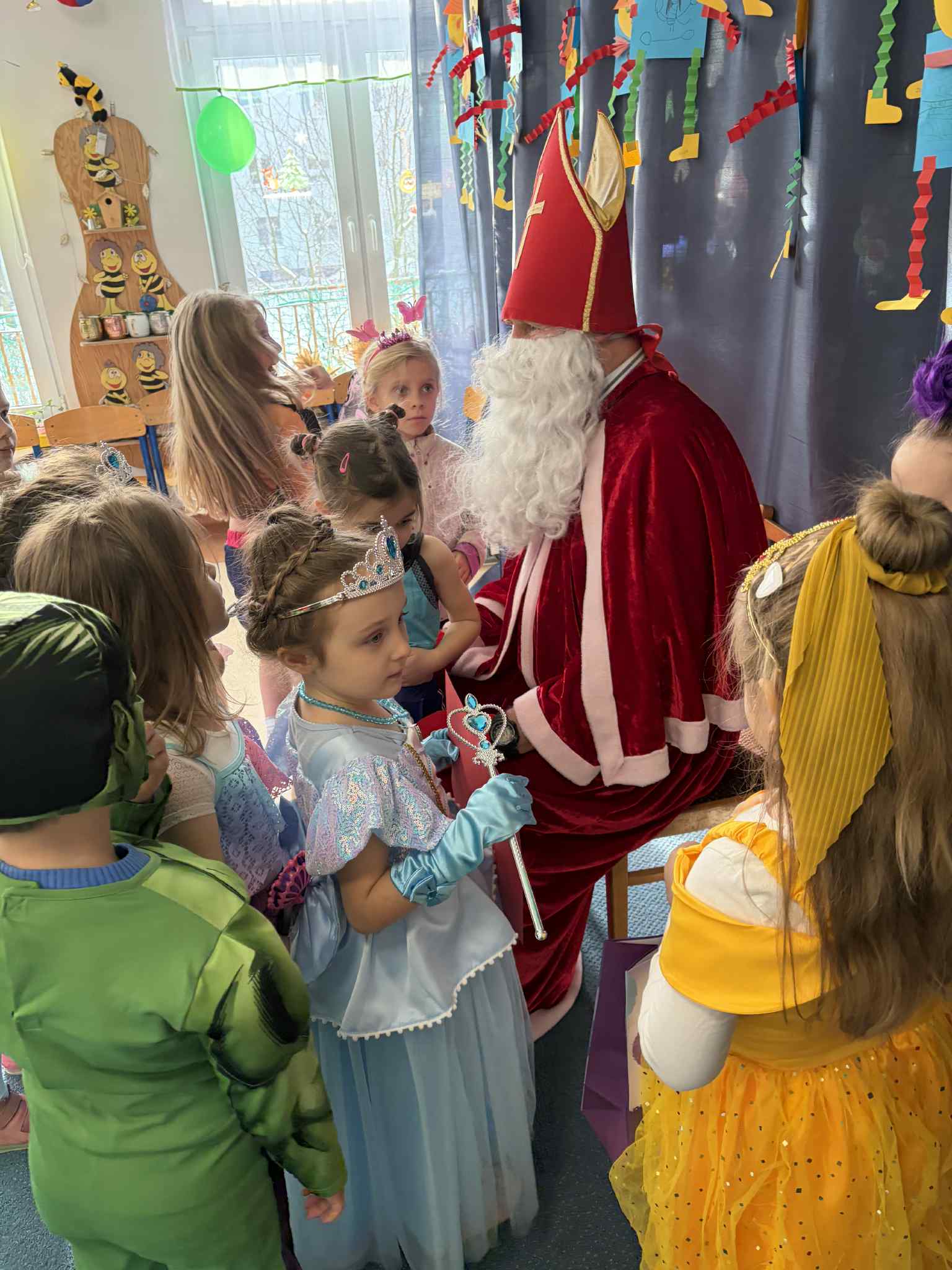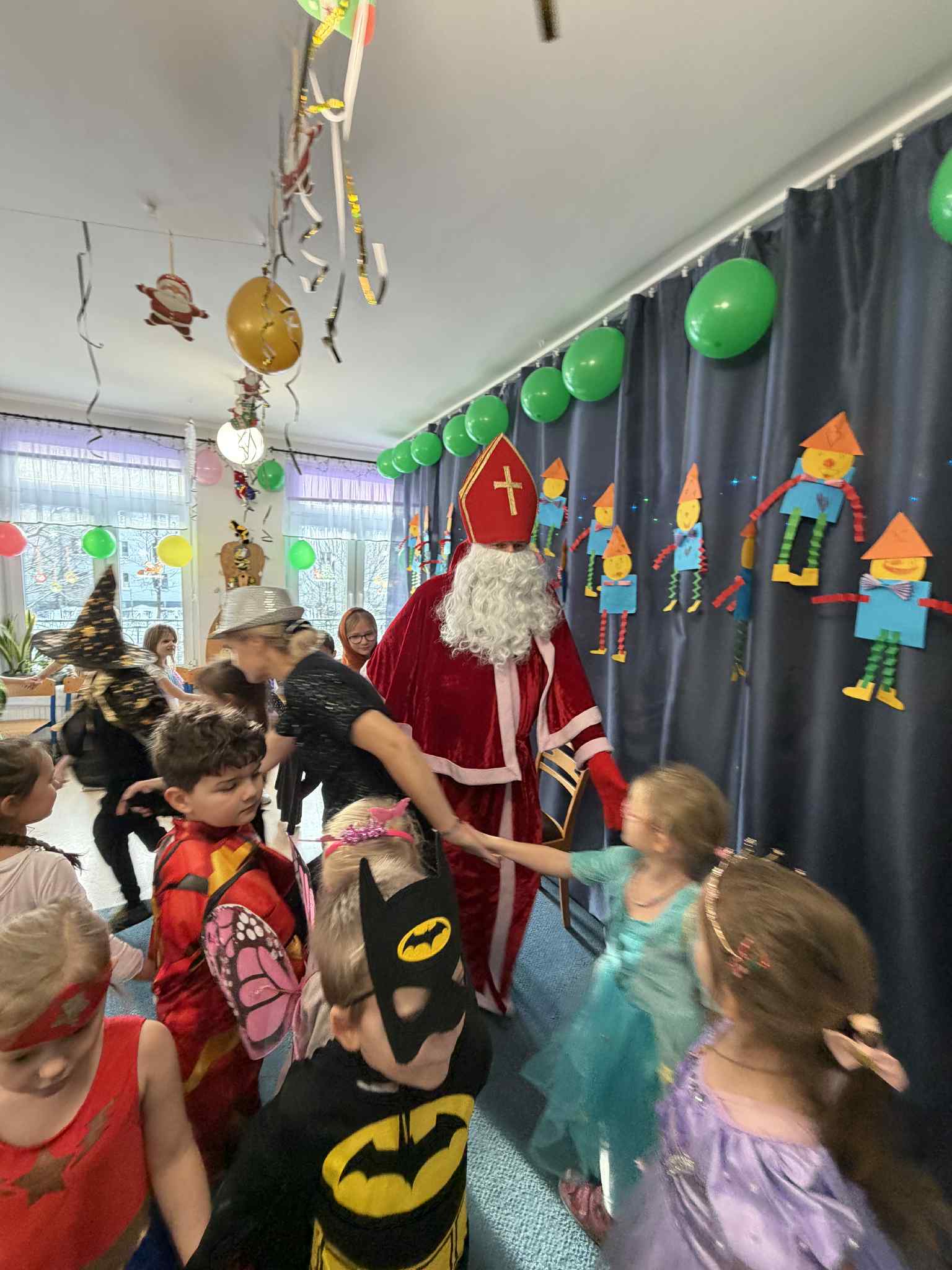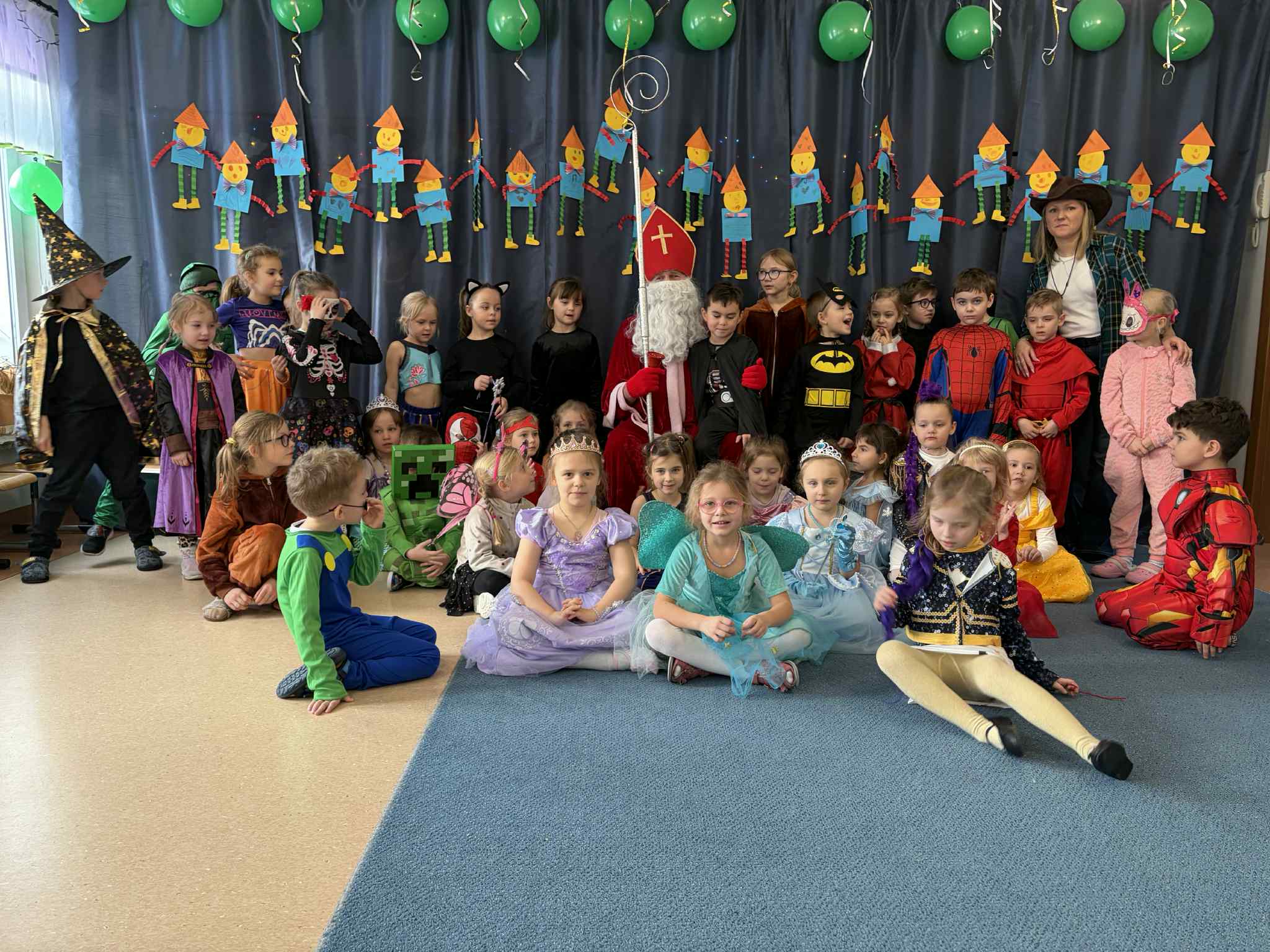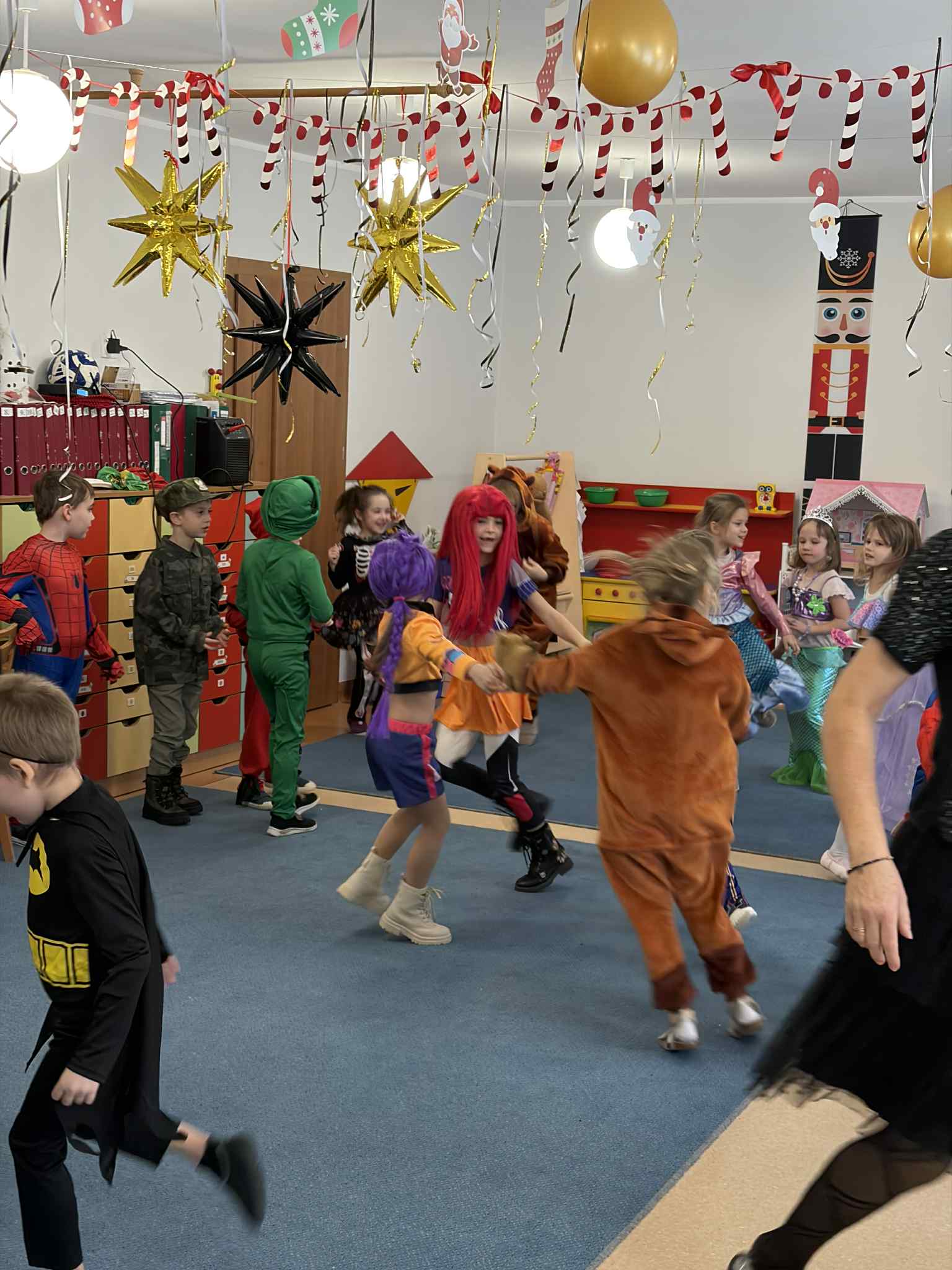 WE WTOREK 13 STYCZNIA W NASZYM PRZEDSZKOLU ODBYŁ SIĘ BAL KARNAWAŁOWY. TEGO DNIA PSZCZÓŁKI RAZEM Z MUCHOMORKAMI WSPÓLNIE TAŃCZYŁY, BRAŁY UDZIAŁ W KONKURSACH ORAZ WESOŁYCH ZABAWACH. NIESPODZIANKĄ BYŁA WIZYTA MIKOŁAJA, KTÓRY NAJPIERW POJAWIŁ SIĘ W OGRODZIE, A NASTĘPNIE ODWIEDZIŁ NAS W SALI. BYŁY ROZMOWY Z MIKOŁAJEM, WSPÓLNE TAŃCE, ZABAWY ORAZ CUDOWNE PREZENTY. MAMY NADZIEJĘ, ŻE W PRZYSZŁYM ROKU MIKOŁAJ RÓWNIEŻ NAS ODWIEDZI.