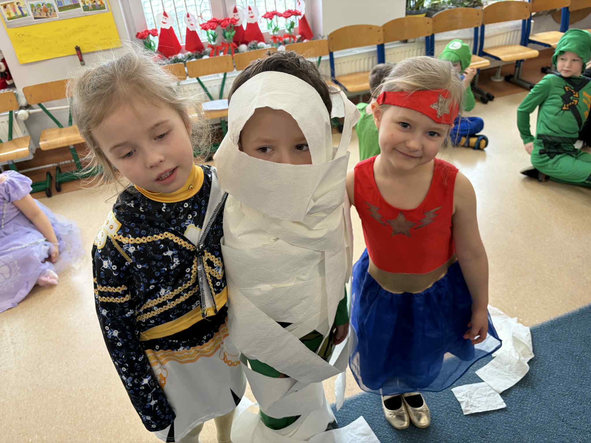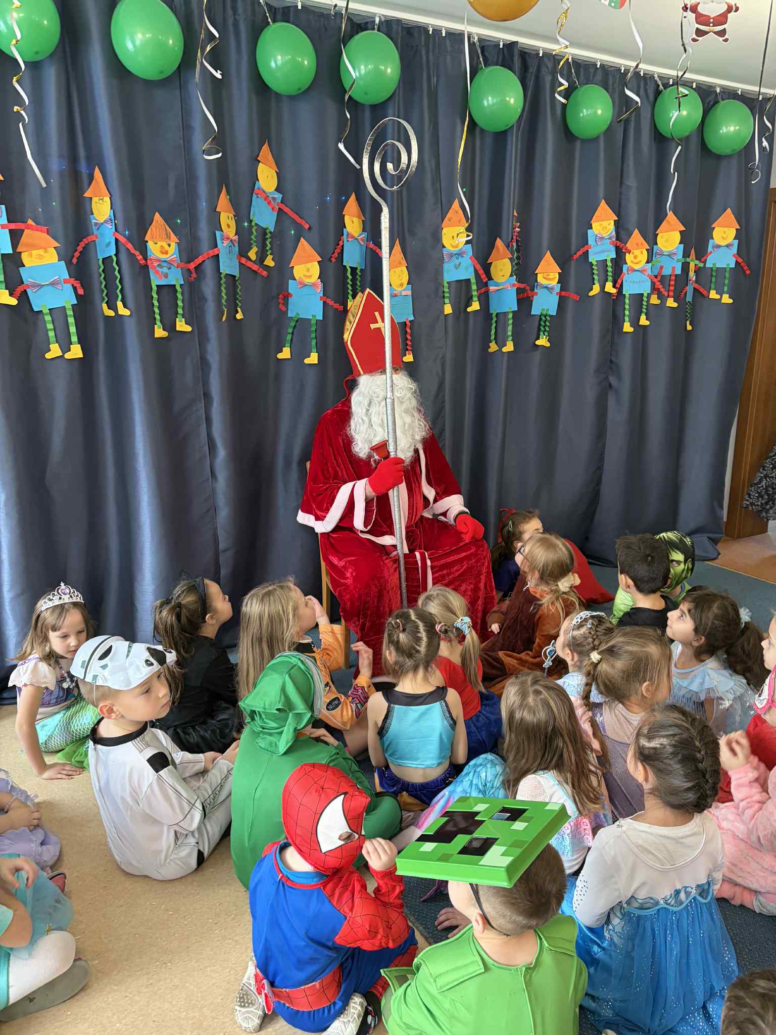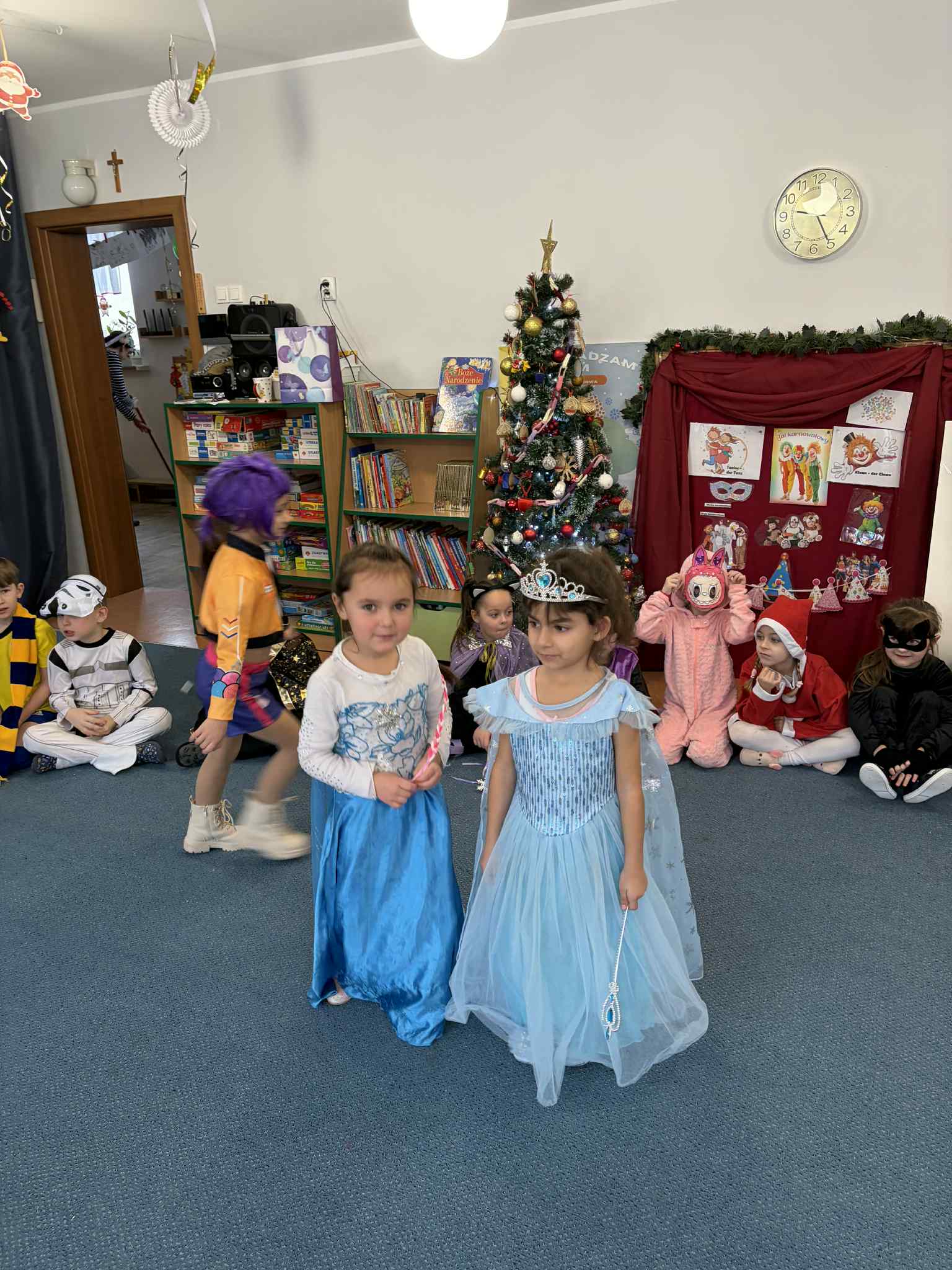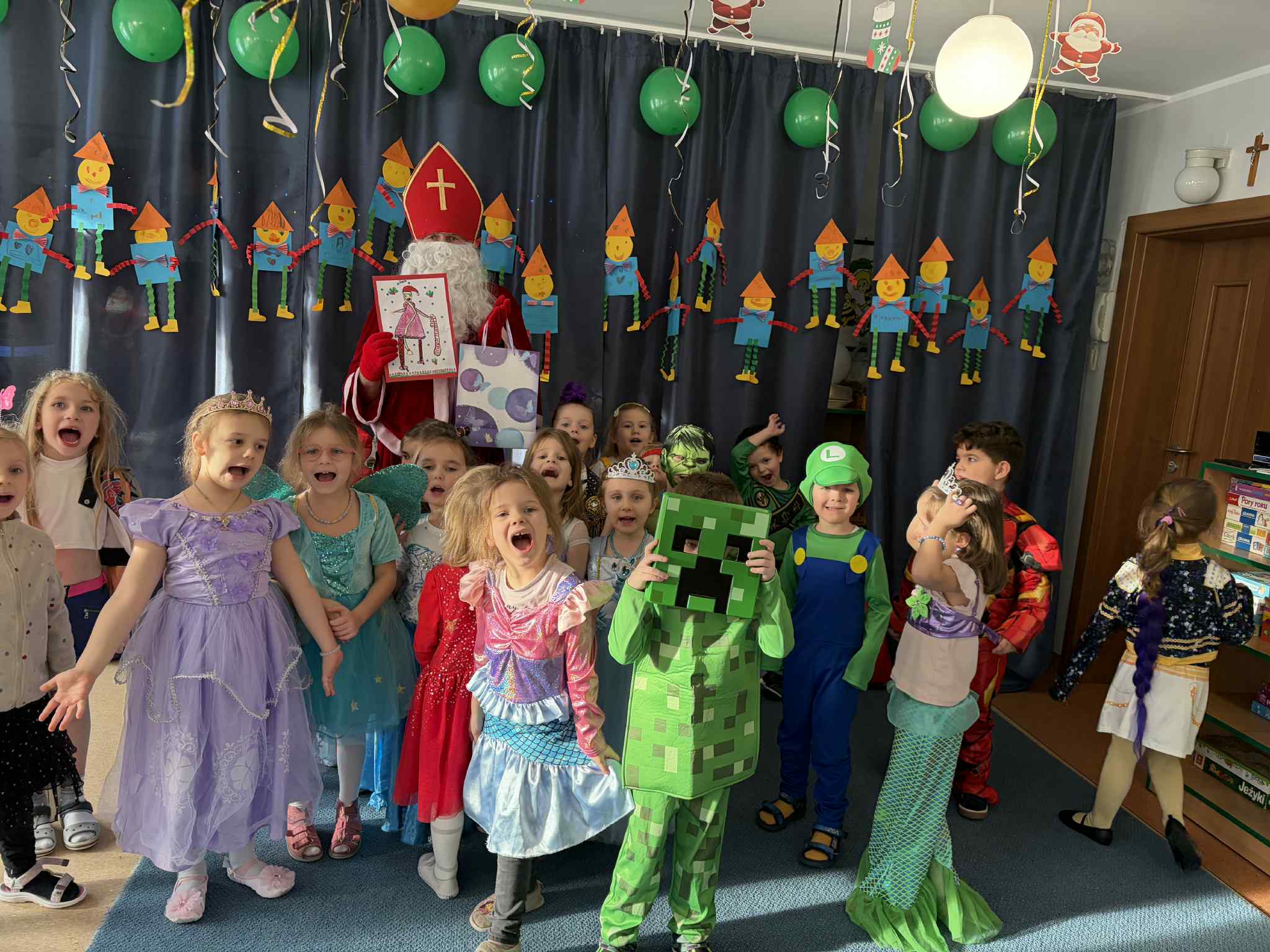 WE WTOREK 13 STYCZNIA W NASZYM PRZEDSZKOLU ODBYŁ SIĘ BAL KARNAWAŁOWY. TEGO DNIA PSZCZÓŁKI RAZEM Z MUCHOMORKAMI WSPÓLNIE TAŃCZYŁY, BRAŁY UDZIAŁ W KONKURSACH ORAZ WESOŁYCH ZABAWACH. NIESPODZIANKĄ BYŁA WIZYTA MIKOŁAJA, KTÓRY NAJPIERW POJAWIŁ SIĘ W OGRODZIE, A NASTĘPNIE ODWIEDZIŁ NAS W SALI. BYŁY ROZMOWY Z MIKOŁAJEM, WSPÓLNE TAŃCE, ZABAWY ORAZ CUDOWNE PREZENTY. MAMY NADZIEJĘ, ŻE W PRZYSZŁYM ROKU MIKOŁAJ RÓWNIEŻ NAS ODWIEDZI.