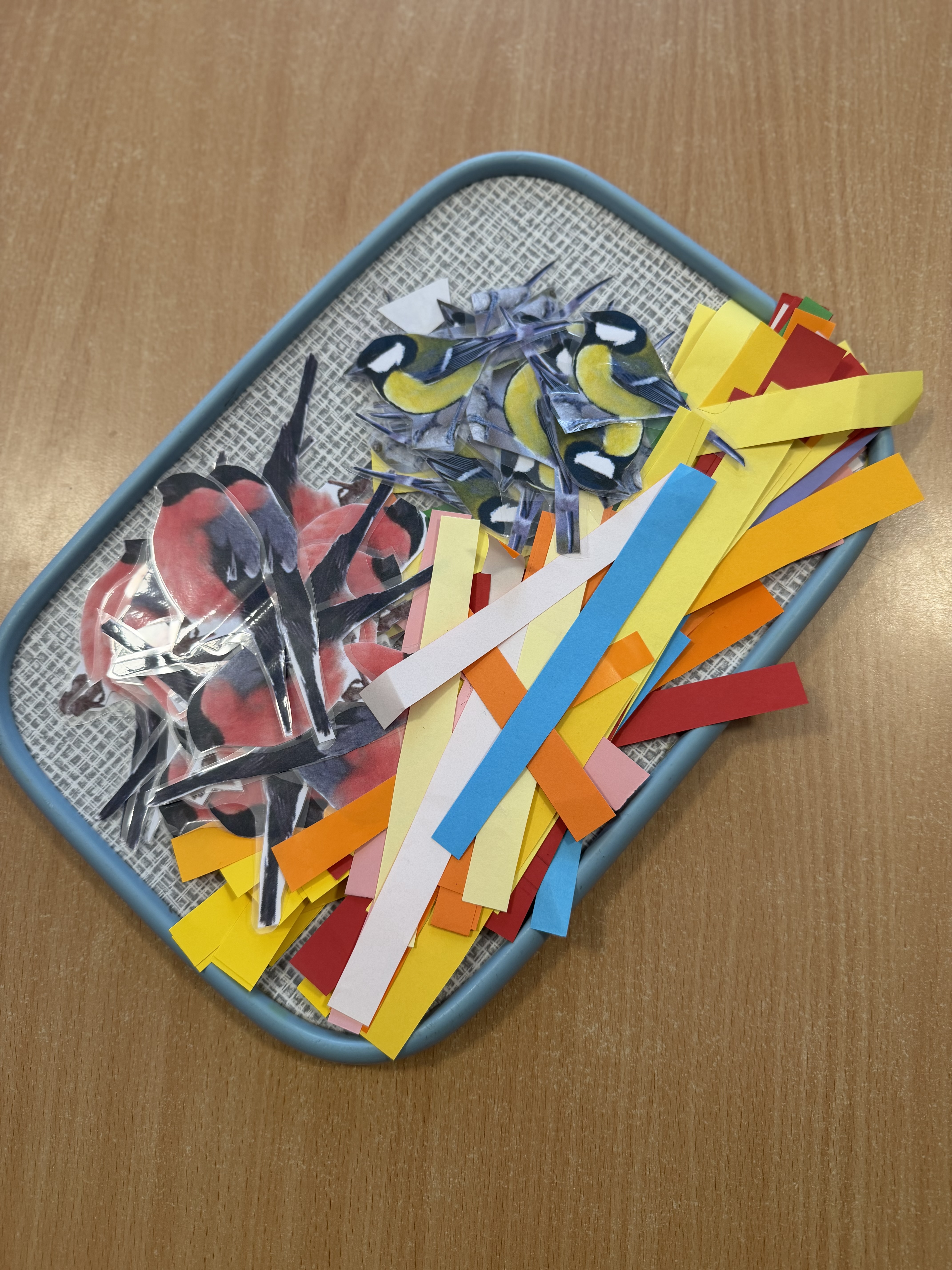 kolorowaliśmy sikorki, które „przyleciały” do karmnika z kolorowych pasków;