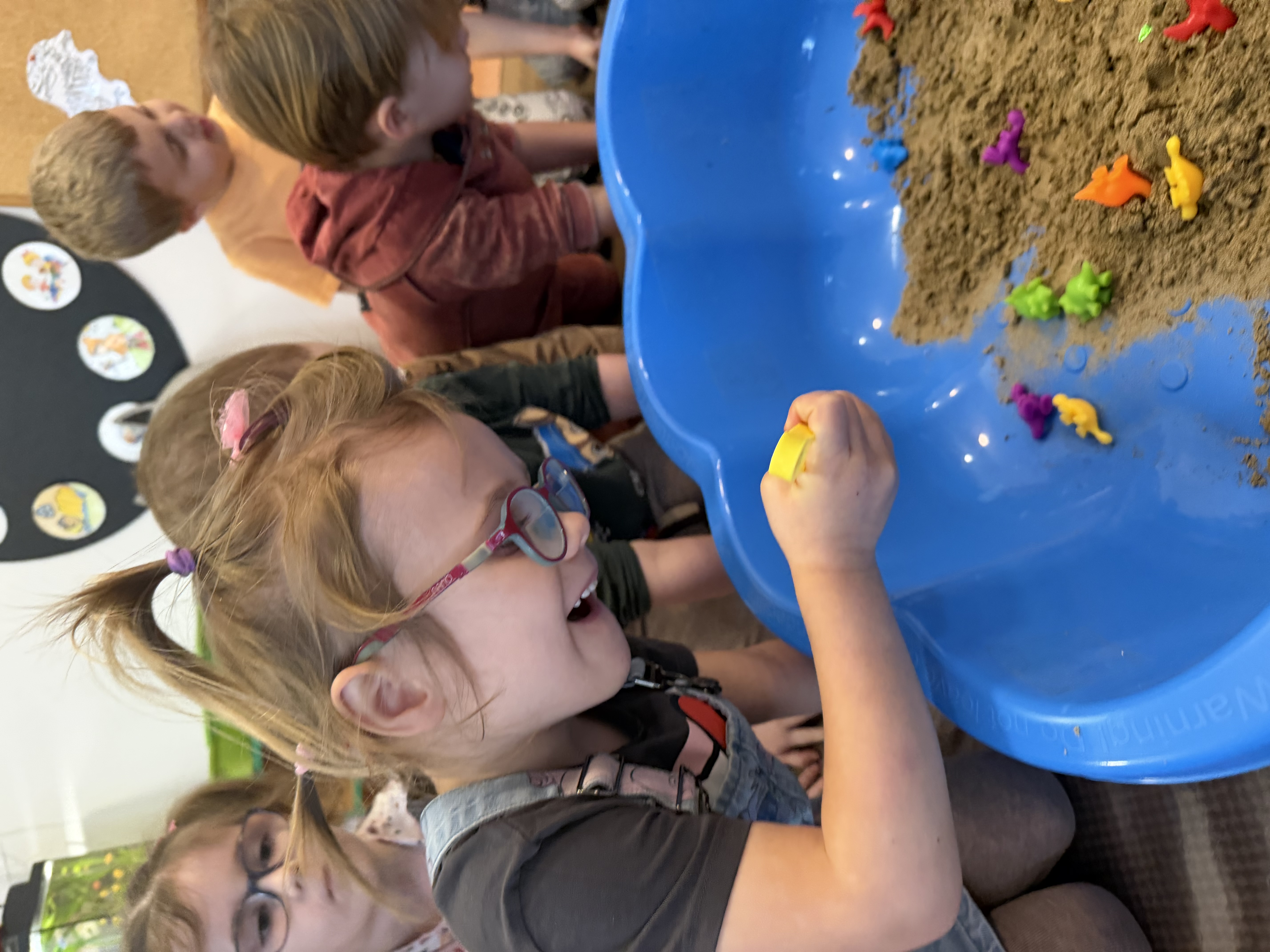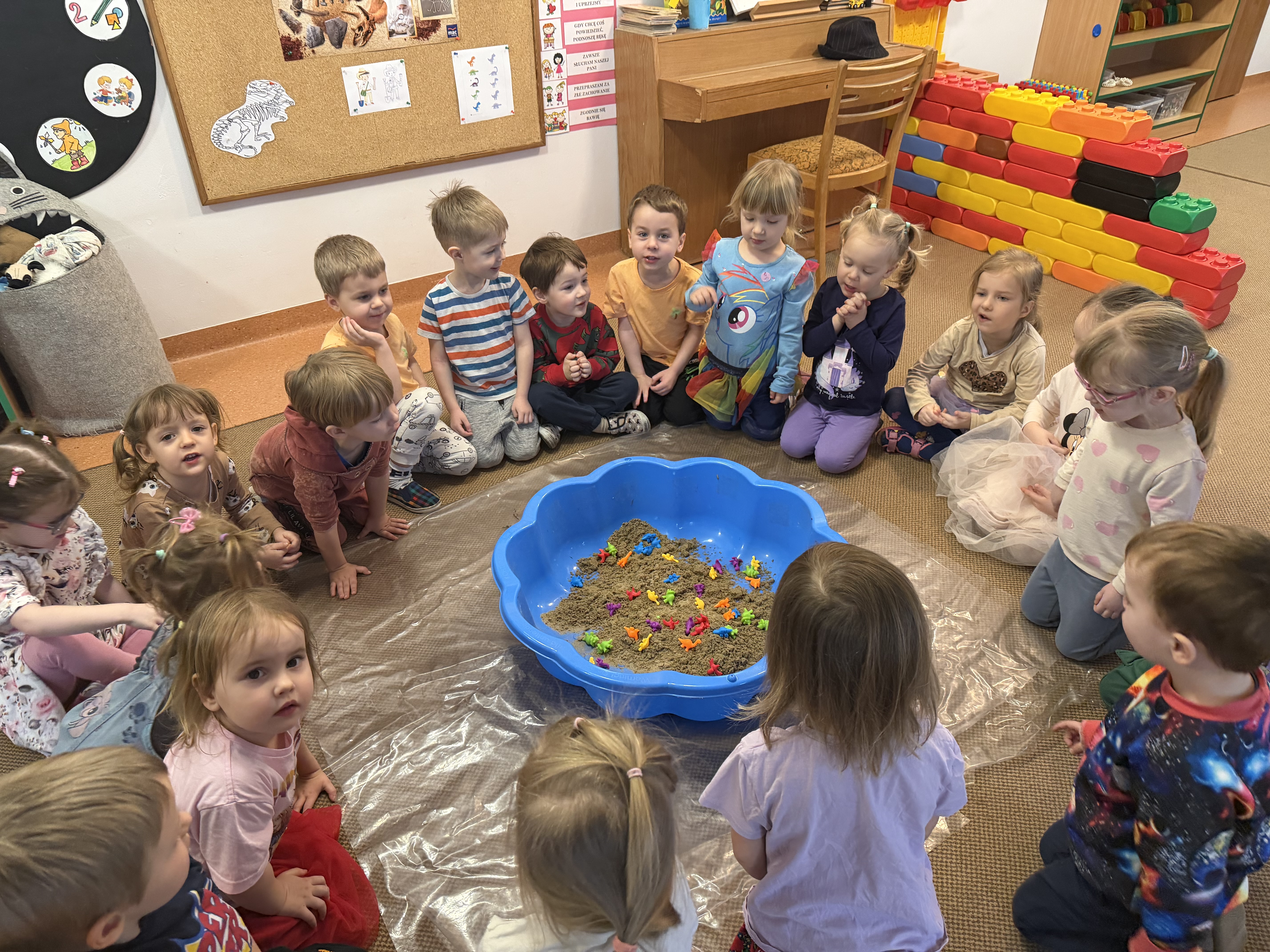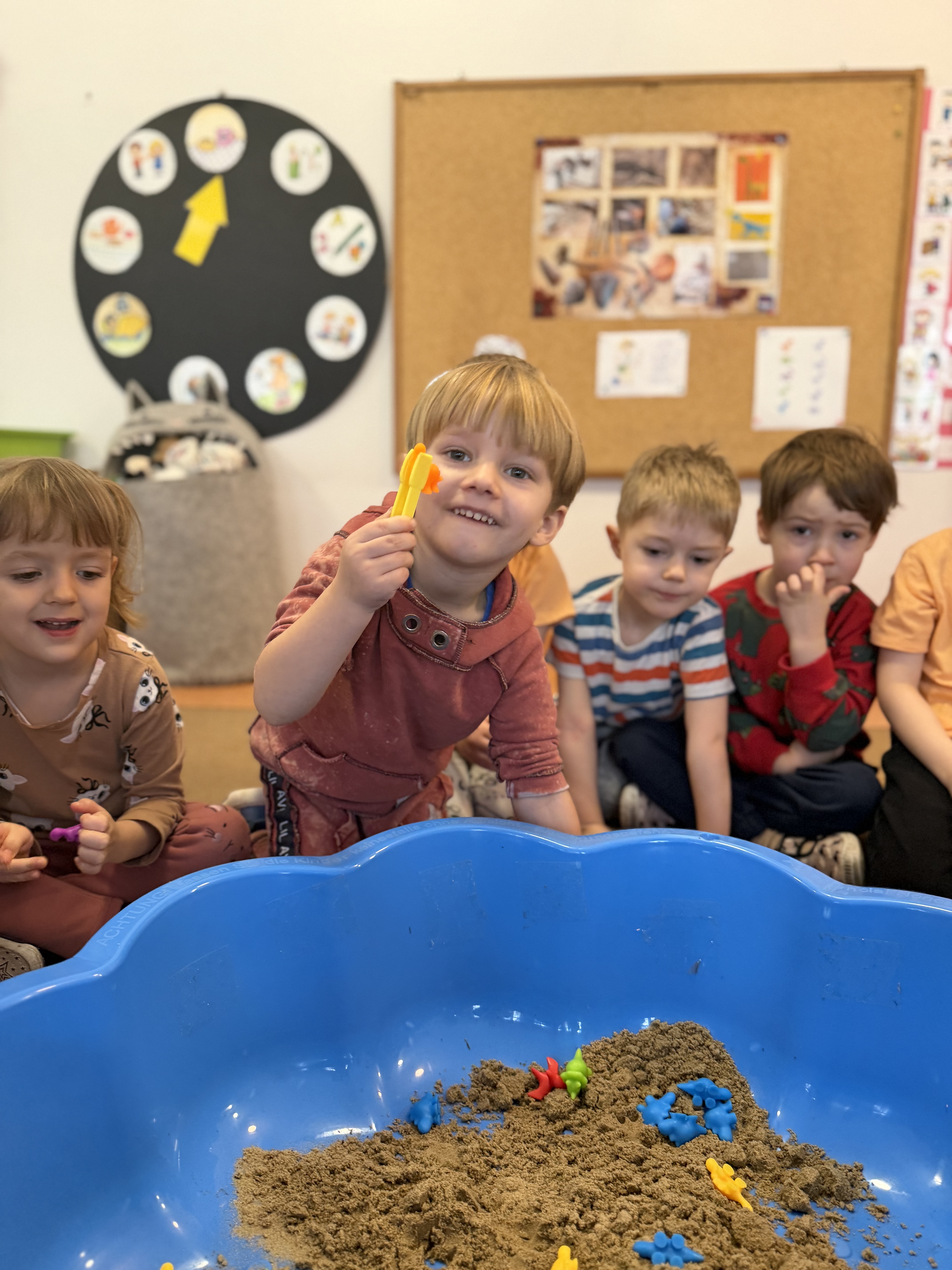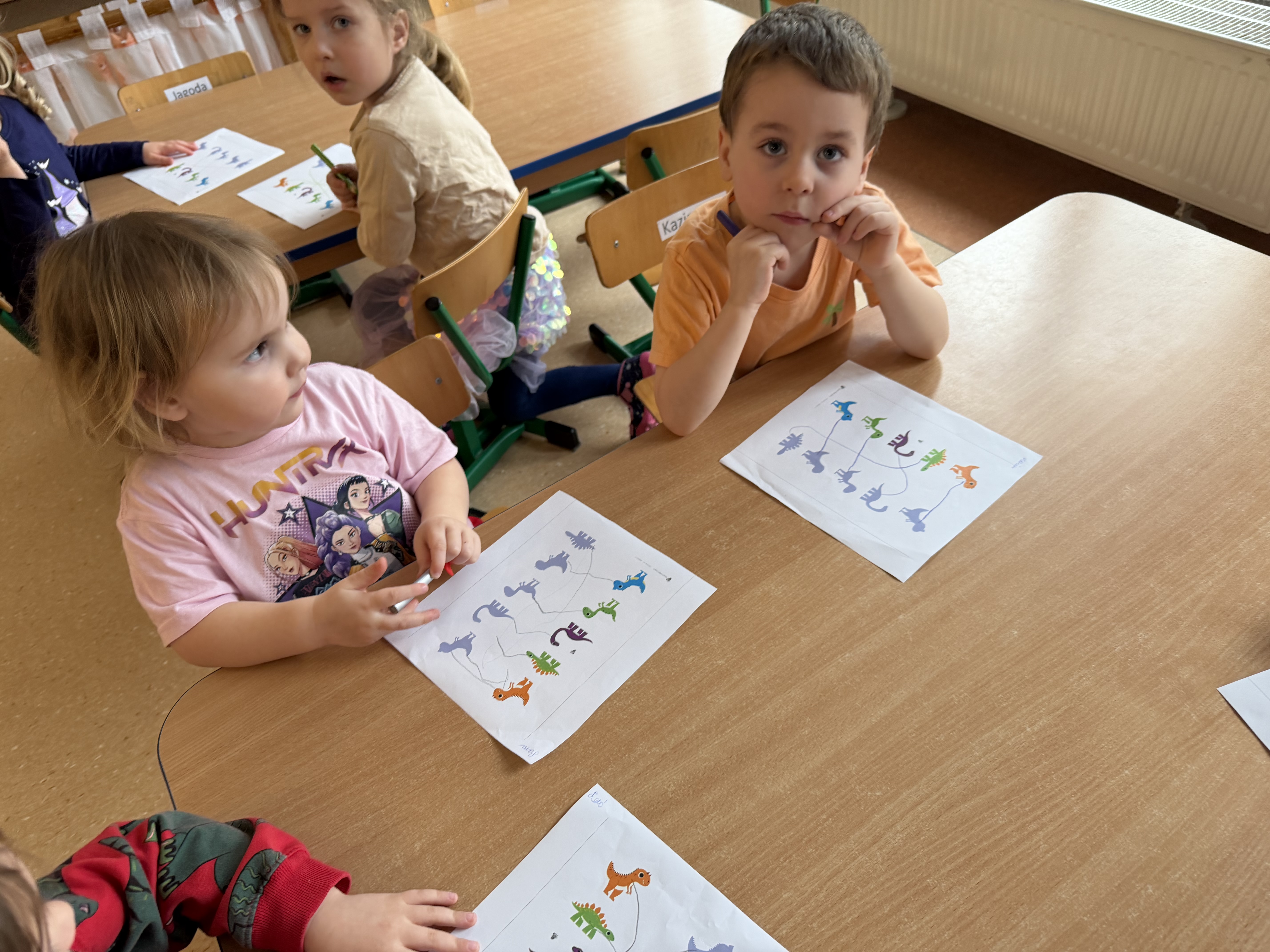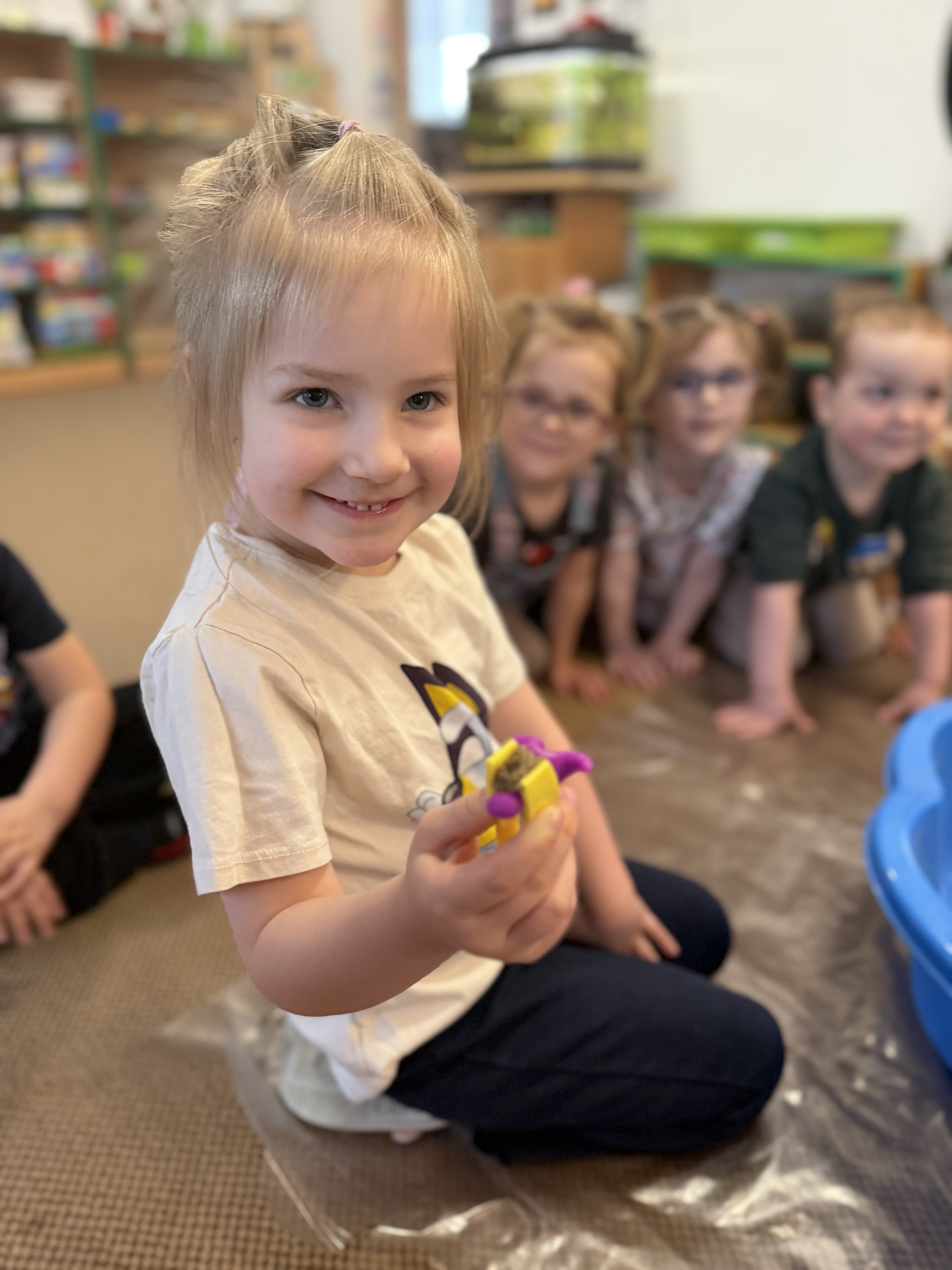 W tym tygodniu poznaliśmy dinozaury, rozmawialiśmy o pracy archeologów i wcieliliśmy się w ich role ćwicząc motorykę małą;).