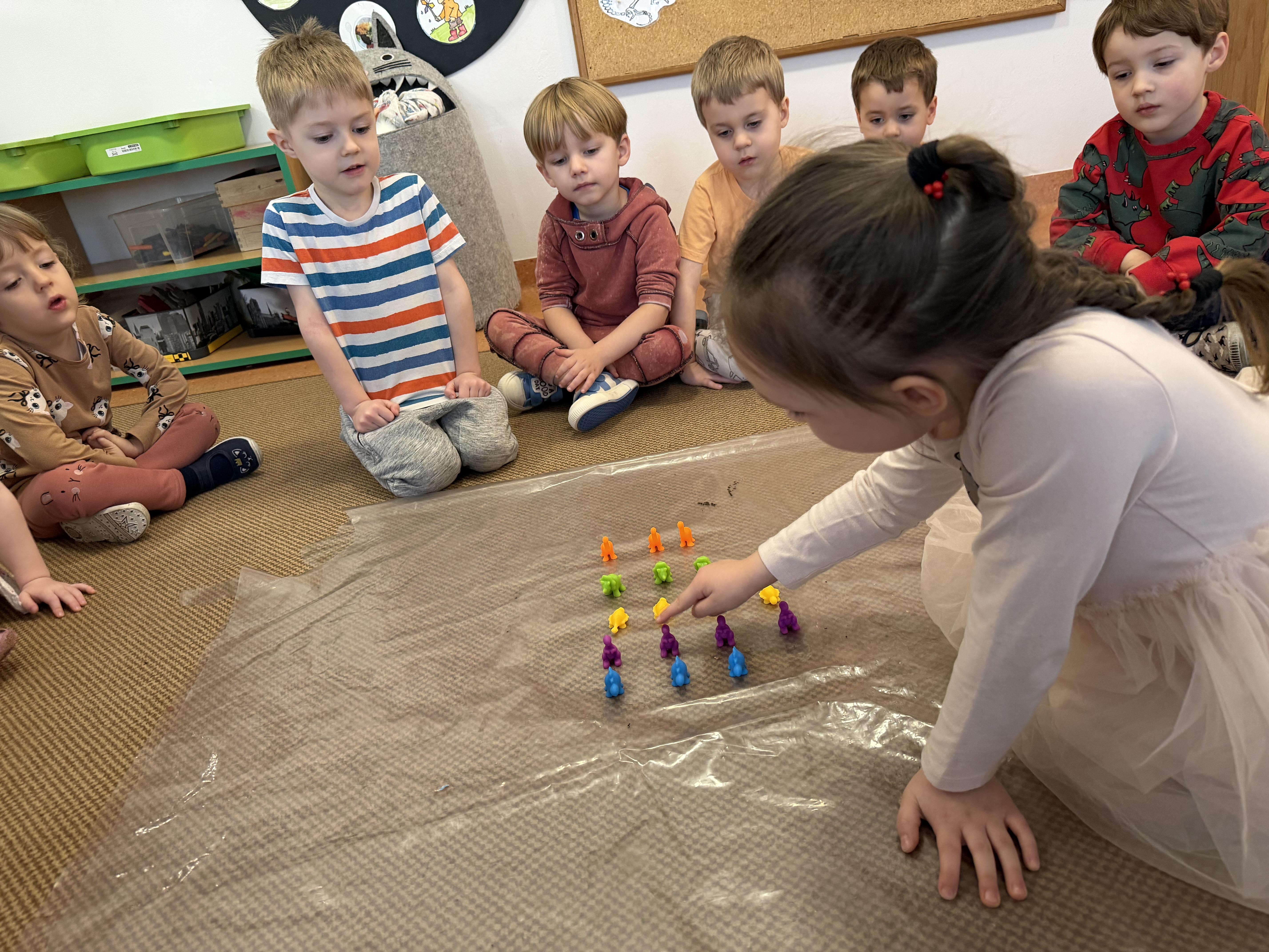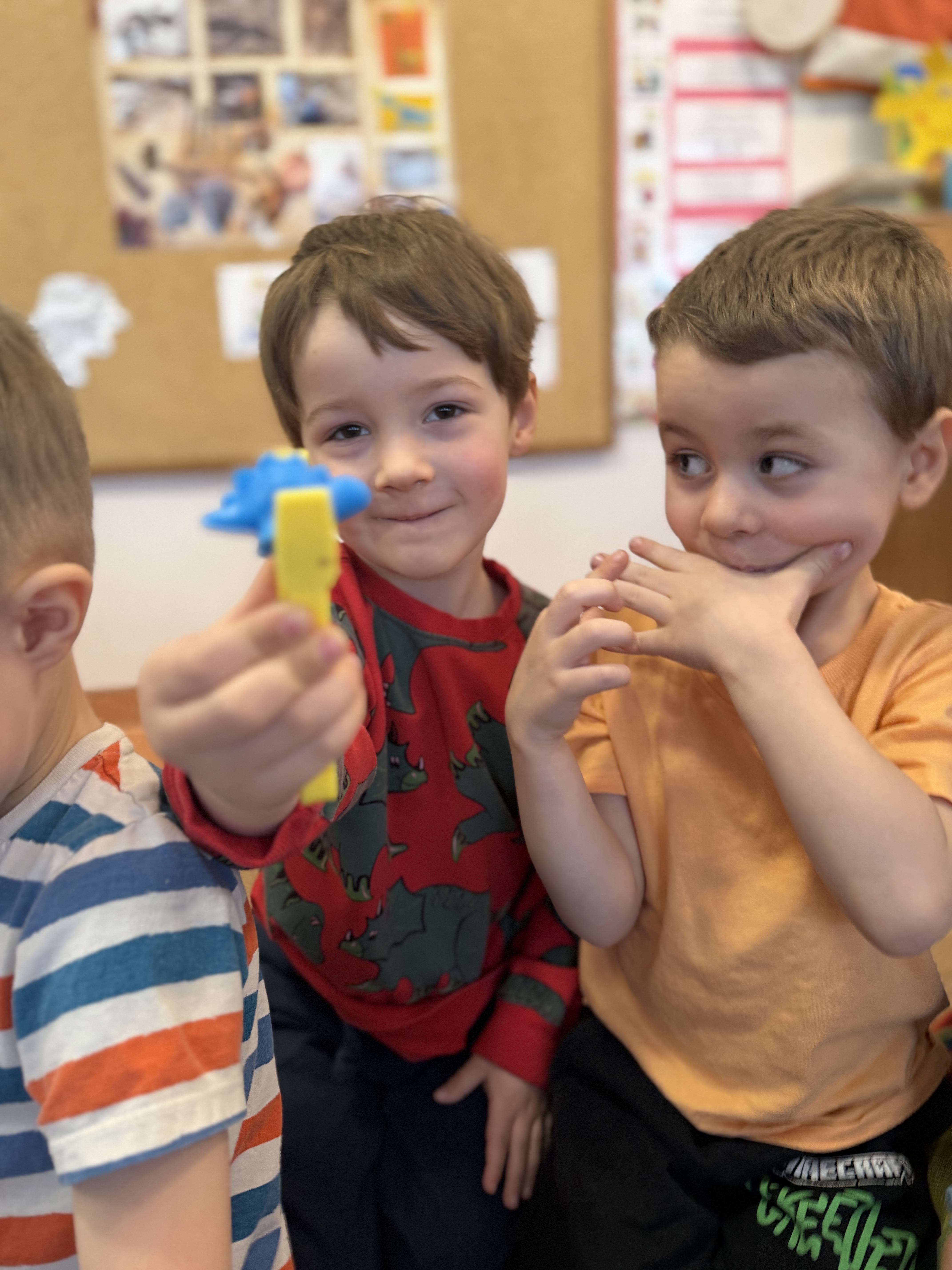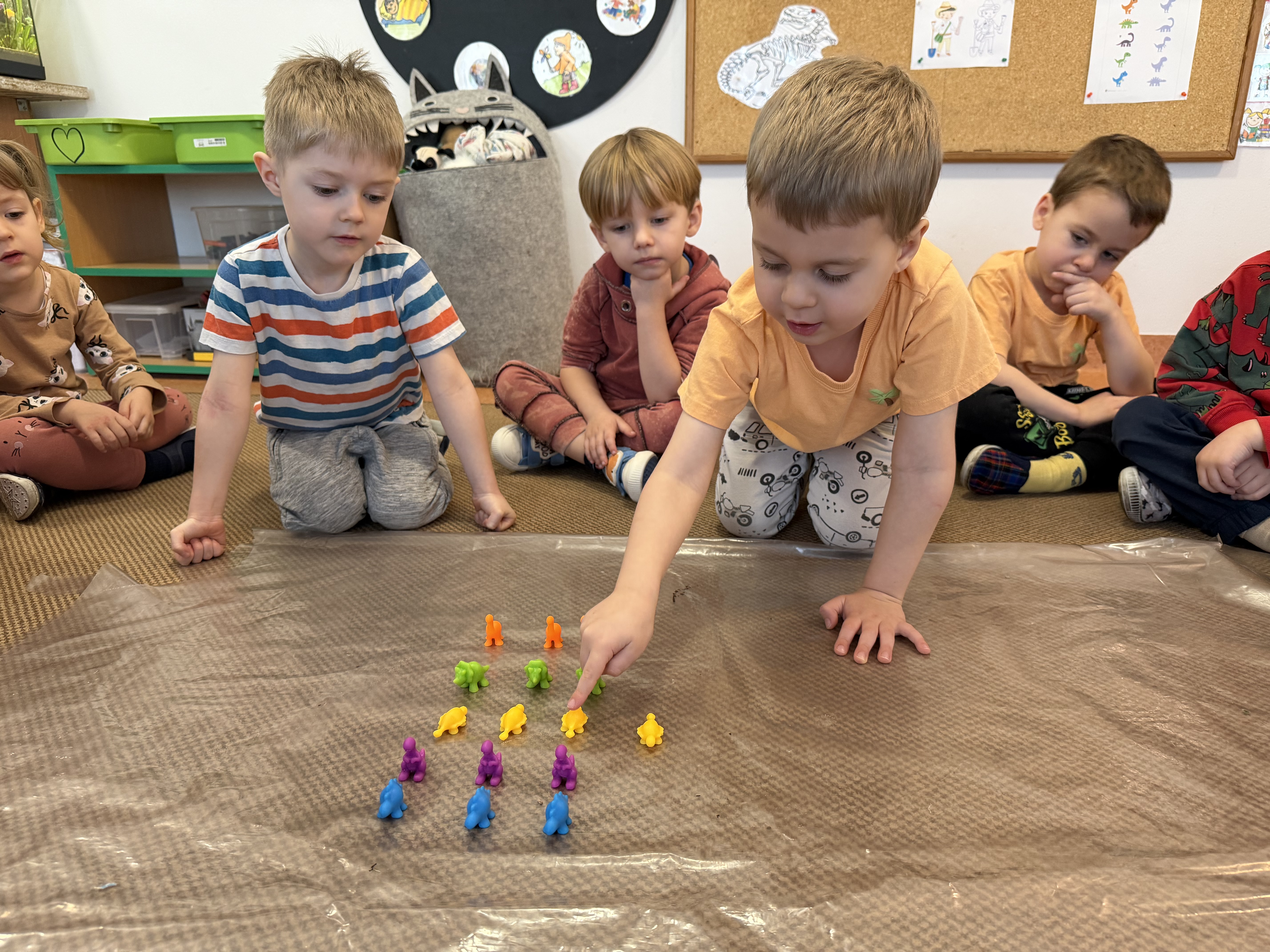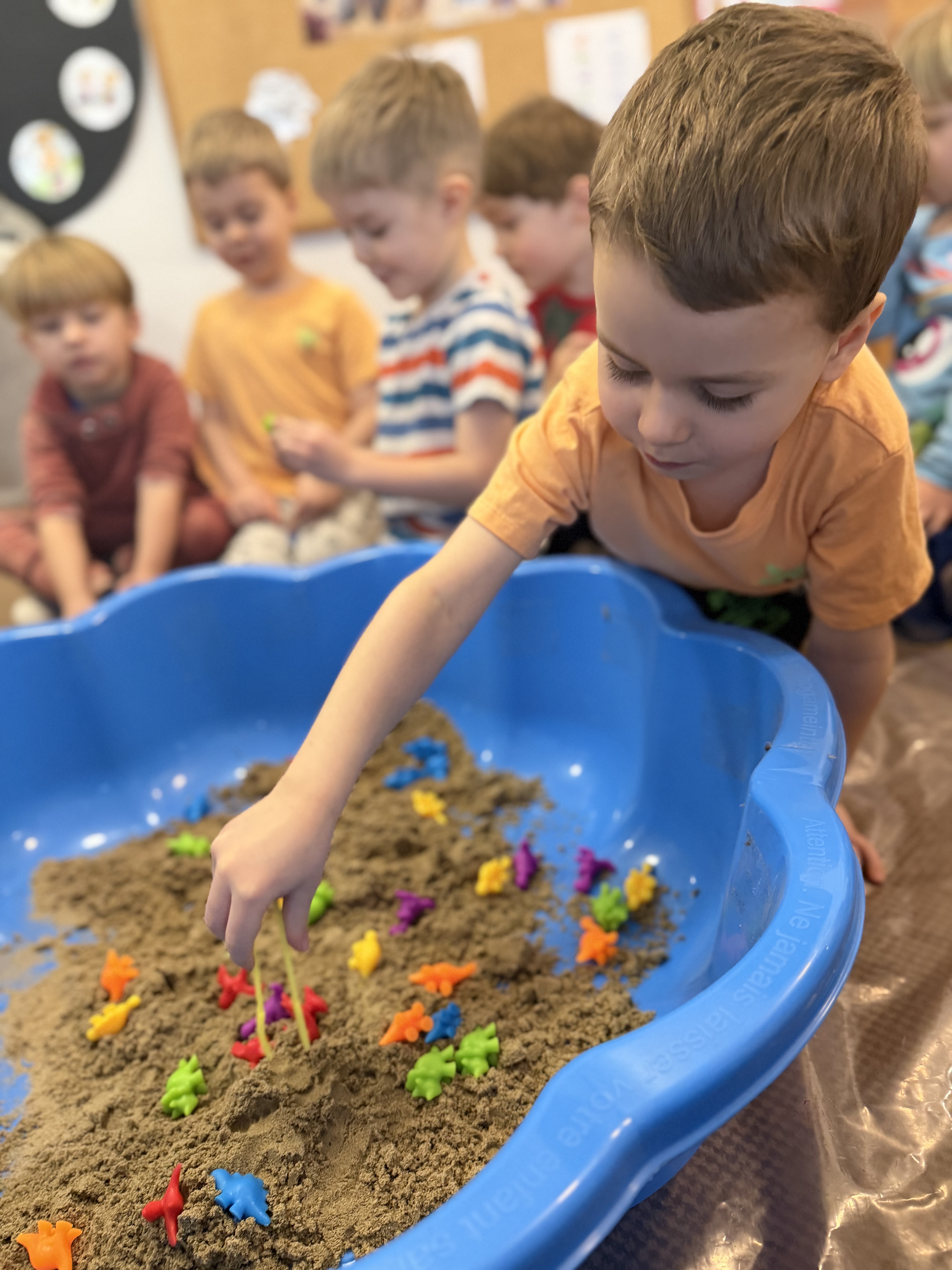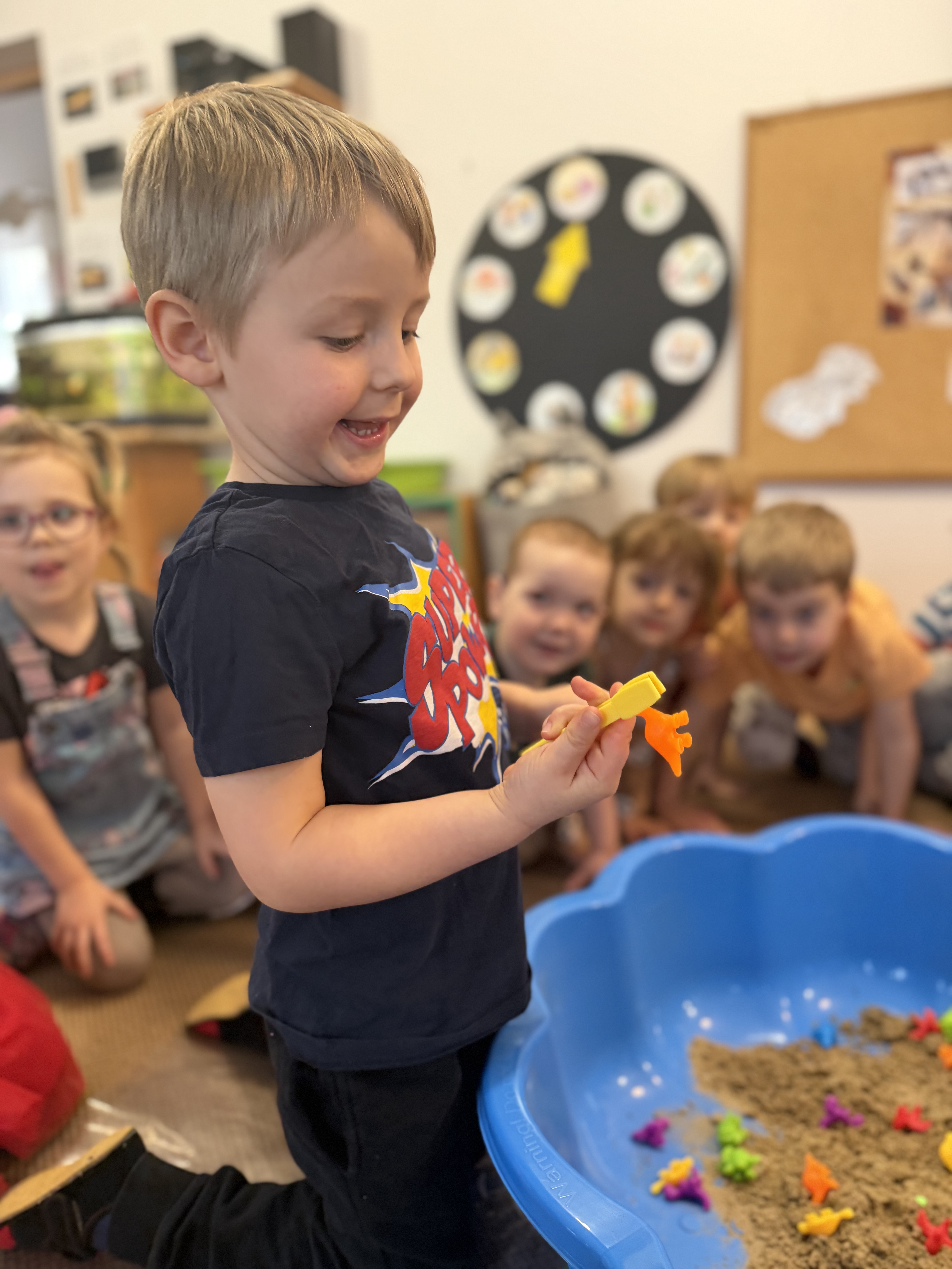 W tym tygodniu poznaliśmy dinozaury, rozmawialiśmy o pracy archeologów i wcieliliśmy się w ich role ćwicząc motorykę małą;).