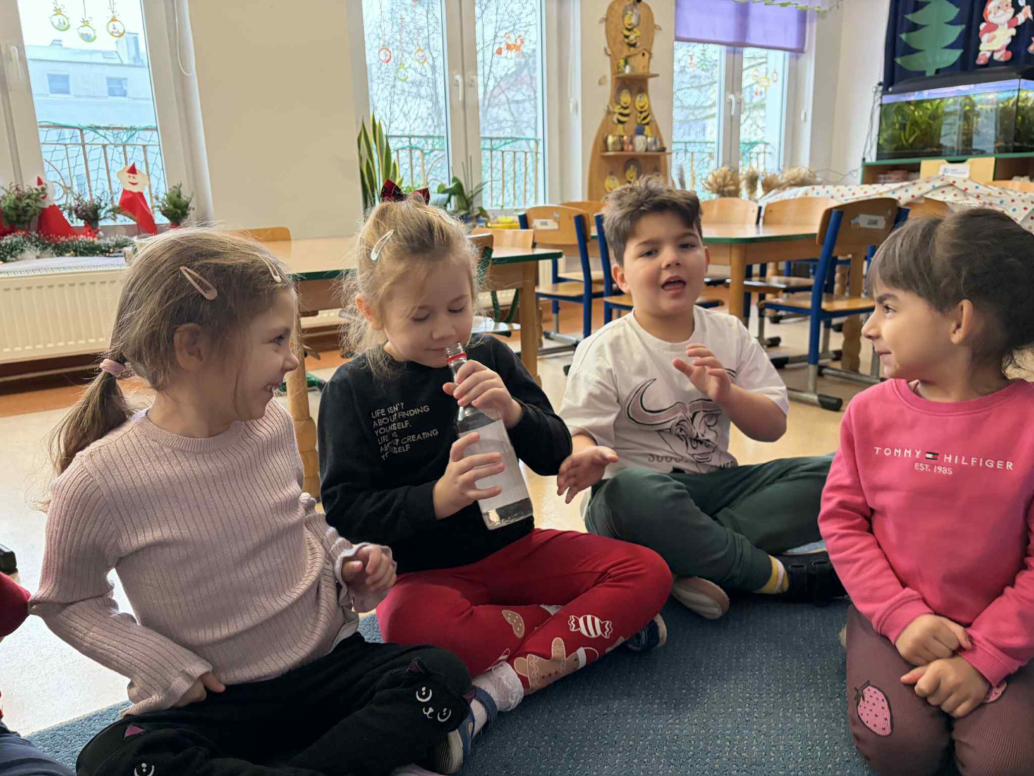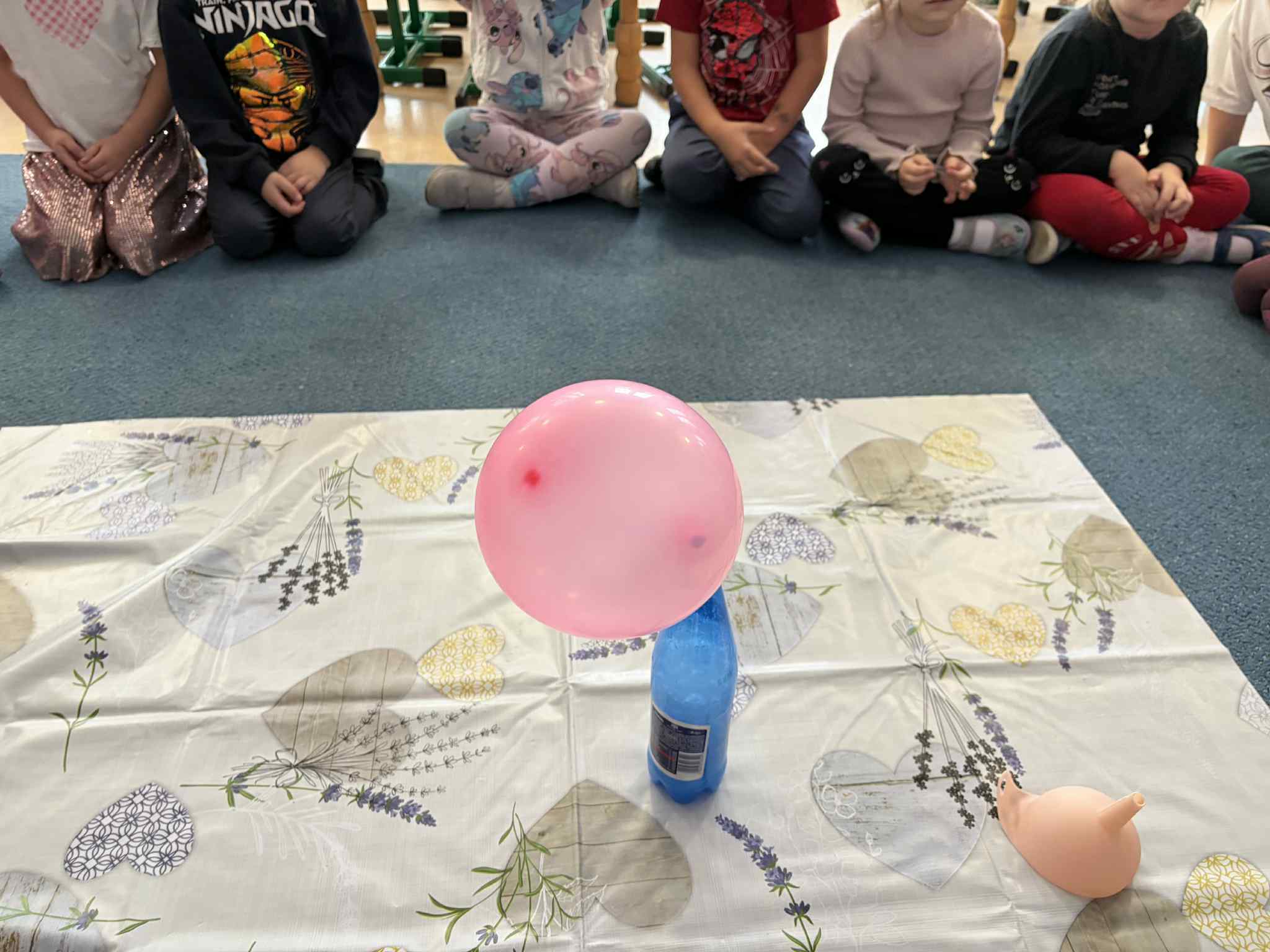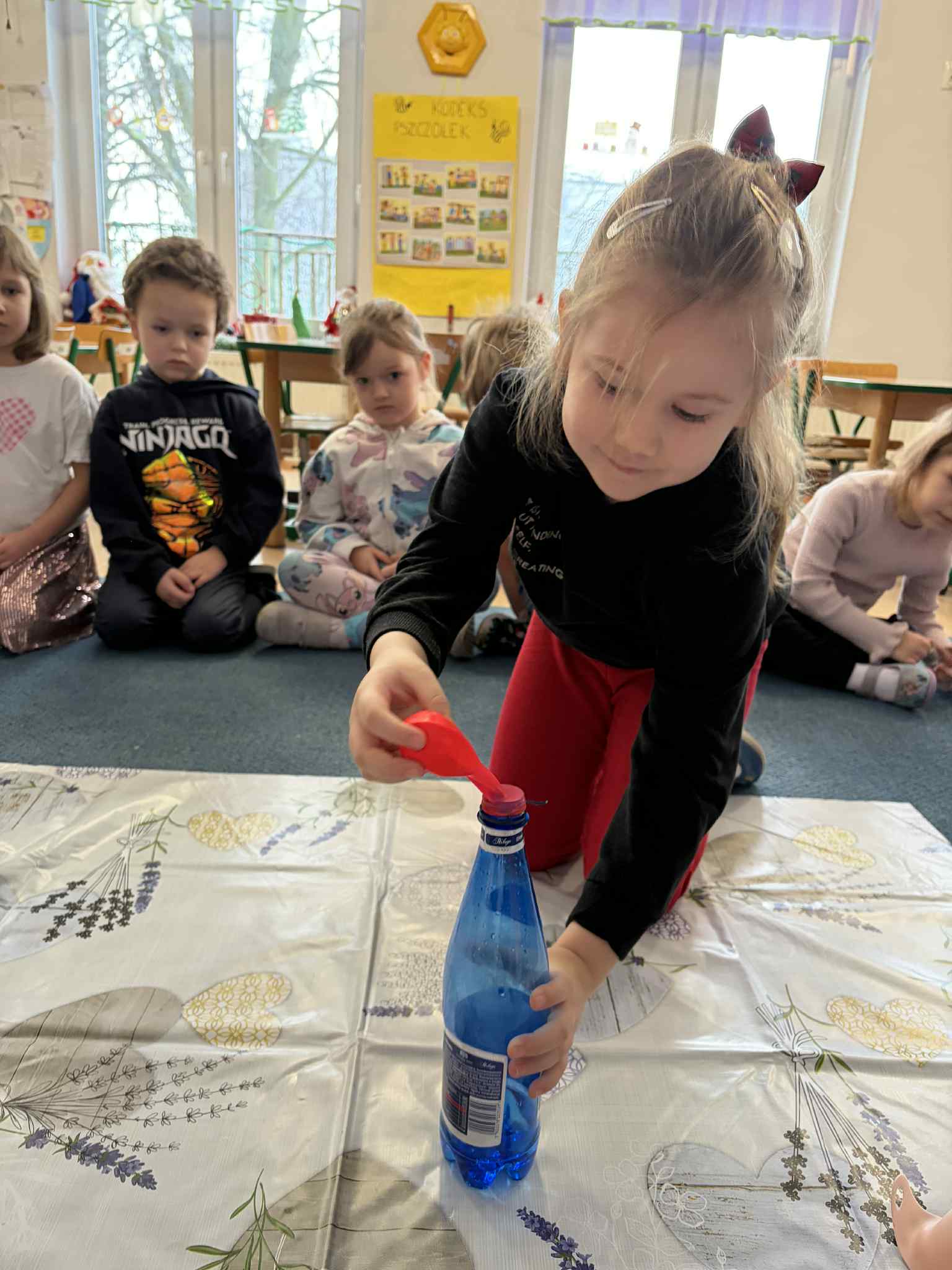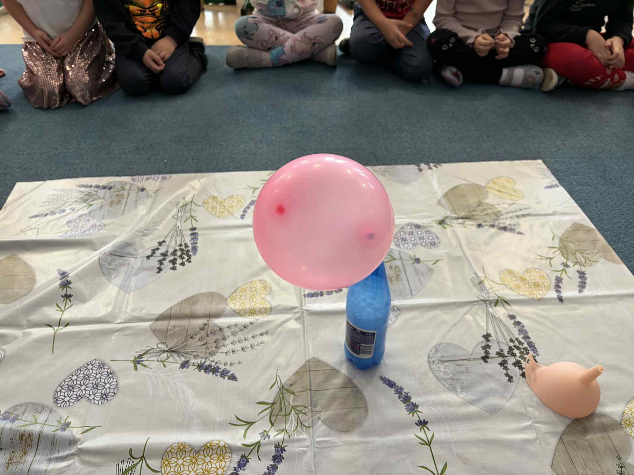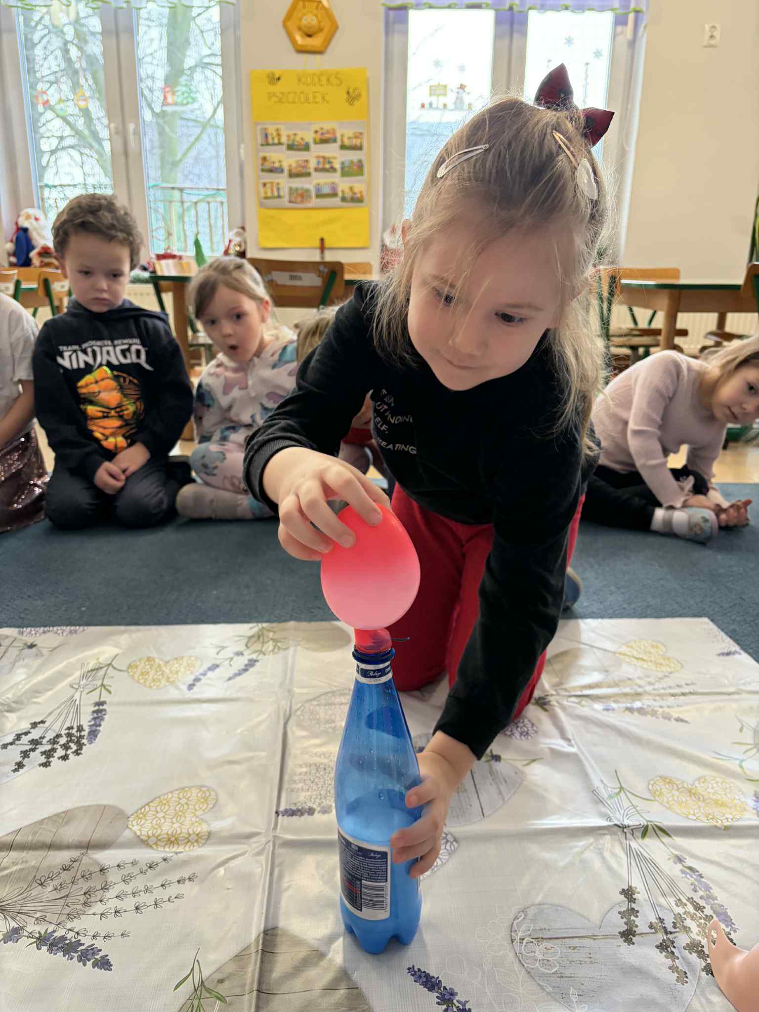 W OSTATNIM CZASIE PRZEPROWADZILIŚMY Z DZIEĆMI WIELE CIEKAWYCH DOŚWIADCZEŃ, KTÓRE POZWOLIŁY IM LEPIEJ POZNAĆ OTACZAJĄCY ŚWIAT. JEDNYM Z NICH BYŁO SPRAWDZANIE CZYSTOŚCI POWIETRZA. DZIECI PRZETARŁY SZYBY WACIKIEM, ABY ZOBACZYĆ, CZY OSADZAJĄ SIĘ NA NICH PYŁKI I ZANIECZYSZCZENIA. OKAZAŁO SIĘ, ŻE WACIK BYŁ BRUDNY, CO POTWIERDZIŁO OBECNOŚĆ ZANIECZYSZCZEŃ W POWIETRZU I NA OKNACH. KOLEJNYM DOŚWIADCZENIEM BYŁA KRYSTALIZACJA SOLI. DZIECI CODZIENNIE OBSERWUJĄ, JAK PODCZAS PAROWANIA WODY SÓL ULEGA KRYSTALIZACJI, TWORZĄC KRYSZTAŁKI NA NITCE ORAZ ŚCIANKACH NACZYNIA. REGULARNIE, CO TYDZIEŃ, SPRAWDZAJĄ, CZY LICZBA KRYSZTAŁKÓW SIĘ ZWIĘKSZA. OSTATNIM DOŚWIADCZENIEM BYŁ EKSPERYMENT Z BALONEM. PRZY UŻYCIU BUTELKI, SODY OCZYSZCZONEJ, OCTU I BALONU DZIECI ZAOBSERWOWAŁY REAKCJĘ CHEMICZNĄ, W WYNIKU KTÓREJ BALON SAM SIĘ NADMUCHAŁ. DOŚWIADCZENIA SPRAWIŁY DZIECIOM WIELE RADOŚCI I BYŁY DOSKONAŁĄ OKAZJĄ DO NAUKI PRZEZ OBSERWACJĘ I ZABAWĘ.