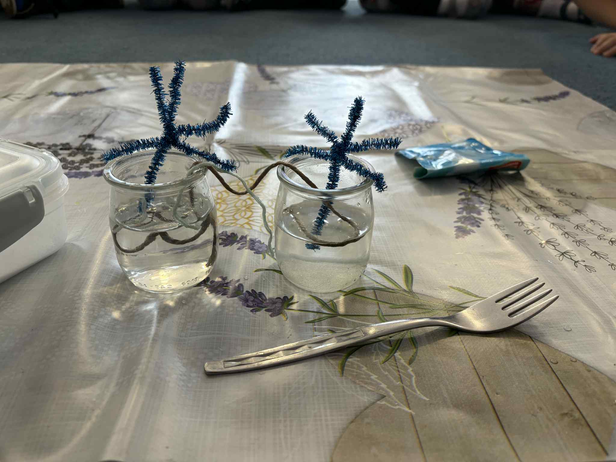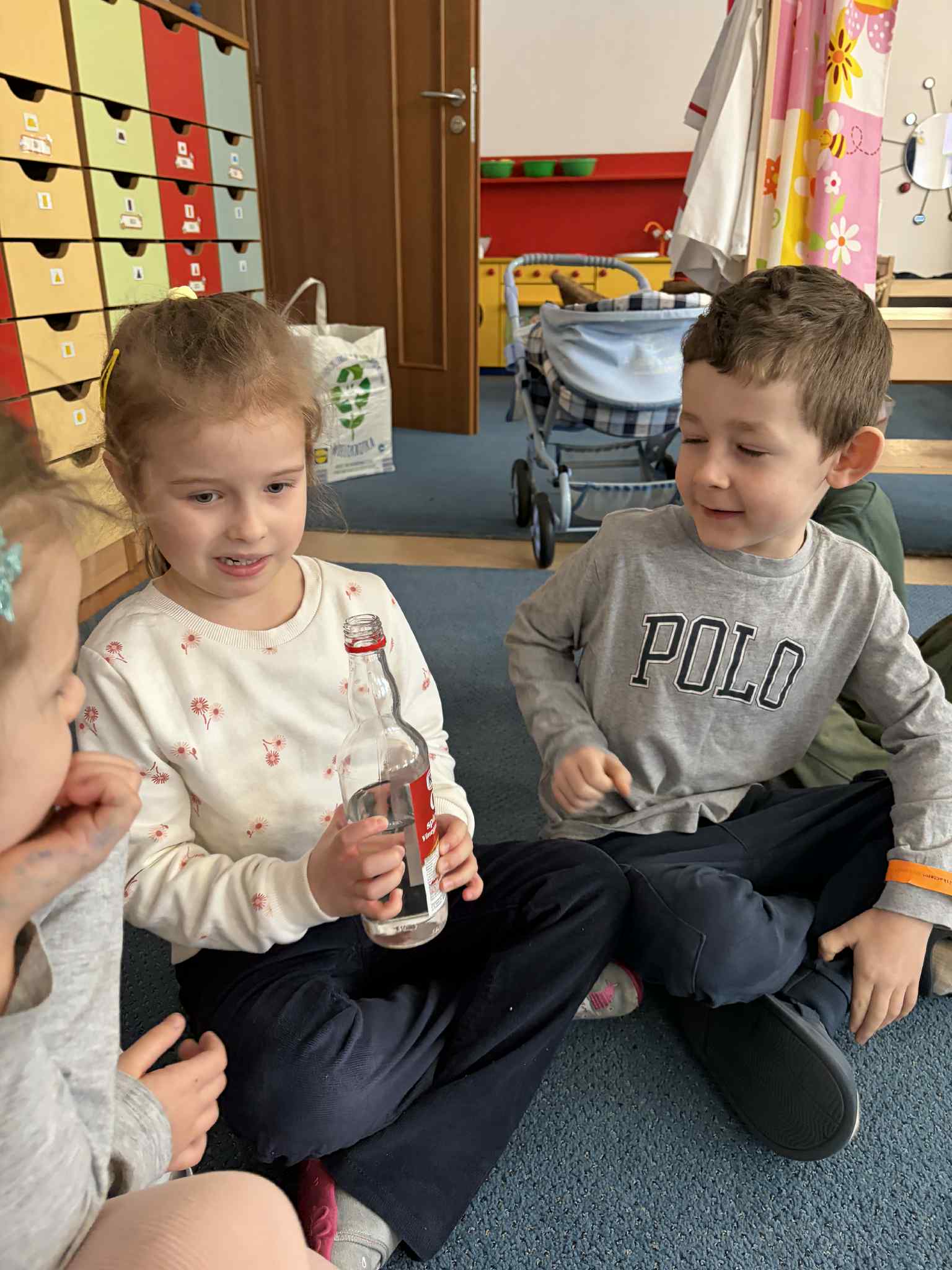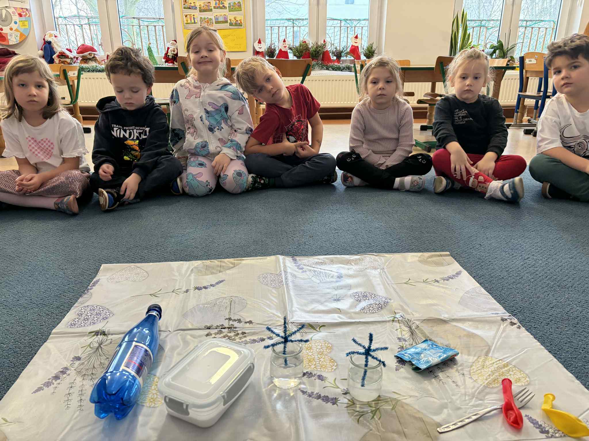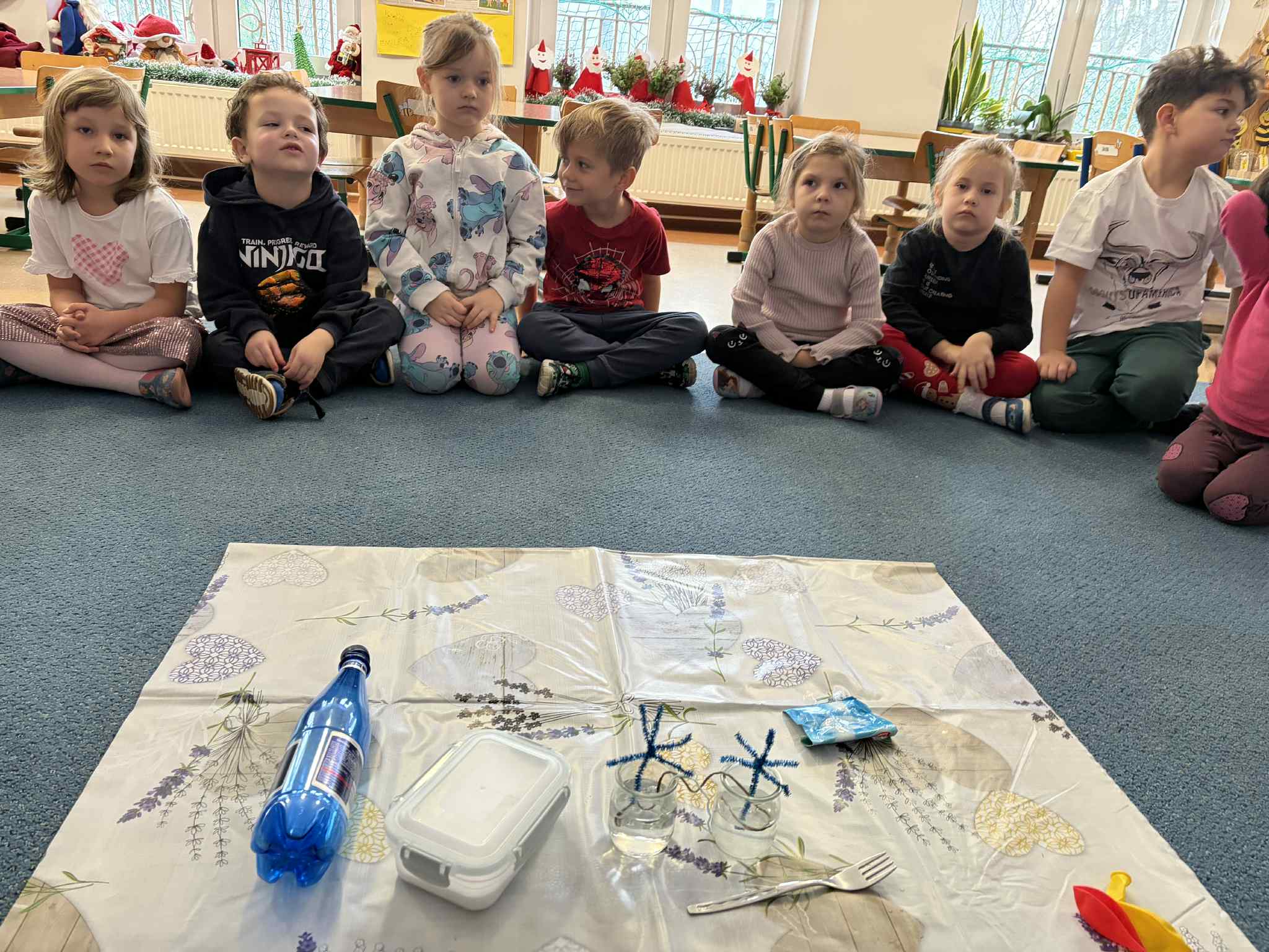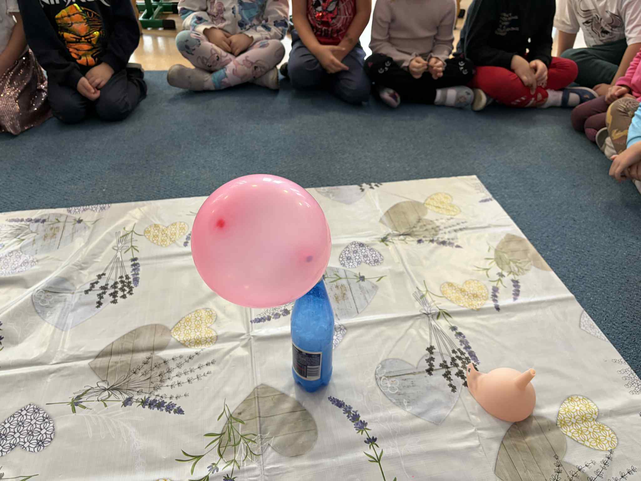 W OSTATNIM CZASIE PRZEPROWADZILIŚMY Z DZIEĆMI WIELE CIEKAWYCH DOŚWIADCZEŃ, KTÓRE POZWOLIŁY IM LEPIEJ POZNAĆ OTACZAJĄCY ŚWIAT. JEDNYM Z NICH BYŁO SPRAWDZANIE CZYSTOŚCI POWIETRZA. DZIECI PRZETARŁY SZYBY WACIKIEM, ABY ZOBACZYĆ, CZY OSADZAJĄ SIĘ NA NICH PYŁKI I ZANIECZYSZCZENIA. OKAZAŁO SIĘ, ŻE WACIK BYŁ BRUDNY, CO POTWIERDZIŁO OBECNOŚĆ ZANIECZYSZCZEŃ W POWIETRZU I NA OKNACH. KOLEJNYM DOŚWIADCZENIEM BYŁA KRYSTALIZACJA SOLI. DZIECI CODZIENNIE OBSERWUJĄ, JAK PODCZAS PAROWANIA WODY SÓL ULEGA KRYSTALIZACJI, TWORZĄC KRYSZTAŁKI NA NITCE ORAZ ŚCIANKACH NACZYNIA. REGULARNIE, CO TYDZIEŃ, SPRAWDZAJĄ, CZY LICZBA KRYSZTAŁKÓW SIĘ ZWIĘKSZA. OSTATNIM DOŚWIADCZENIEM BYŁ EKSPERYMENT Z BALONEM. PRZY UŻYCIU BUTELKI, SODY OCZYSZCZONEJ, OCTU I BALONU DZIECI ZAOBSERWOWAŁY REAKCJĘ CHEMICZNĄ, W WYNIKU KTÓREJ BALON SAM SIĘ NADMUCHAŁ. DOŚWIADCZENIA SPRAWIŁY DZIECIOM WIELE RADOŚCI I BYŁY DOSKONAŁĄ OKAZJĄ DO NAUKI PRZEZ OBSERWACJĘ I ZABAWĘ.