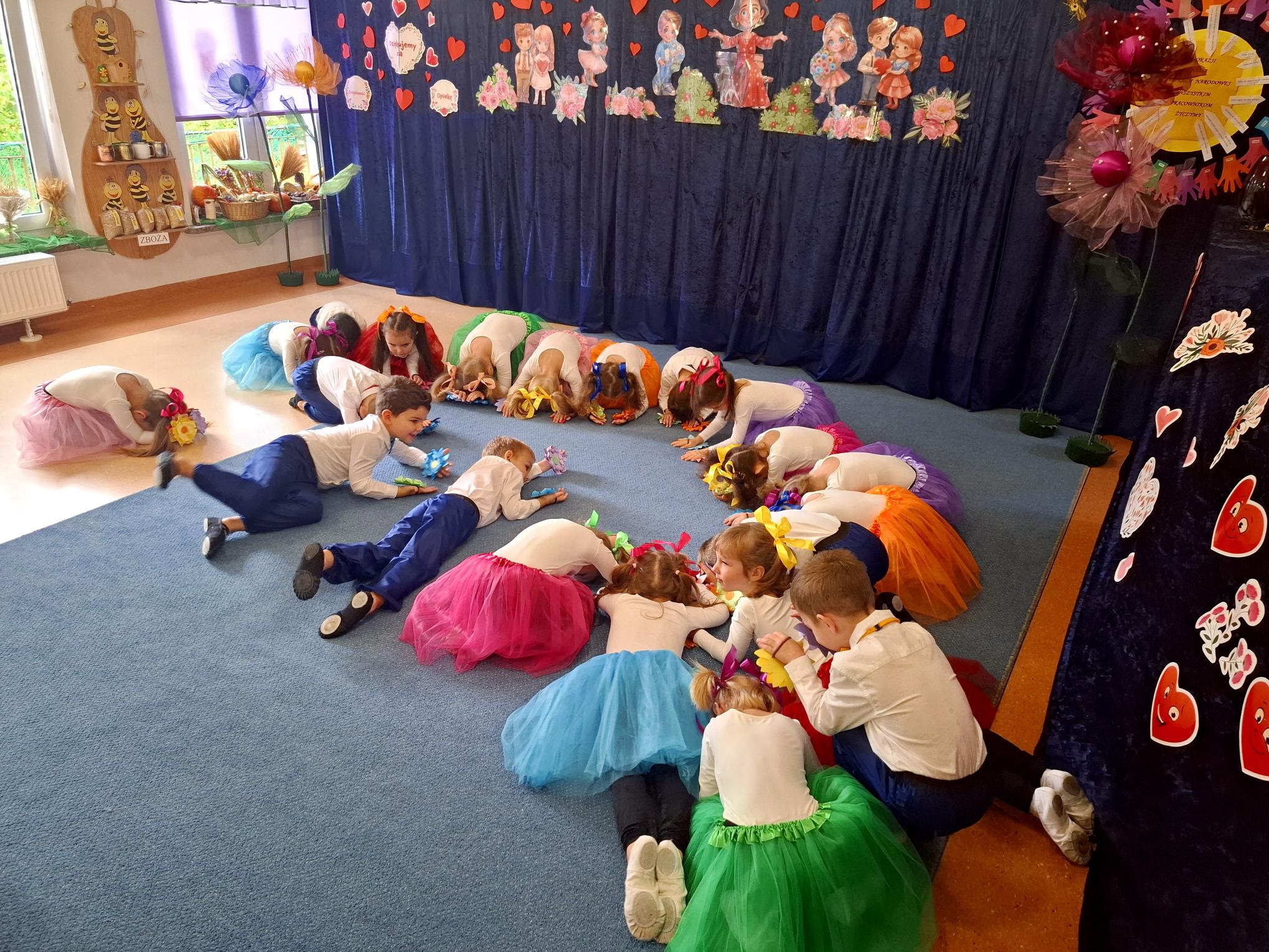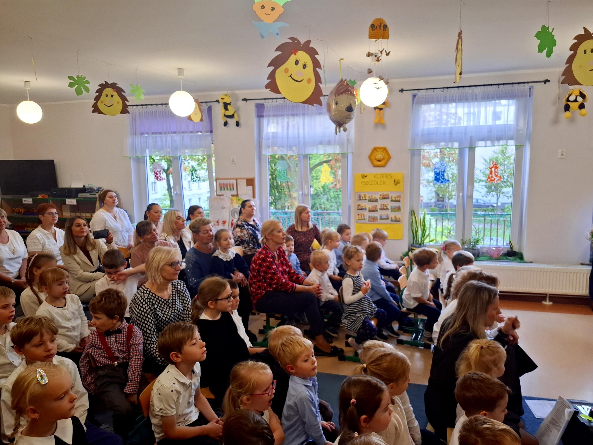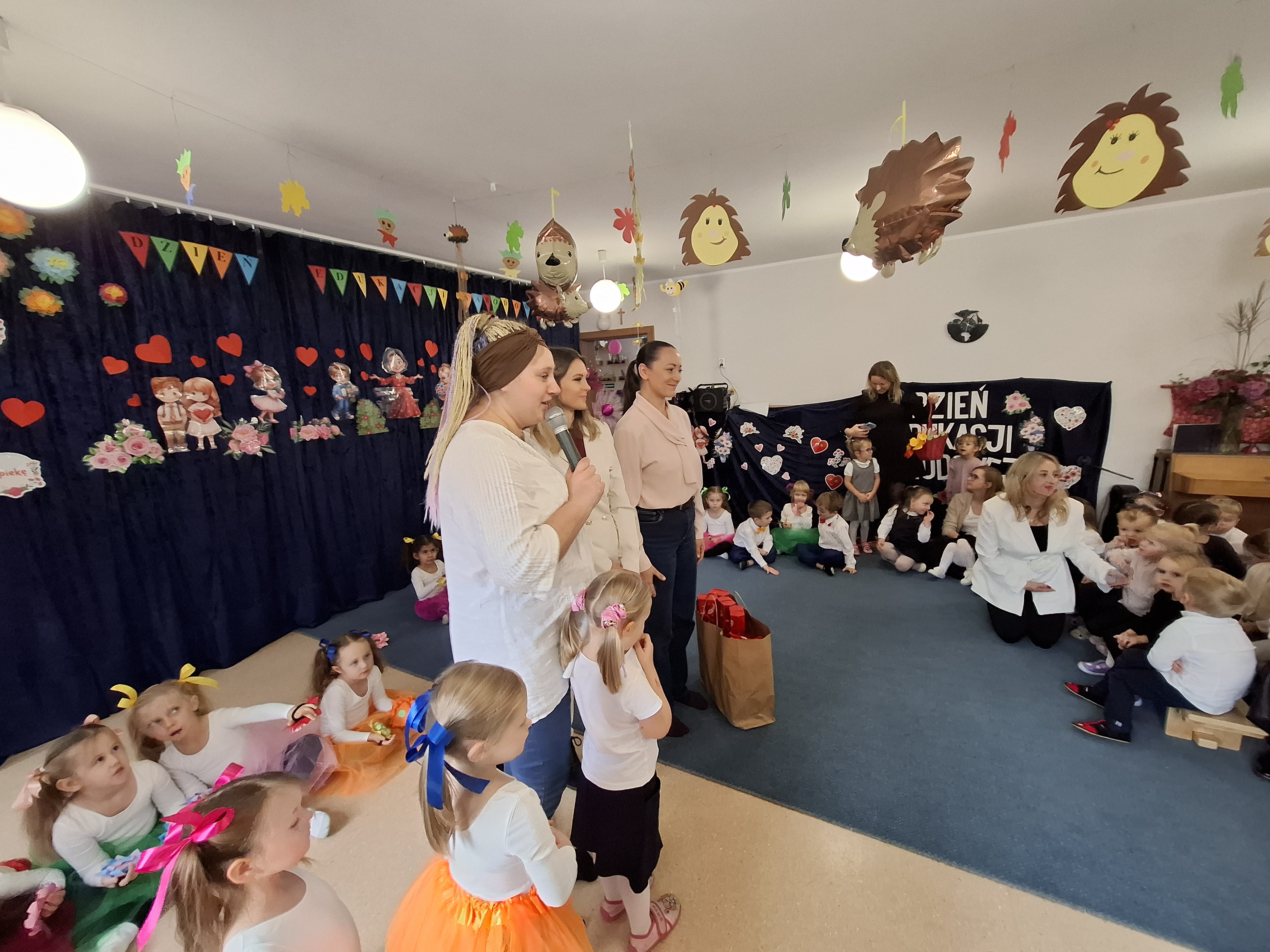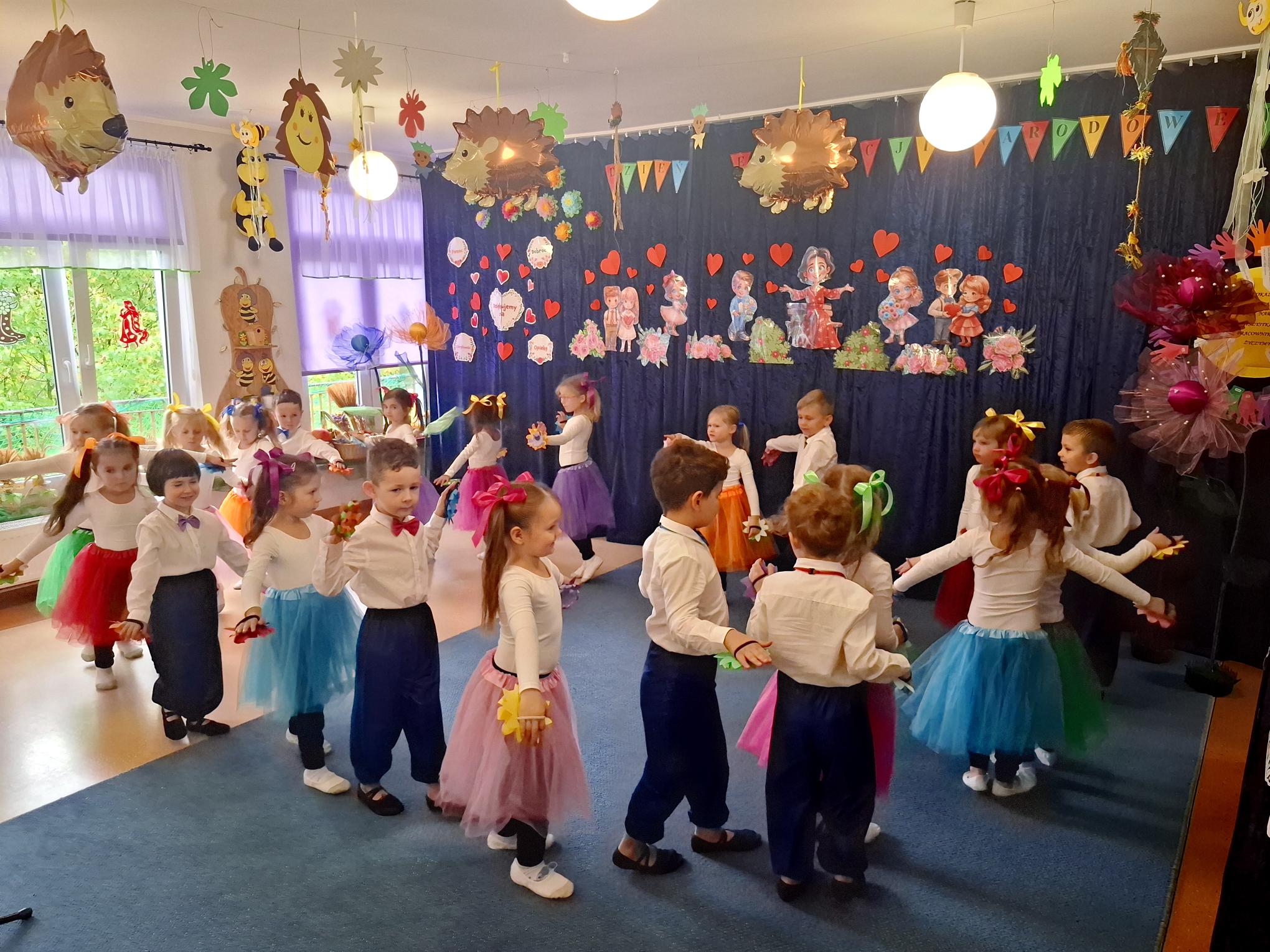 Dzisiaj uroczyście świętowaliśmy w naszym Przedszkolu Dzień Edukacji Narodowej. Wszystkie dzieci i pracownicy zostali zaproszeni do grupy "Pszczółek". Dzieci zaprezentowały nam przepiękny program artystyczny, w którym nie zabrakło elementów humoru, tańca, śpiewu i liryki. Każdy z pracowników został opisany i przedstawiony w wierszu lub piosence, co wywołało wiele uśmiechów i radości. W świętowaniu towarzyszyli nam przedstawiciele rady rodziców oraz goście, którzy związani są lub byli z naszym Przedszkolem. Panie z rady rodziców w imieniu wszystkich rodziców ze wzruszeniem złożyły pracownikom serdeczne życzenia. Dodatkowym elementem świątewania tego dnia była wystawa prac plastycznych "Kadra naszego Przedszkola w oczach dzieci". Mieliśmy okazję podziwiać talent dzieci i rodziców, ale przede wszytkim zobaczyć, co szczególnego widzą w nas dzieci. Bardzo dziękujemy Rodzicom i dzieciom za dostarczenie tak pięknych przeżyć w tym wyjątkowym dla nas dniu.