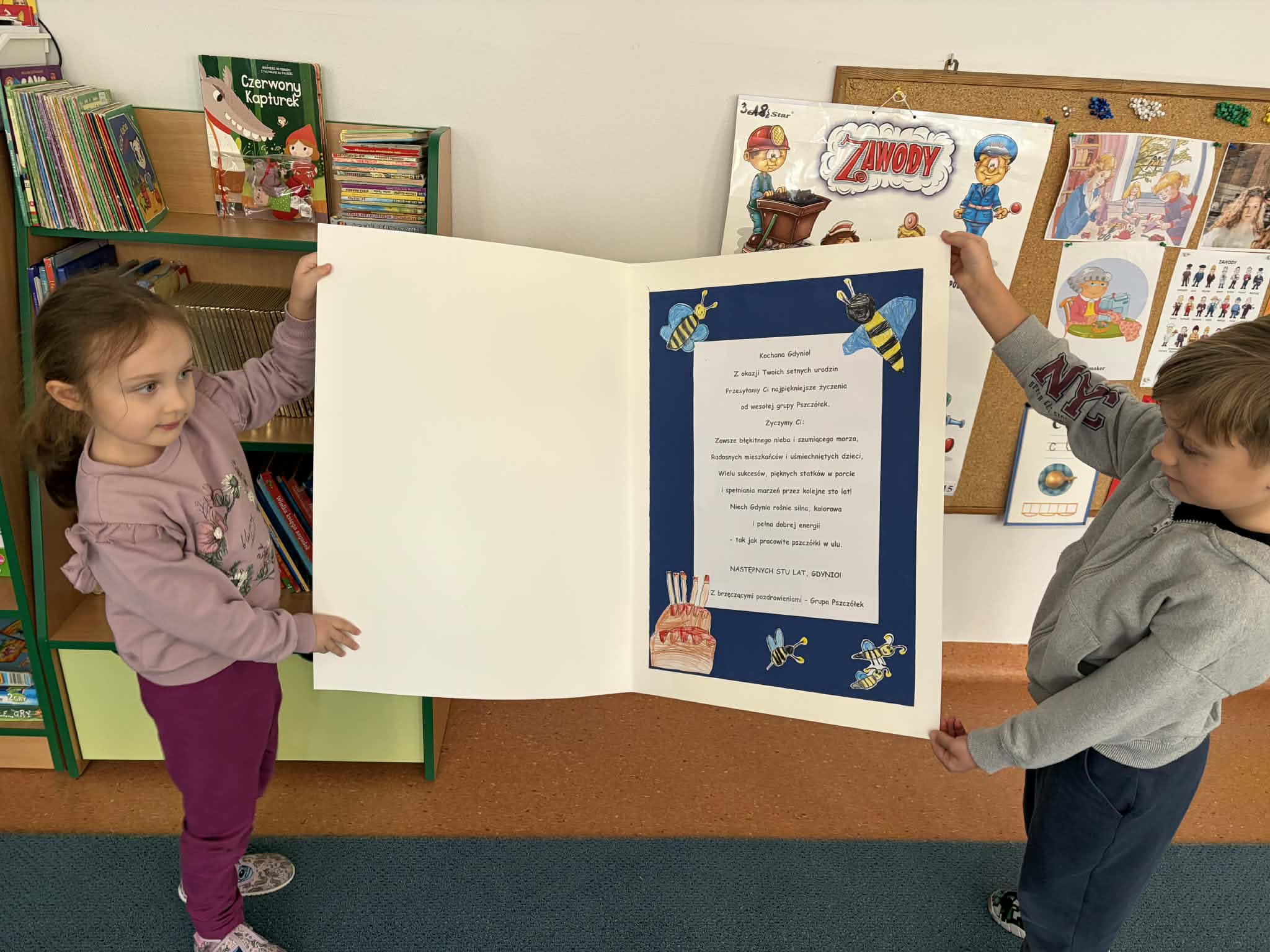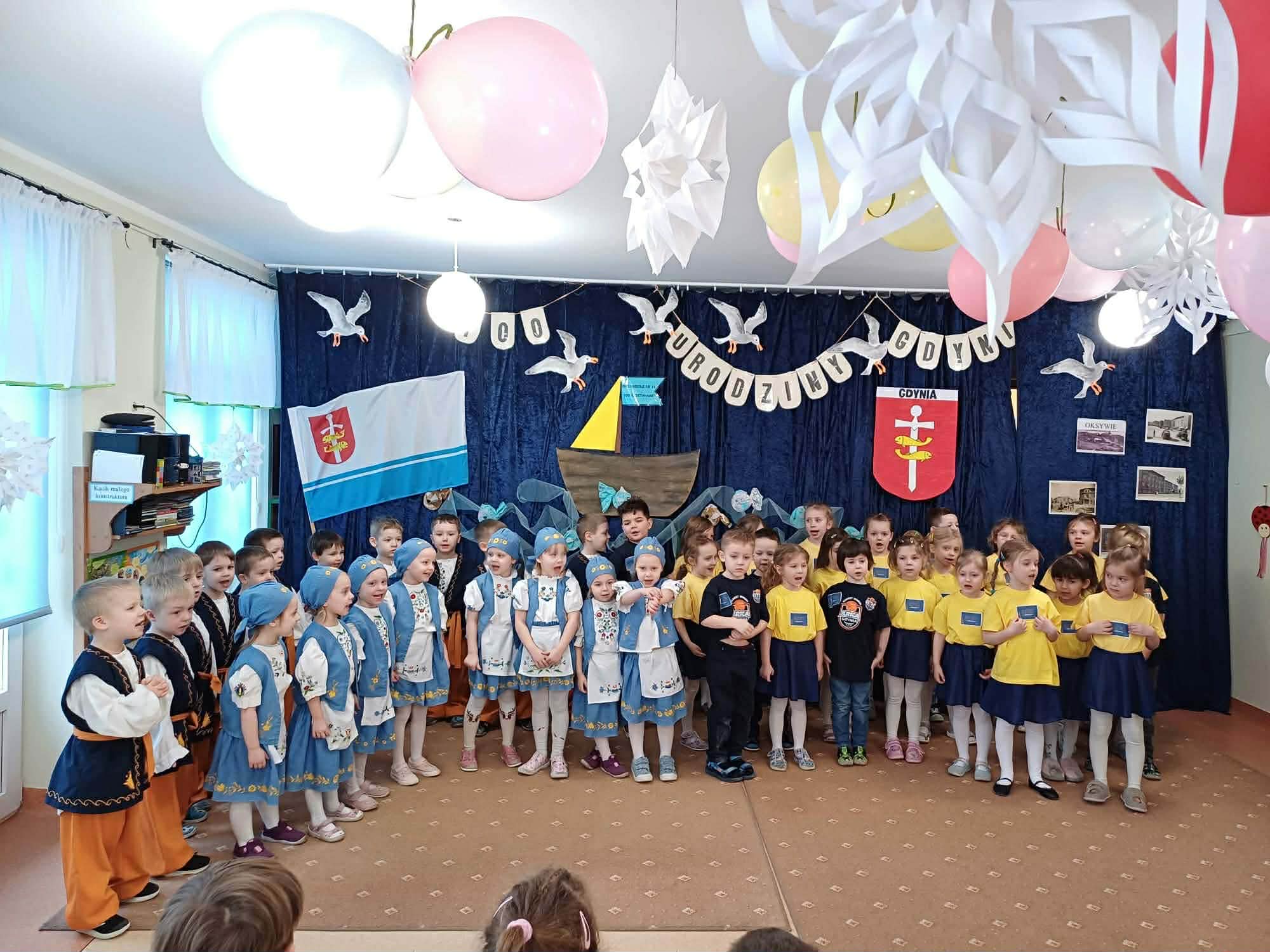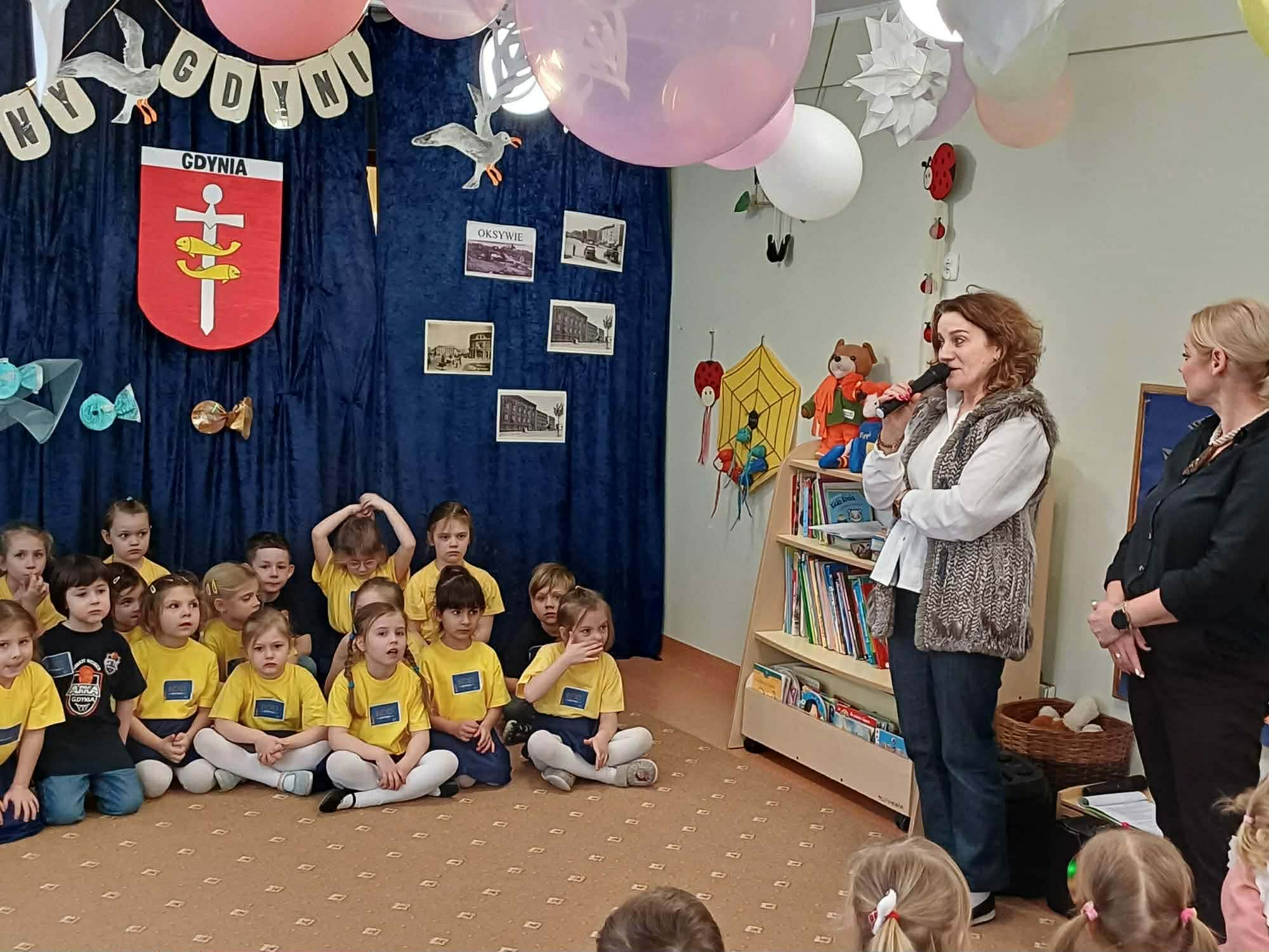 Z OKAZJI 100 ROCZNICY NASZEGO MIASTA – GDYNI – SPOTKALIŚMY SIĘ W GRUPIE BIEDRONEK, ABY WSPÓLNIE ŚWIĘTOWAĆ. PODCZAS SPOTKANIA SPRAWDZALIŚMY SWOJĄ WIEDZĘ O GDYNI, ODPOWIADAJĄC PYTANIA PRZEDSTAWIONE NA SLAJDACH. PSZCZÓŁKI WYKONAŁY RÓWNIEŻ KARTKĘ Z ŻYCZENIAMI DLA NASZEGO MIASTA.
