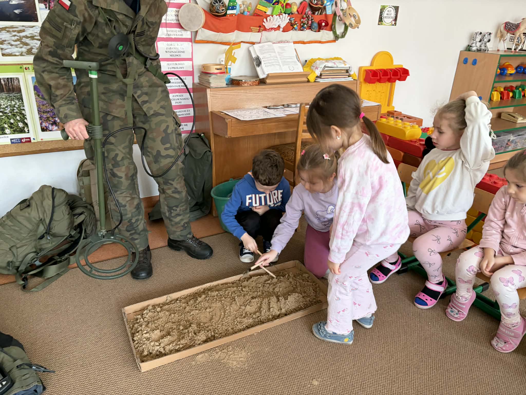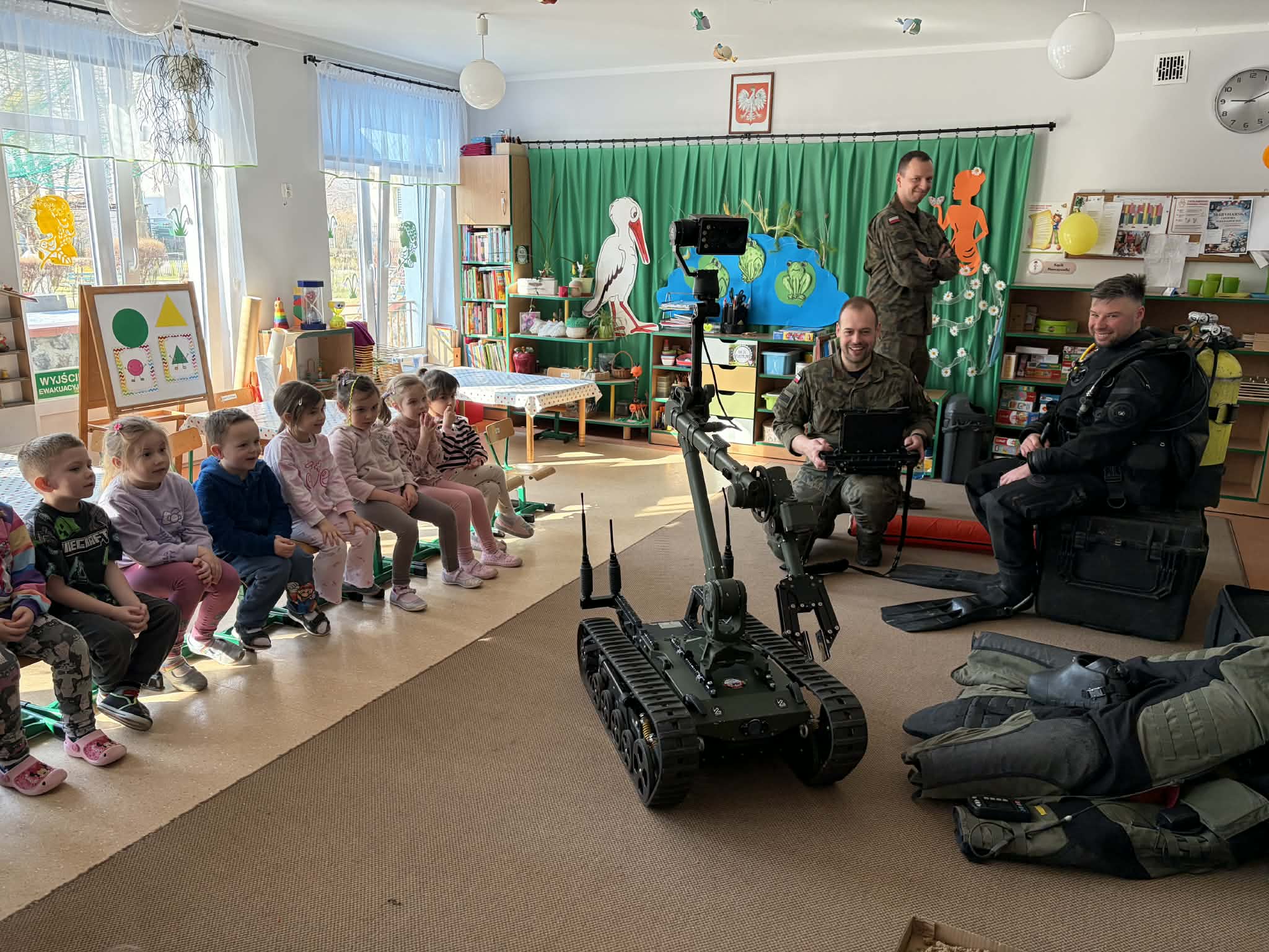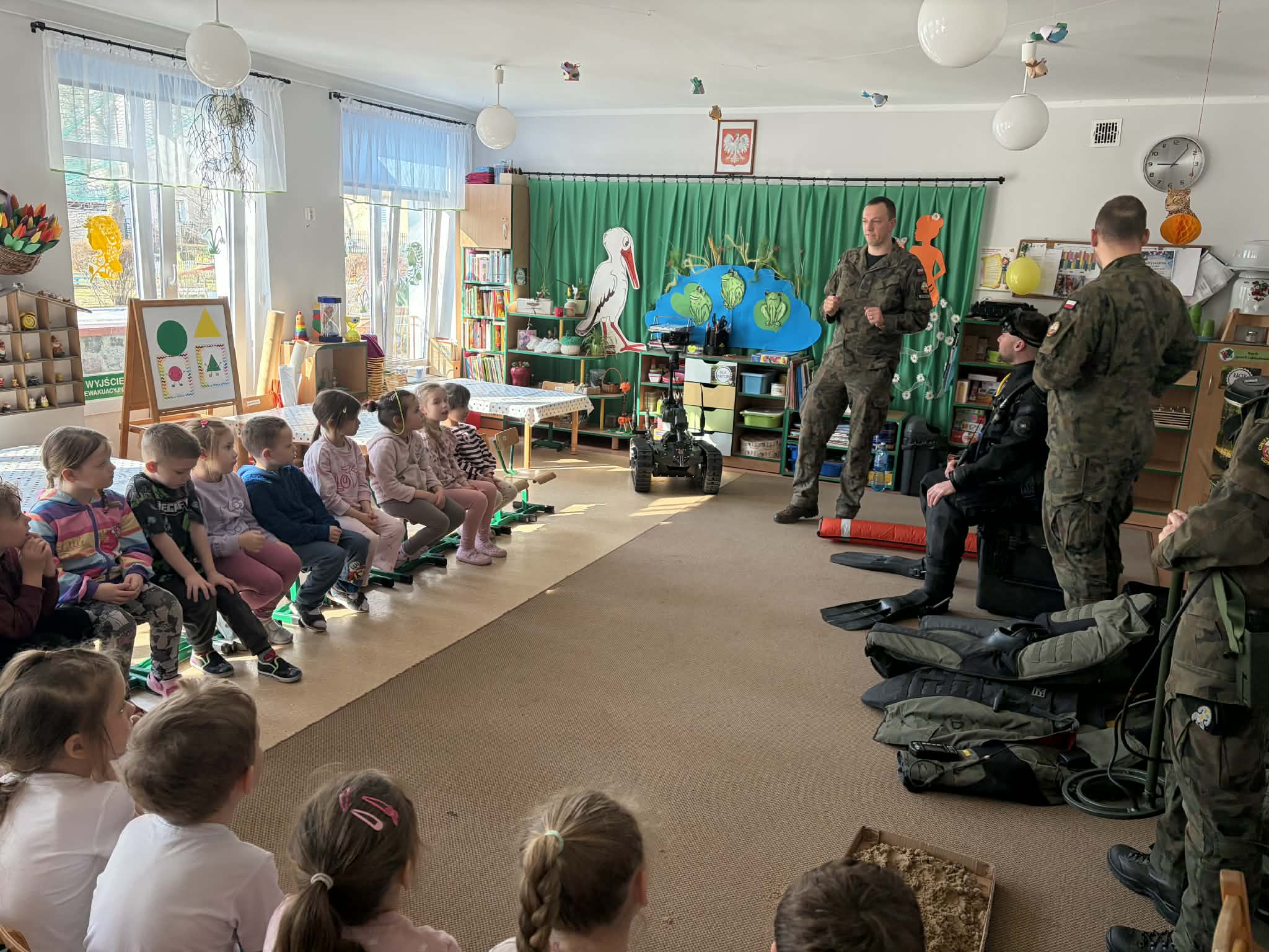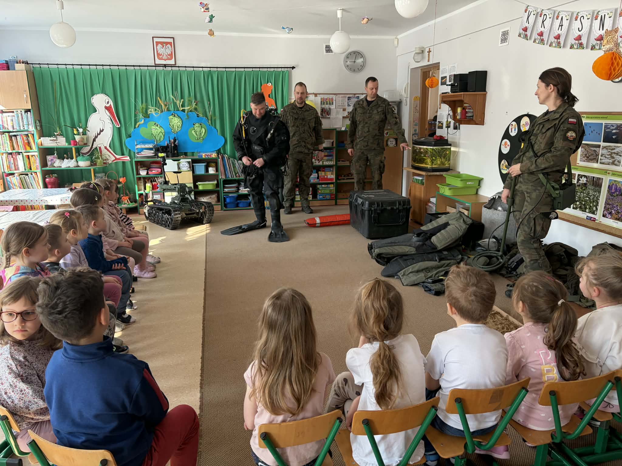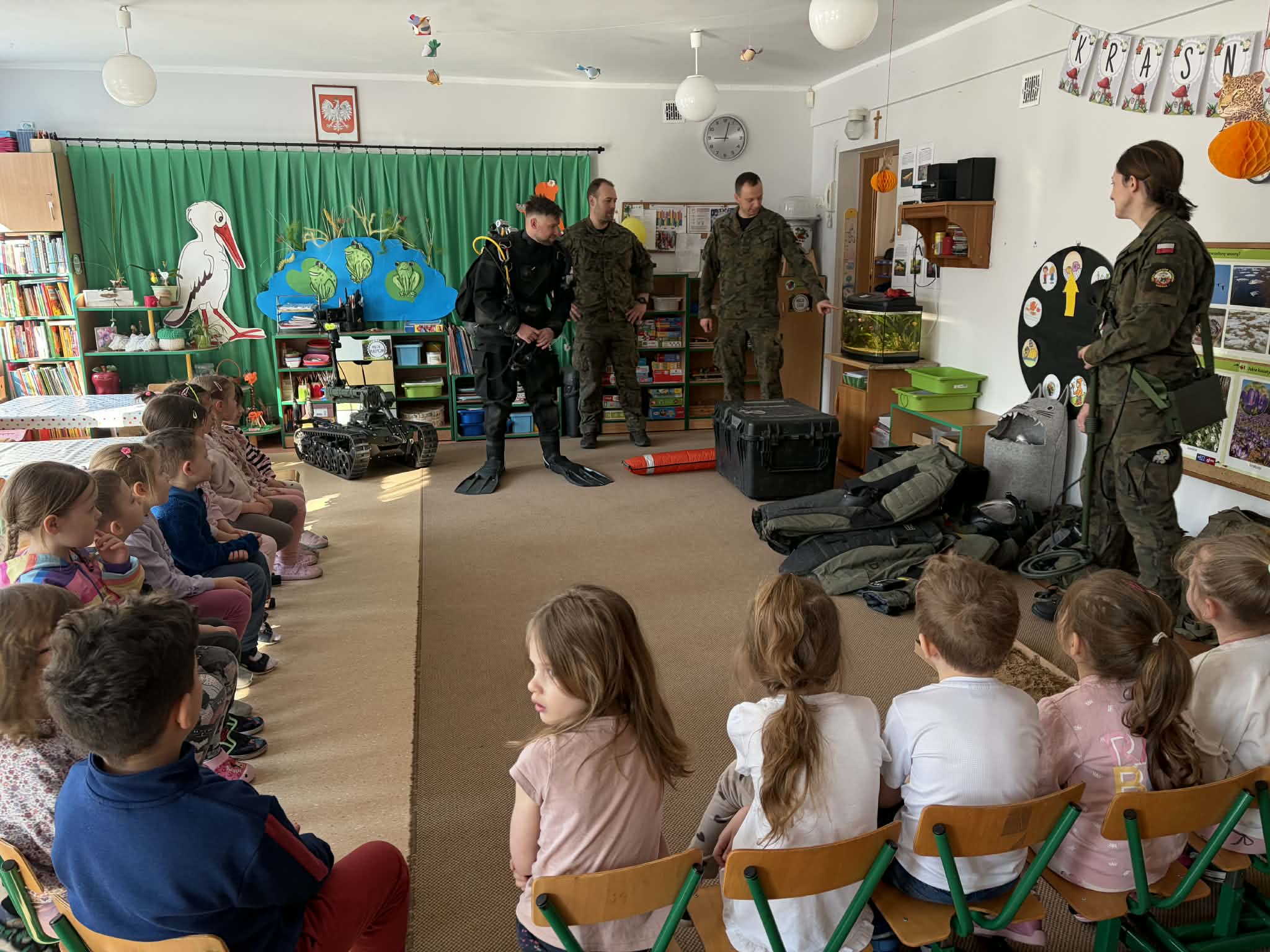 NASZE PSZCZÓŁKI MIAŁY OKAZJĘ POZNAĆ ZAWÓD NURKÓW MINERÓW. GOŚCIE OPOWIEDZIELI O SWOJEJ PRACY, ZAPREZENTOWALI SPECJALISTYCZNY SPRZĘT ORAZ PRZYBLIŻYLI TEMAT NIEWYBUCHÓW. DZIECI MOGŁY TAKŻE ZOBACZYĆ, GRANAT ĆWICZEBNY ORAZ ROBOTA, KTÓRY POMAGA IM W CODZIENNYCH DZIAŁANIACH. NA PAMIĄTKĘ SPOTKANIA KAŻDE DZIECKO OTRZYMAŁO NAKLEJKI I KOLOROWANKI. DZIĘKUJEMY ZA CIEKAWĄ WIZYTĘ I PRZYBLIŻENIE TEGO TRUDNEGO, ALE BARDZO WAŻNEGO ZAWODU.