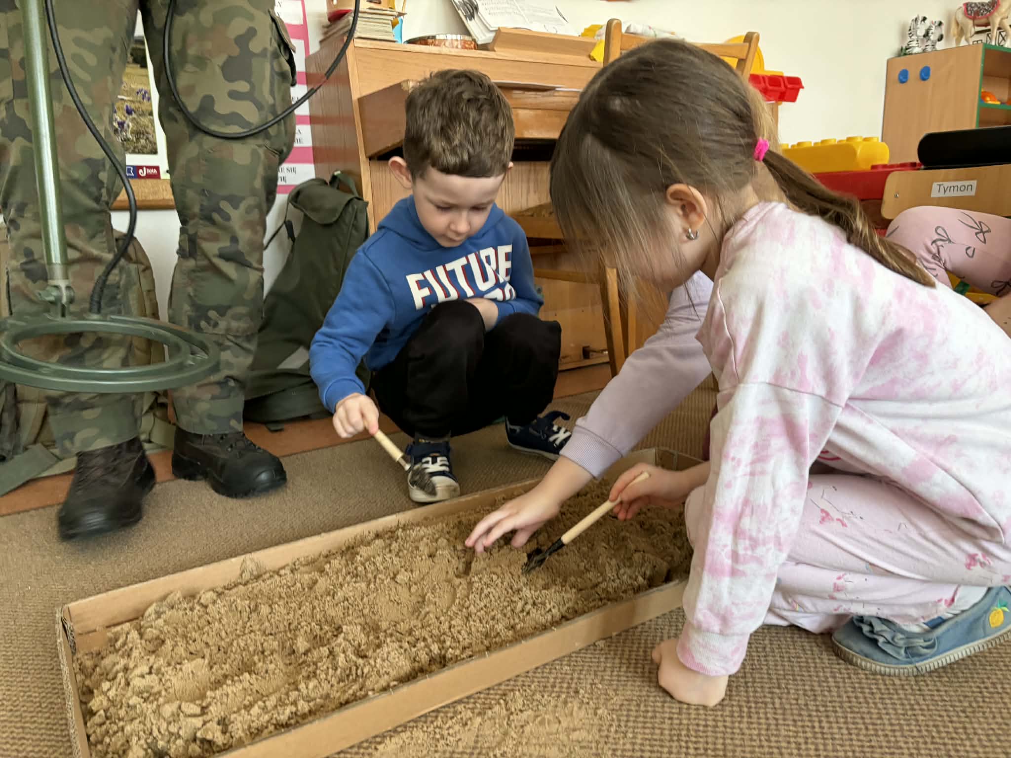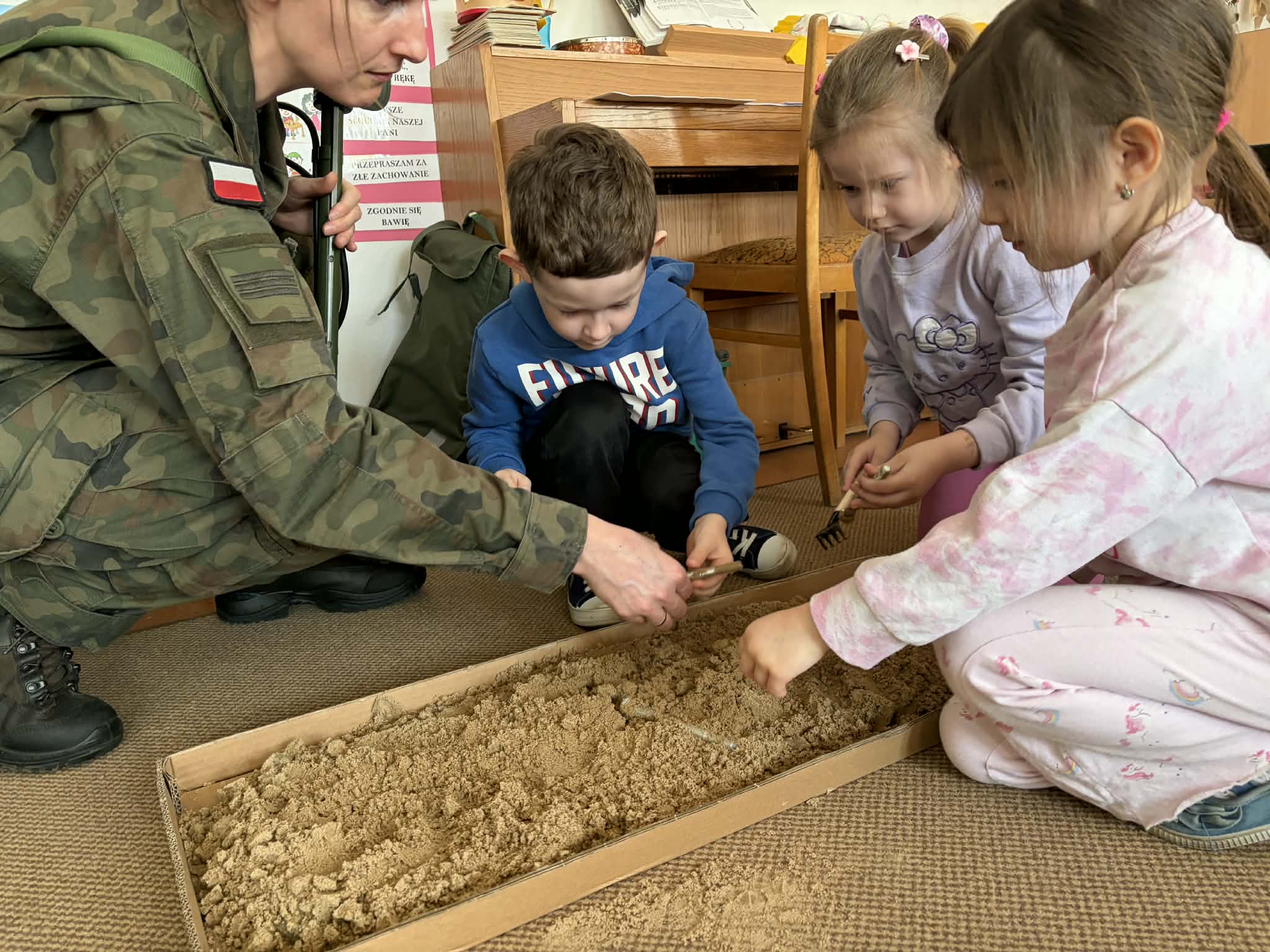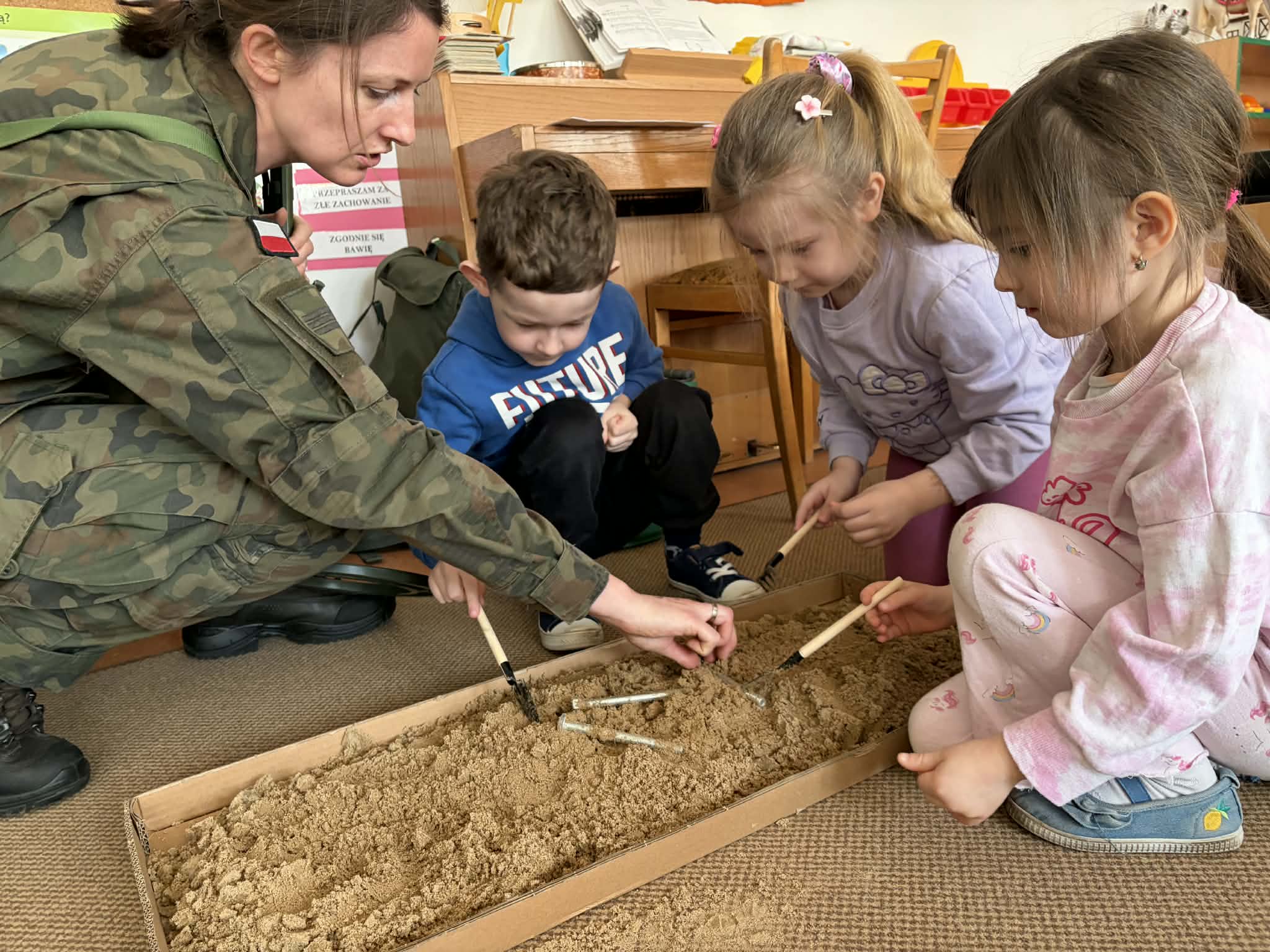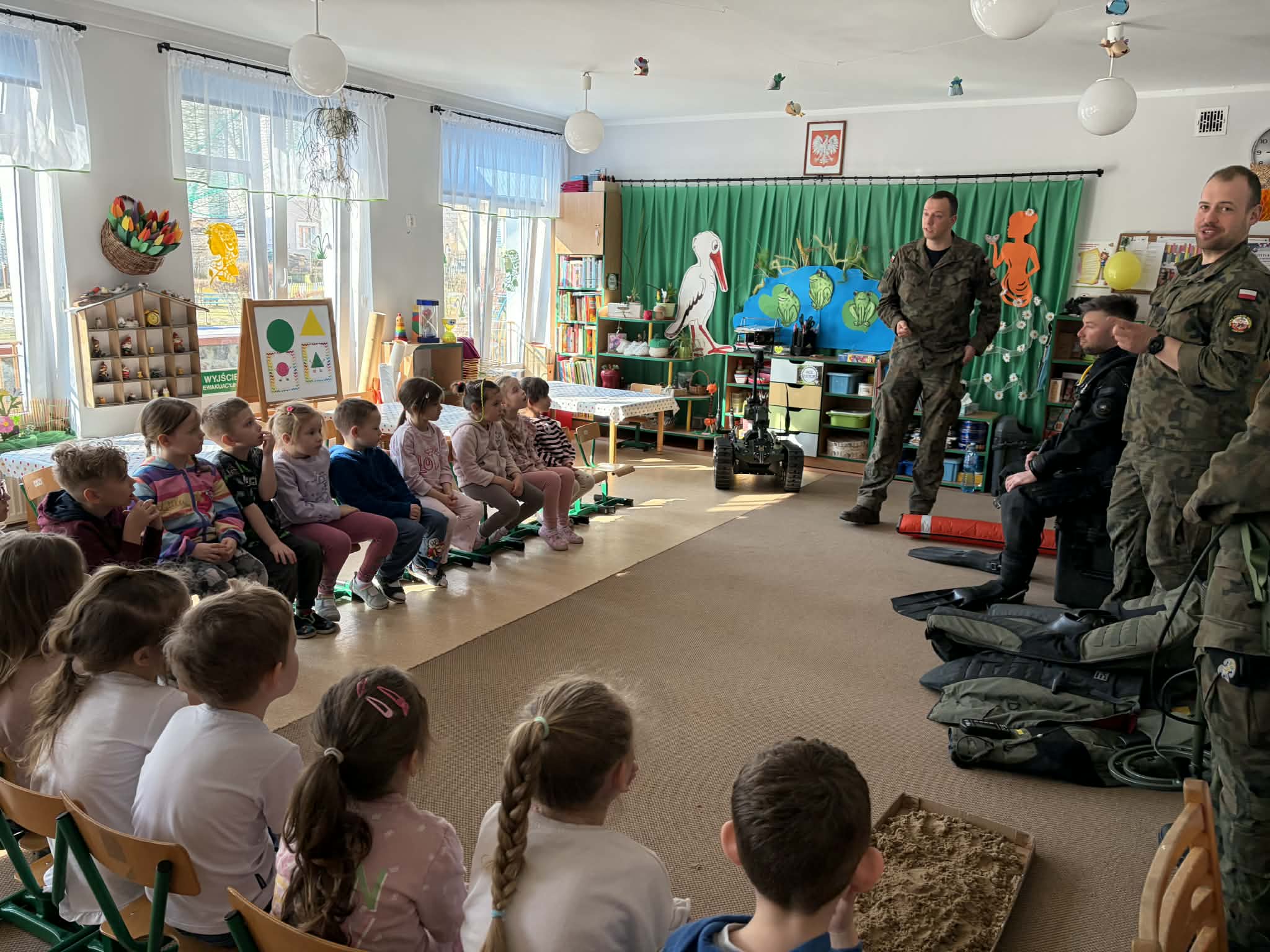 NASZE PSZCZÓŁKI MIAŁY OKAZJĘ POZNAĆ ZAWÓD NURKÓW MINERÓW. GOŚCIE OPOWIEDZIELI O SWOJEJ PRACY, ZAPREZENTOWALI SPECJALISTYCZNY SPRZĘT ORAZ PRZYBLIŻYLI TEMAT NIEWYBUCHÓW. DZIECI MOGŁY TAKŻE ZOBACZYĆ, GRANAT ĆWICZEBNY ORAZ ROBOTA, KTÓRY POMAGA IM W CODZIENNYCH DZIAŁANIACH. NA PAMIĄTKĘ SPOTKANIA KAŻDE DZIECKO OTRZYMAŁO NAKLEJKI I KOLOROWANKI. DZIĘKUJEMY ZA CIEKAWĄ WIZYTĘ I PRZYBLIŻENIE TEGO TRUDNEGO, ALE BARDZO WAŻNEGO ZAWODU.
