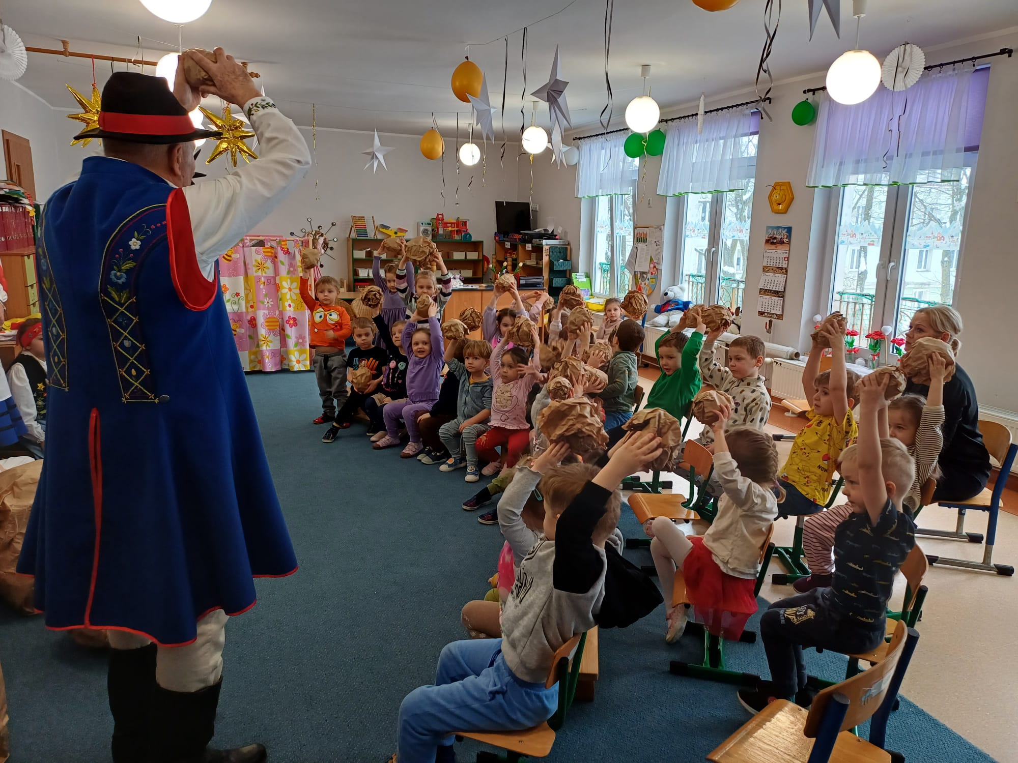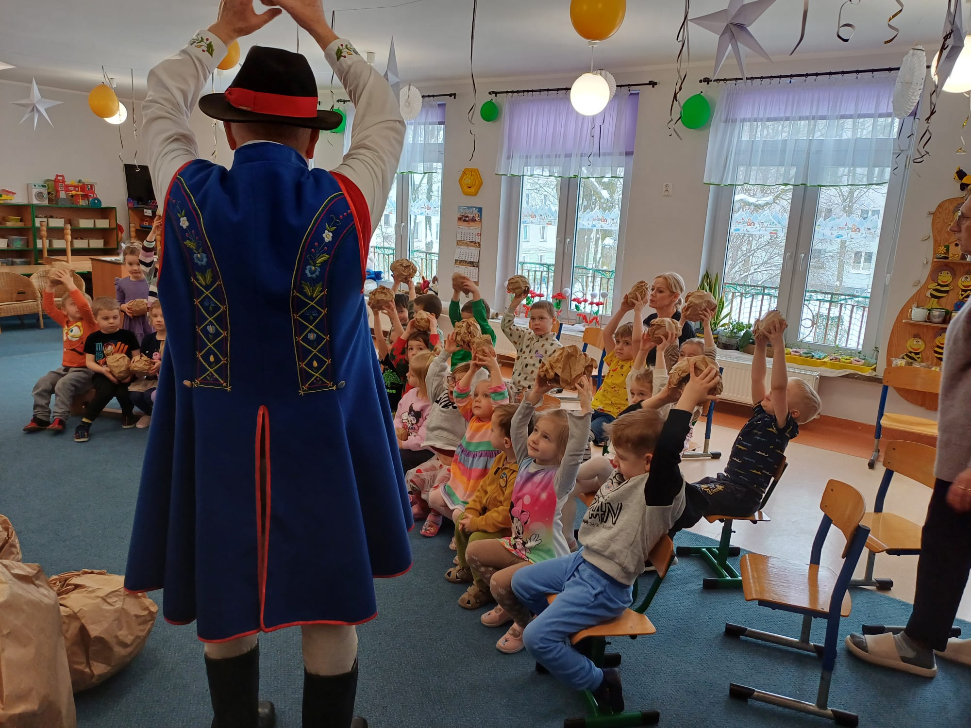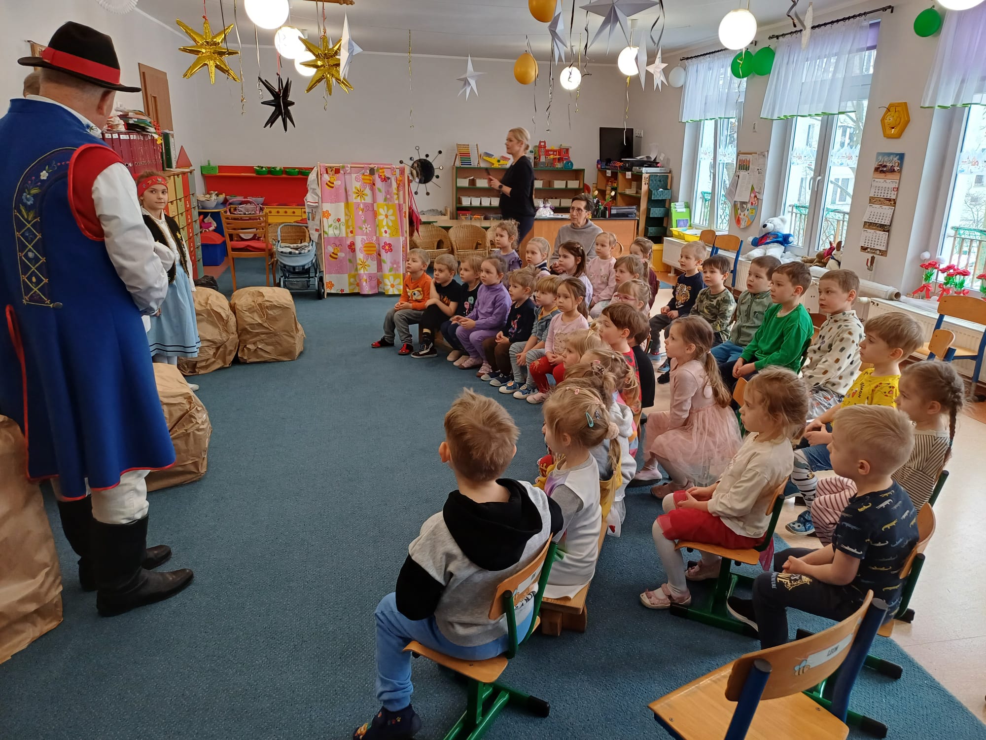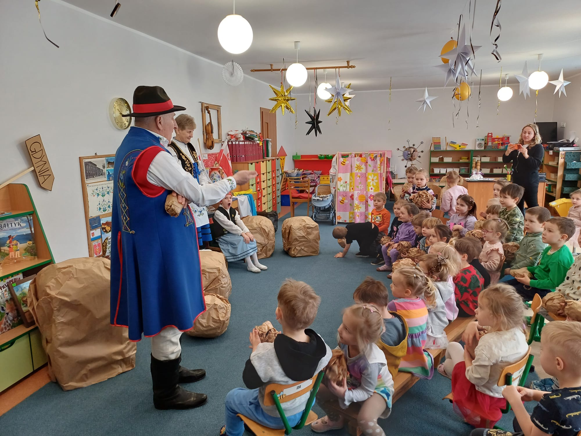 Zrzeszenie, do którego należą, to organizacja kulturalno-społeczna działająca na rzecz promocji kultury, języka i tradycji kaszubskiej w Gdyni. Nasi goście zaprezentowali dzieciom jedną z bajek gdyńskich, pt. Oksywie. Dzieci miały okazję posłuchać historii stolemów: Adama i Ewy, pobawić się ulubionymi zabawkami stolemów czyli głazami, które wrzucały do morza, rozpoznawały flagi w tym flagę Kaszub, miały okazję podziwiać piękne stroje kaszubskie dla dorosłych i dzieci. To był wyjątkowy, piękny i bogaty w wiedzę czas spotkania z kulturą Kaszub.
