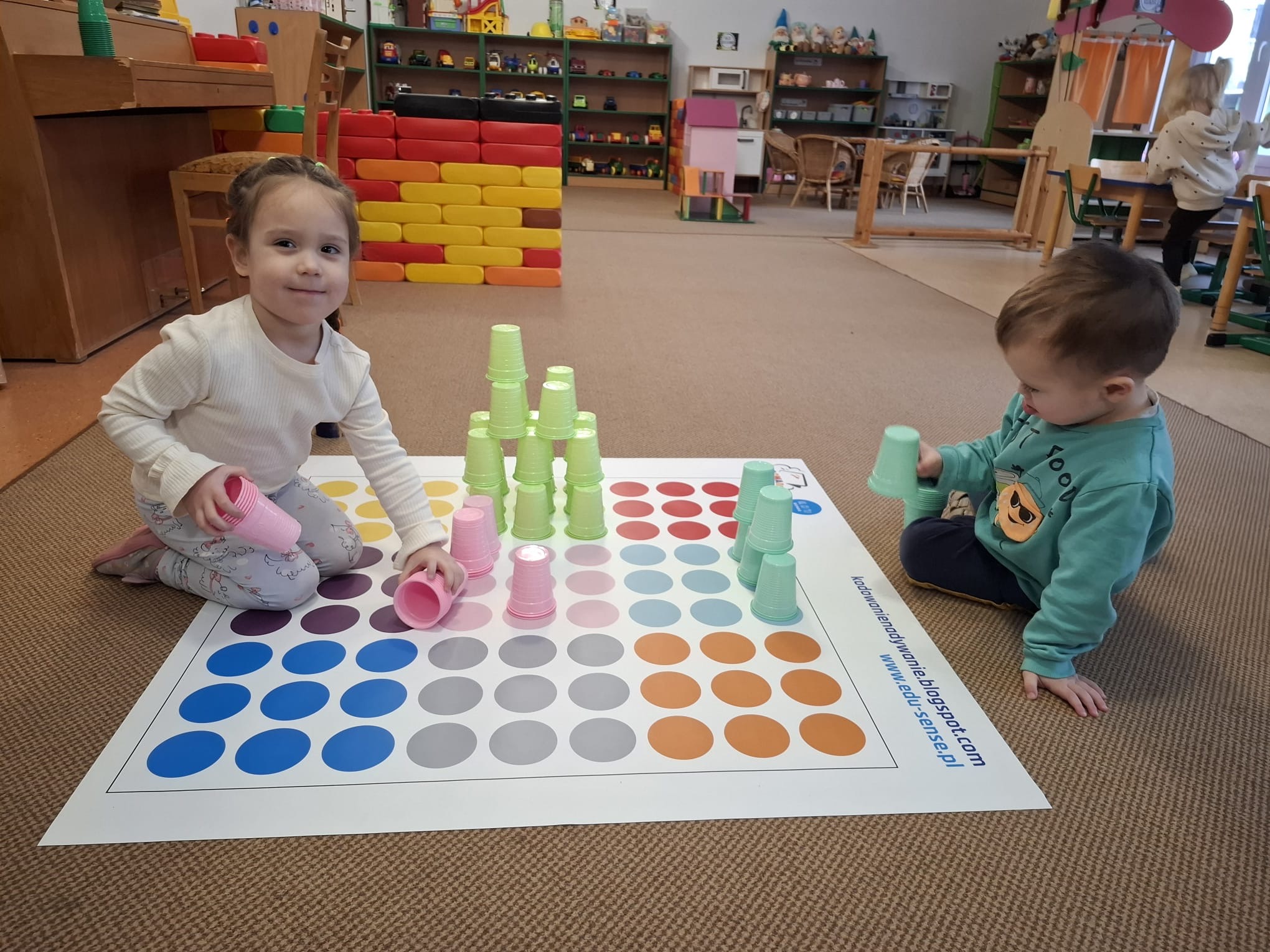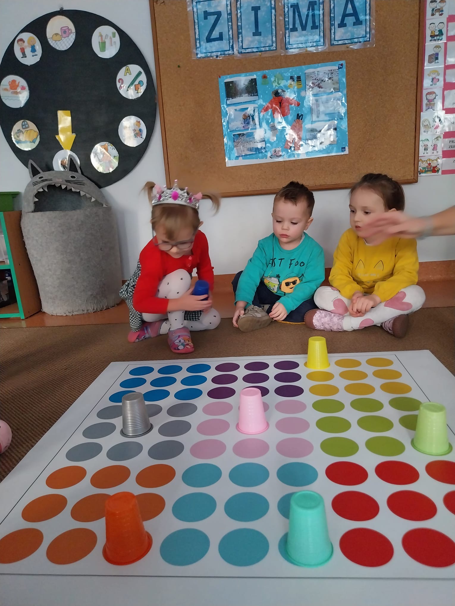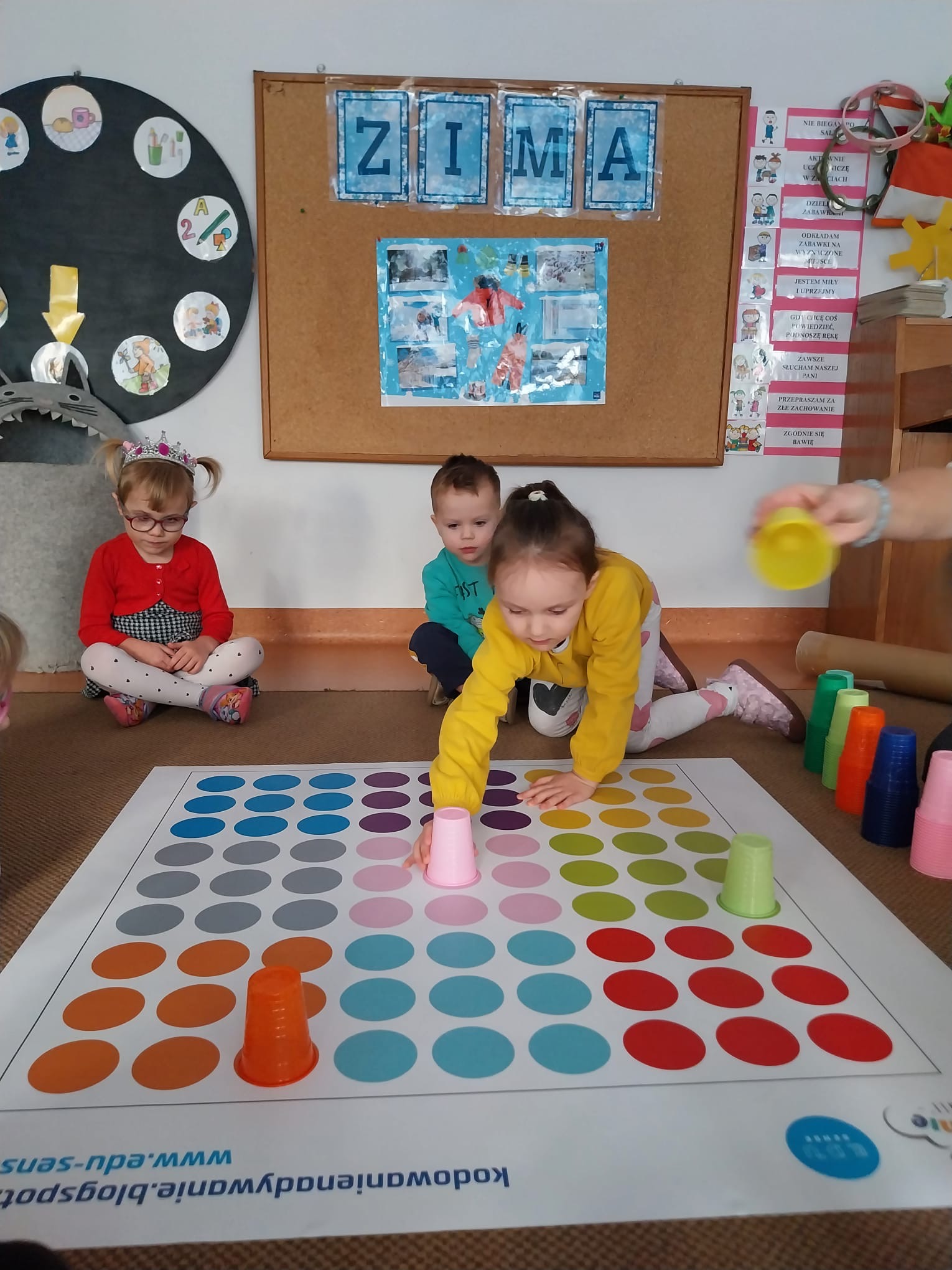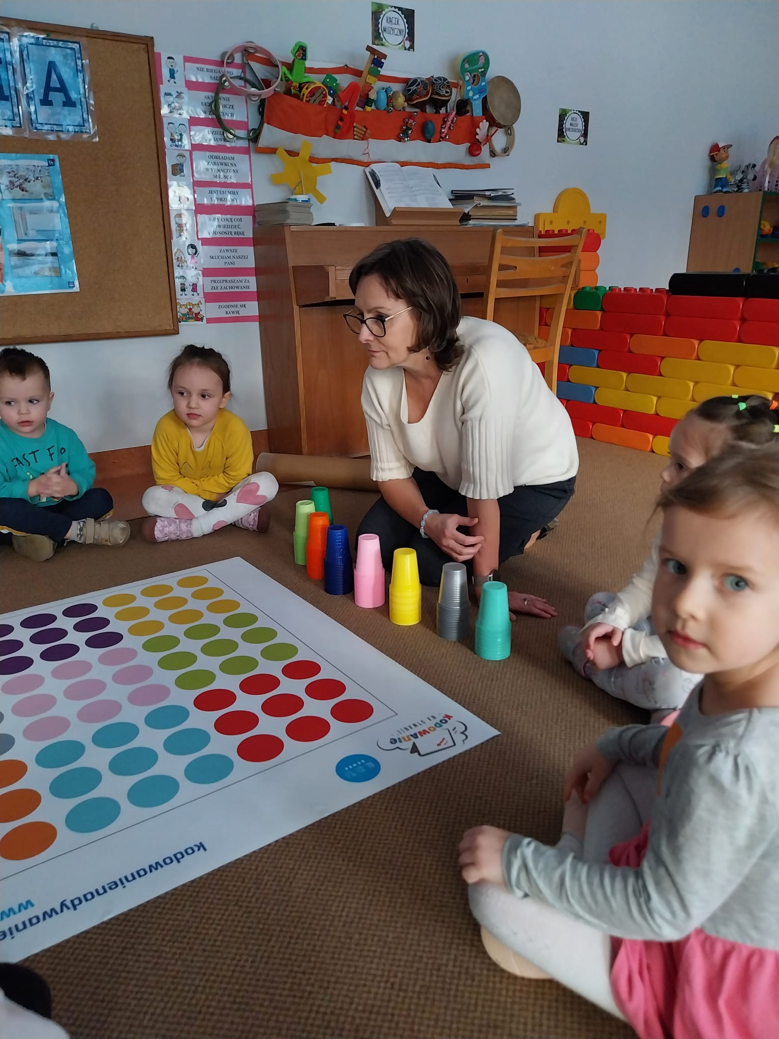 utrwalaÅ‚y nazwy kolorów, uczyÅ‚y klasyfikacji kubków wedÅ‚ug barw oraz przeliczania w dostÄ™pnym dla dzieci zakresie (minimum 1-3).