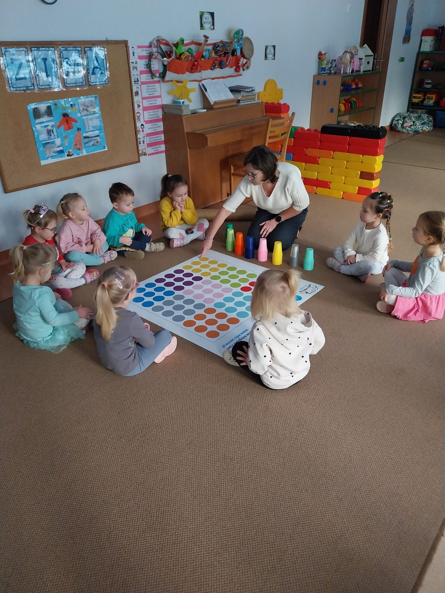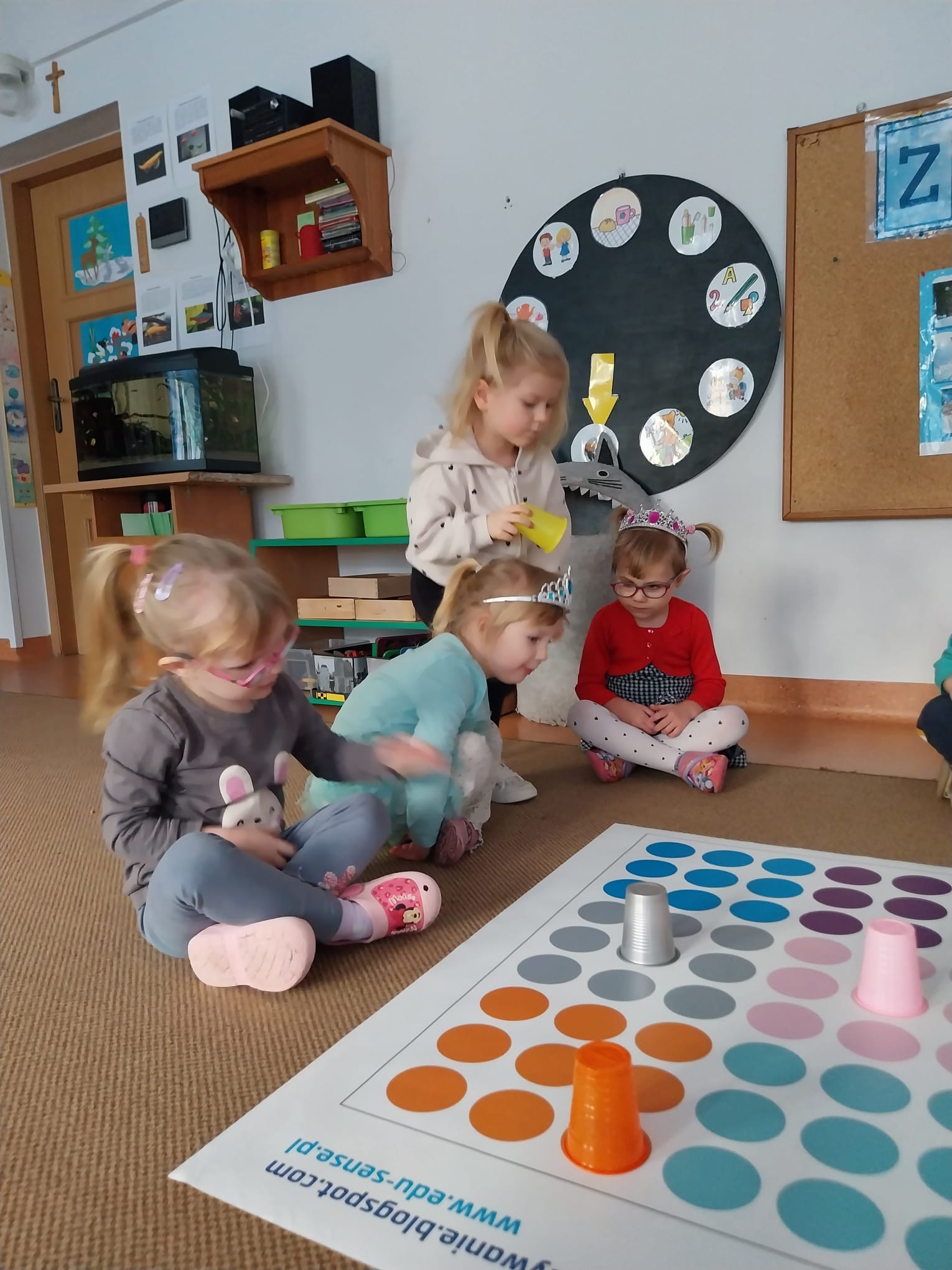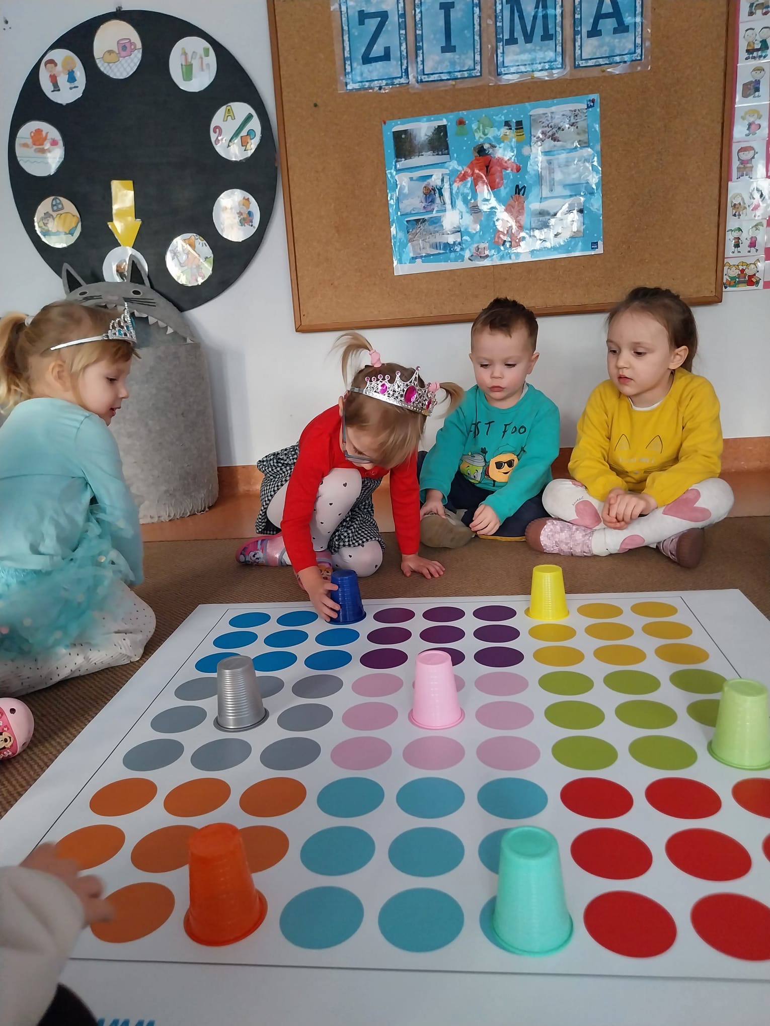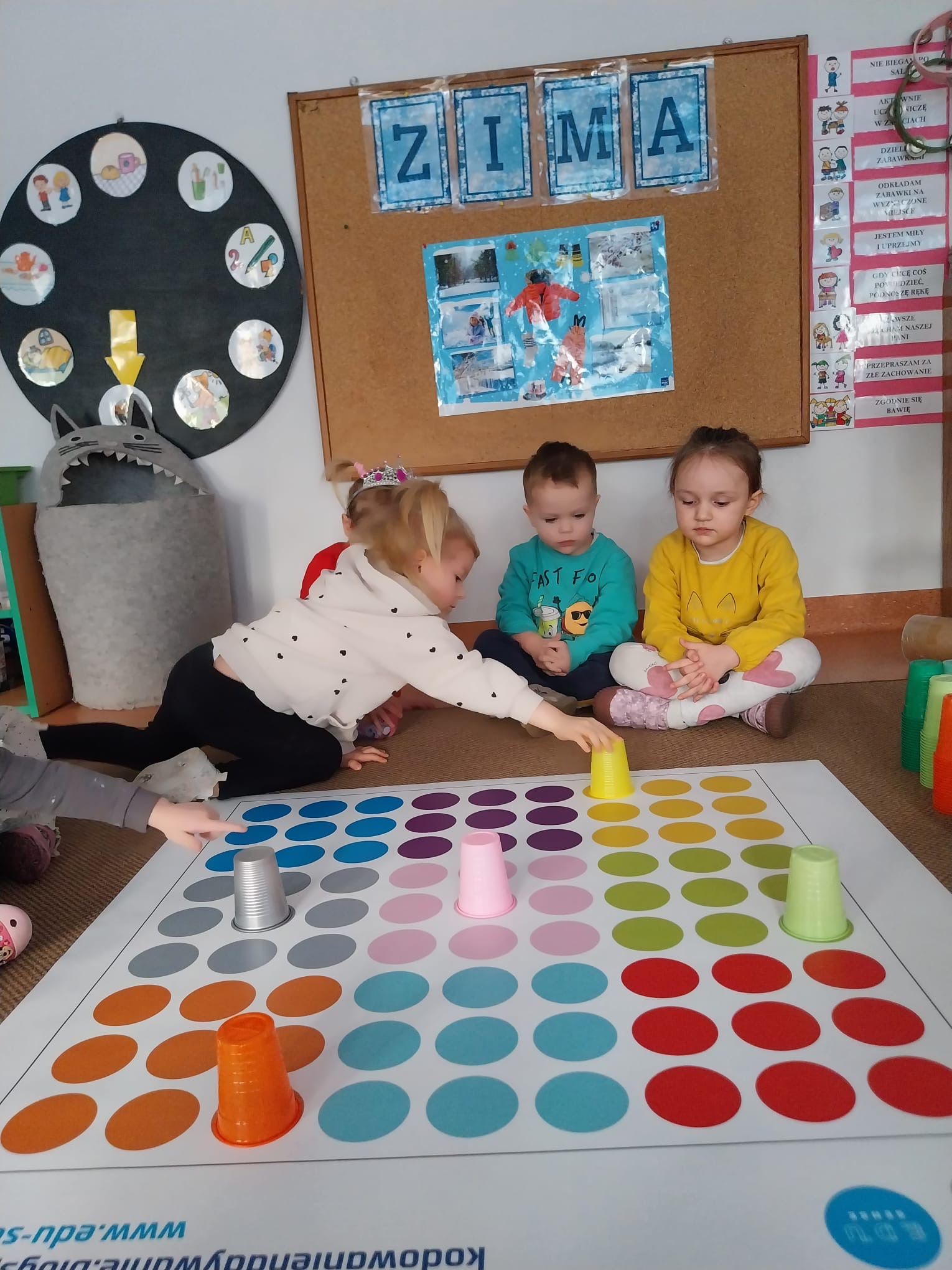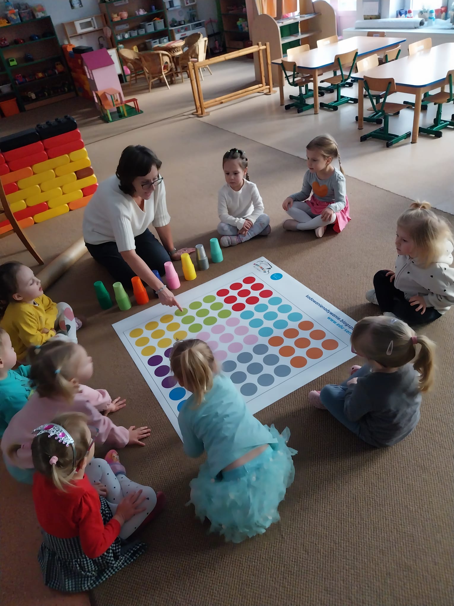 utrwalaÅ‚y nazwy kolorów, uczyÅ‚y klasyfikacji kubków wedÅ‚ug barw oraz przeliczania w dostÄ™pnym dla dzieci zakresie (minimum 1-3).