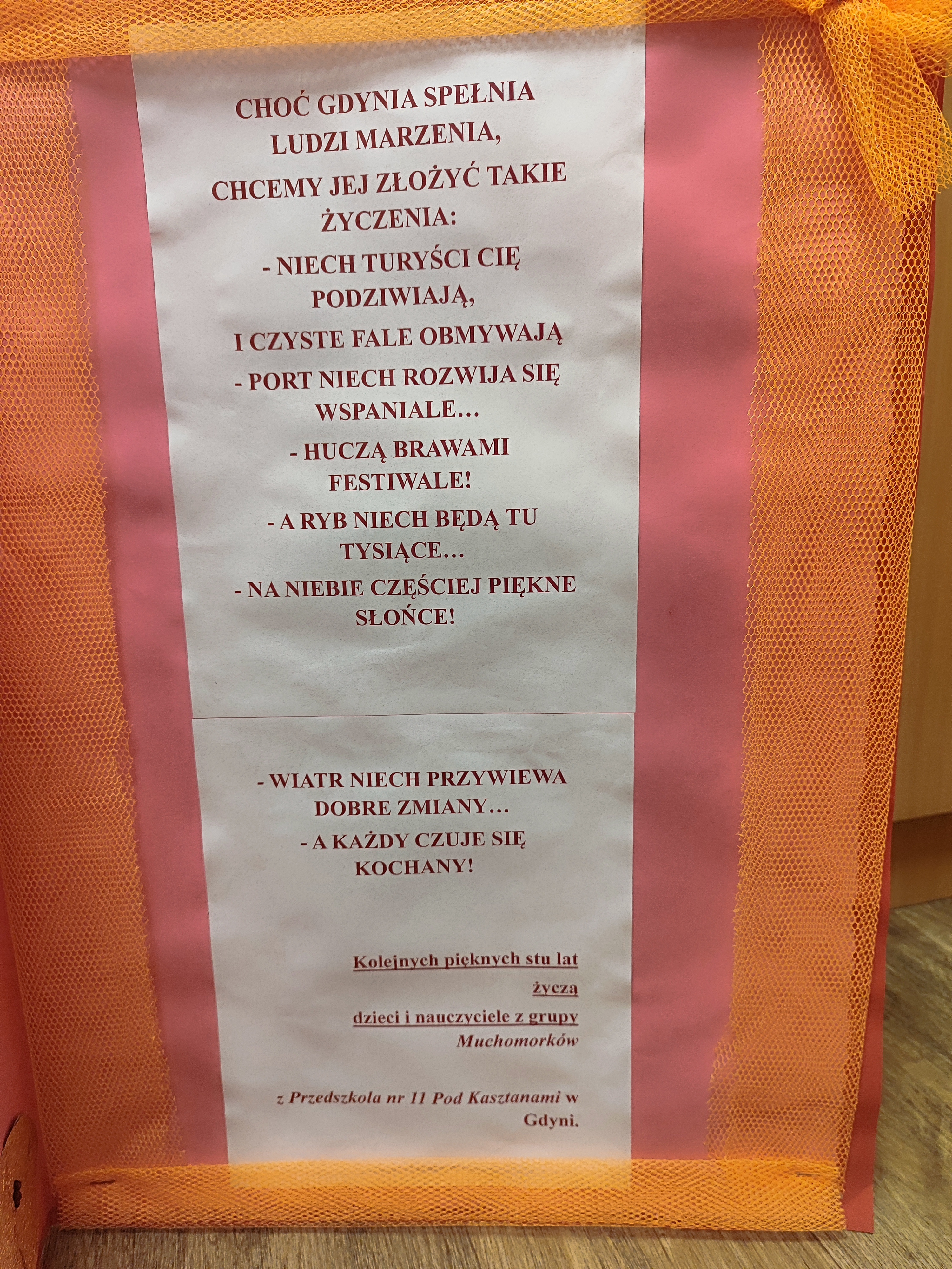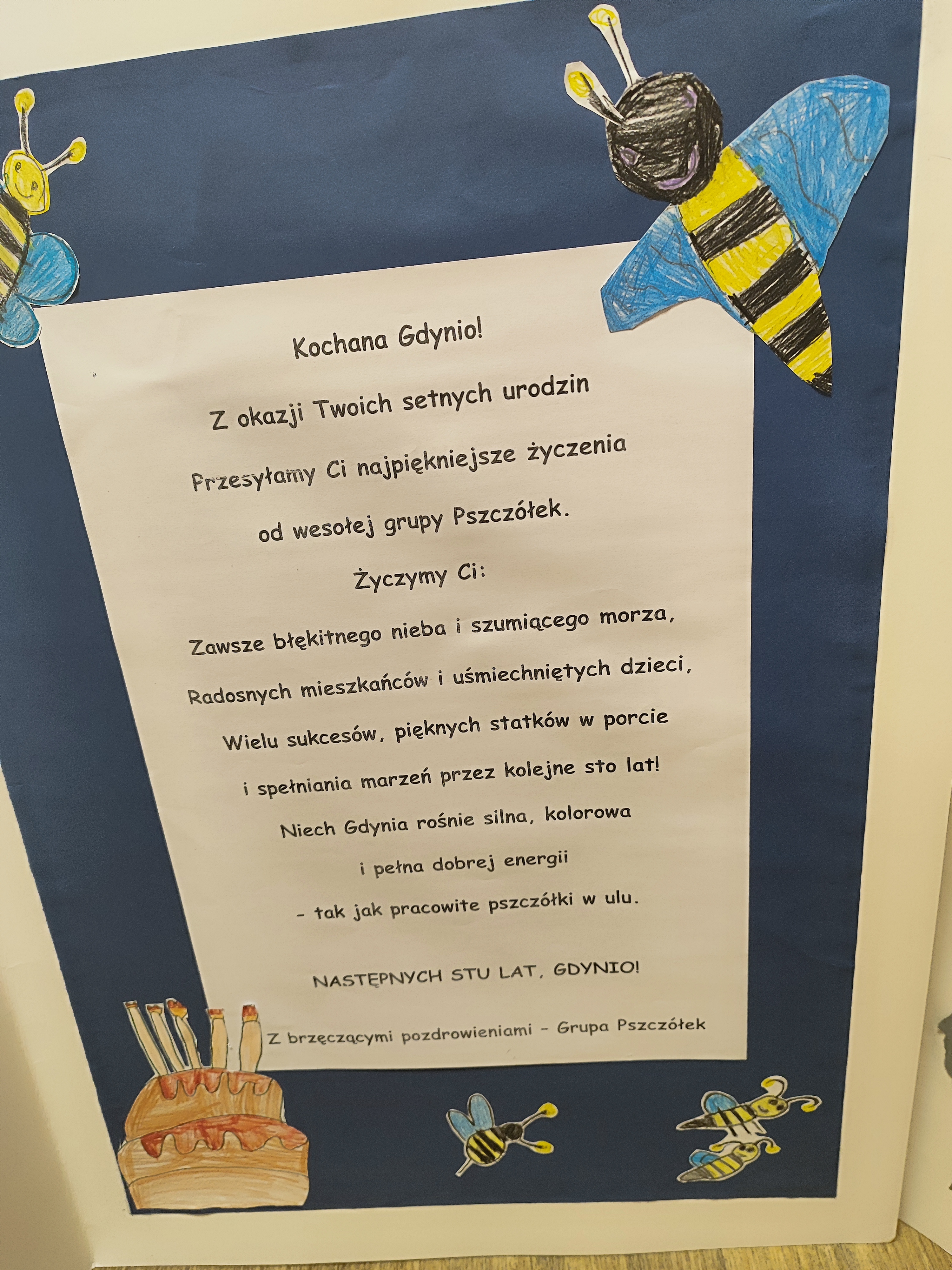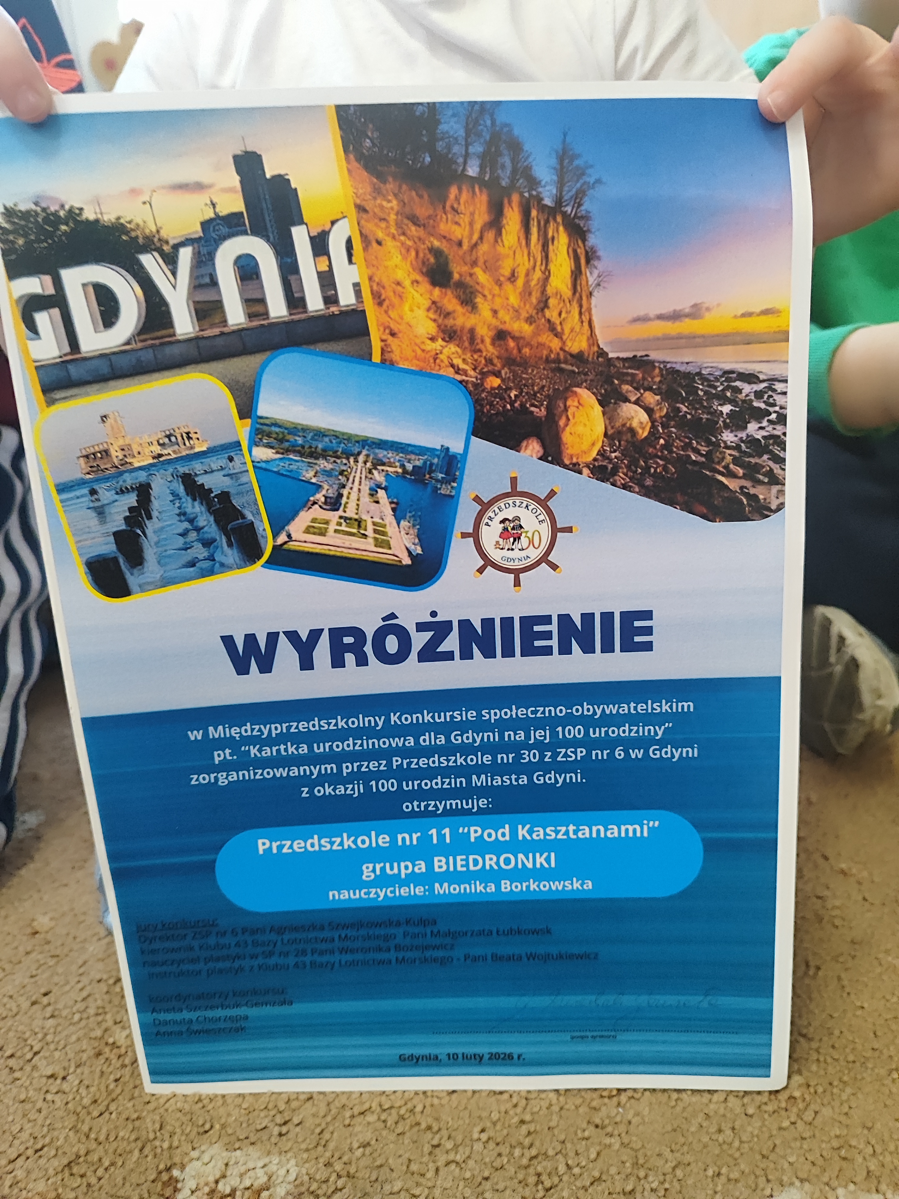 Nasza grupa wraz z grupą Pszczółek i Muchomorków wzięły udział w międzyprzedszkolnym konkursie plastycznym "Karta urodzinowa dla Gdyni na jej 100 urodziny" organizowanym przez Zespół Szkolno - Przedszkolny Nr 6 w Gdyni. Wspólna efektywna praca Biedronek zaowocowała zdobyciem wyróżnienia w tymże konkursie.