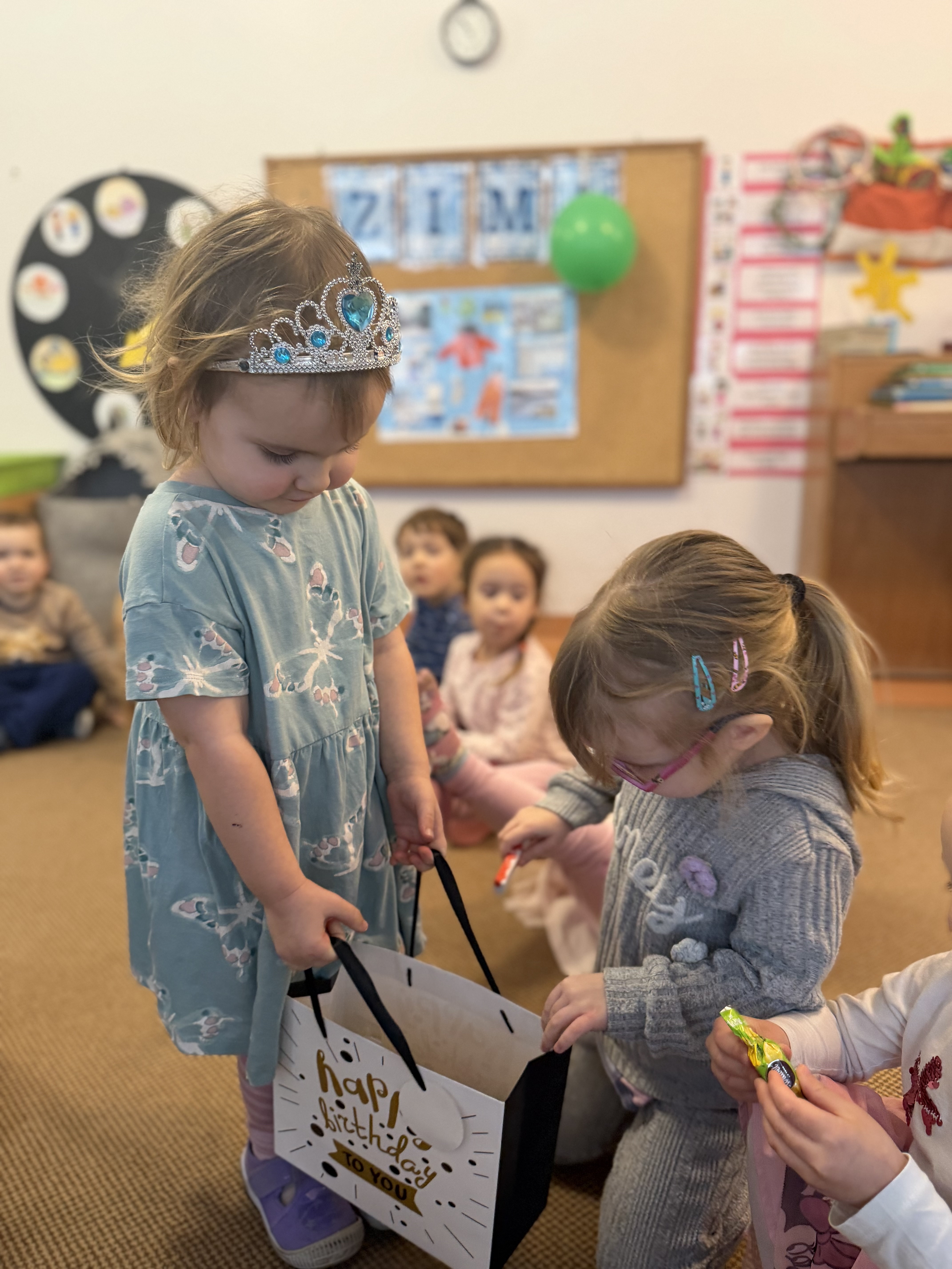 Podczas urodzin wspólnie śpiewamy tradycyjne „Sto lat”, składamy serdeczne życzenia. Dla dzieci jest to nie tylko wspaniała zabawa, ale także cenna lekcja – uczą się, jak okazywać życzliwość, empatię i pamięć o innych. Składanie życzeń pomaga rozwijać umiejętności społeczne, wzmacnia relacje w grupie oraz buduje poczucie przynależności i wzajemnego szacunku.