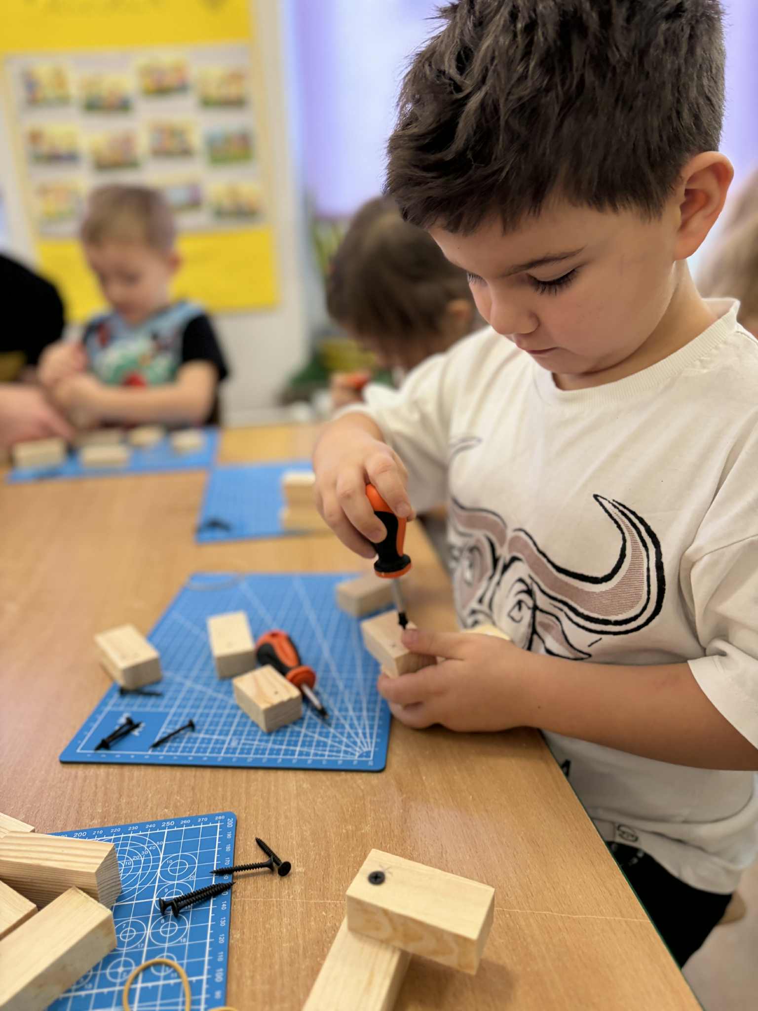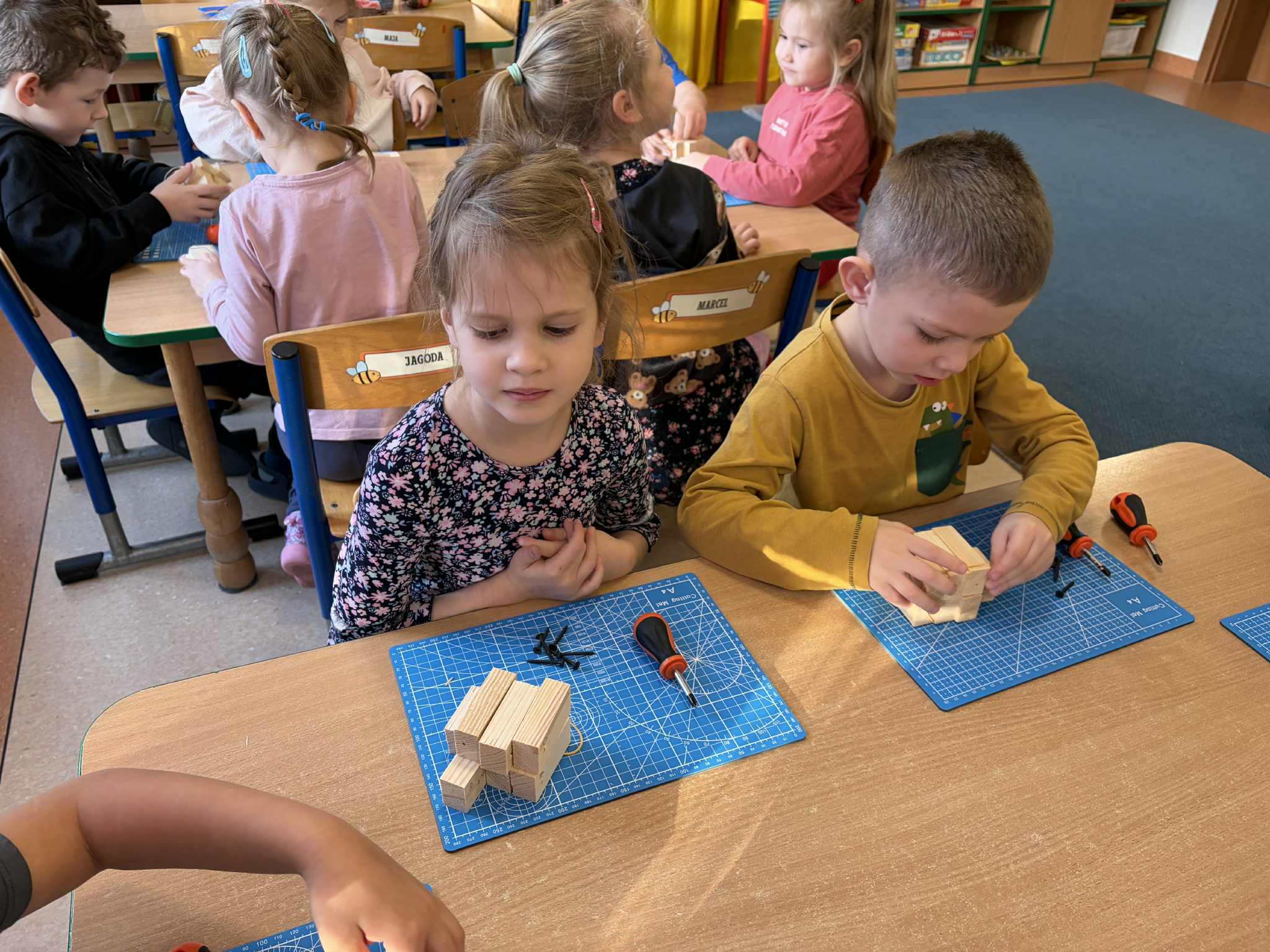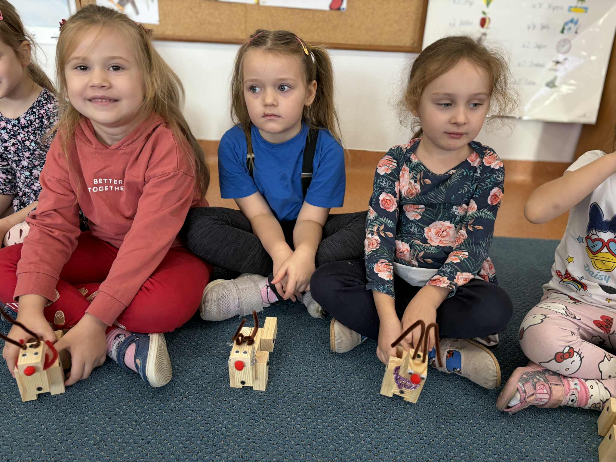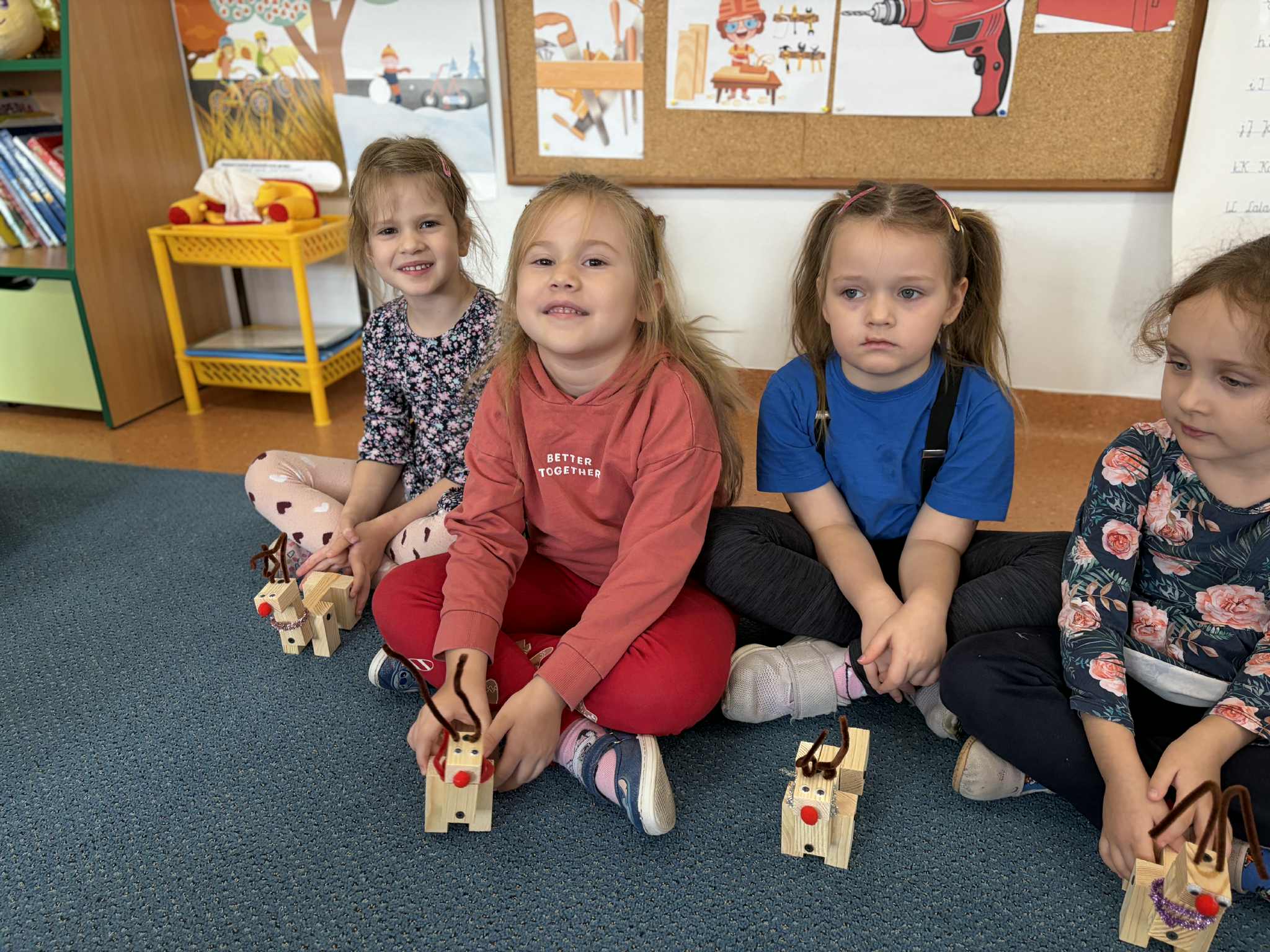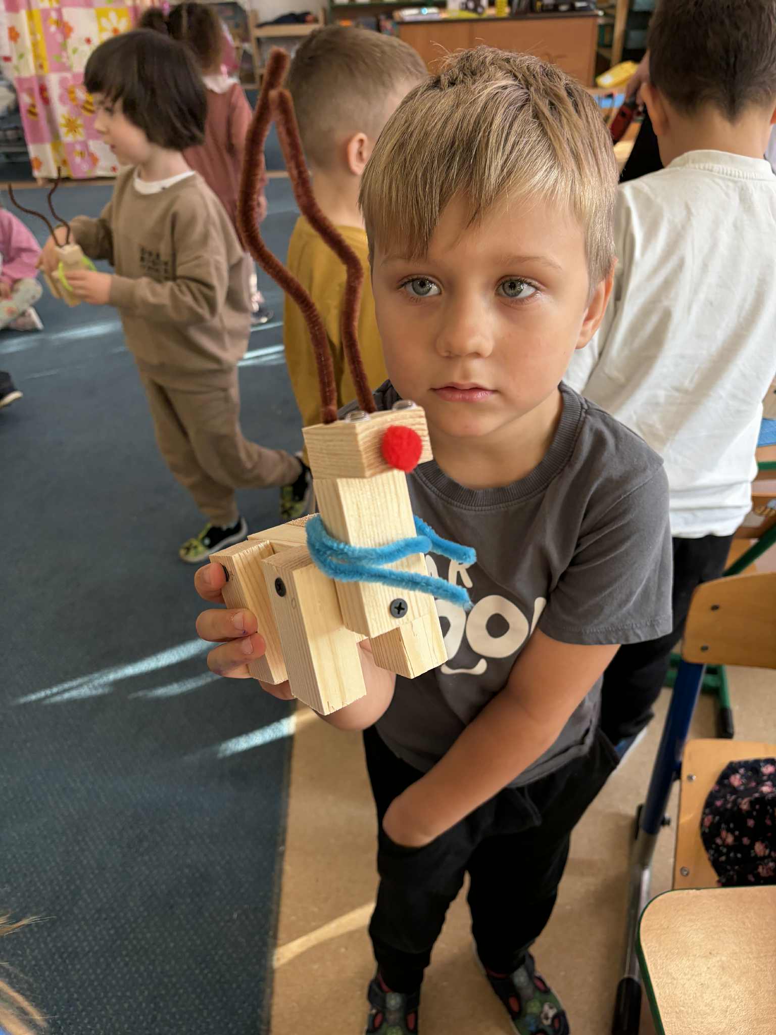 WE WTOREK 18 LISTOPADA ODBYŁY SIĘ WYJĄTKOWE WARSZTATY „MAJSTERKOWANIE NA WESOŁO”. PSZCZÓŁKI MIAŁY OKAZJĘ PRACOWAĆ PRAWDZIWYMI NARZĘDZIAMI – ŚRUBOKRĘTAMI, ŚRUBKAMI ORAZ DREWNIANYMI ELEMENTAMI, Z KTÓRYCH SAMODZIELNIE SKRĘCIŁY ŚWIĄTECZNEGO RENIFERA. ZAJĘCIOM TOWARZYSZYŁO MNÓSTWO RADOŚCI, ZAANGAŻOWANIA I ŚWIETNEJ ZABAWY. NA ZAKOŃCZENIE KAŻDE DZIECKO MOGŁO WŁASNORĘCZNIE OZDOBIĆ SWOJEGO RENIFERA I DUMNIE ZAPREZENTOWAĆ EFEKT SWOJEJ PRACY.
