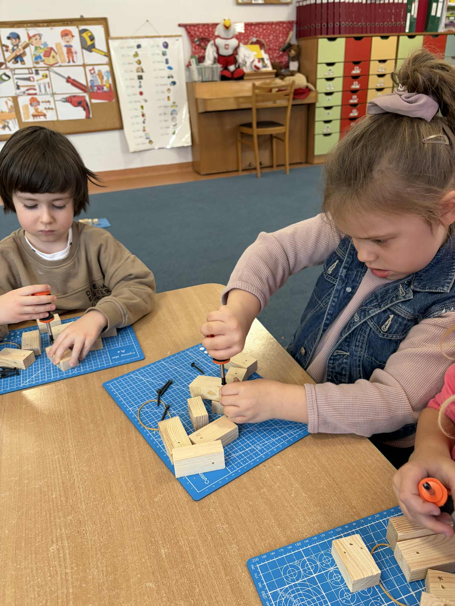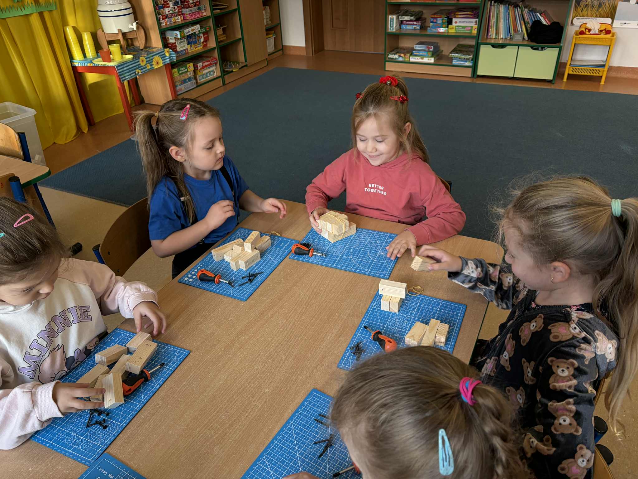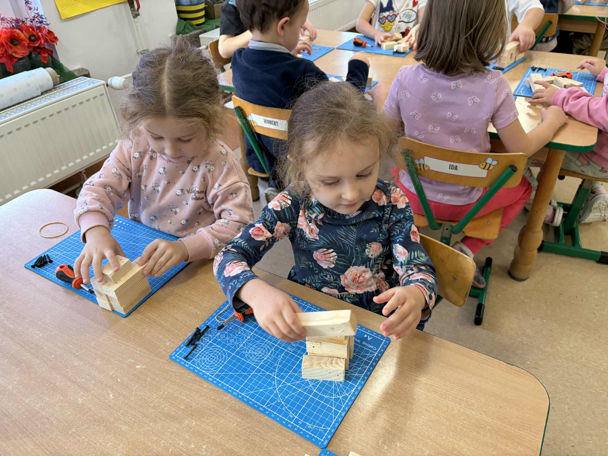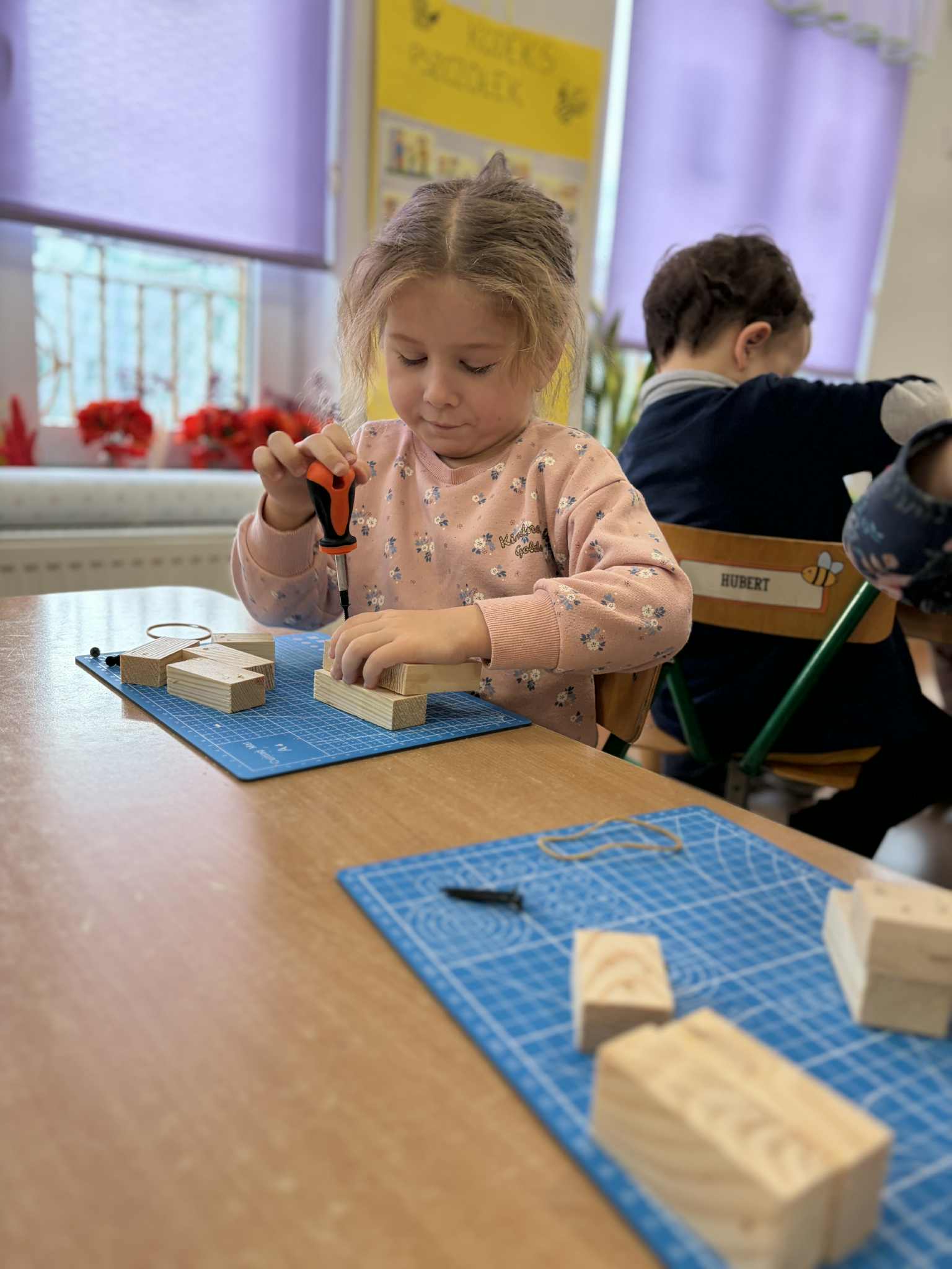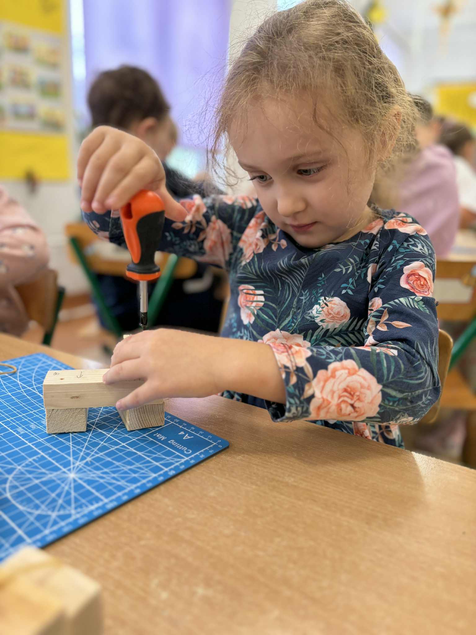 WE WTOREK 18 LISTOPADA ODBYŁY SIĘ WYJĄTKOWE WARSZTATY „MAJSTERKOWANIE NA WESOŁO”. PSZCZÓŁKI MIAŁY OKAZJĘ PRACOWAĆ PRAWDZIWYMI NARZĘDZIAMI – ŚRUBOKRĘTAMI, ŚRUBKAMI ORAZ DREWNIANYMI ELEMENTAMI, Z KTÓRYCH SAMODZIELNIE SKRĘCIŁY ŚWIĄTECZNEGO RENIFERA. ZAJĘCIOM TOWARZYSZYŁO MNÓSTWO RADOŚCI, ZAANGAŻOWANIA I ŚWIETNEJ ZABAWY. NA ZAKOŃCZENIE KAŻDE DZIECKO MOGŁO WŁASNORĘCZNIE OZDOBIĆ SWOJEGO RENIFERA I DUMNIE ZAPREZENTOWAĆ EFEKT SWOJEJ PRACY.