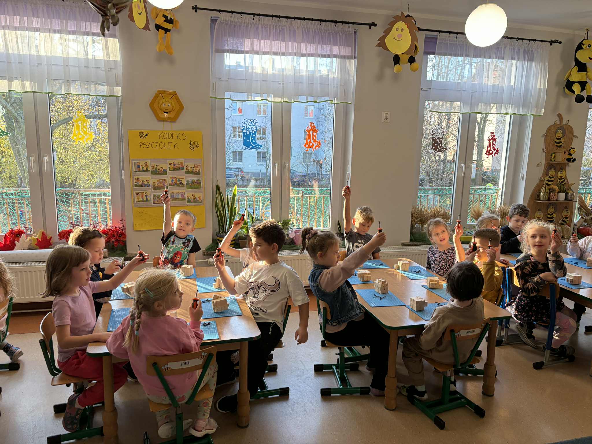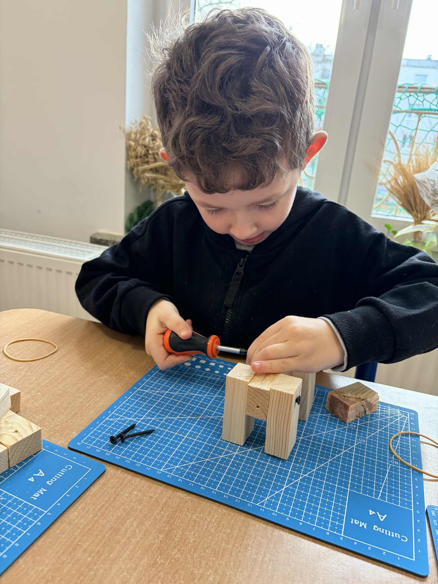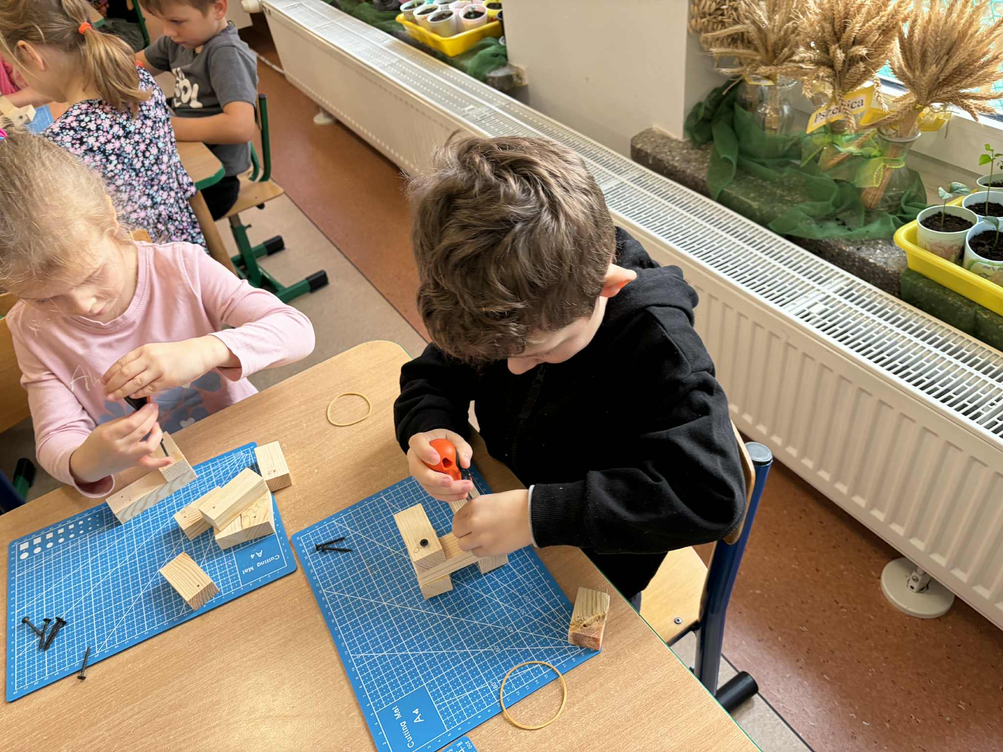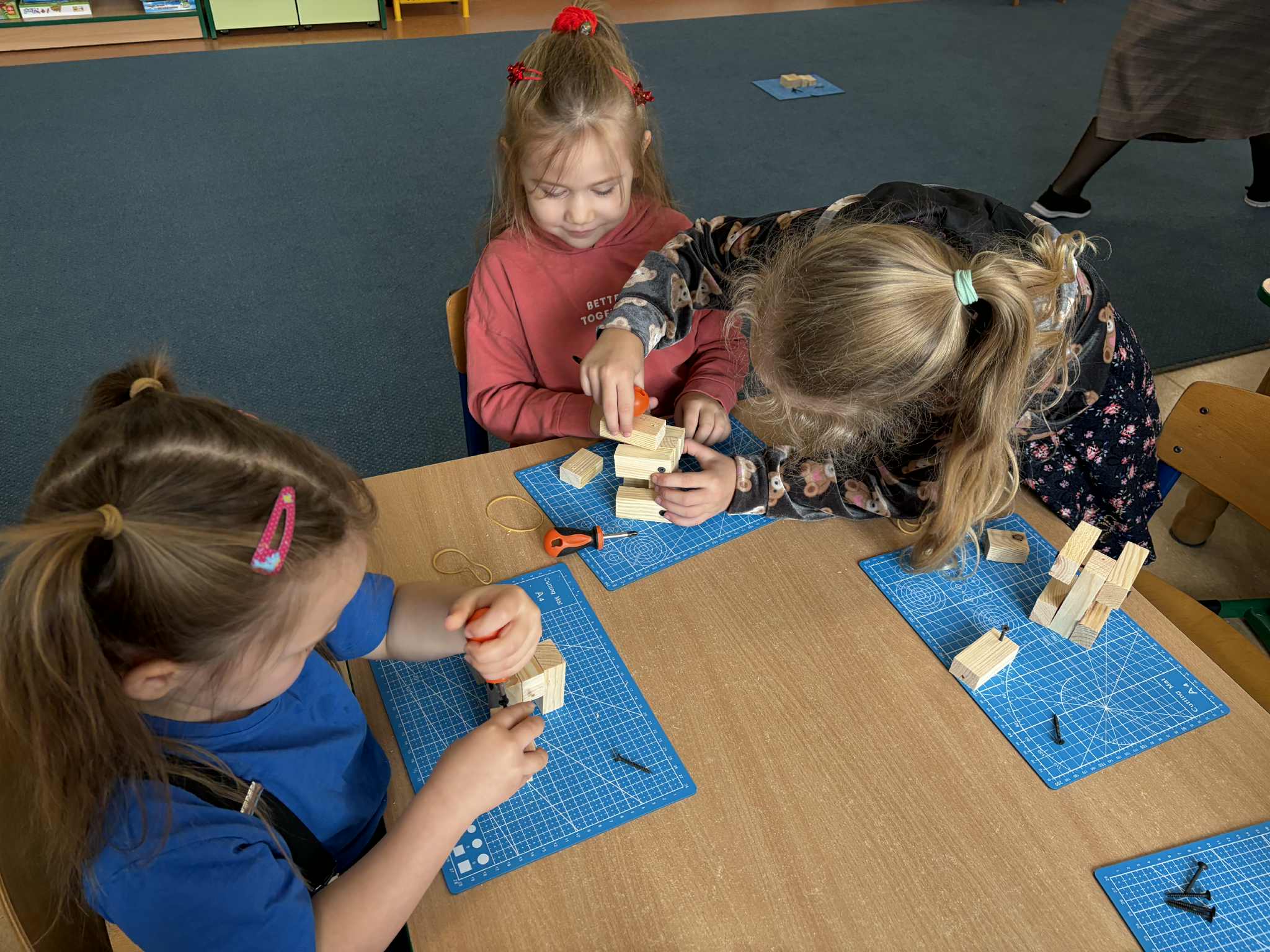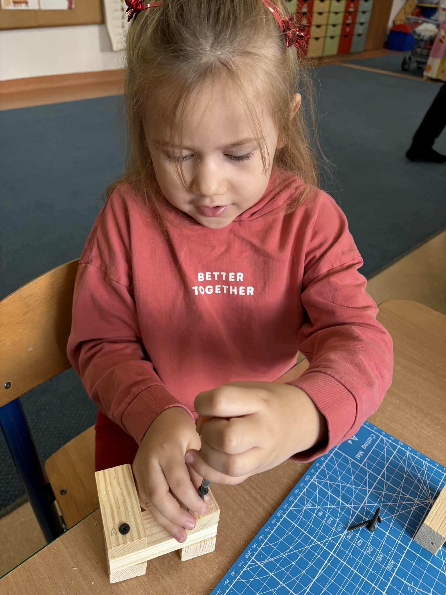 WE WTOREK 18 LISTOPADA ODBYŁY SIĘ WYJĄTKOWE WARSZTATY „MAJSTERKOWANIE NA WESOŁO”. PSZCZÓŁKI MIAŁY OKAZJĘ PRACOWAĆ PRAWDZIWYMI NARZĘDZIAMI – ŚRUBOKRĘTAMI, ŚRUBKAMI ORAZ DREWNIANYMI ELEMENTAMI, Z KTÓRYCH SAMODZIELNIE SKRĘCIŁY ŚWIĄTECZNEGO RENIFERA. ZAJĘCIOM TOWARZYSZYŁO MNÓSTWO RADOŚCI, ZAANGAŻOWANIA I ŚWIETNEJ ZABAWY. NA ZAKOŃCZENIE KAŻDE DZIECKO MOGŁO WŁASNORĘCZNIE OZDOBIĆ SWOJEGO RENIFERA I DUMNIE ZAPREZENTOWAĆ EFEKT SWOJEJ PRACY.