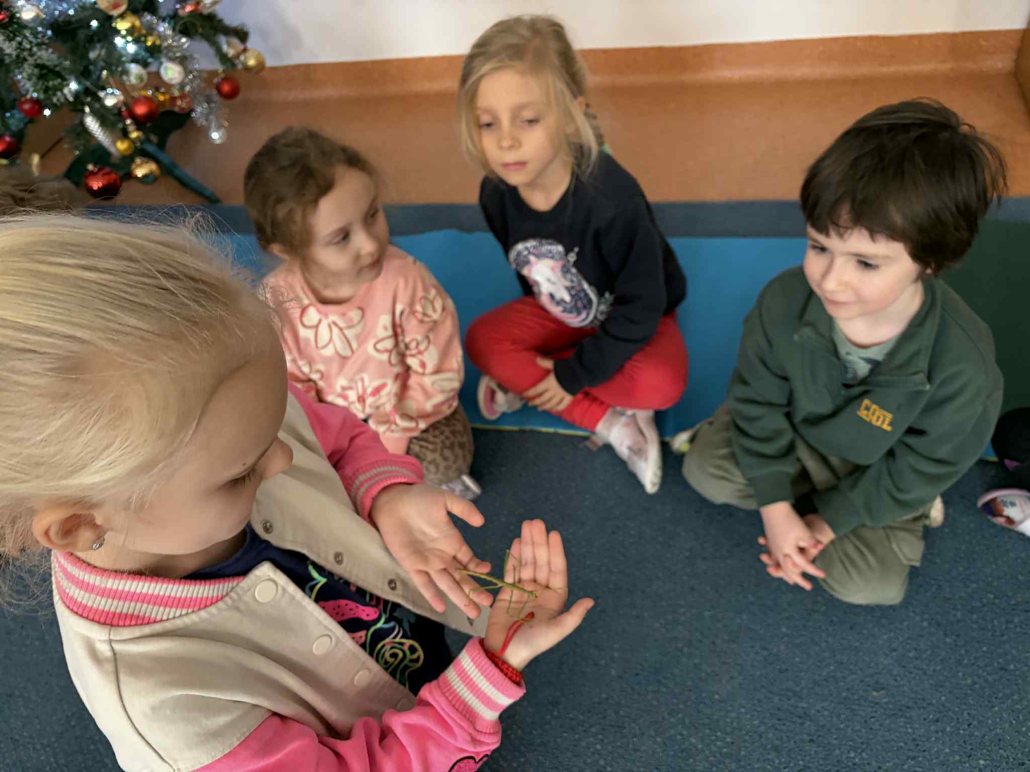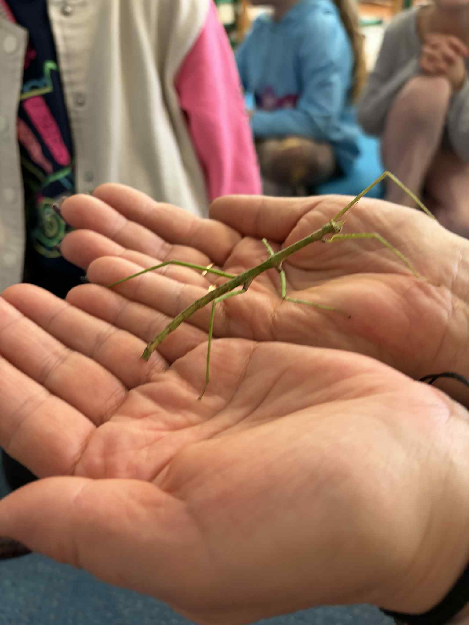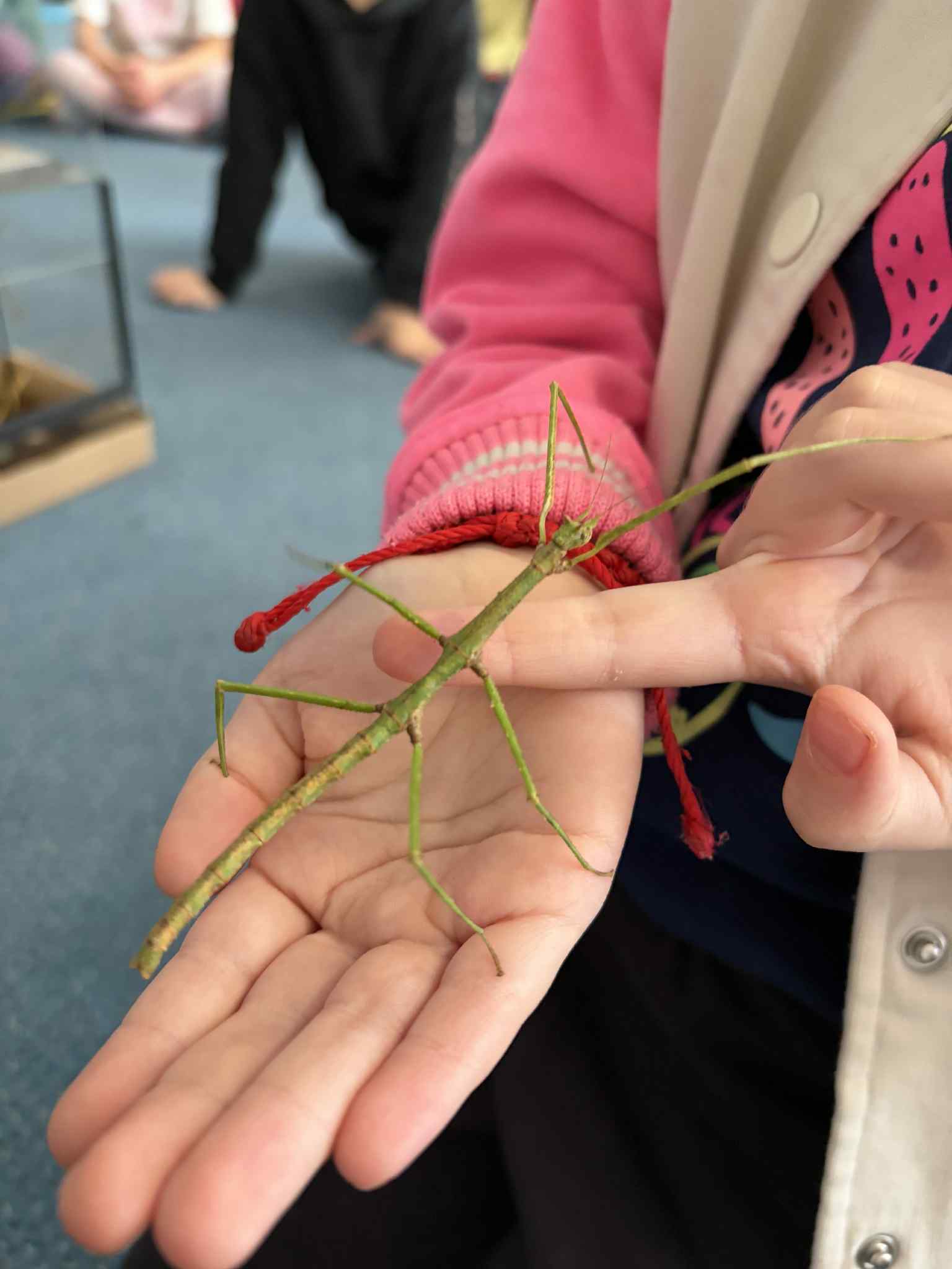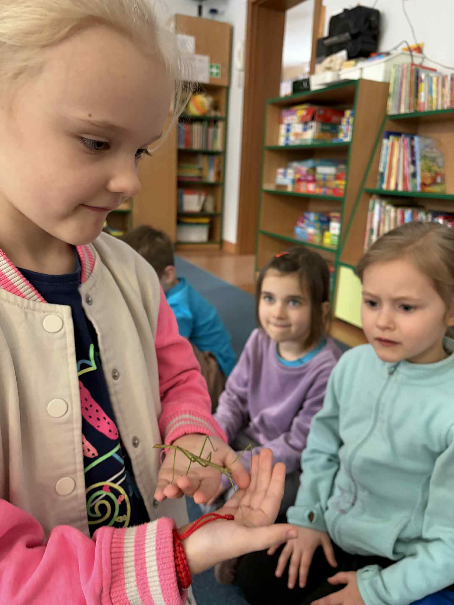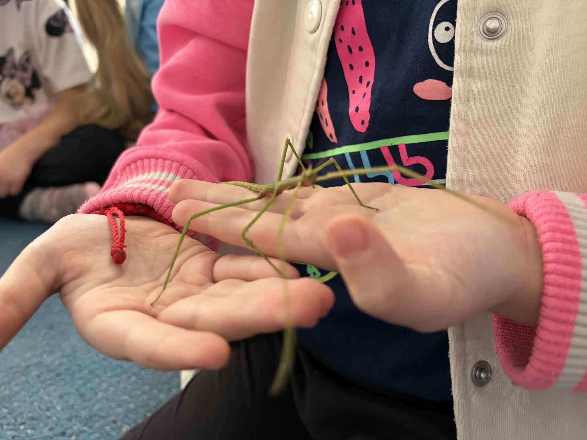 OSTATNIO ODWIEDZIŁ NAS WYJĄTKOWY GOŚĆ – PATYCZAK. PRZYSZEDŁ DO NAS DZIĘKI NASZEJ NAJSTARSZEJ KOLEŻANCE MAI Z GRUPY CZWARTEJ, KTÓRA PRZYNIOSŁA GO I OPOWIEDZIAŁA WIELE CIEKAWYCH INFORMACJI NA JEGO TEMAT. DOWIEDZIELIŚMY SIĘ, CZYM SIĘ ŻYWI, JAK WYGLĄDA JEGO CODZIENNE ŻYCIE ORAZ CZEGO POTRZEBUJE, ABY ZDROWO ROSNĄĆ I CZUĆ SIĘ BEZPIECZNIE. SPOTKANIE BYŁO ŚWIETNĄ OKAZJĄ DO NAUKI PRZEZ BEZPOŚREDNI KONTAKT Z PRZYRODĄ, ZADAWANIA PYTAŃ I ROZWIJANIA CIEKAWOŚCI ŚWIATA. DZIECI BYŁY BARDZO ZACIEKAWIONE I Z DUŻYM ZAINTERESOWANIEM OBSERWOWAŁY PATYCZAKA ORAZ SŁUCHAŁY OPOWIEŚCI MAI. TO BYŁA DLA NAS WSZYSTKICH BARDZO MIŁA I POUCZAJĄCA WIZYTA.