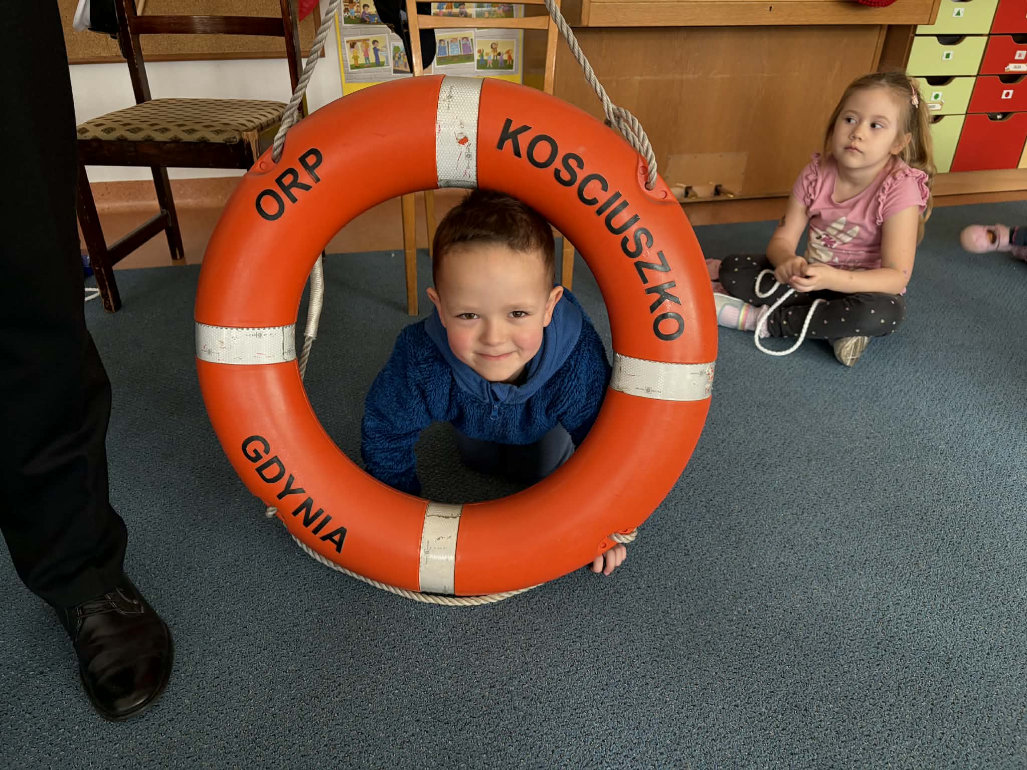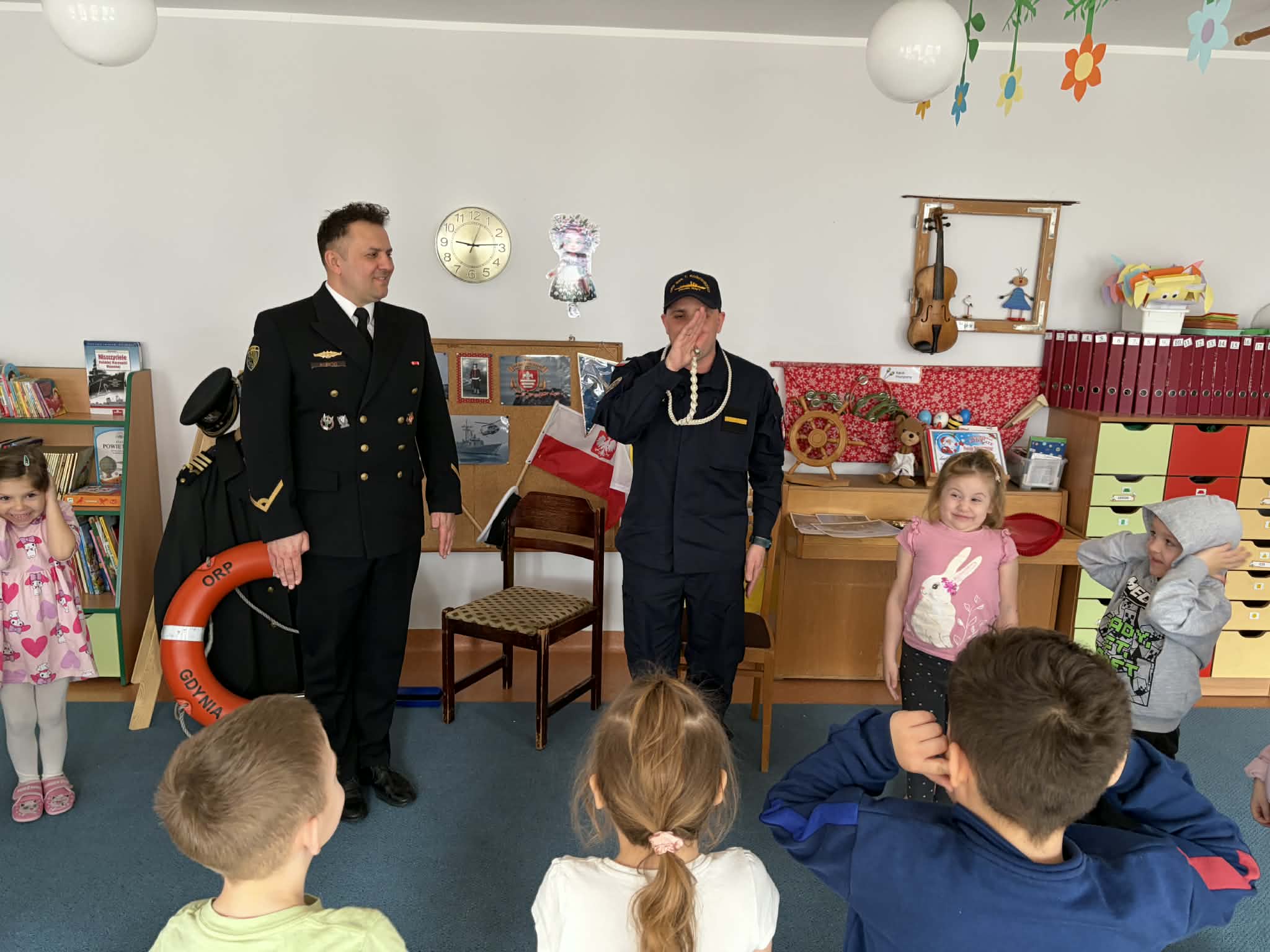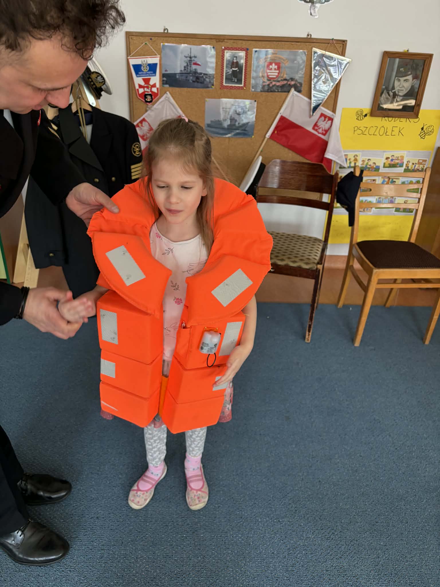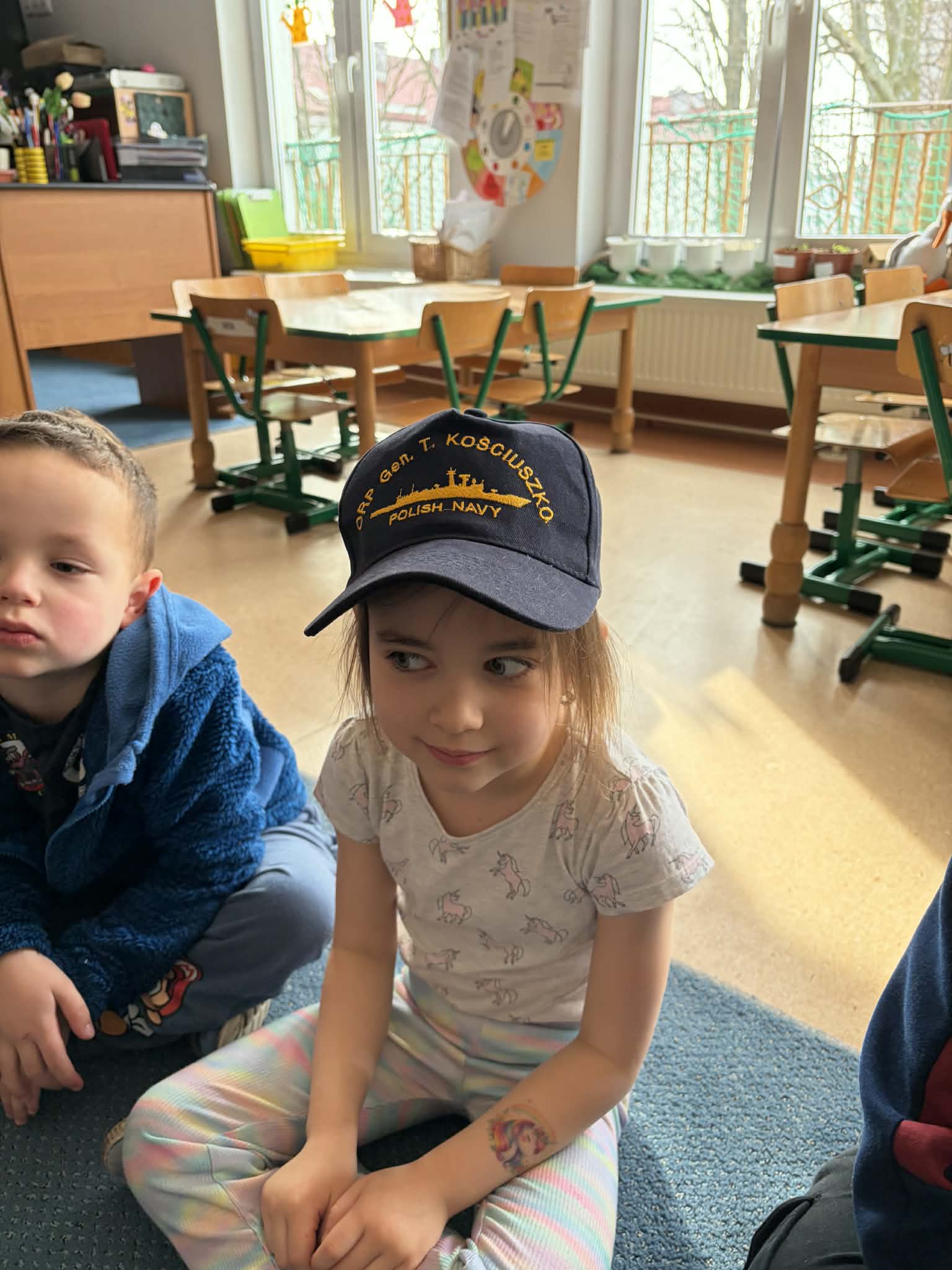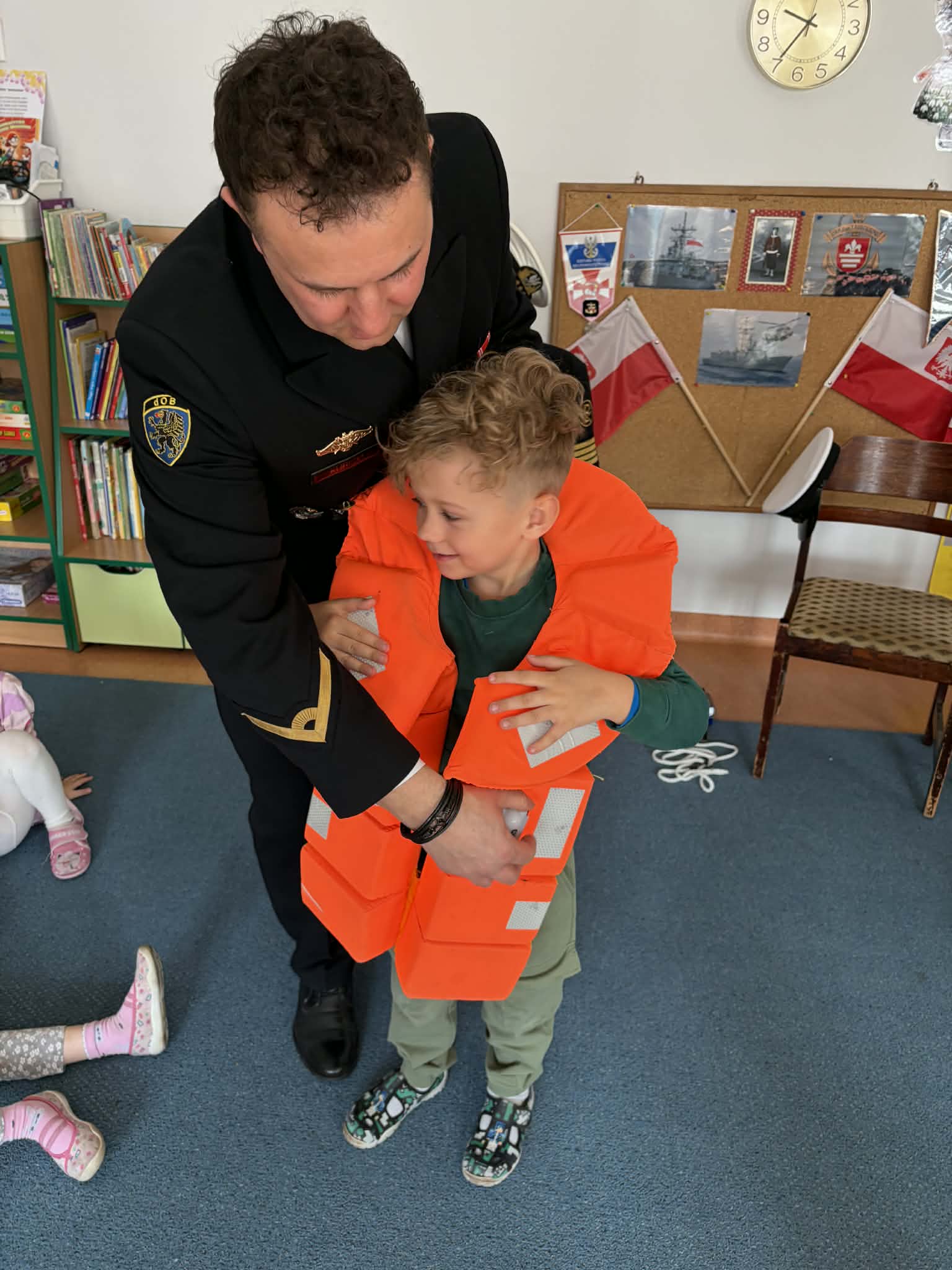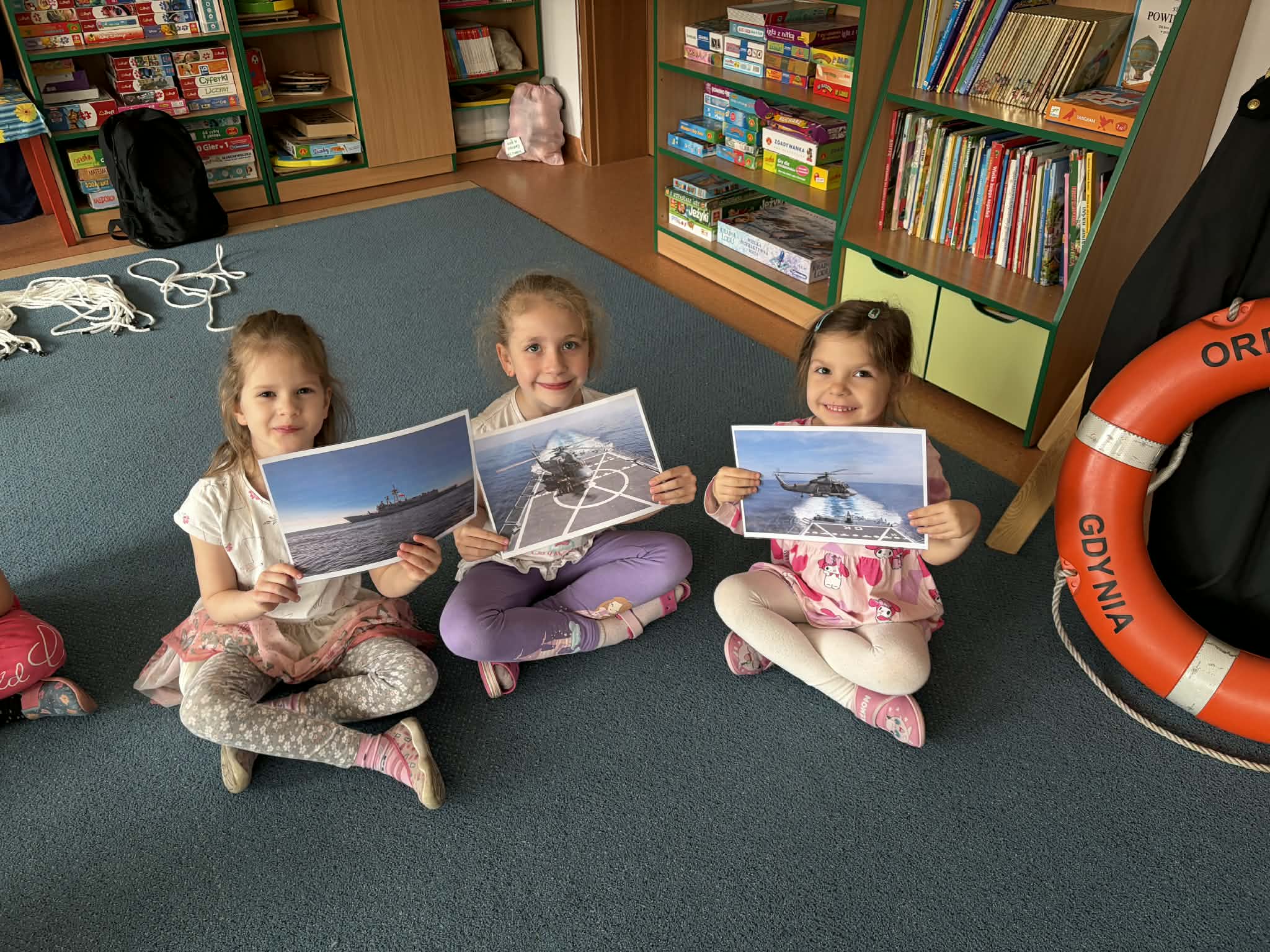 PSZCZÓŁKI MIAŁY OKAZJĘ POZNAĆ ZAŁOGĘ OKRĘTU ORP GEN. TADEUSZ KOŚCIUSZKO, KTÓRA OPOWIEDZIAŁA O SWOJEJ PRACY I SŁUŻBIE NA MORZU. DZIECI DOWIEDZIAŁY SIĘ: JAK WYGLĄDA CODZIENNE ŻYCIE NA OKRĘCIE, CO TO JEST " ŚWIST TRAPOWY", OBEJRZAŁY CIEKAWE FILMY I ZDJĘCIA ORAZ ZOBACZYŁY SPRZĘT RATOWNICZY. PODCZAS SPOTKANIA NAUCZYŁY SIĘ TAKŻE WIĄZAĆ PROSTY WĘZEŁ I WZIĘŁY UDZIAŁ W „CHRZCIE MORSKIM” Z ZABAWAMI, TAKIMI JAK: RZUCANIE DO CELU CZY PRZECIĄGANIE LINY. POZNAŁY RÓWNIEŻ PODSTAWOWE CZĘŚCI OKRĘTU: DZIÓB, RUFA I ŚRÓDOKRĘCIE. SERDECZNIE DZIĘKUJEMY ZAŁODZE ZA POŚWIĘCONY CZAS I INTERESUJĄCE SPOTKANIE.