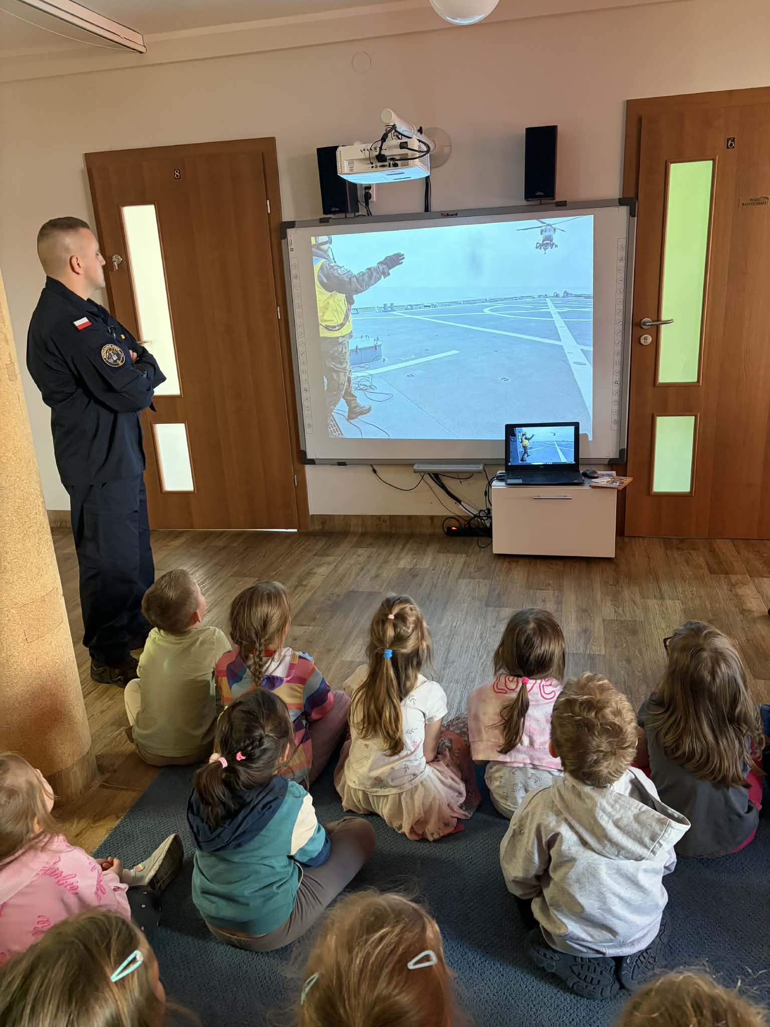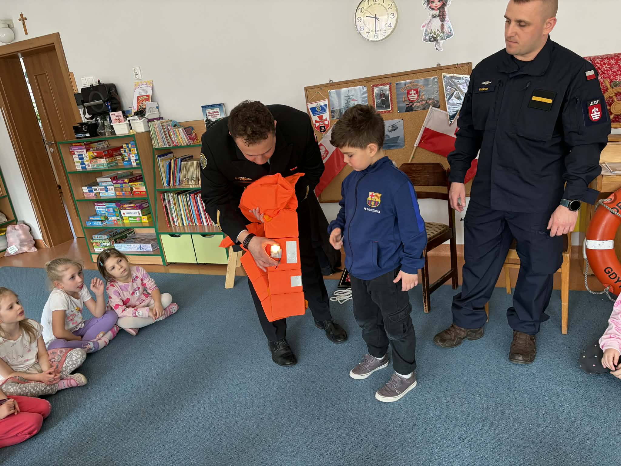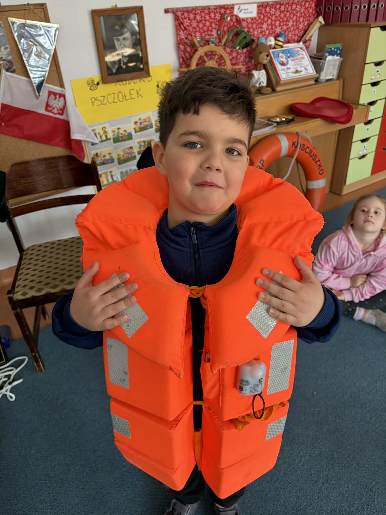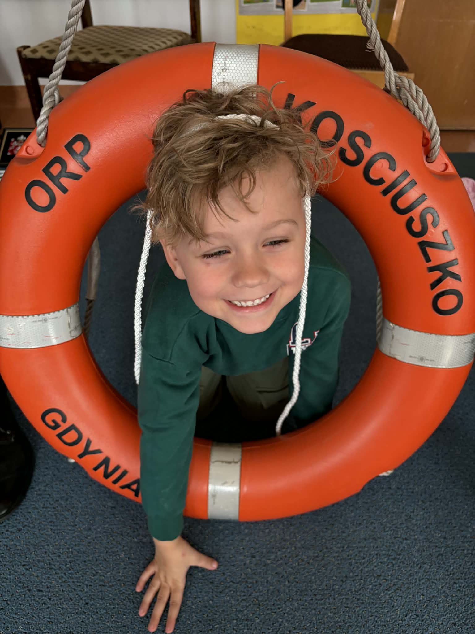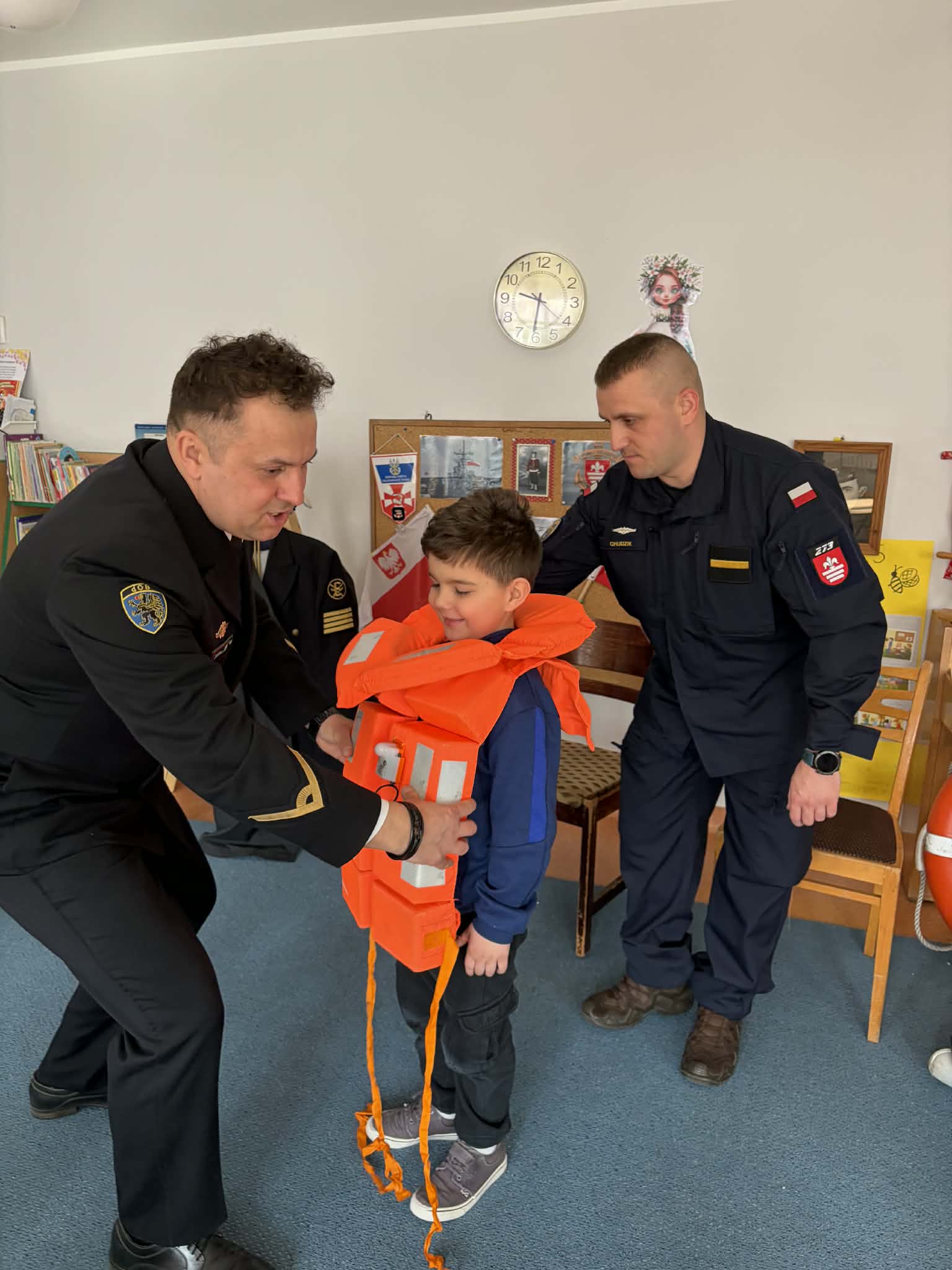 PSZCZÓŁKI MIAŁY OKAZJĘ POZNAĆ ZAŁOGĘ OKRĘTU ORP GEN. TADEUSZ KOŚCIUSZKO, KTÓRA OPOWIEDZIAŁA O SWOJEJ PRACY I SŁUŻBIE NA MORZU. DZIECI DOWIEDZIAŁY SIĘ: JAK WYGLĄDA CODZIENNE ŻYCIE NA OKRĘCIE, CO TO JEST " ŚWIST TRAPOWY", OBEJRZAŁY CIEKAWE FILMY I ZDJĘCIA ORAZ ZOBACZYŁY SPRZĘT RATOWNICZY. PODCZAS SPOTKANIA NAUCZYŁY SIĘ TAKŻE WIĄZAĆ PROSTY WĘZEŁ I WZIĘŁY UDZIAŁ W „CHRZCIE MORSKIM” Z ZABAWAMI, TAKIMI JAK: RZUCANIE DO CELU CZY PRZECIĄGANIE LINY. POZNAŁY RÓWNIEŻ PODSTAWOWE CZĘŚCI OKRĘTU: DZIÓB, RUFA I ŚRÓDOKRĘCIE. SERDECZNIE DZIĘKUJEMY ZAŁODZE ZA POŚWIĘCONY CZAS I INTERESUJĄCE SPOTKANIE.