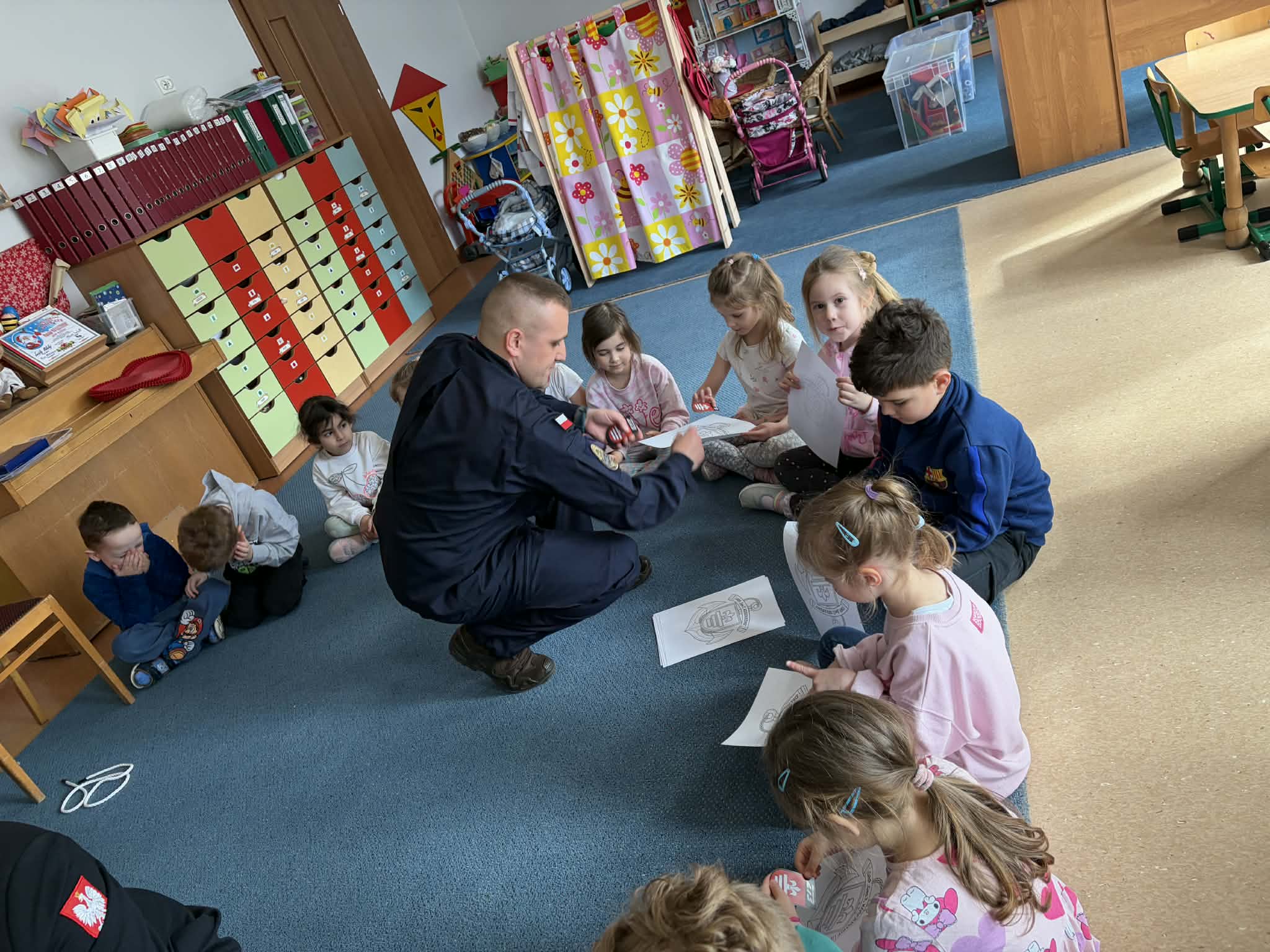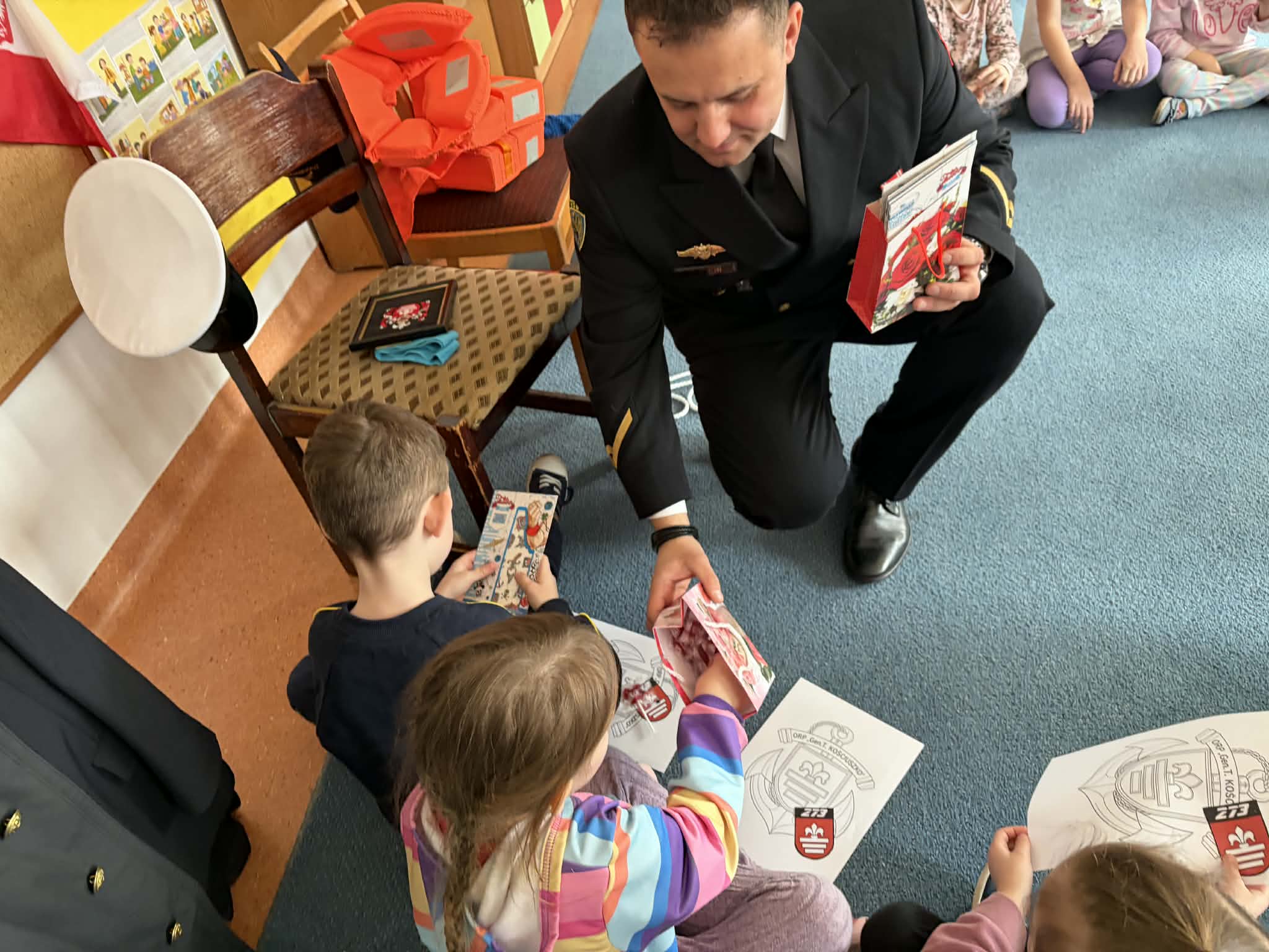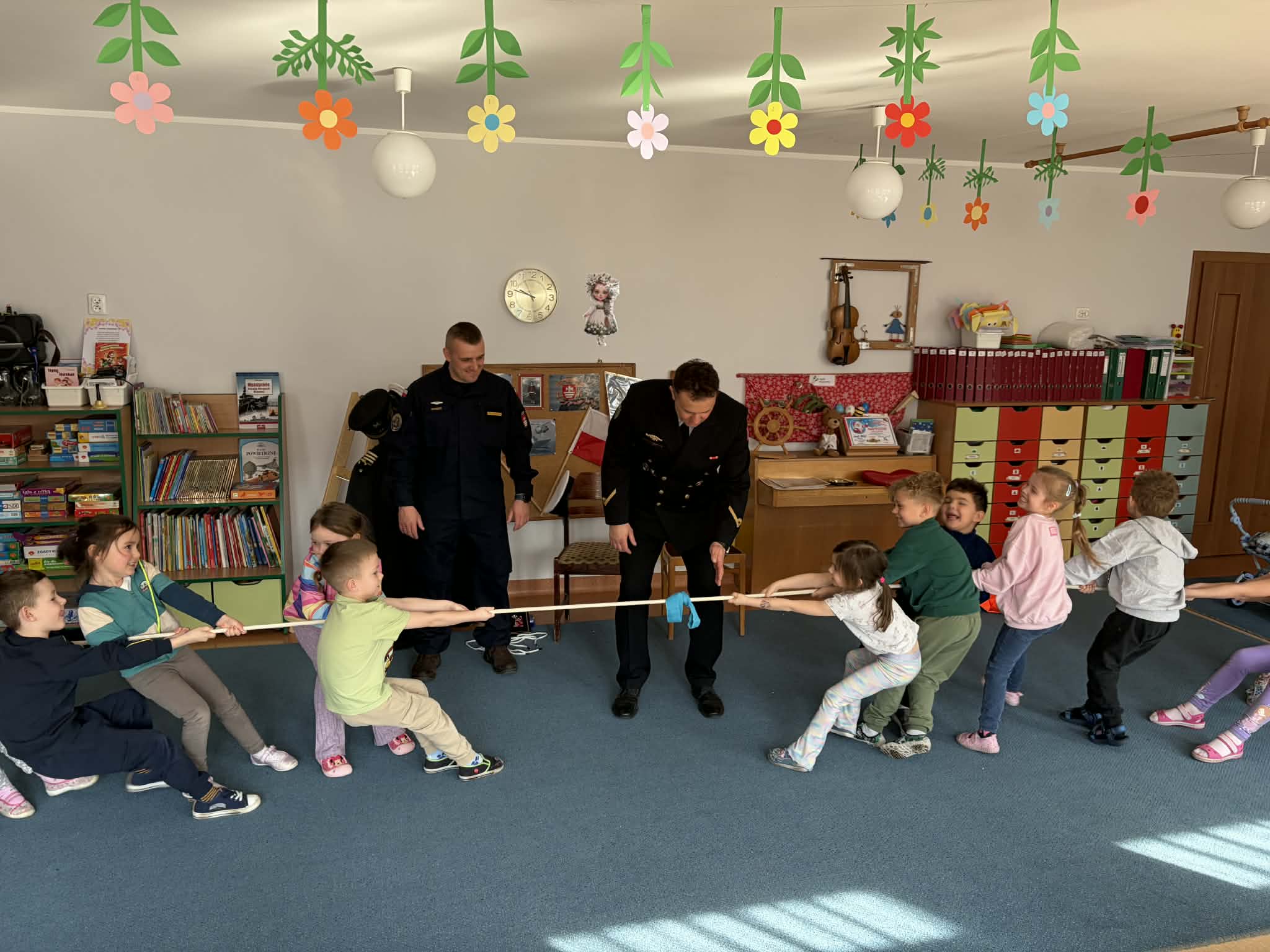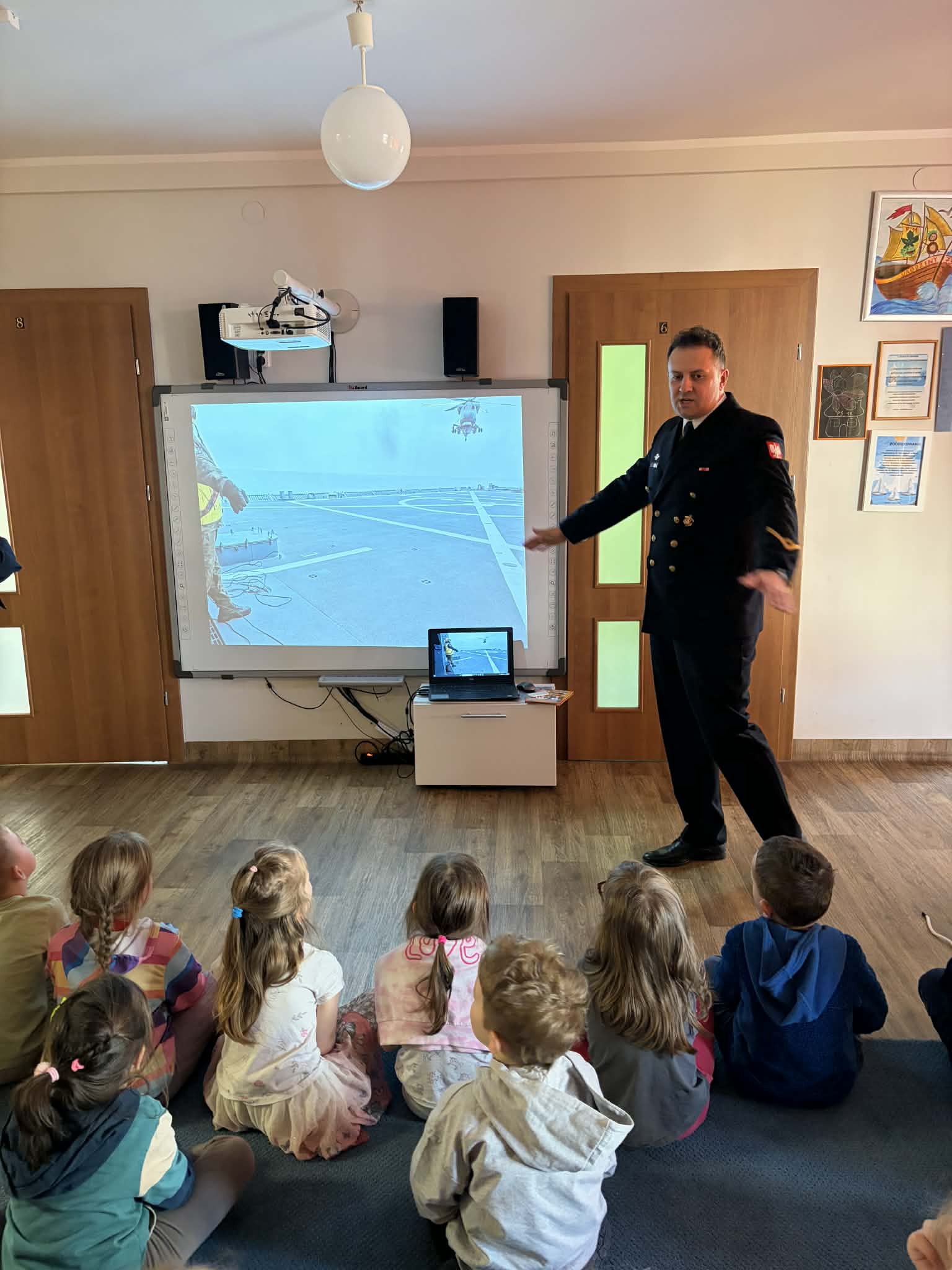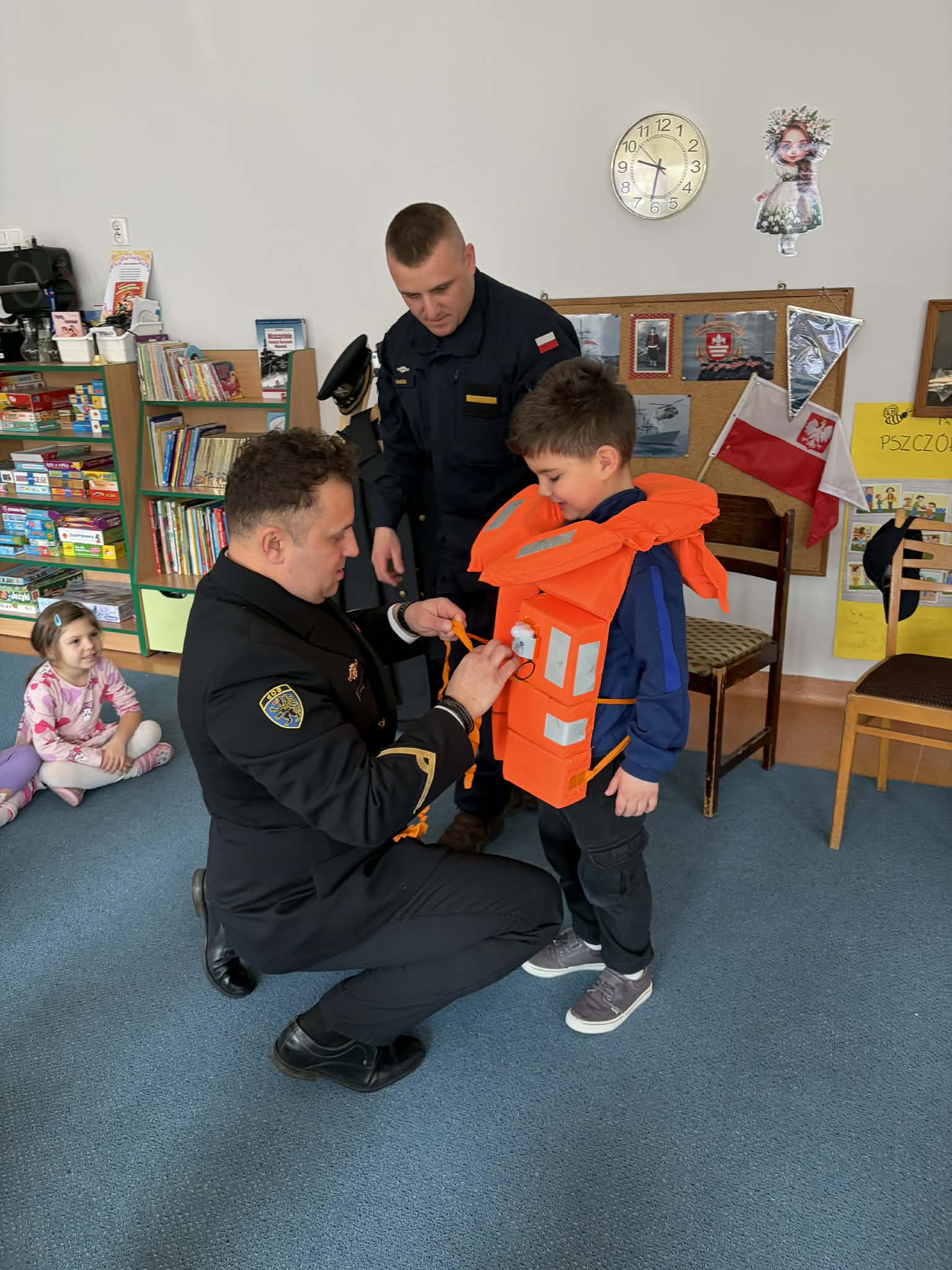 PSZCZÓŁKI MIAŁY OKAZJĘ POZNAĆ ZAŁOGĘ OKRĘTU ORP GEN. TADEUSZ KOŚCIUSZKO, KTÓRA OPOWIEDZIAŁA O SWOJEJ PRACY I SŁUŻBIE NA MORZU. DZIECI DOWIEDZIAŁY SIĘ: JAK WYGLĄDA CODZIENNE ŻYCIE NA OKRĘCIE, CO TO JEST " ŚWIST TRAPOWY", OBEJRZAŁY CIEKAWE FILMY I ZDJĘCIA ORAZ ZOBACZYŁY SPRZĘT RATOWNICZY. PODCZAS SPOTKANIA NAUCZYŁY SIĘ TAKŻE WIĄZAĆ PROSTY WĘZEŁ I WZIĘŁY UDZIAŁ W „CHRZCIE MORSKIM” Z ZABAWAMI, TAKIMI JAK: RZUCANIE DO CELU CZY PRZECIĄGANIE LINY. POZNAŁY RÓWNIEŻ PODSTAWOWE CZĘŚCI OKRĘTU: DZIÓB, RUFA I ŚRÓDOKRĘCIE. SERDECZNIE DZIĘKUJEMY ZAŁODZE ZA POŚWIĘCONY CZAS I INTERESUJĄCE SPOTKANIE.
