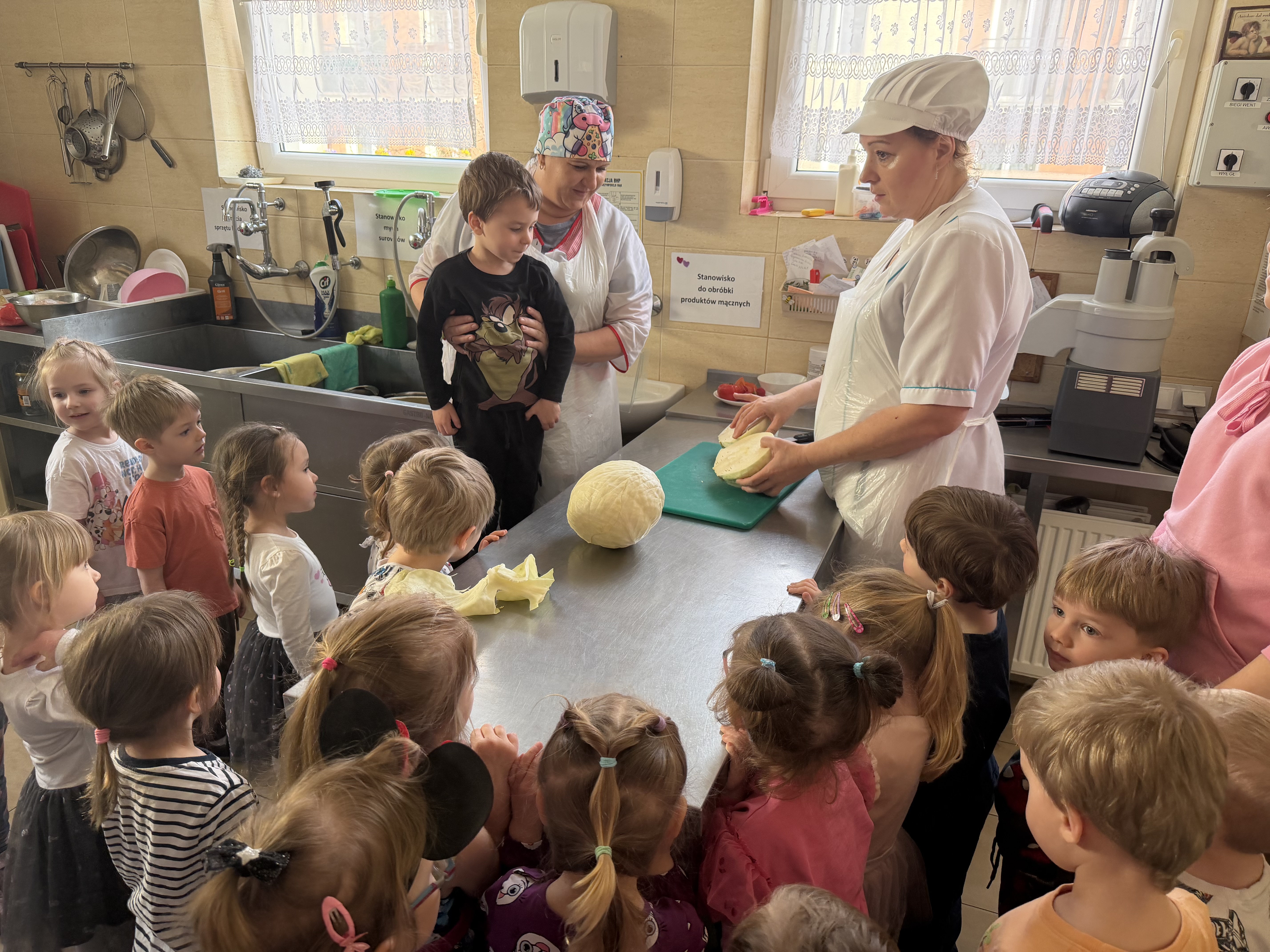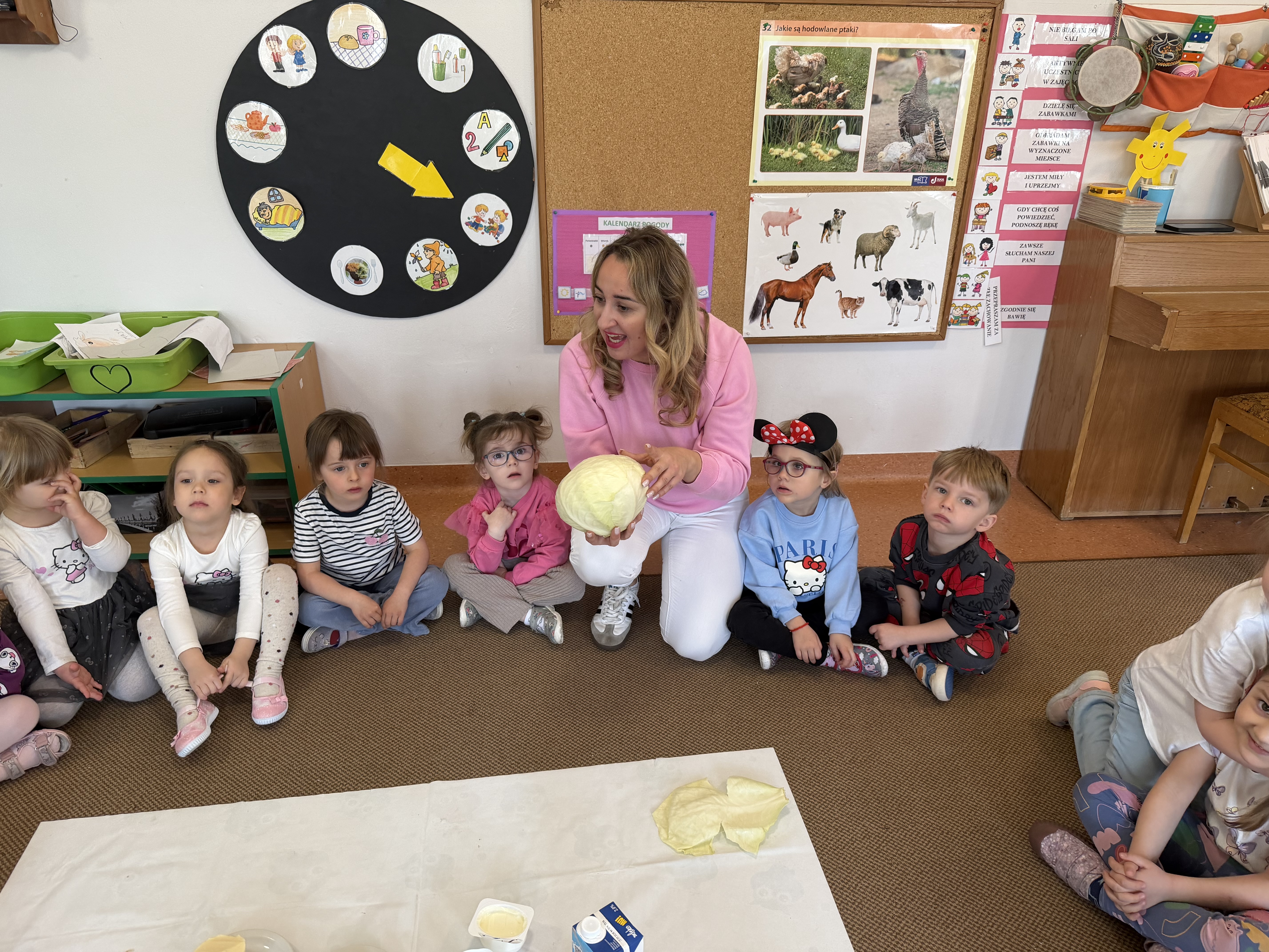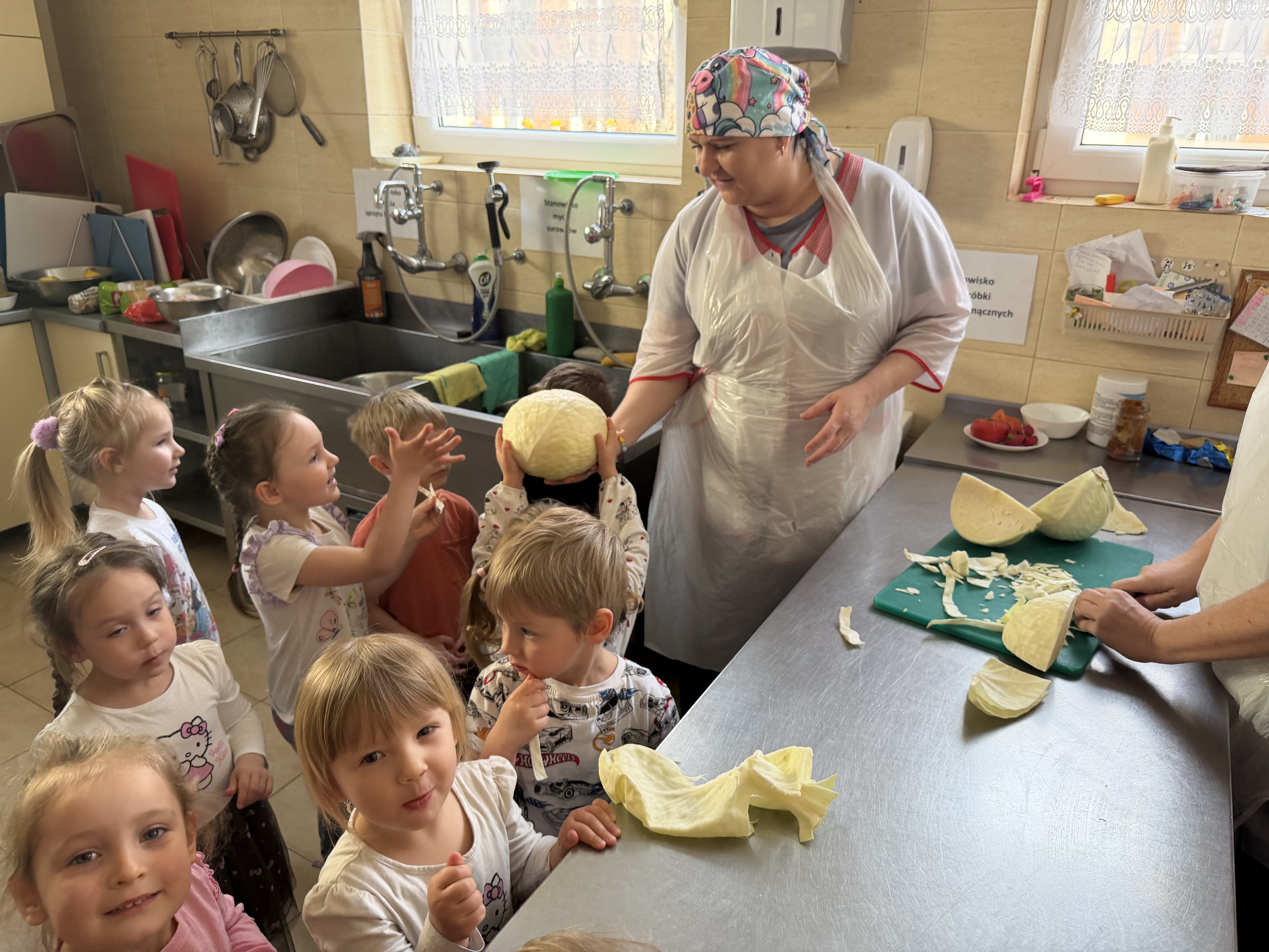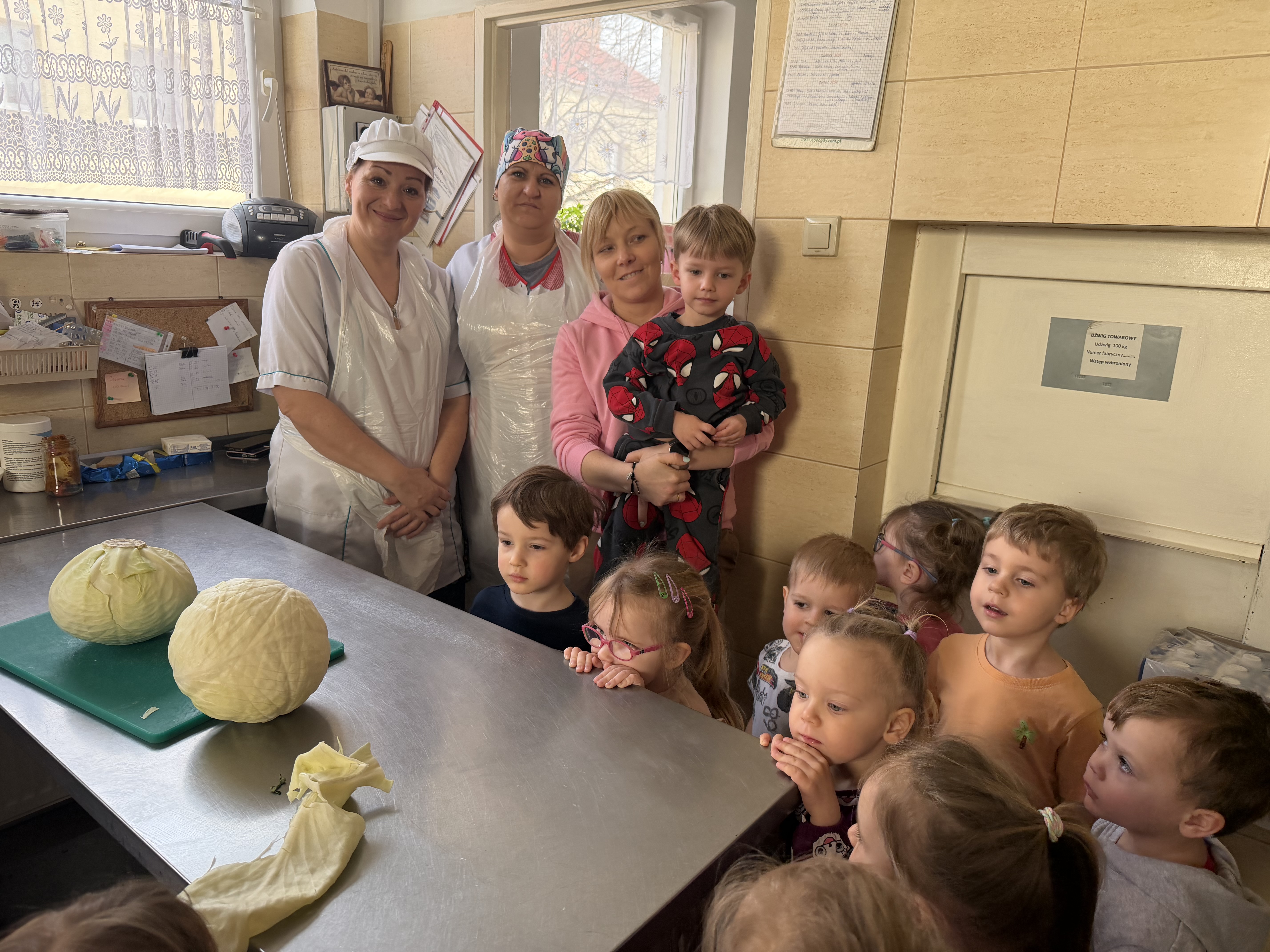 Poznaliśmy również kapustę – wiemy już, jak smakuje, czym są jej liście oraz co to jest głąb kapusty. Serdecznie dziękujemy naszym ❤️WSPANIAŁYM PANIOM KUCHARKOM❤️ - pani Oli, Ani i Natalce za możliwość wspólnego przygotowania zupy z młodej kapusty. To było dla nas niezwykle ekscytujące i radosne doświadczenie!;)