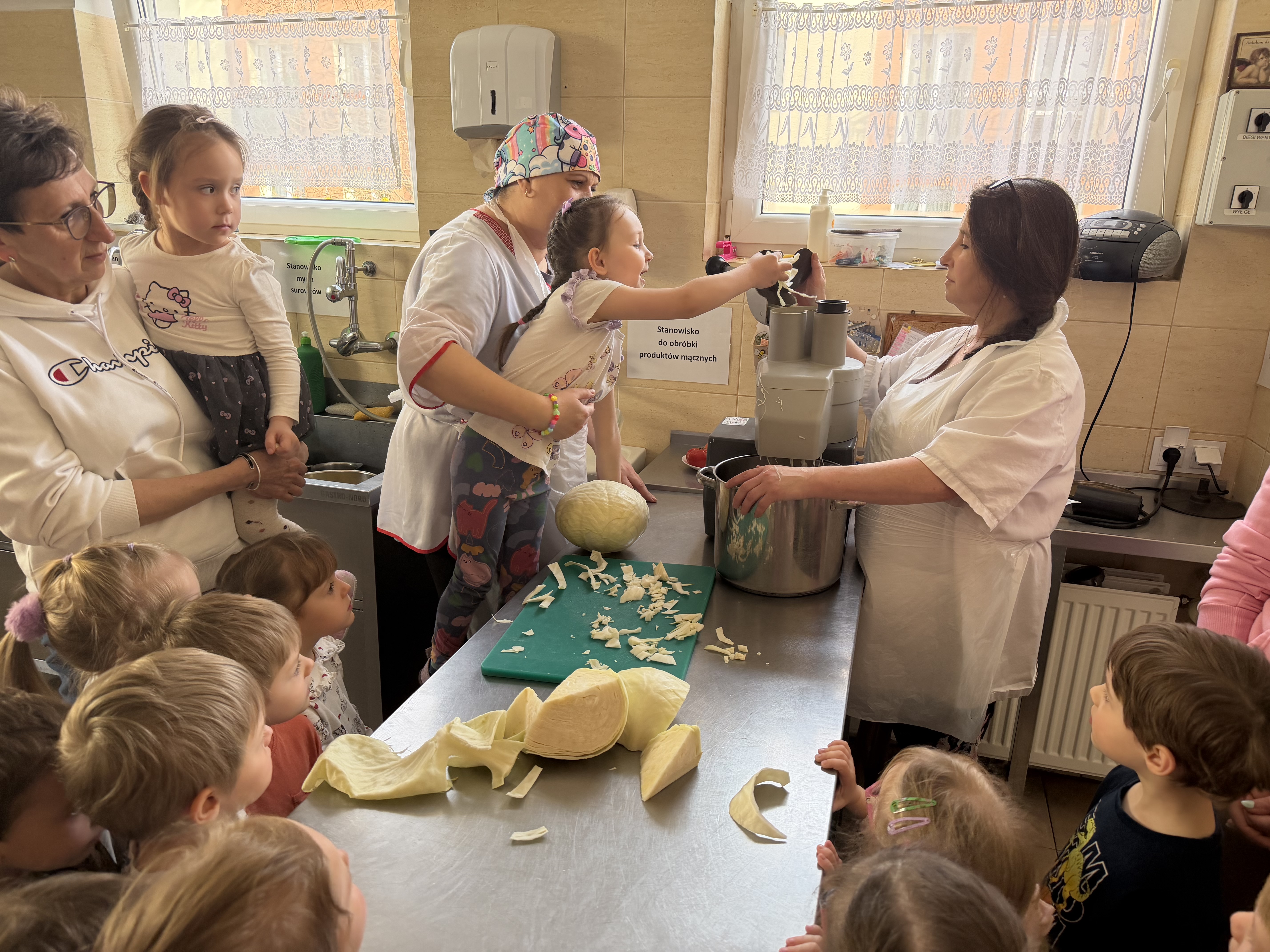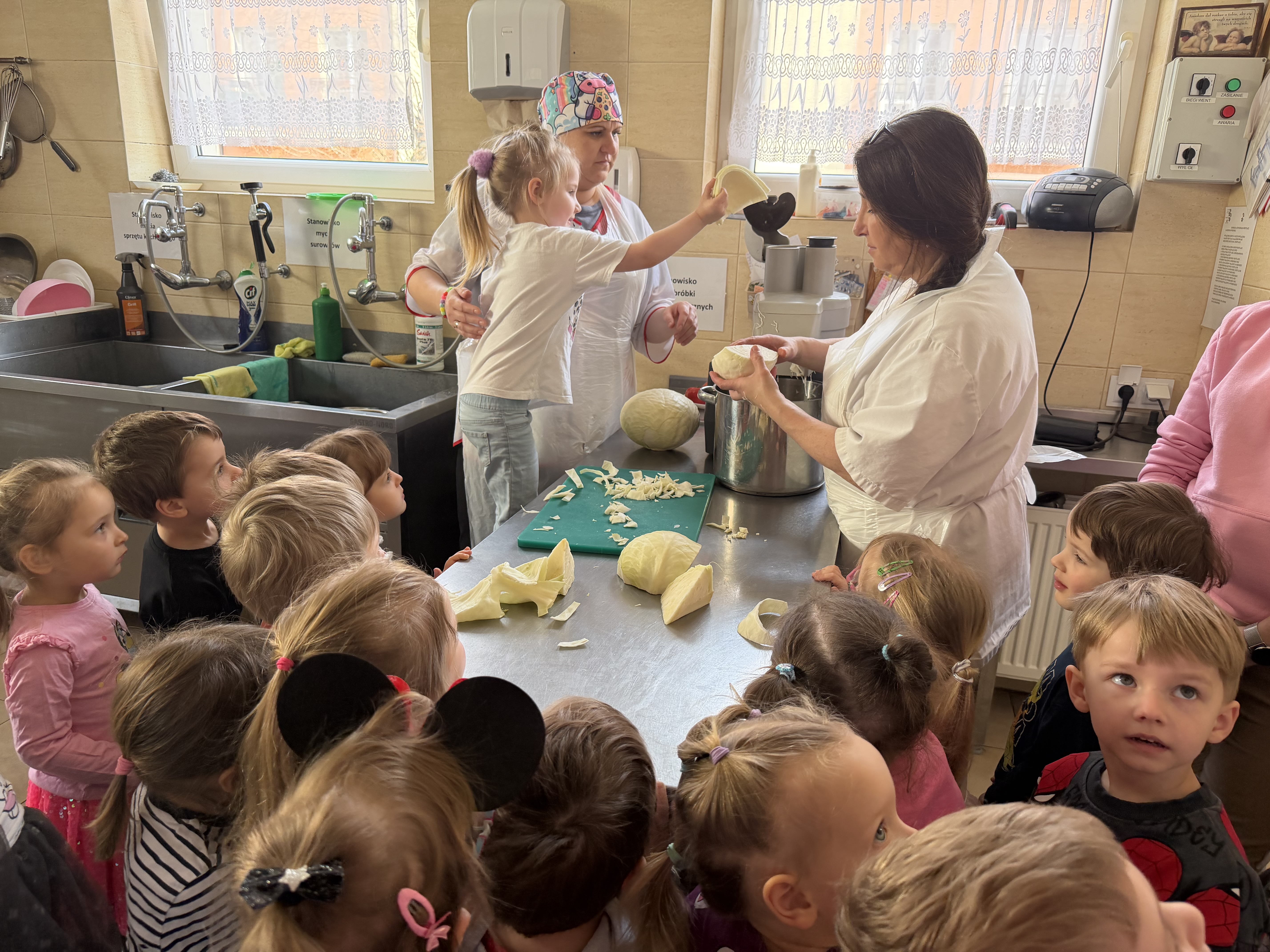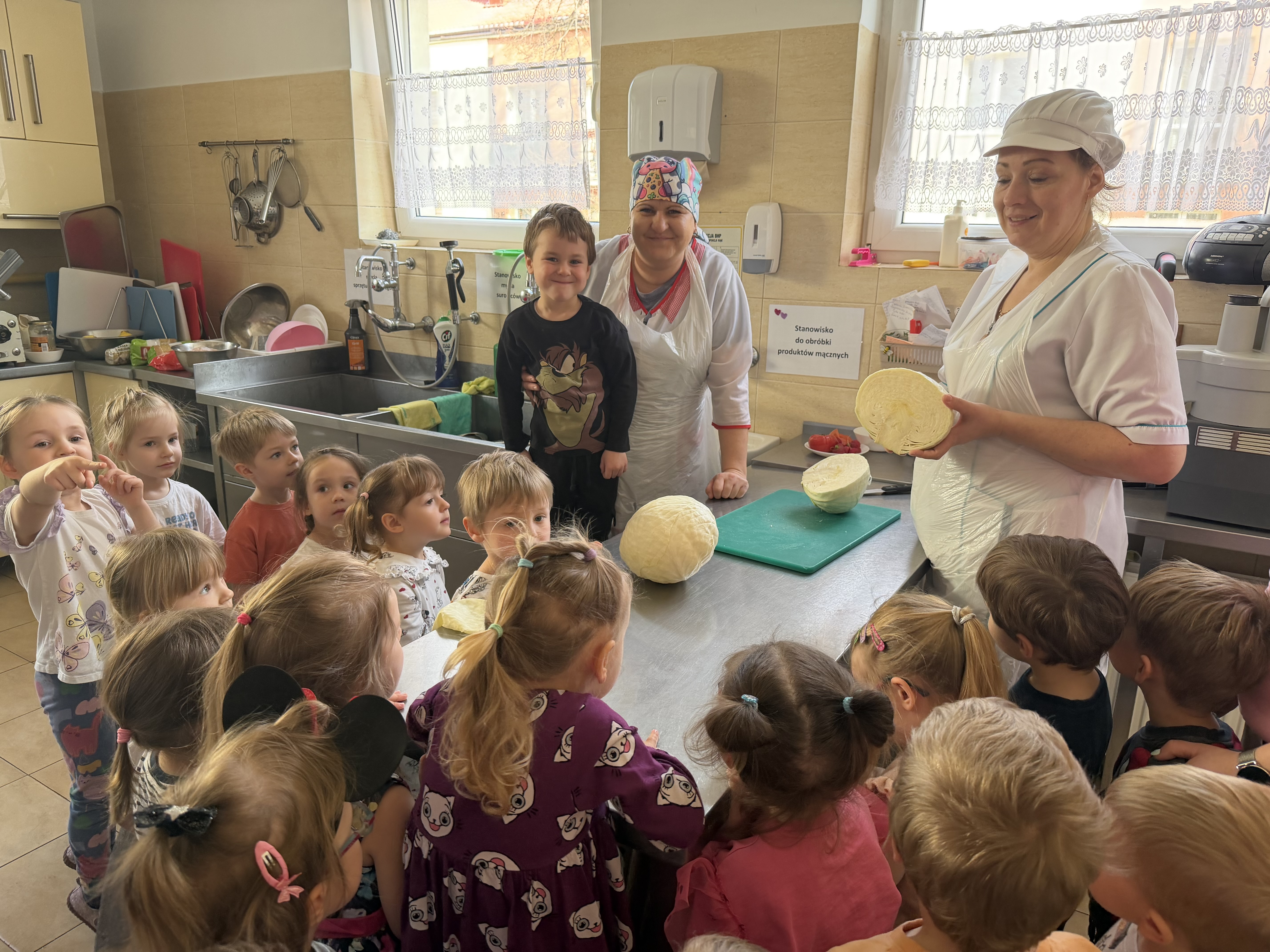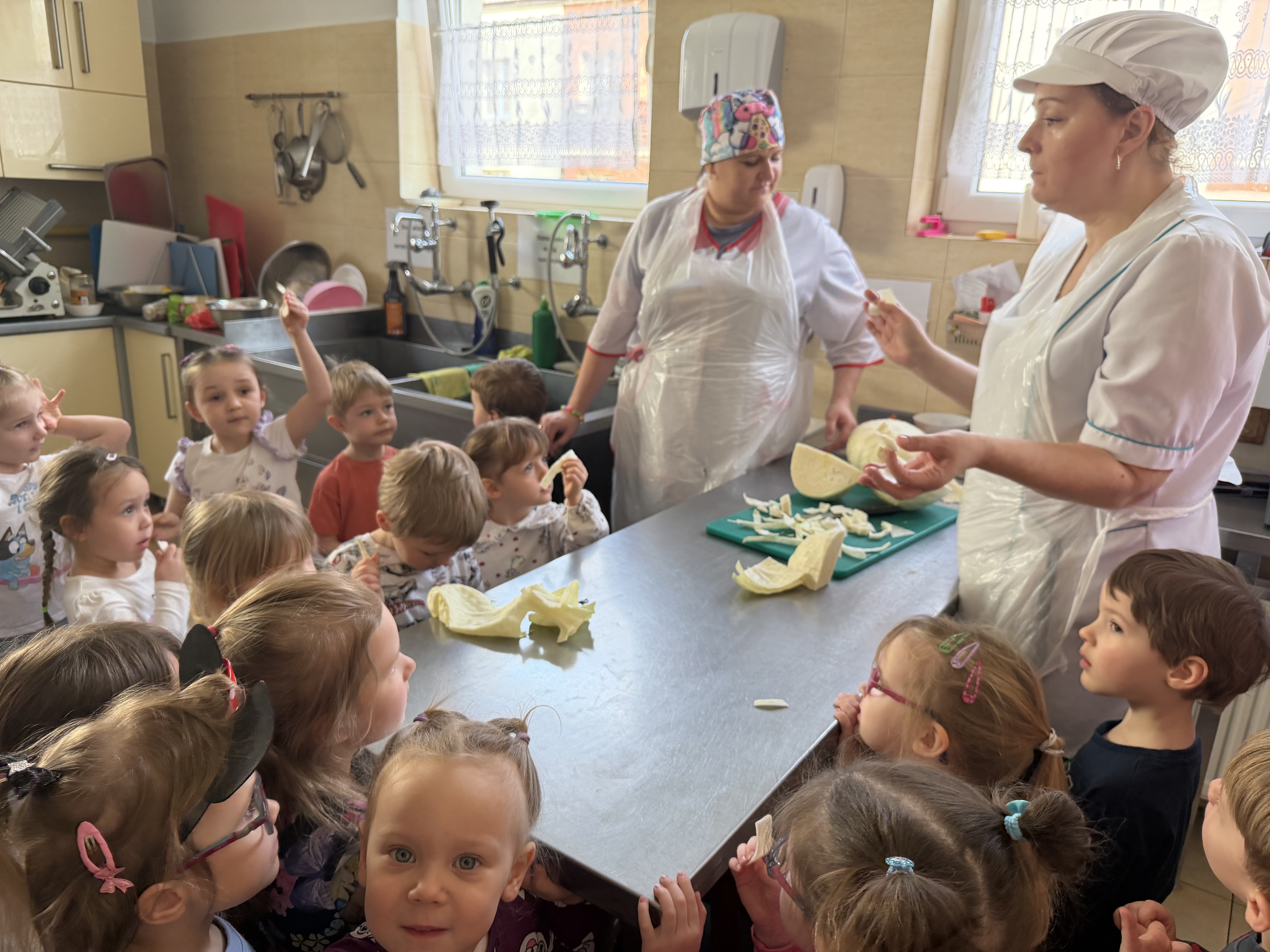 Poznaliśmy również kapustę – wiemy już, jak smakuje, czym są jej liście oraz co to jest głąb kapusty. Serdecznie dziękujemy naszym ❤️WSPANIAŁYM PANIOM KUCHARKOM❤️ - pani Oli, Ani i Natalce za możliwość wspólnego przygotowania zupy z młodej kapusty. To było dla nas niezwykle ekscytujące i radosne doświadczenie!;)