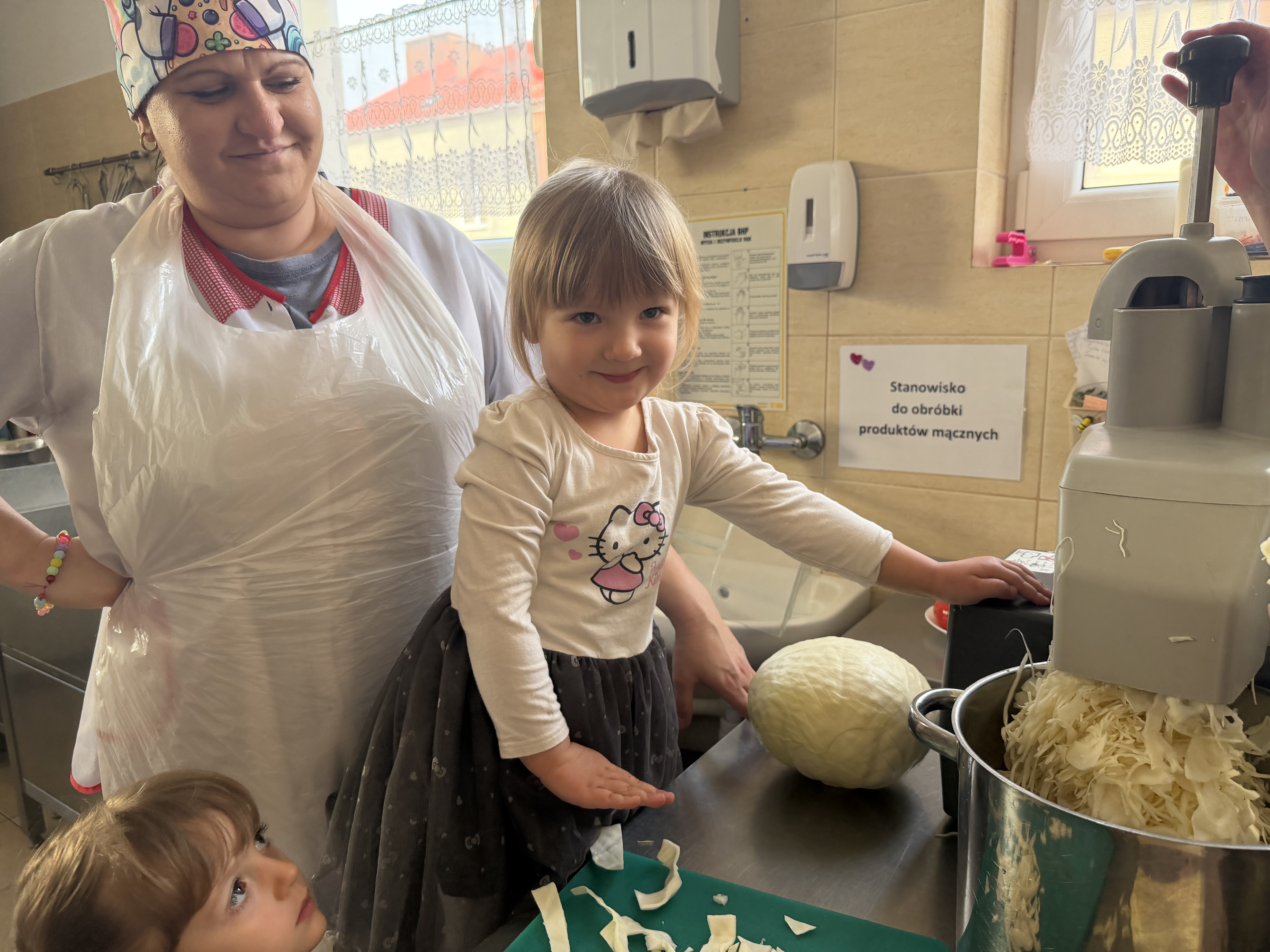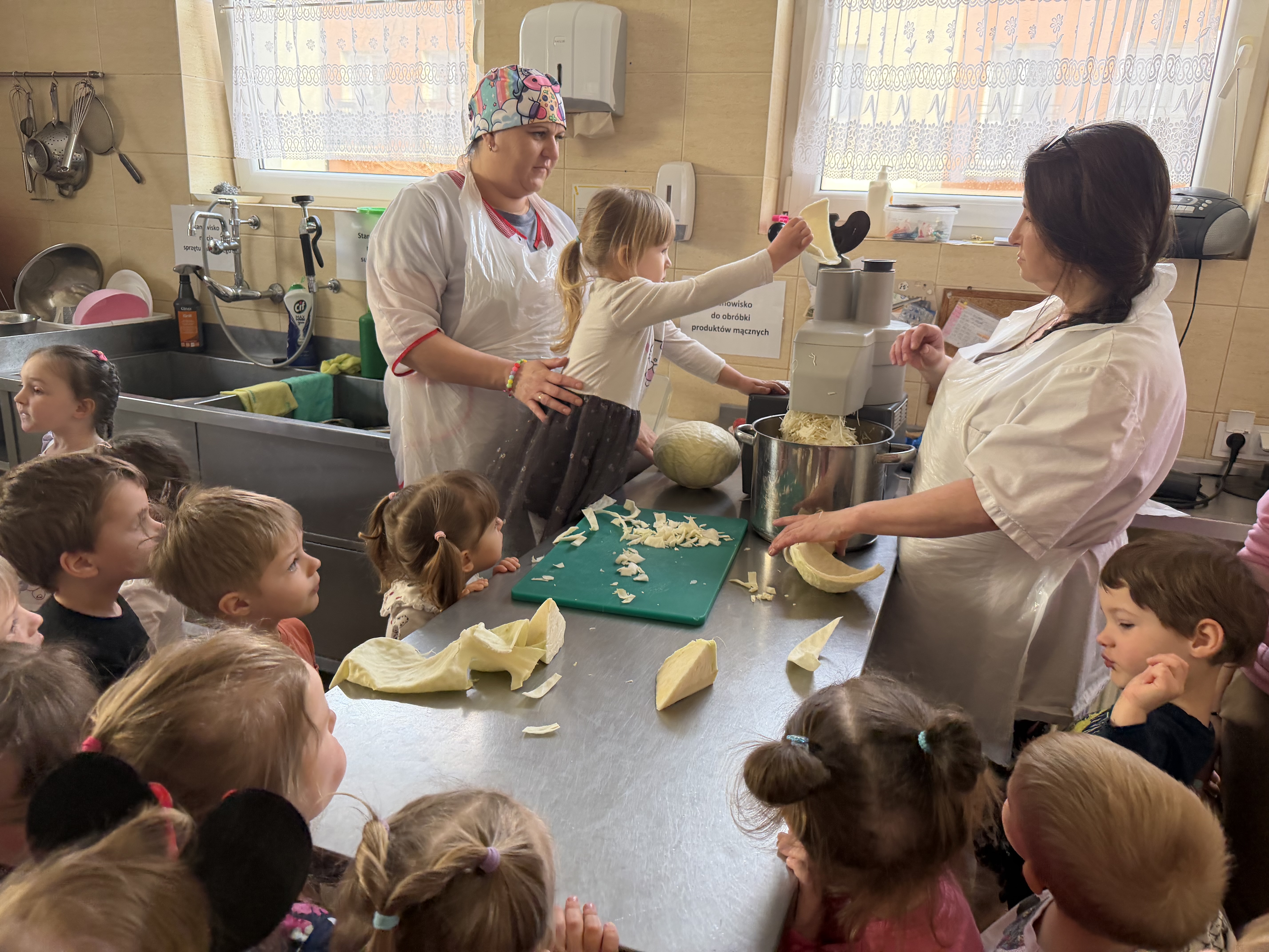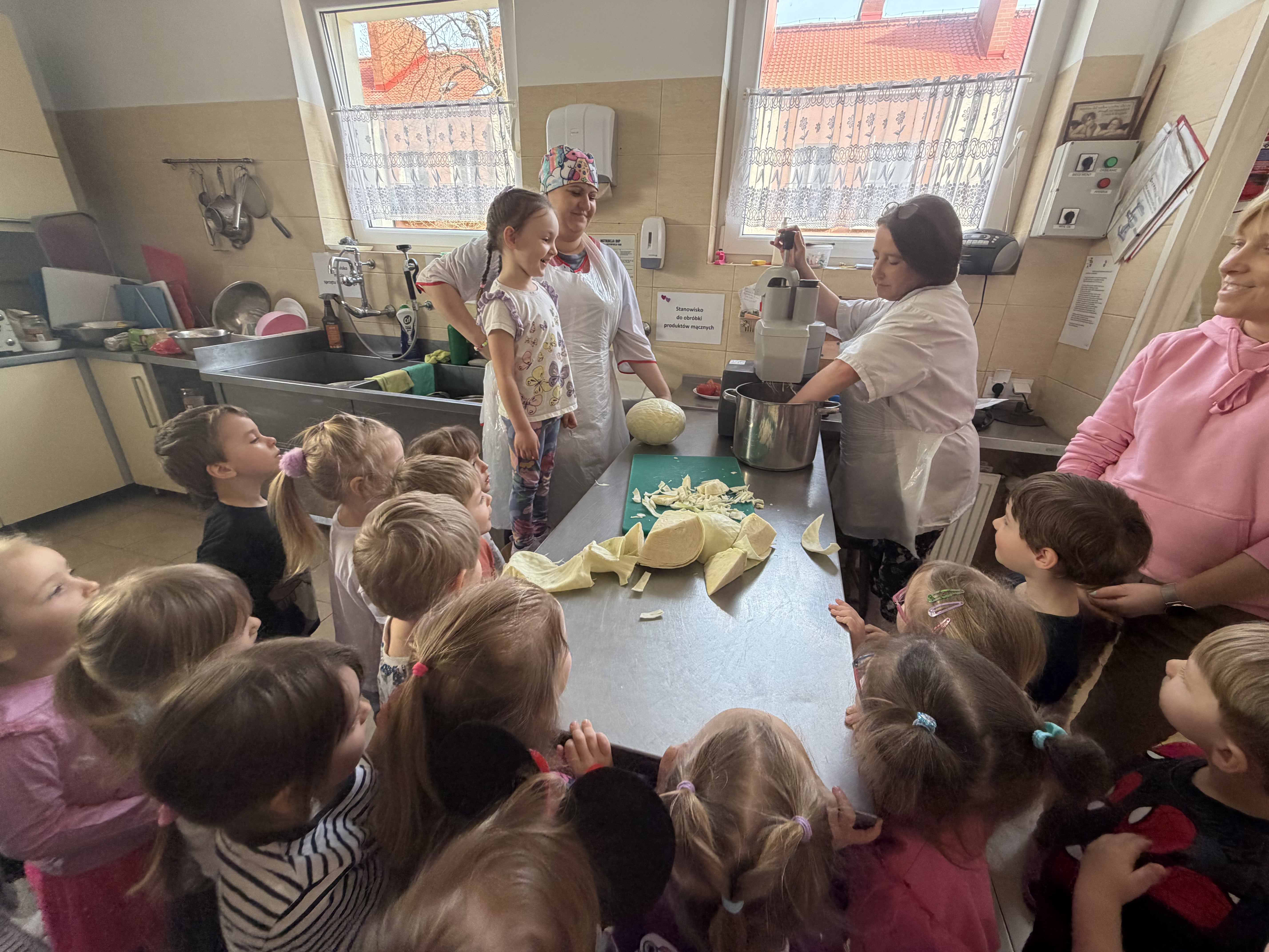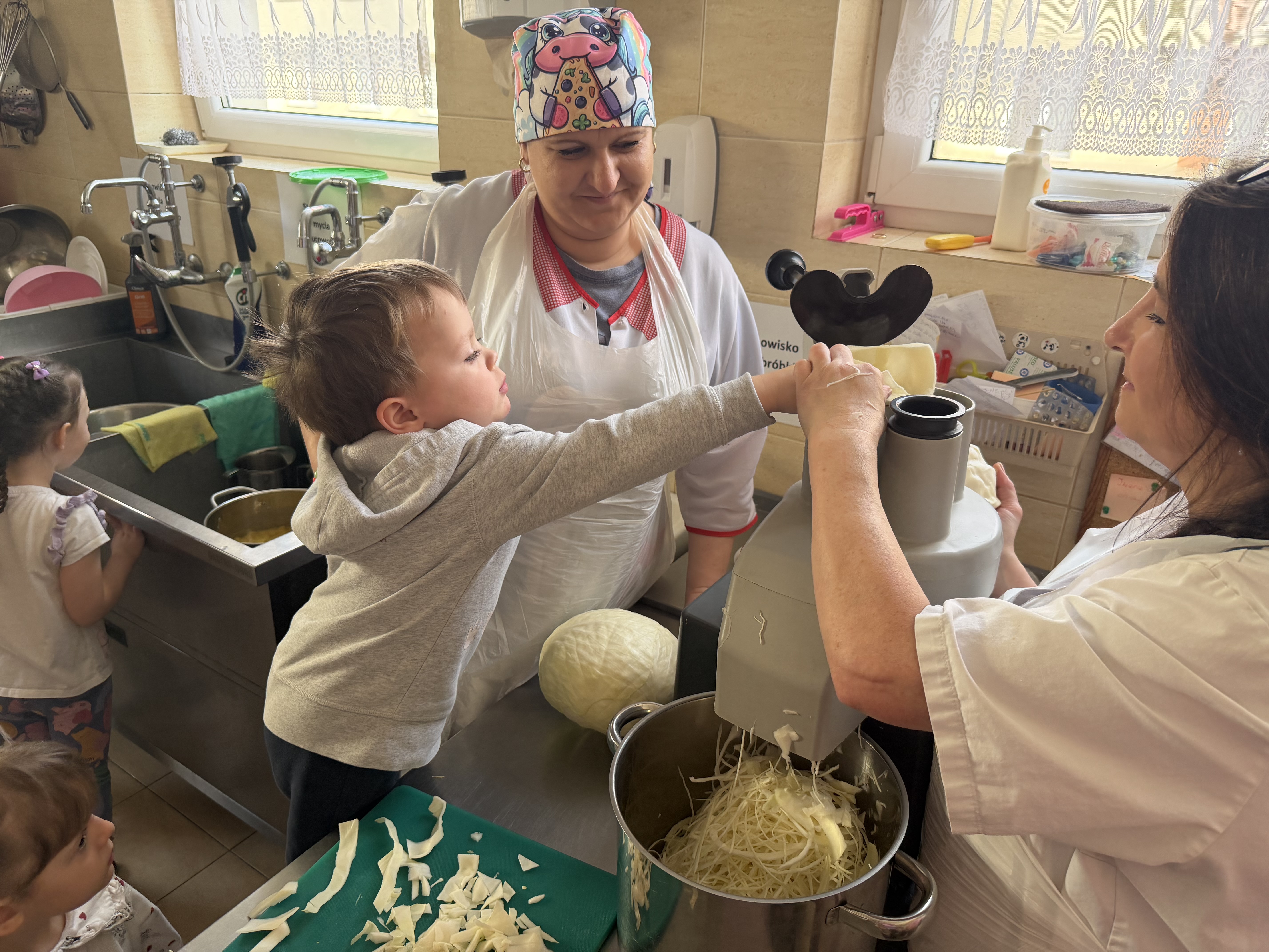 Poznaliśmy również kapustę – wiemy już, jak smakuje, czym są jej liście oraz co to jest głąb kapusty. Serdecznie dziękujemy naszym ❤️WSPANIAŁYM PANIOM KUCHARKOM❤️ - pani Oli, Ani i Natalce za możliwość wspólnego przygotowania zupy z młodej kapusty. To było dla nas niezwykle ekscytujące i radosne doświadczenie!;)