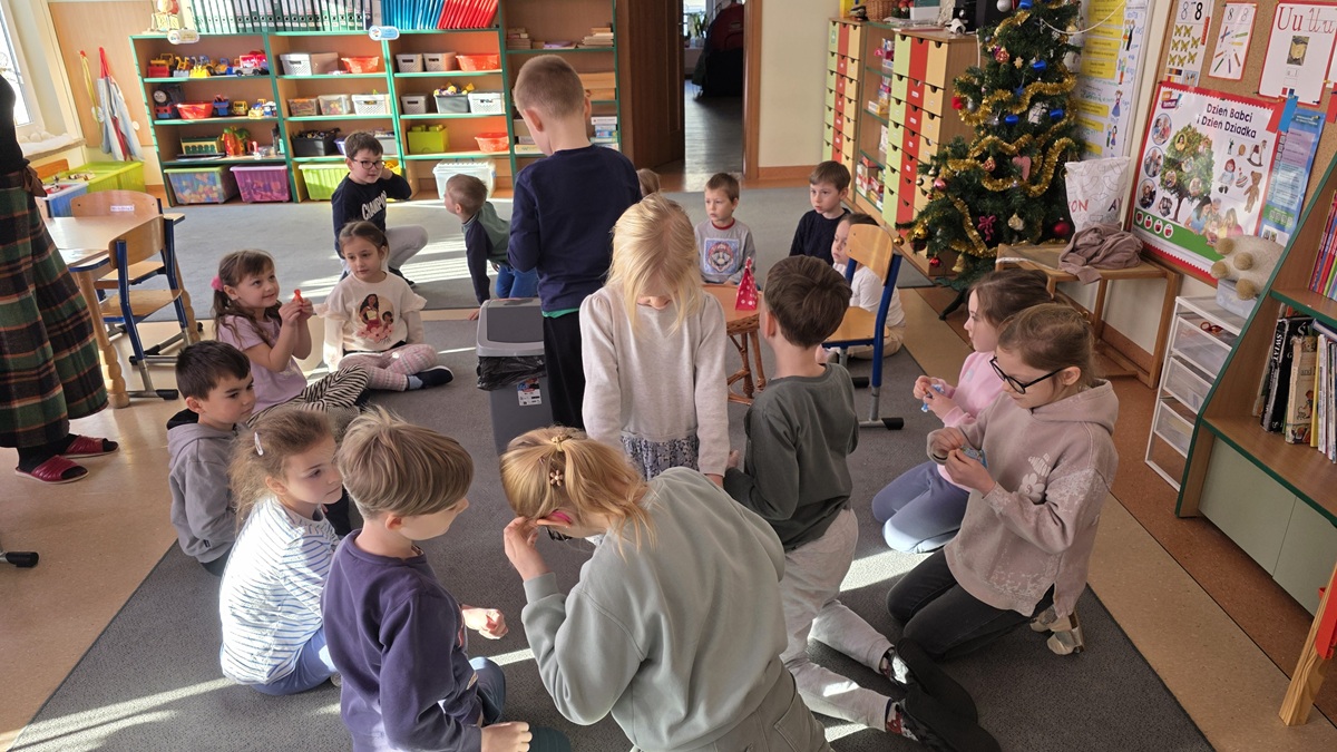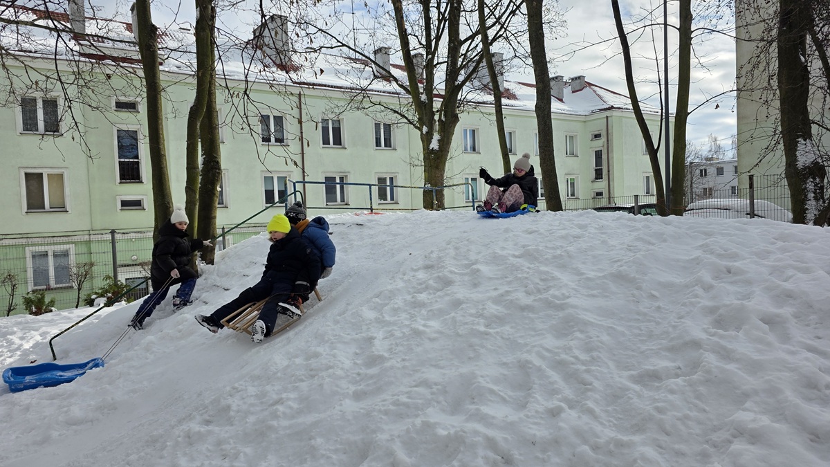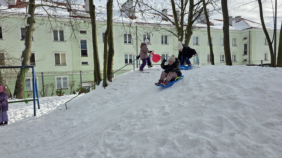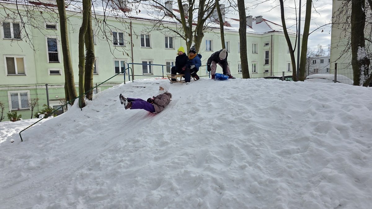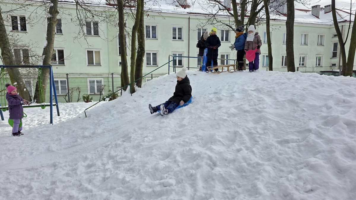 Nasi niektórzy koledzy i koleżanki kończą już 7 lat. W tym roku zima nas rozpieszcza śniegiem - gdy górka nie jest oblodzona chętnie korzystamy z zabaw na śniegu.