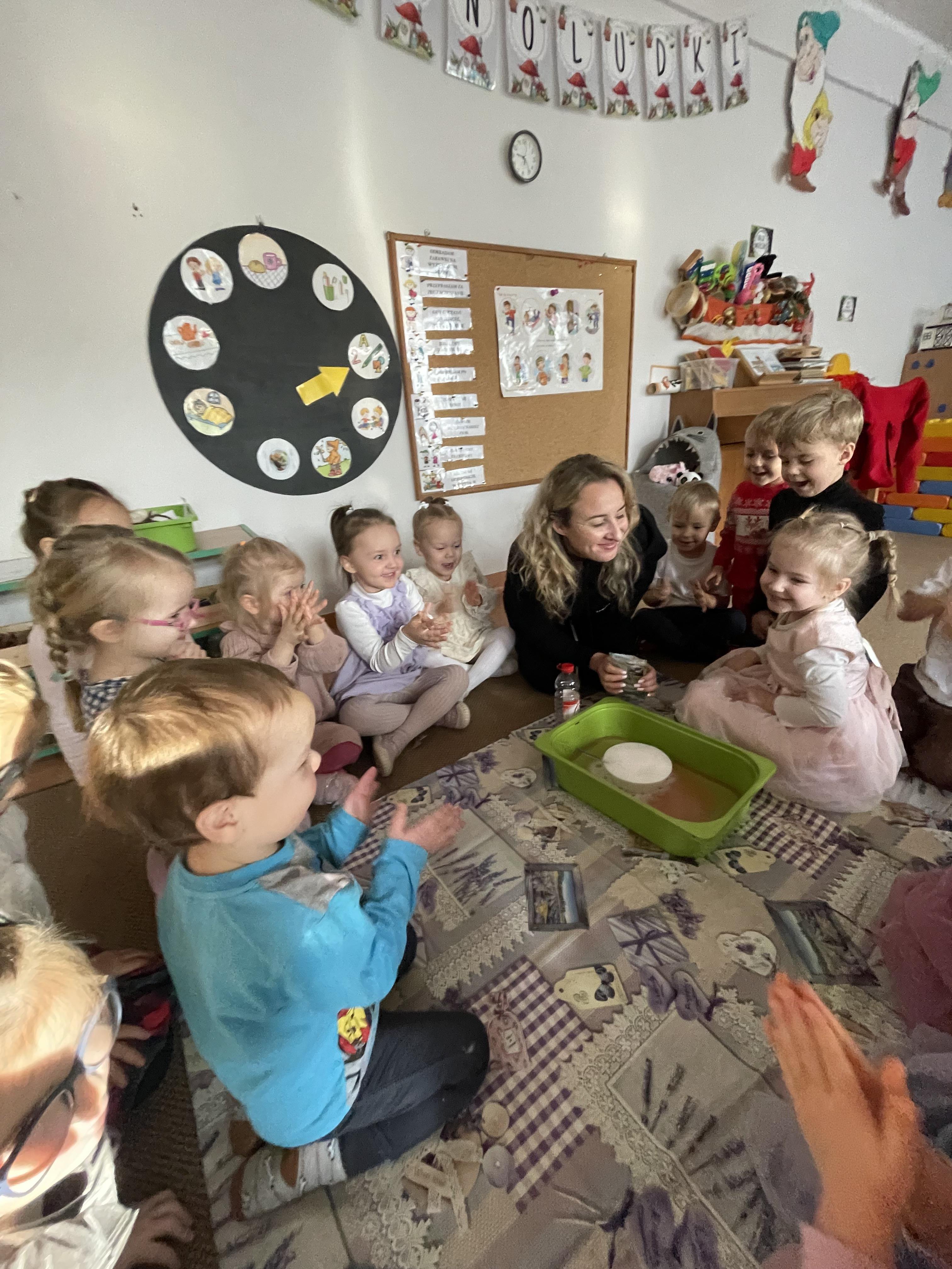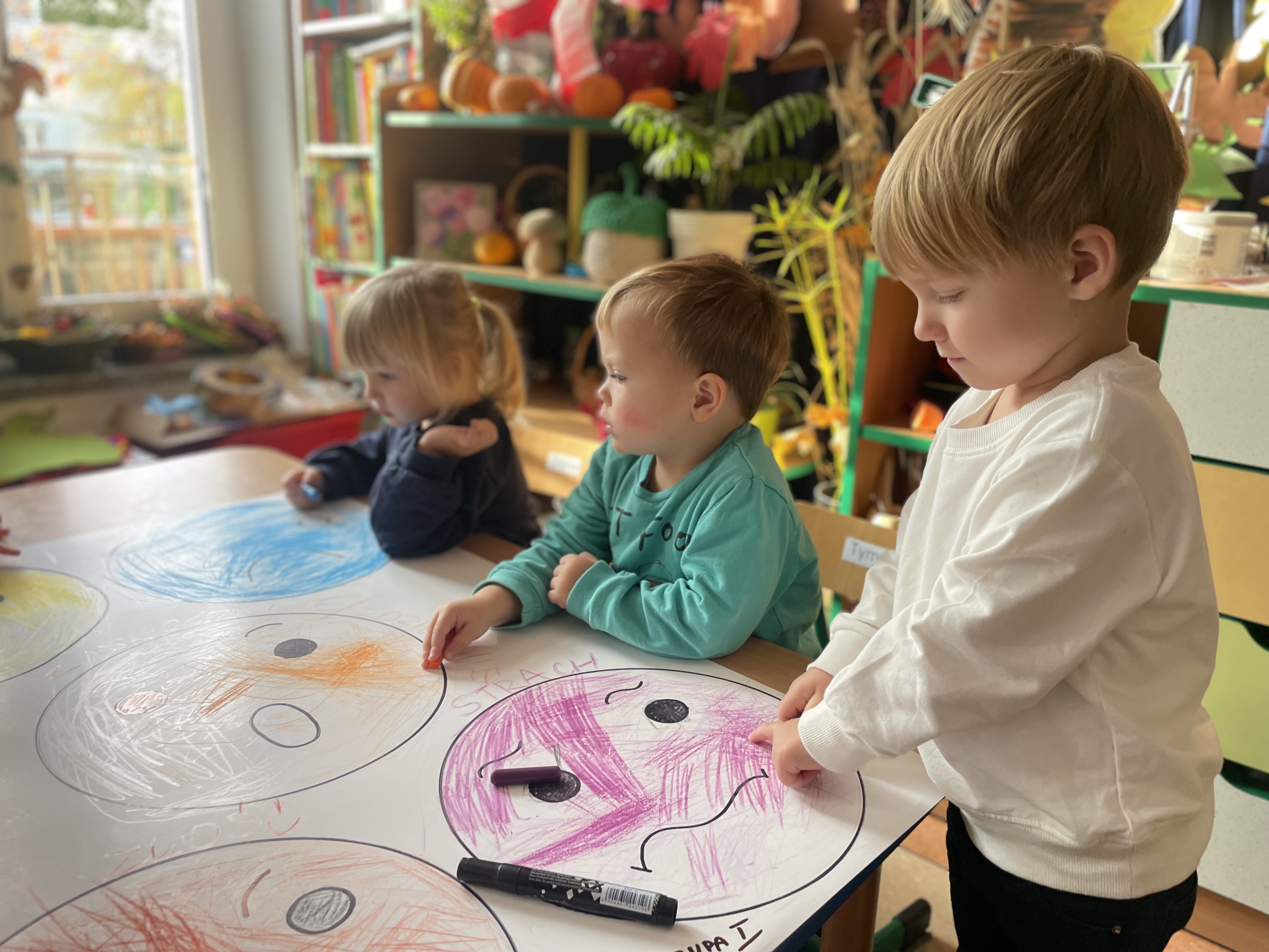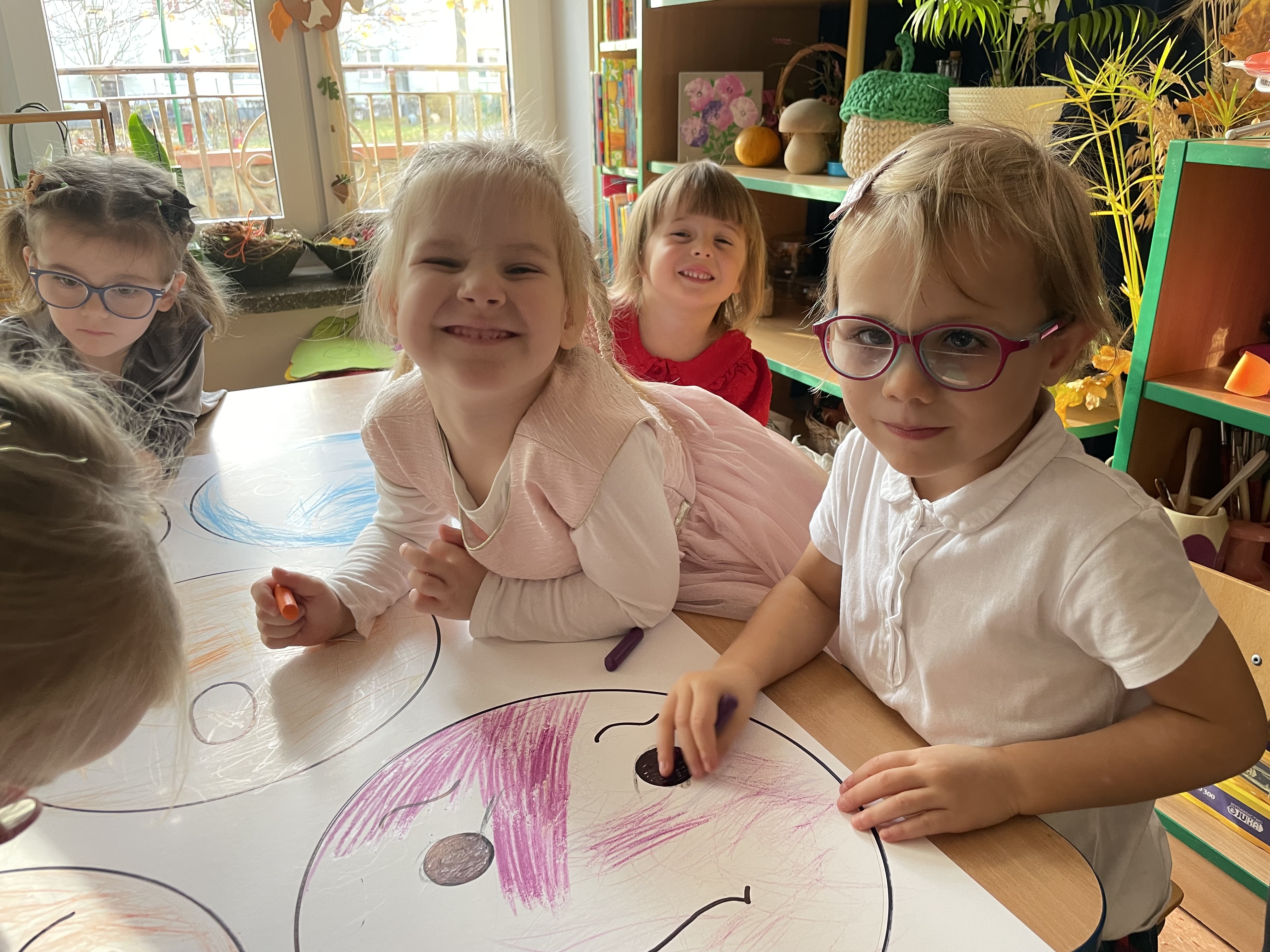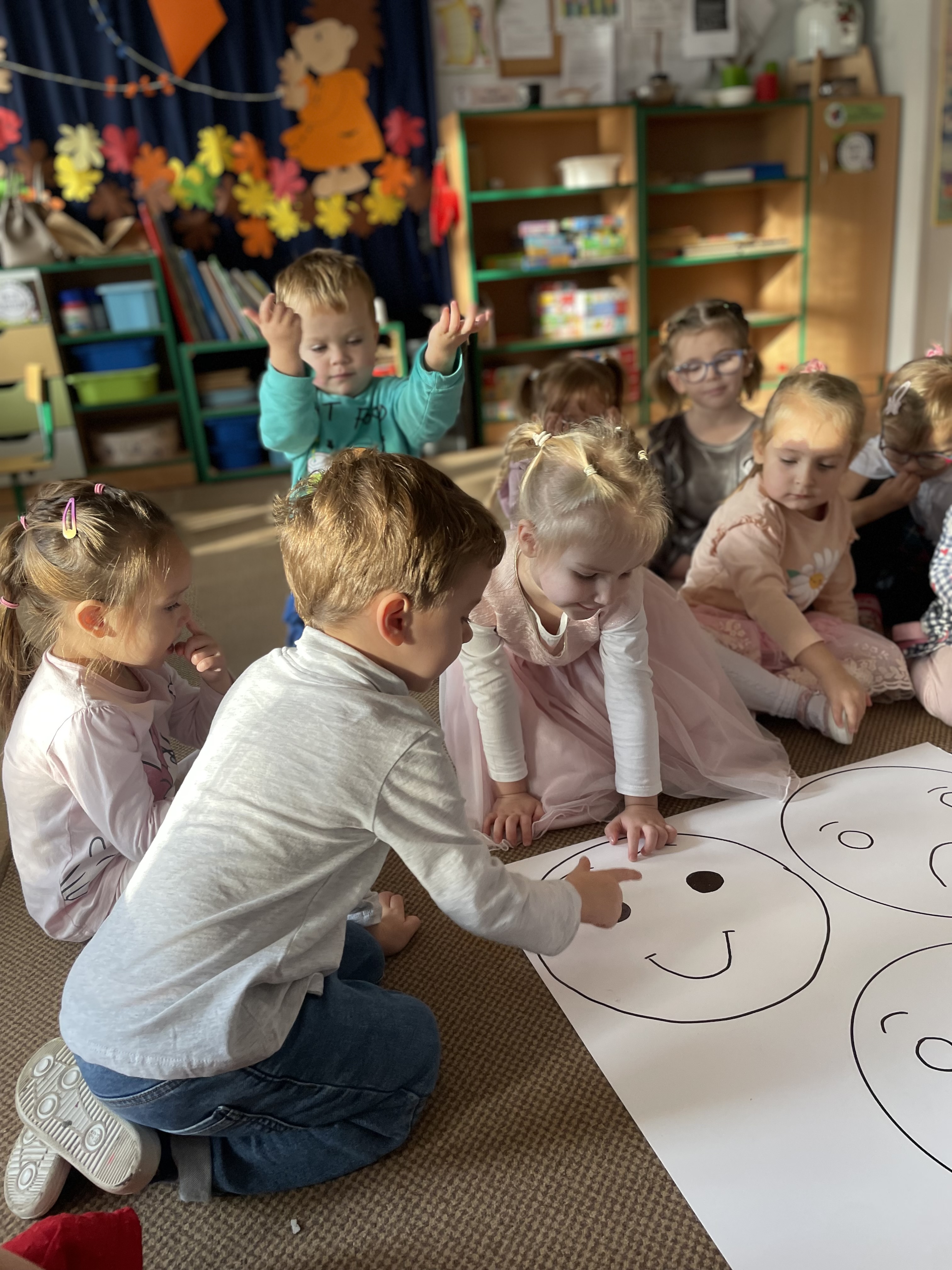 W naszej grupie odbyły się wyjątkowe zajęcia z panią pedagog poświęcone rozpoznawaniu i nazywaniu emocji. Dzieci z dużym zainteresowaniem uczestniczyły w rozmowach i zabawach, które pomagały im lepiej zrozumieć własne uczucia oraz emocje innych osób.