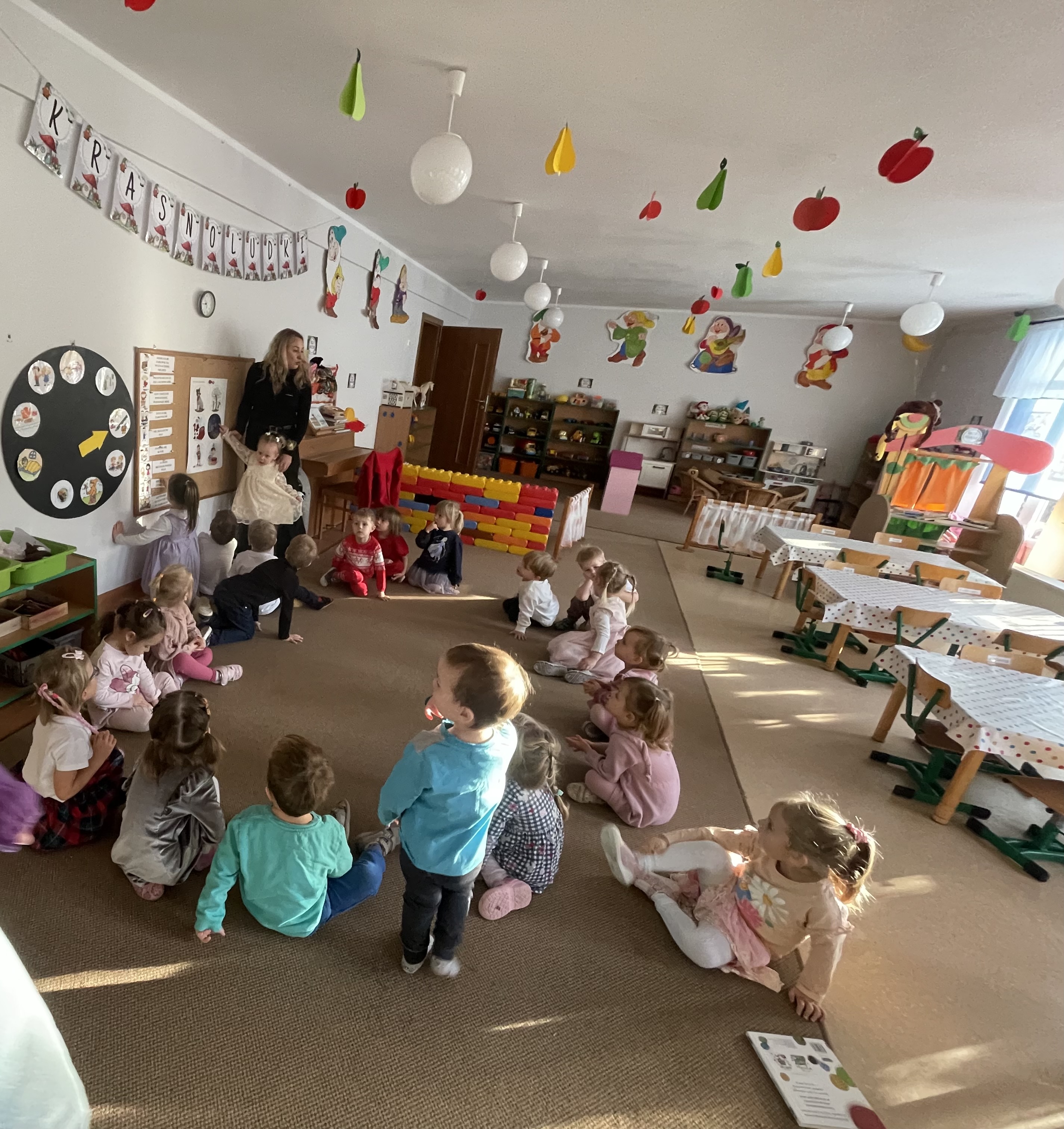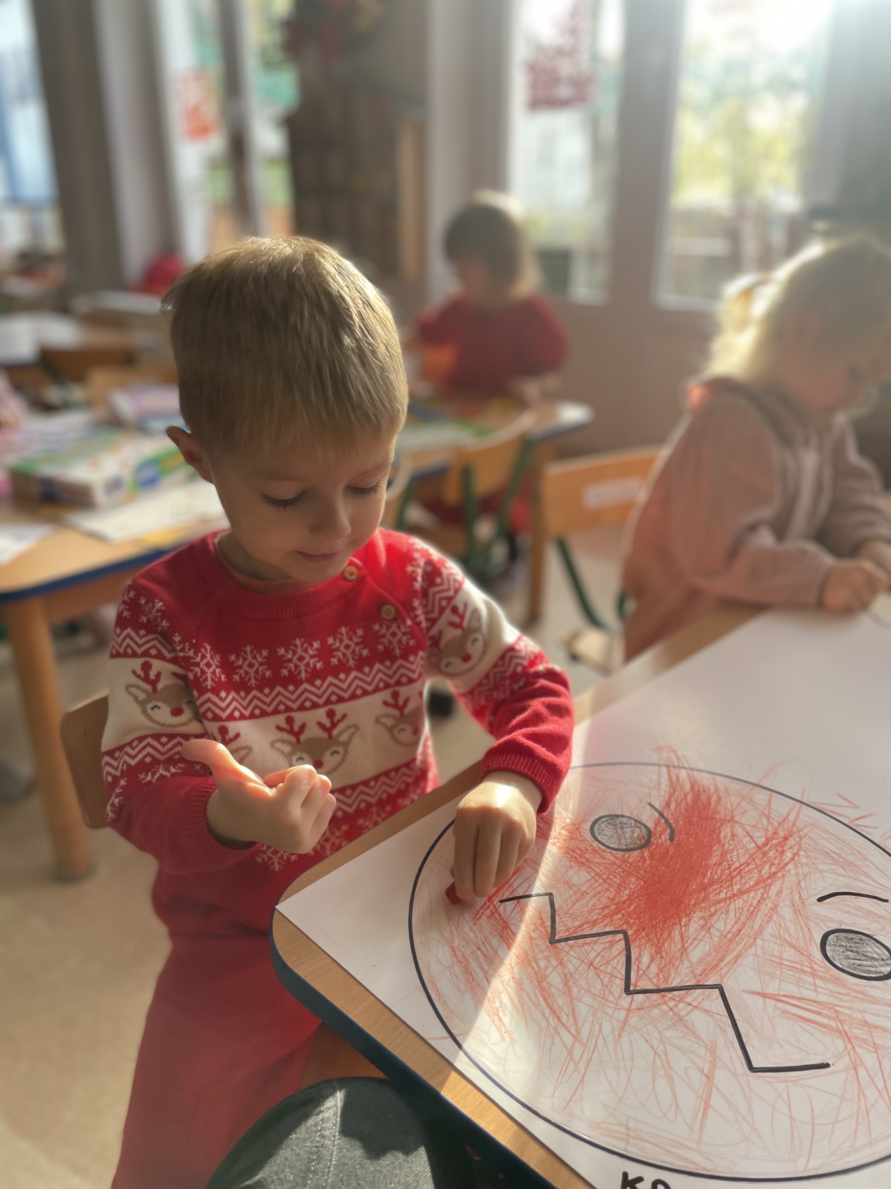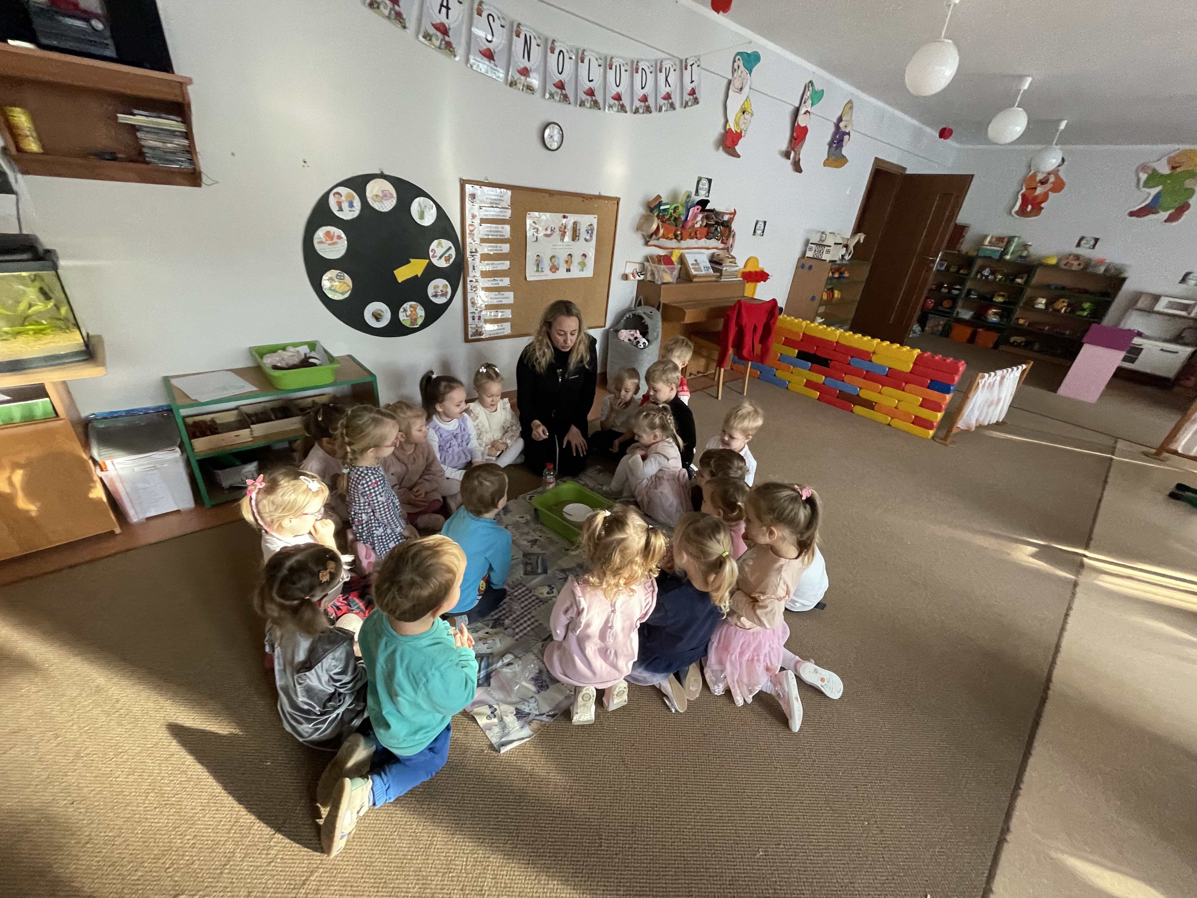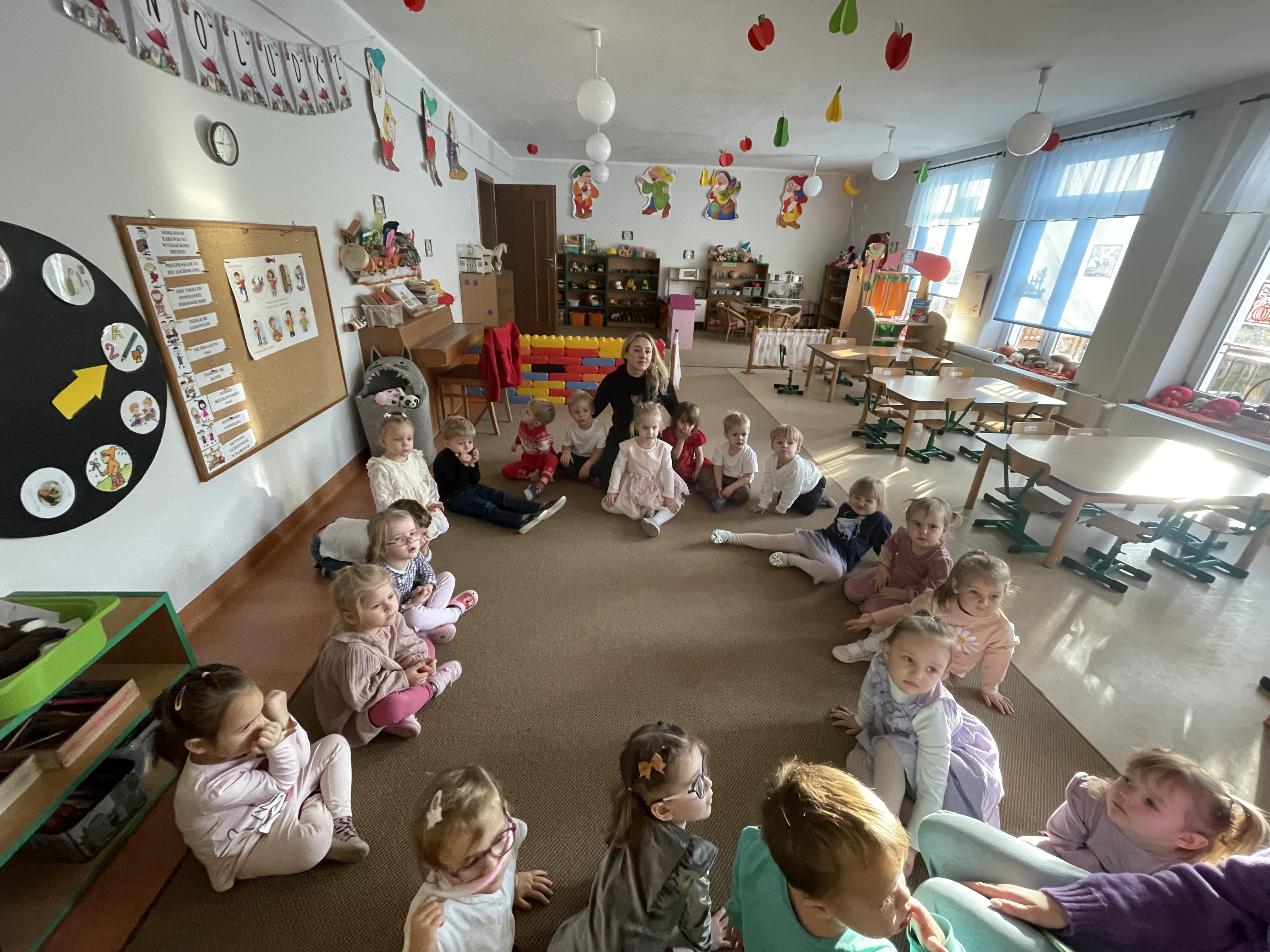 W naszej grupie odbyły się wyjątkowe zajęcia z panią pedagog poświęcone rozpoznawaniu i nazywaniu emocji. Dzieci z dużym zainteresowaniem uczestniczyły w rozmowach i zabawach, które pomagały im lepiej zrozumieć własne uczucia oraz emocje innych osób.