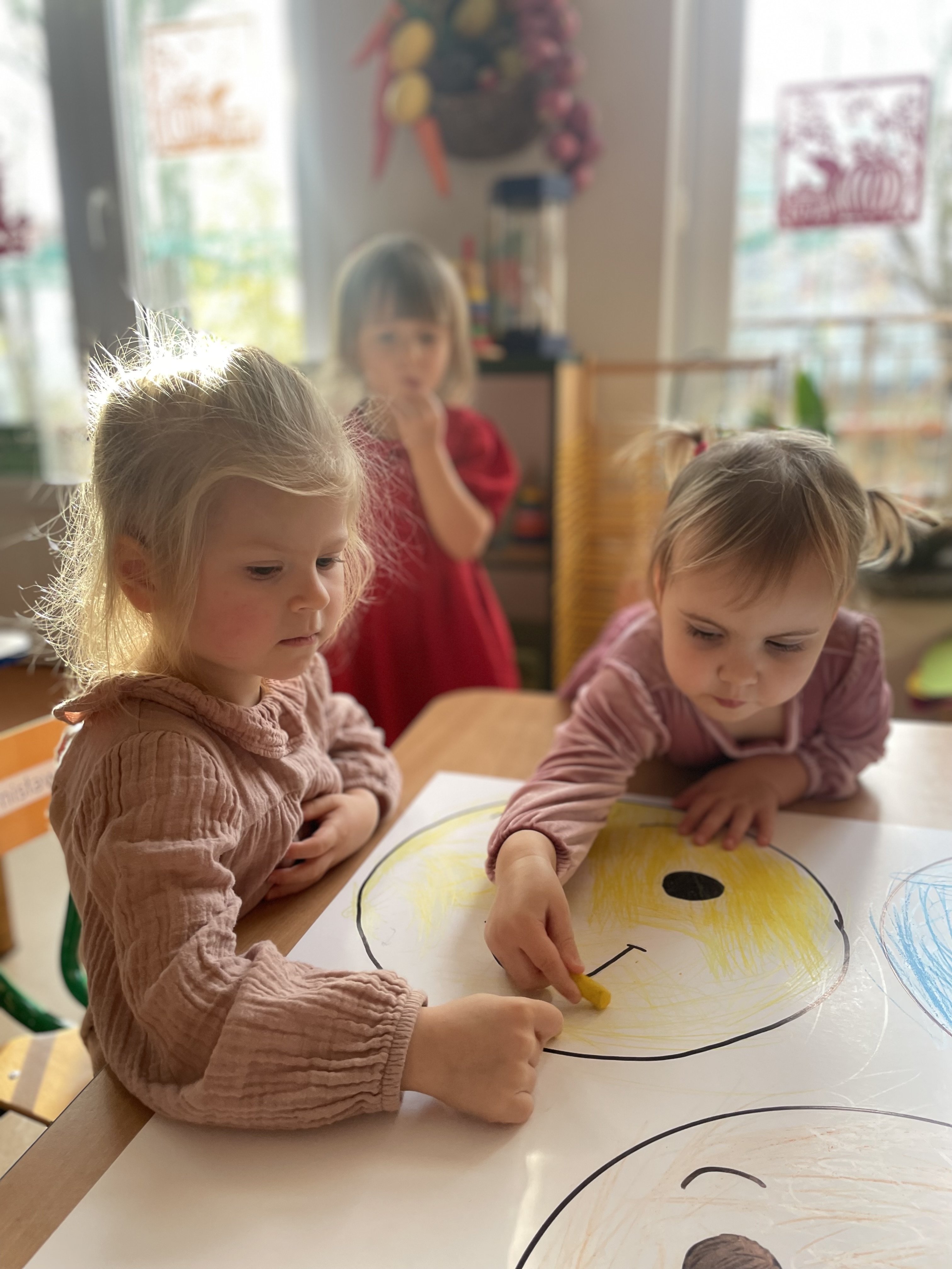 Na zakończenie dzieci kolorowały twarze wyrażające różne emocje, dzięki czemu mogły utrwalić zdobytą wiedzę i pobawić się w odgadywanie nastrojów przedstawionych na ilustracjach.