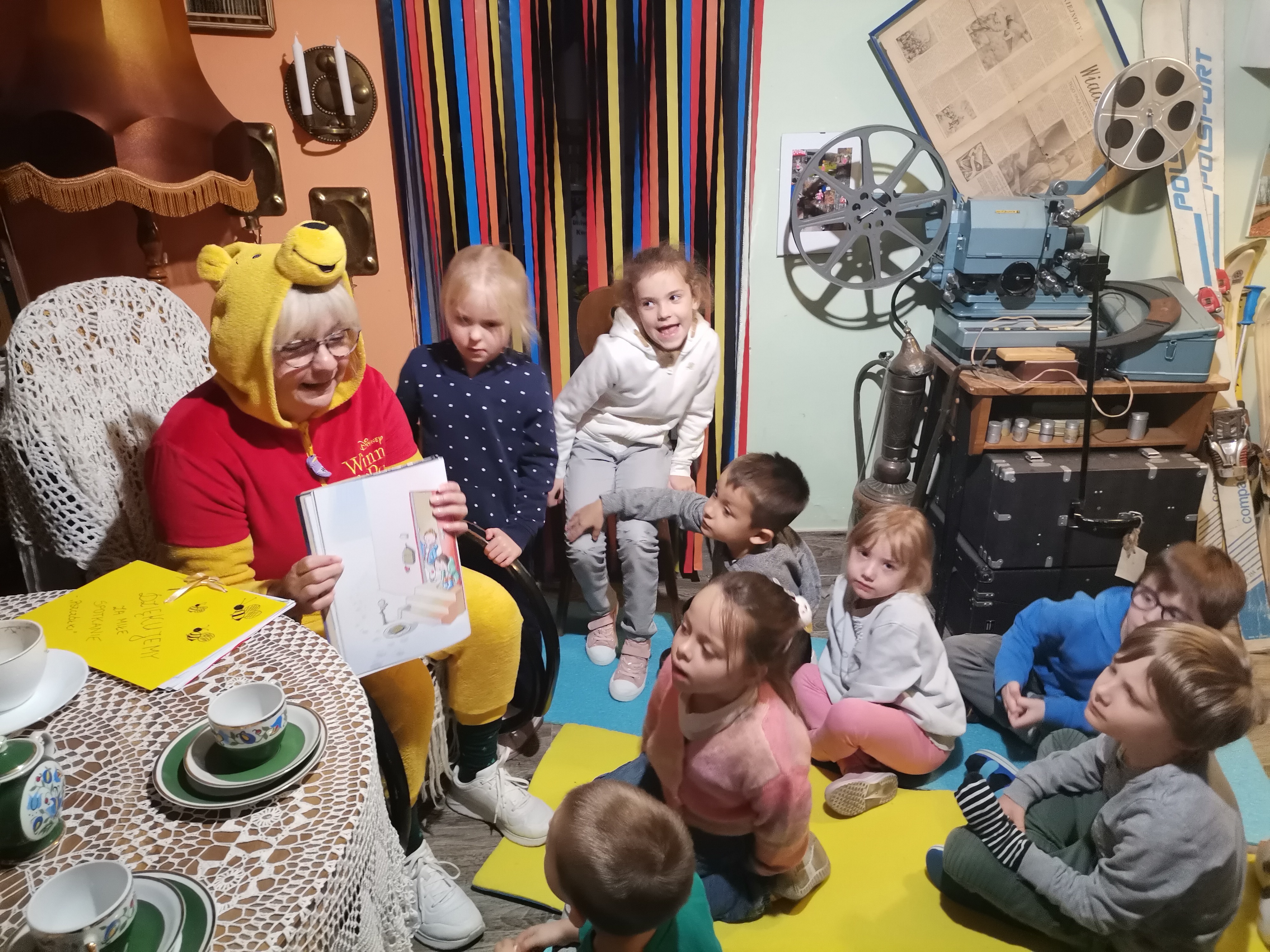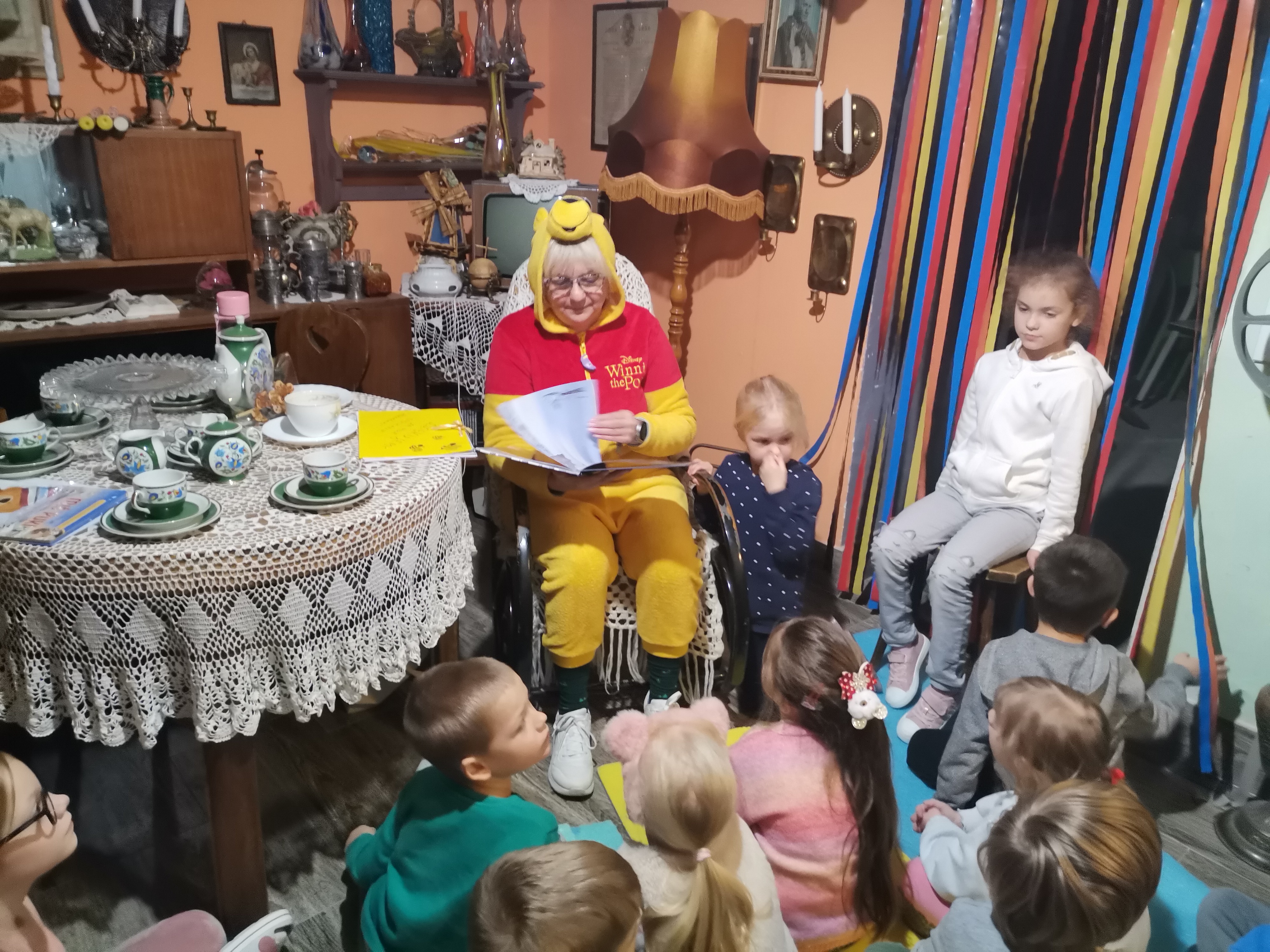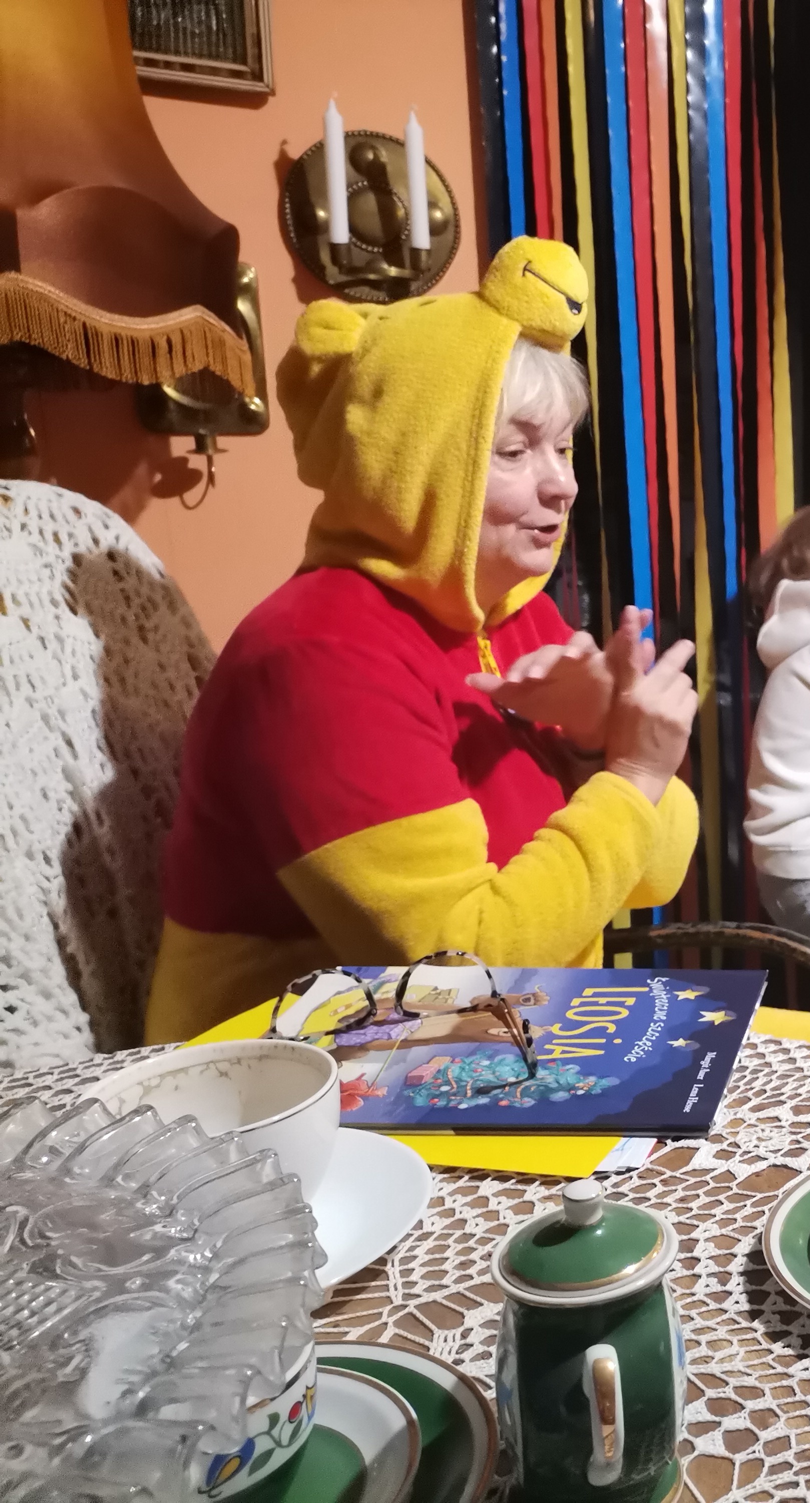 Pani bibliotekarka była dzisiaj czytającym Kubusiem Puchatkiem.