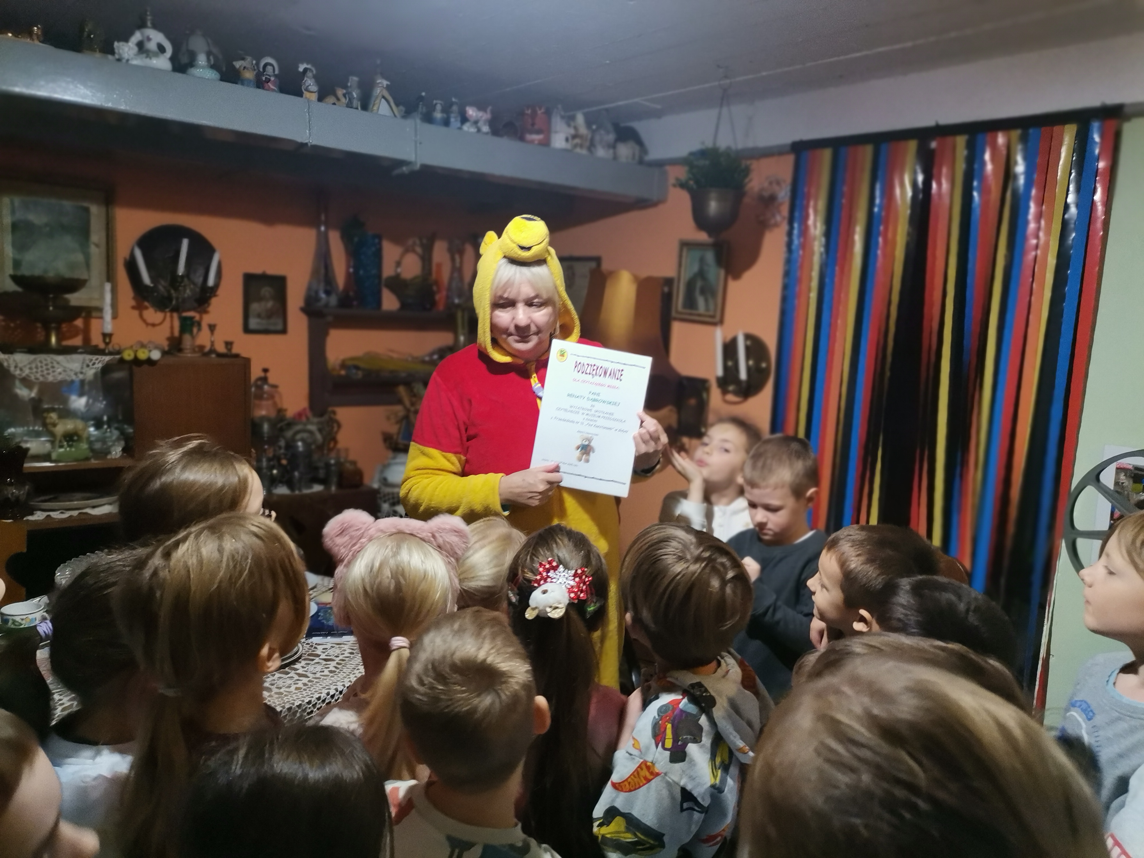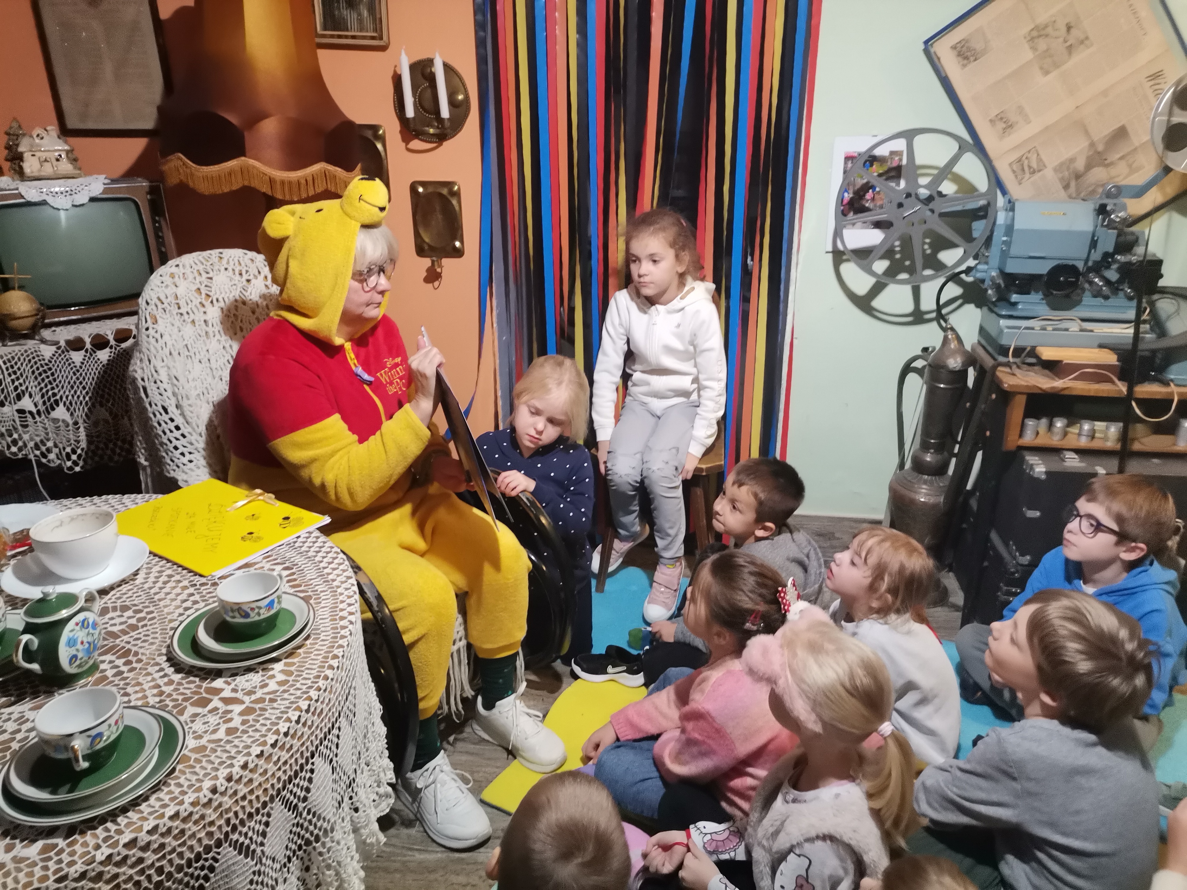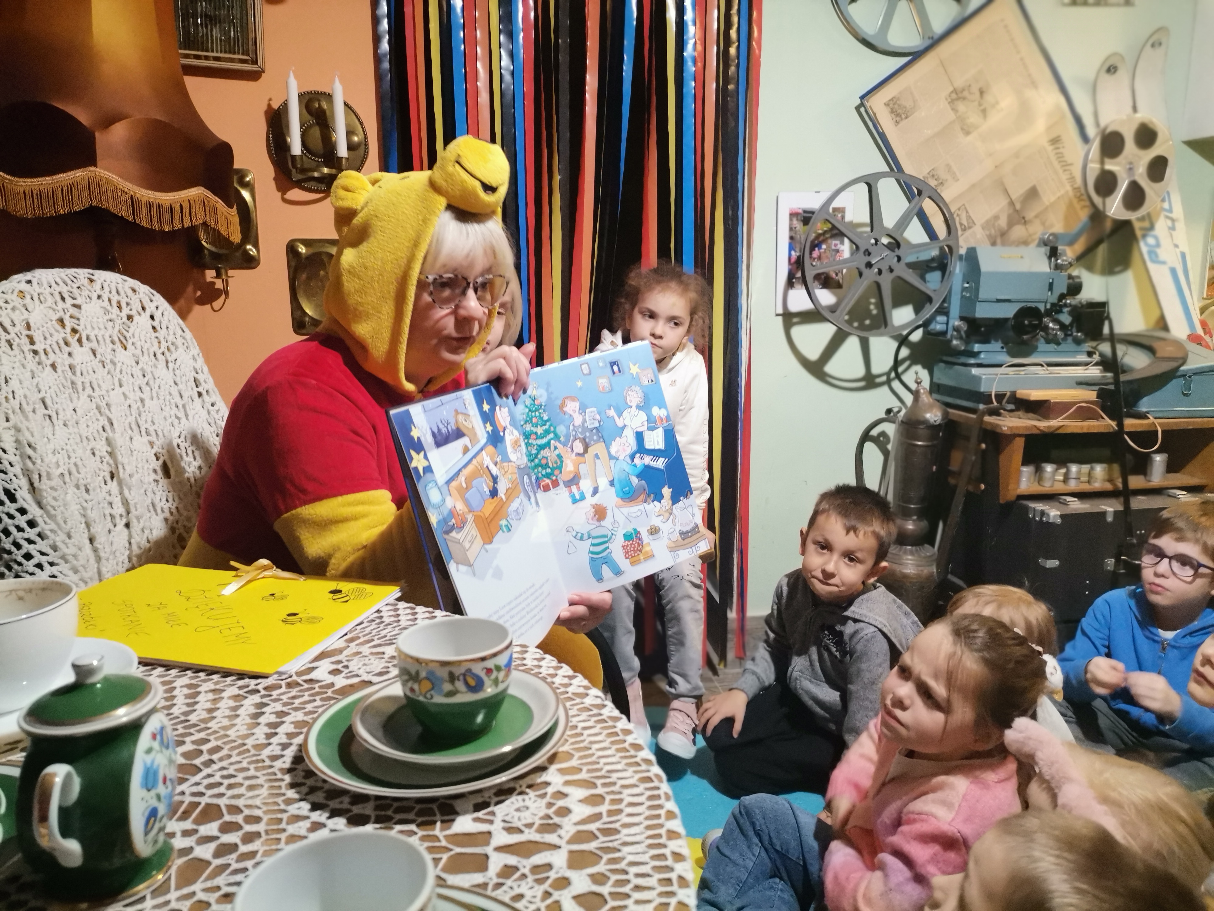 Pani bibliotekarka była dzisiaj czytającym Kubusiem Puchatkiem.