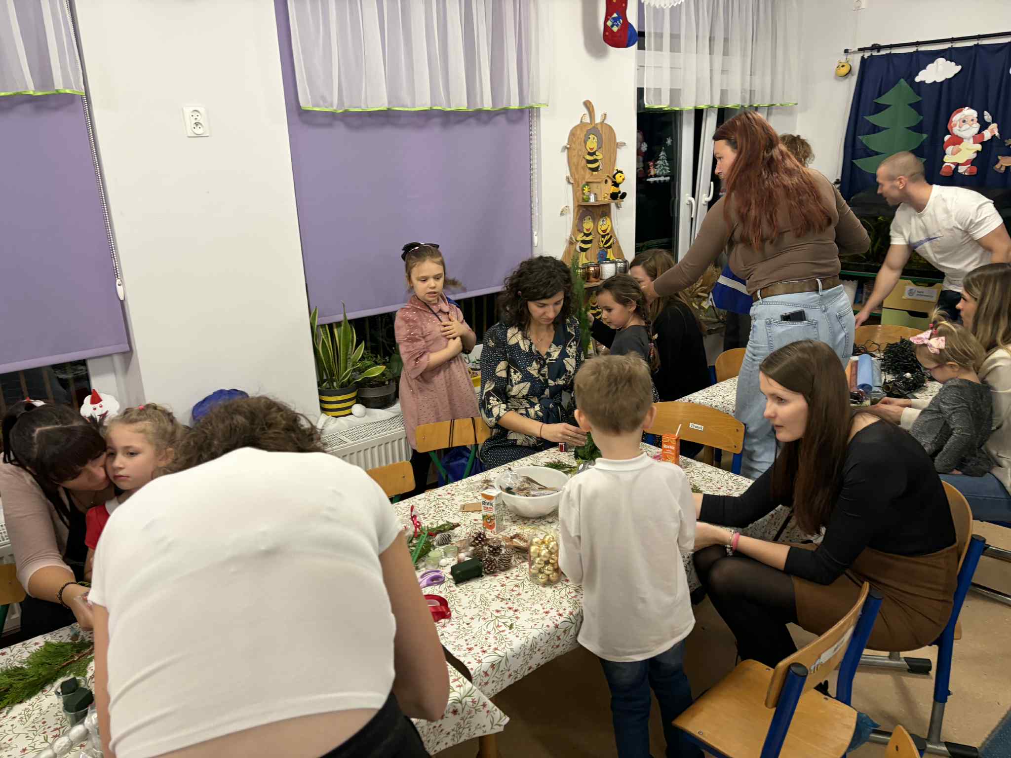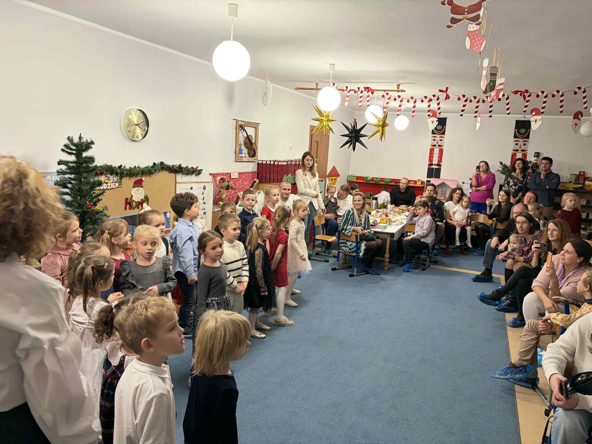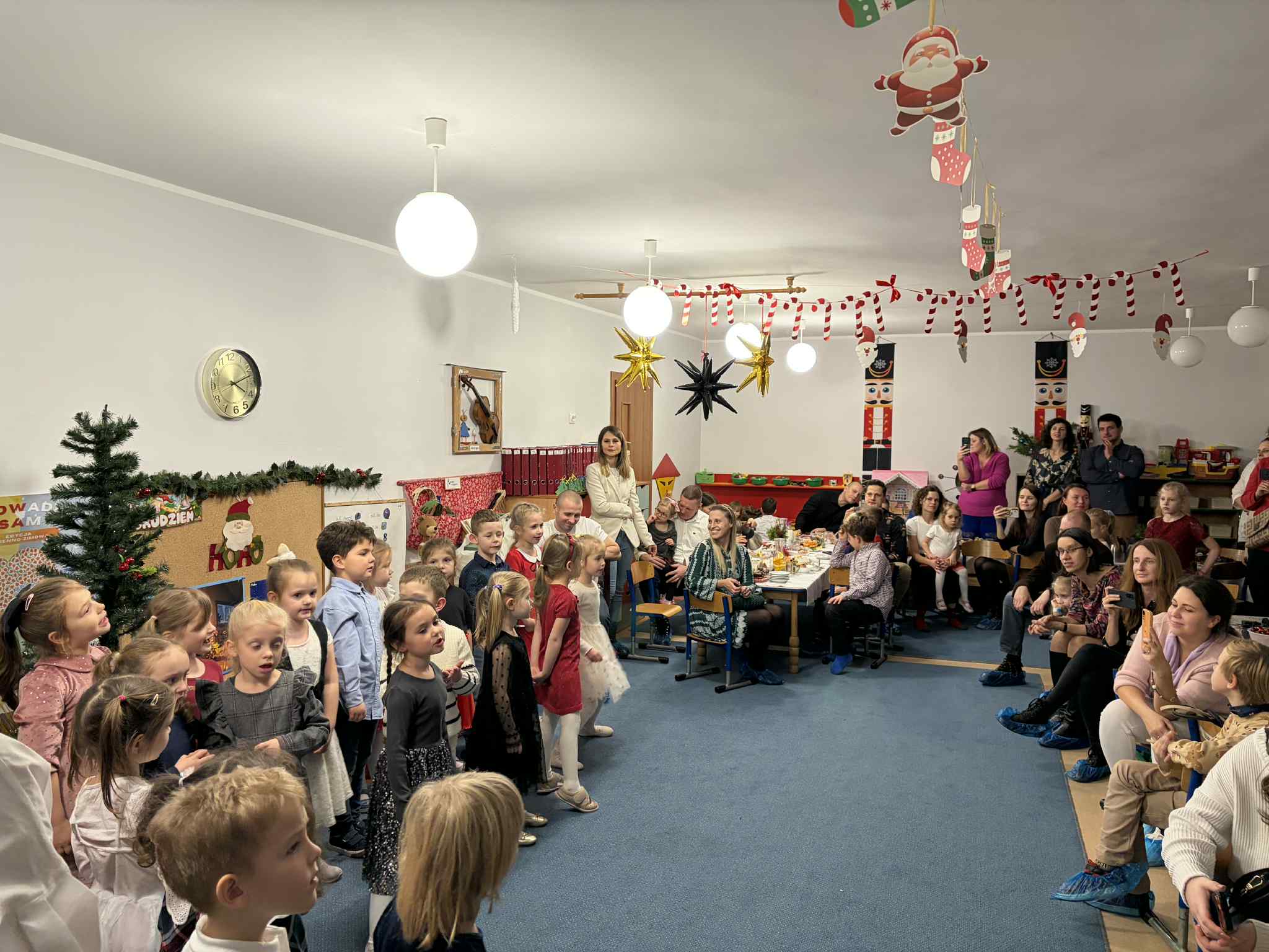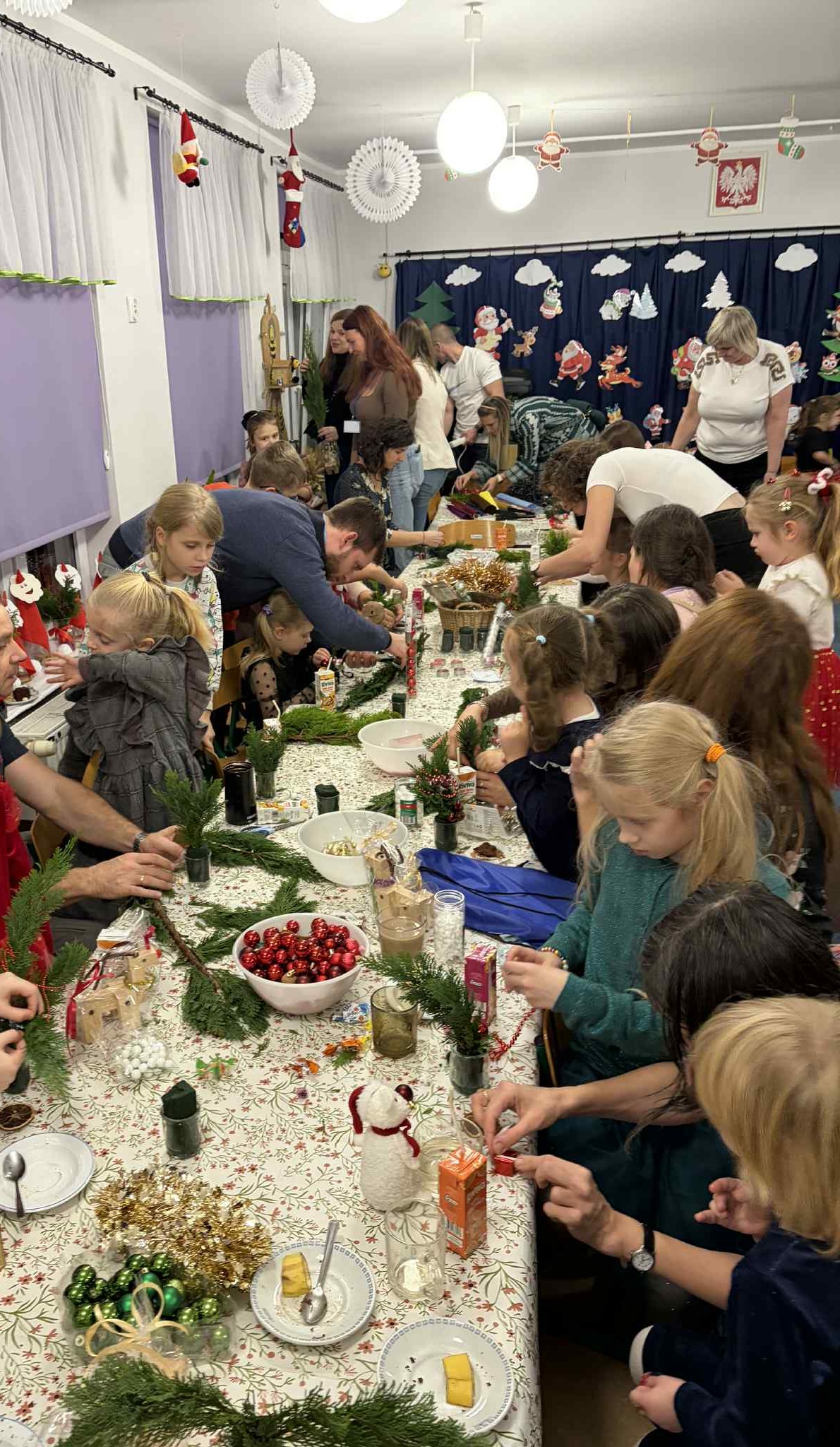 9 GRUDNIA ODBYŁO SIĘ SPOTKANIE ŚWIĄTECZNO-WARSZTATOWE, PODCZAS KTÓREGO DZIECI ZAPREZENTOWAŁY KRÓTKI ŚWIĄTECZNY REPERTUAR – PIOSENKI, WIERSZE, PASTORAŁKI ORAZ ŚWIĄTECZNE ŻYCZENIA DLA RODZICÓW. WSPÓLNIE ŚPIEWALIŚMY KOLĘDY, UBIERALIŚMY CHOINKĘ I DEKOROWALIŚMY NASZĄ SALĘ ŚWIĄTECZNYMI OZDOBAMI. PODCZAS WARSZTATÓW KAŻDY MÓGŁ PRZYGOTOWAĆ WŁASNY ŚWIĄTECZNY STROIK DO DOMU. BYŁ TO PIĘKNY, WSPÓLNIE SPĘDZONY CZAS, ZA KTÓRY BARDZO SERDECZNIE DZIĘKUJEMY. DRODZY RODZICE, DZIĘKUJEMY RÓWNIEŻ ZA PRZYGOTOWANIE MATERIAŁÓW DO STROIKÓW, WSPANIAŁY POCZĘSTUNEK, WSZELKĄ OKAZANĄ POMOC ORAZ WSPÓLNE DEKOROWANIE NASZEJ SALI.
