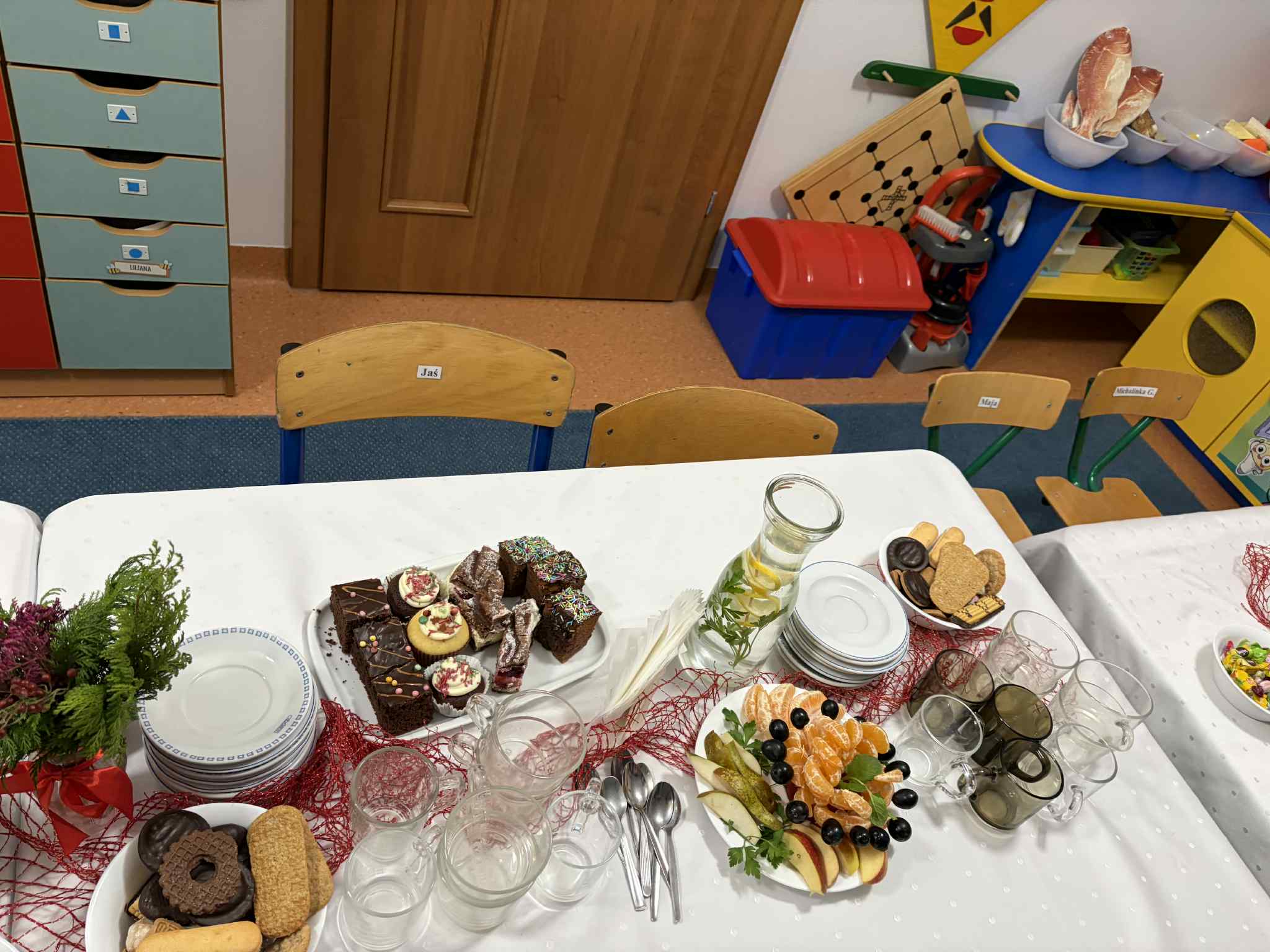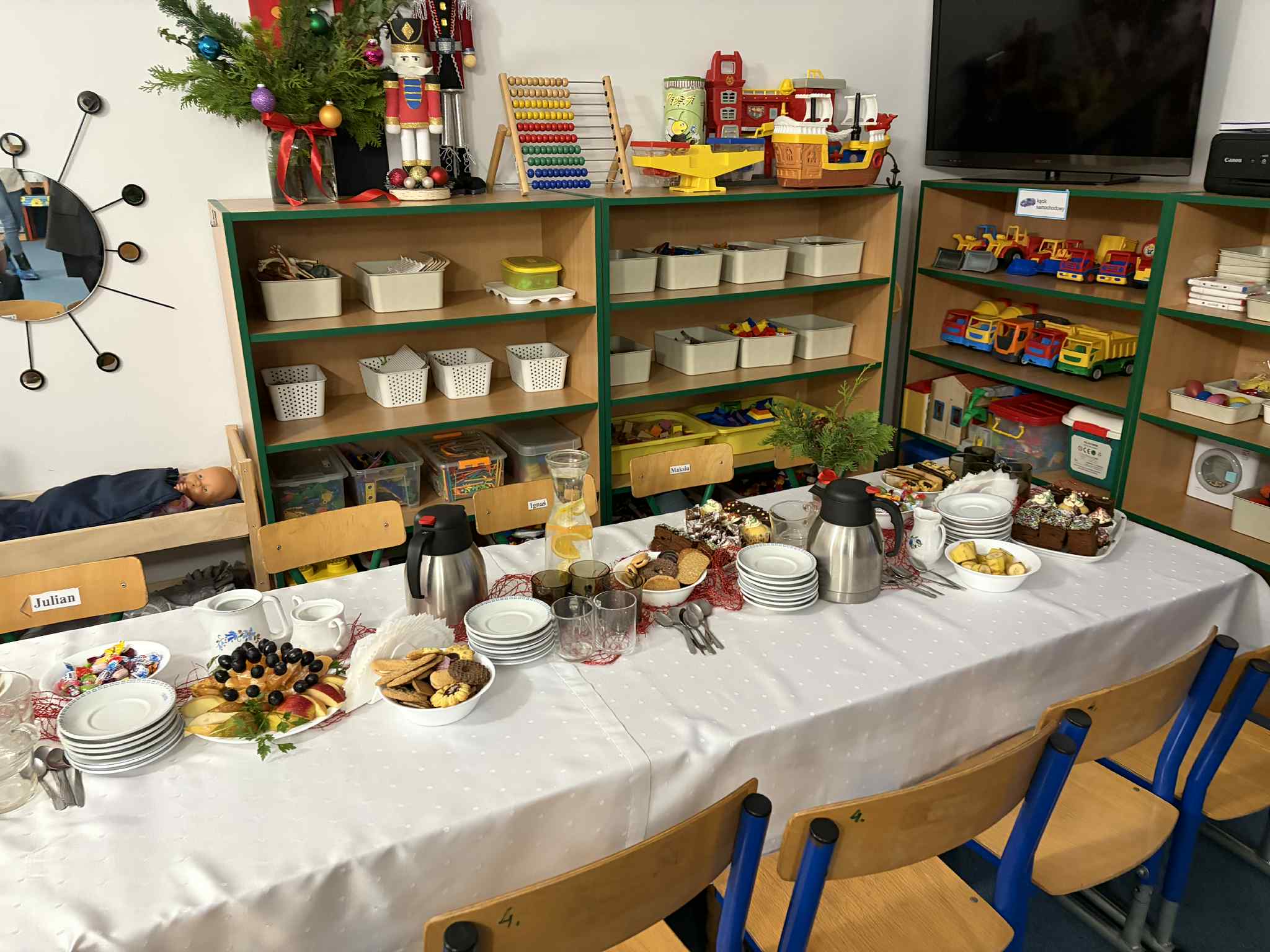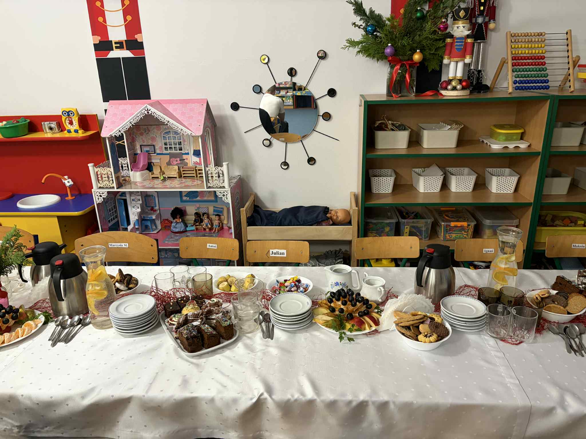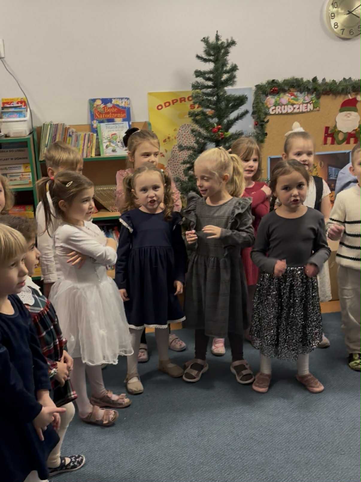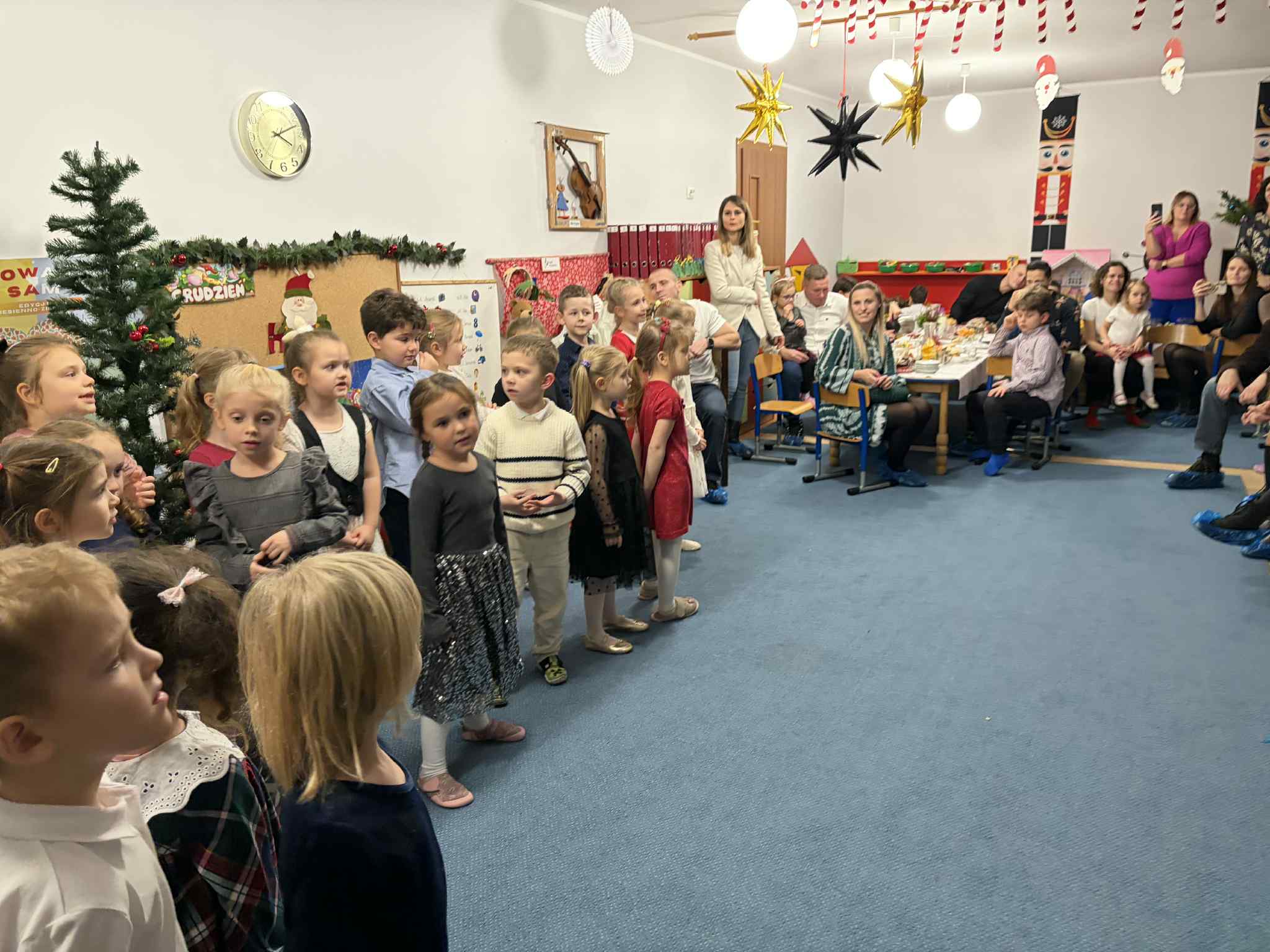 9 GRUDNIA ODBYŁO SIĘ SPOTKANIE ŚWIĄTECZNO-WARSZTATOWE, PODCZAS KTÓREGO DZIECI ZAPREZENTOWAŁY KRÓTKI ŚWIĄTECZNY REPERTUAR – PIOSENKI, WIERSZE, PASTORAŁKI ORAZ ŚWIĄTECZNE ŻYCZENIA DLA RODZICÓW. WSPÓLNIE ŚPIEWALIŚMY KOLĘDY, UBIERALIŚMY CHOINKĘ I DEKOROWALIŚMY NASZĄ SALĘ ŚWIĄTECZNYMI OZDOBAMI. PODCZAS WARSZTATÓW KAŻDY MÓGŁ PRZYGOTOWAĆ WŁASNY ŚWIĄTECZNY STROIK DO DOMU. BYŁ TO PIĘKNY, WSPÓLNIE SPĘDZONY CZAS, ZA KTÓRY BARDZO SERDECZNIE DZIĘKUJEMY. DRODZY RODZICE, DZIĘKUJEMY RÓWNIEŻ ZA PRZYGOTOWANIE MATERIAŁÓW DO STROIKÓW, WSPANIAŁY POCZĘSTUNEK, WSZELKĄ OKAZANĄ POMOC ORAZ WSPÓLNE DEKOROWANIE NASZEJ SALI.