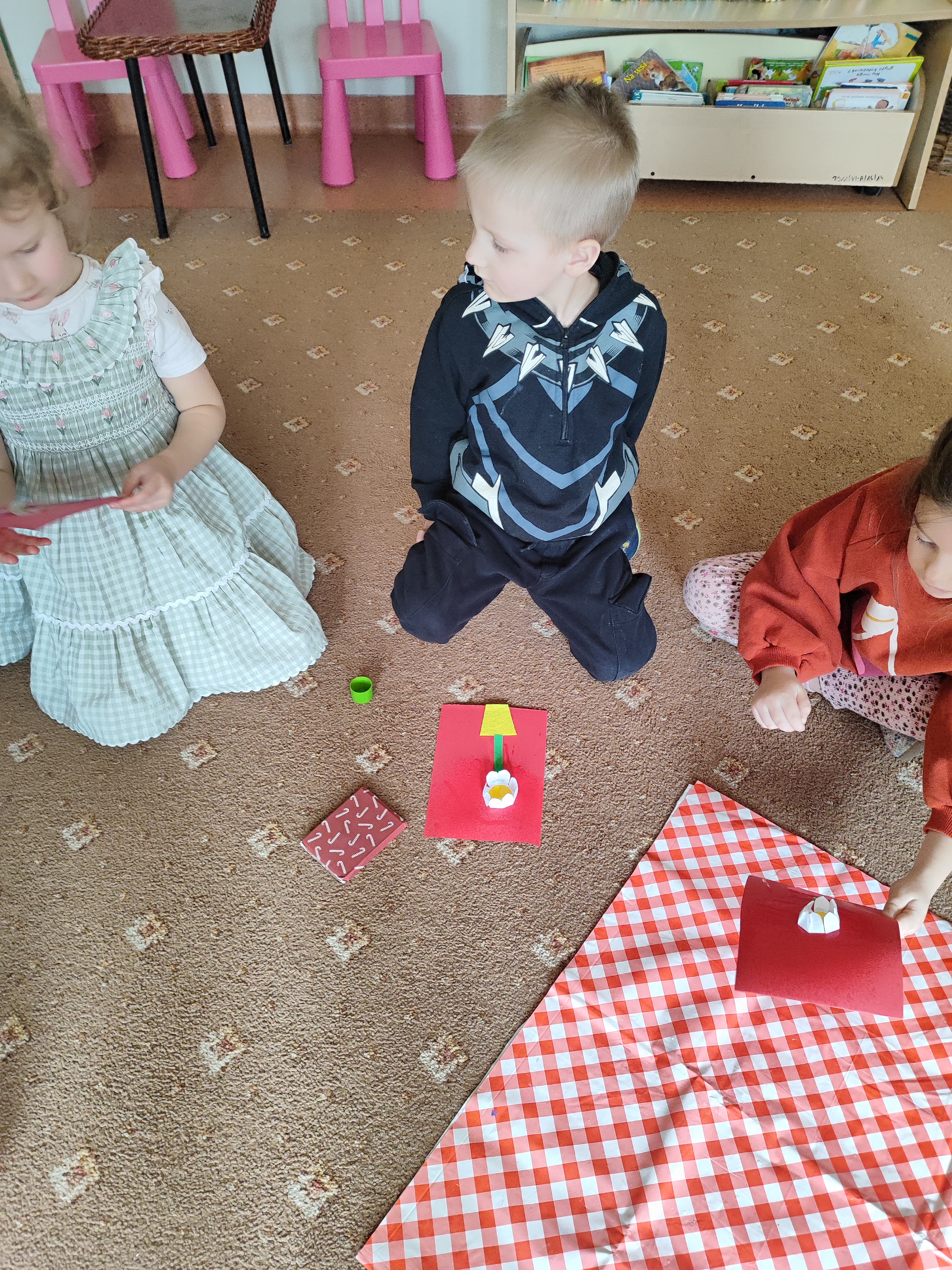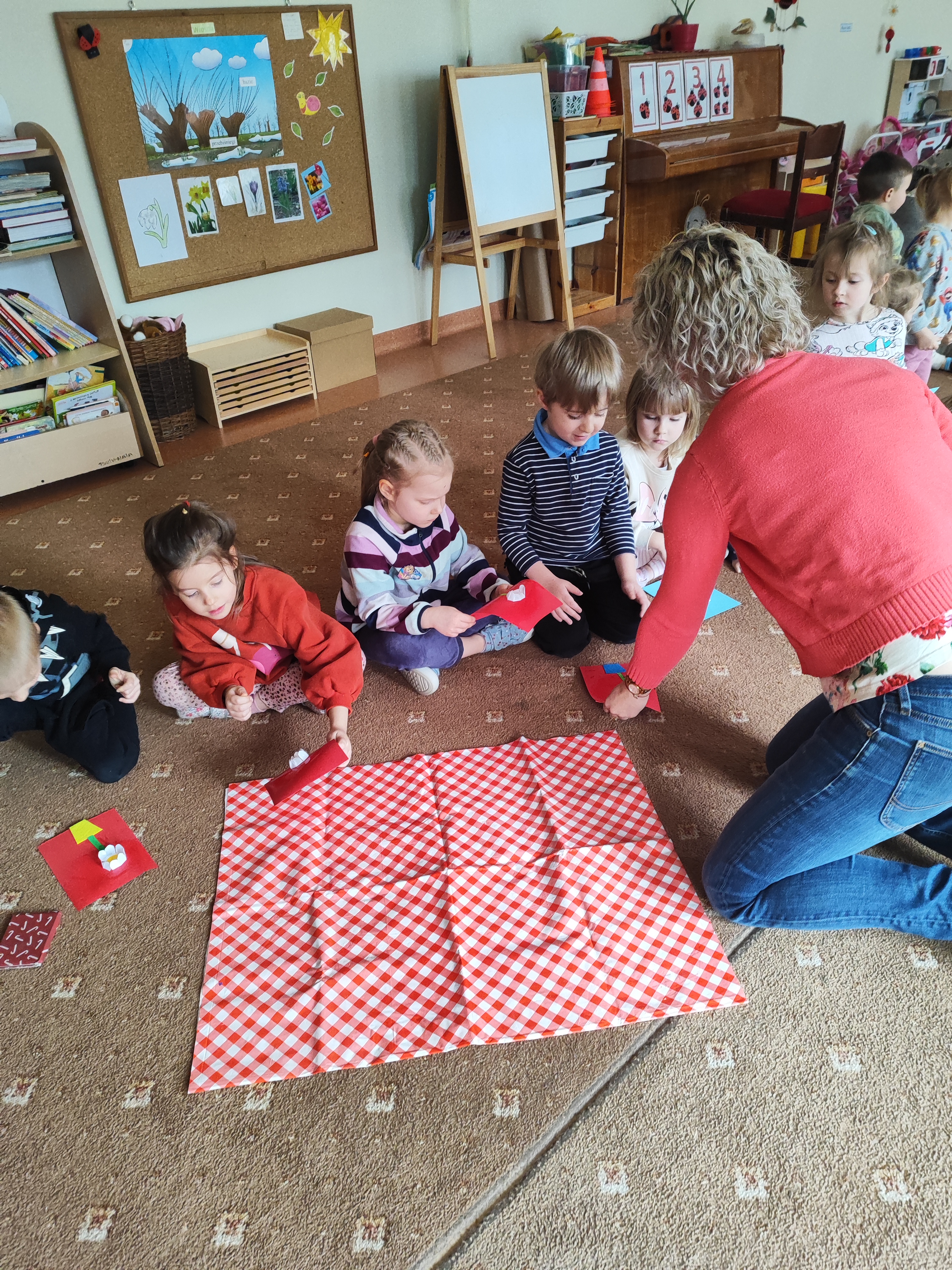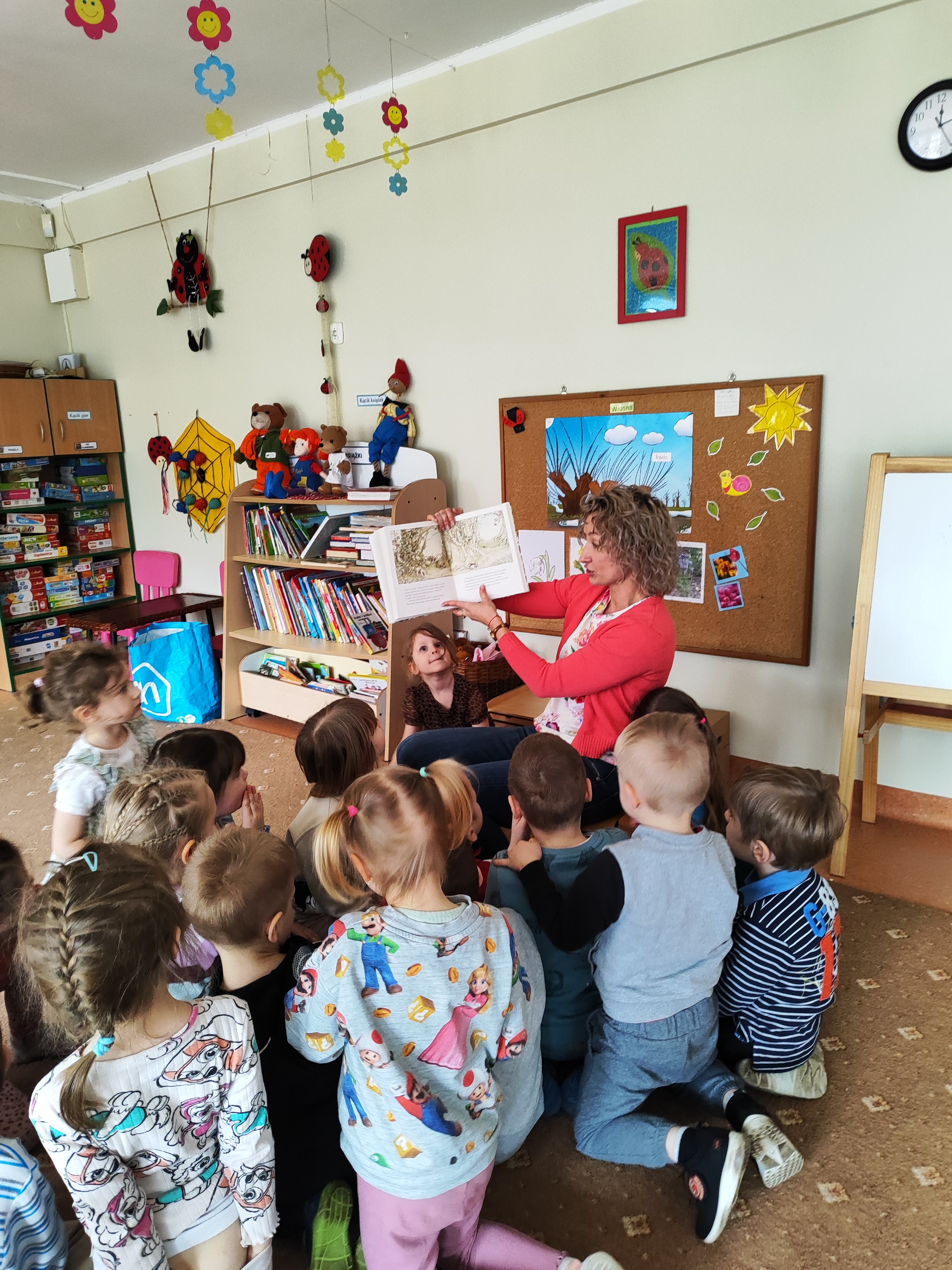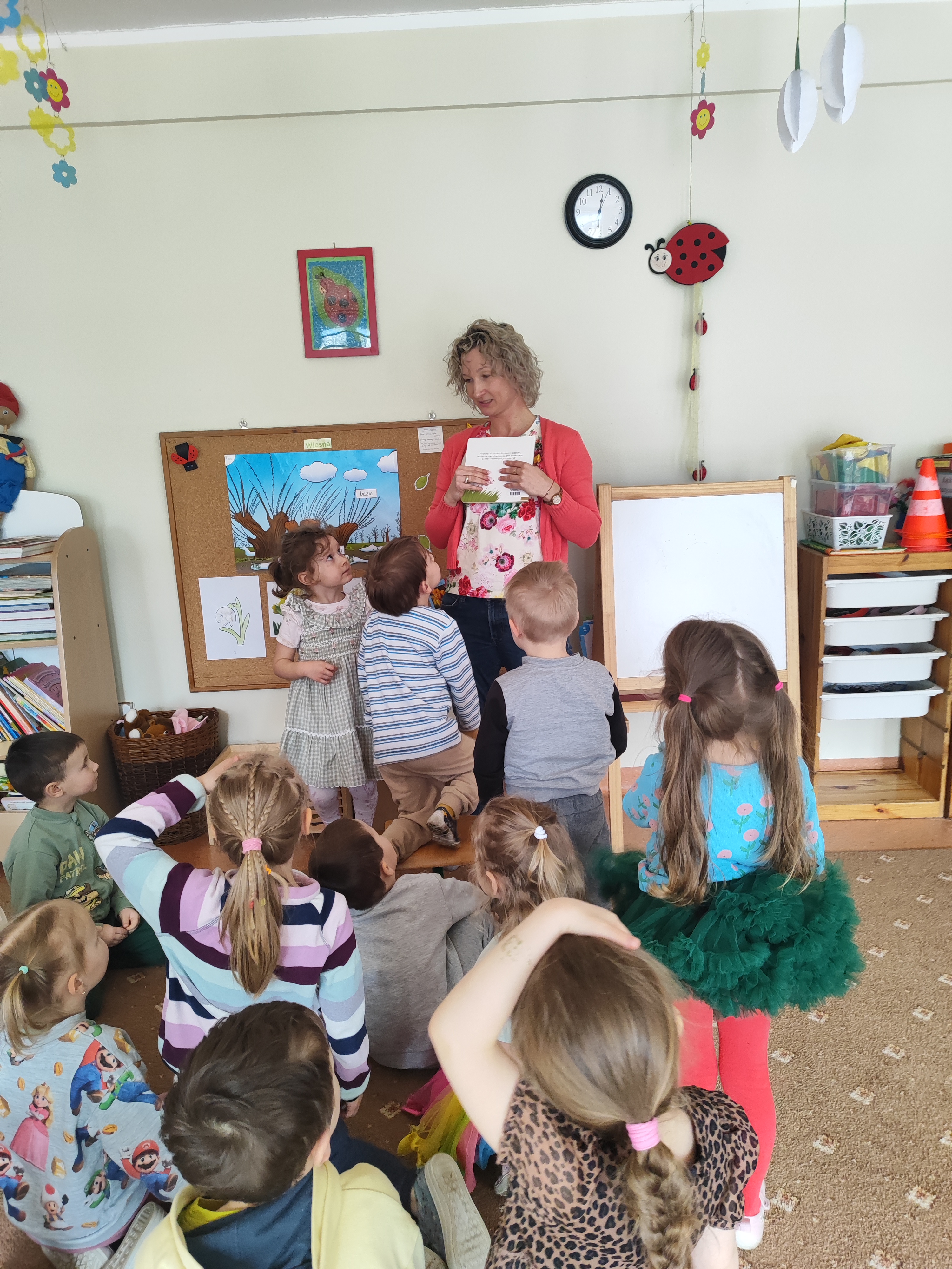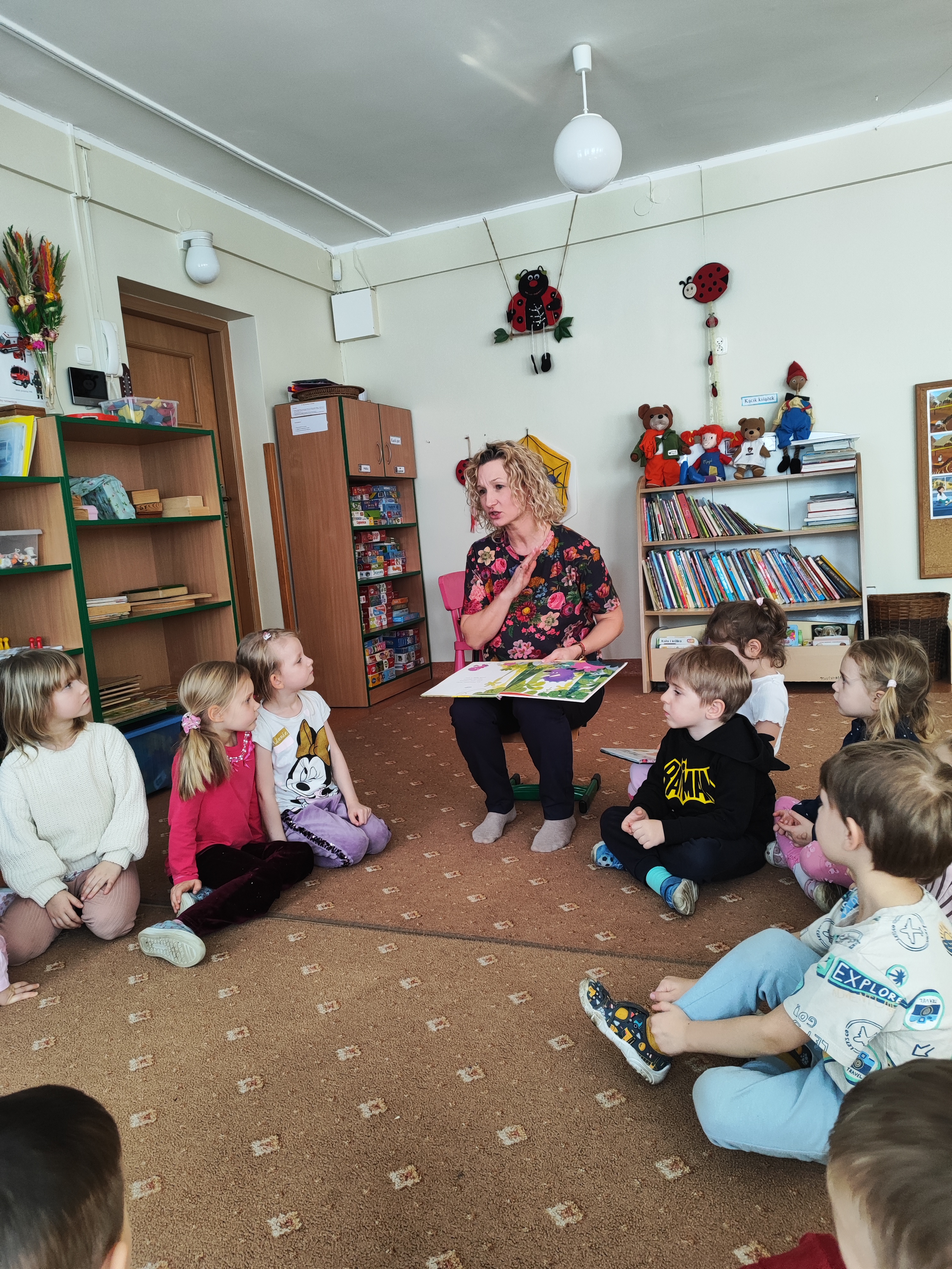 W ostatnich tygodniach mieliśmy okazję gościć u nas mamę Krysi na spotkaniach czytelniczych i warsztatach plastycznych. Dzieci z zainteresowaniem mogły wysłuchać opowiadań o zwierzątkach i wiośnie nawiązujących do omawianych tematów kompleksowych. Na warsztatach plastycznych dzieci wykonywały ruchome biedronki/pszczółki, a także magiczne kwiatki, które rozkwitały na oczach dzieci. Było wspaniale. Dziękujemy także za niespodzianki!