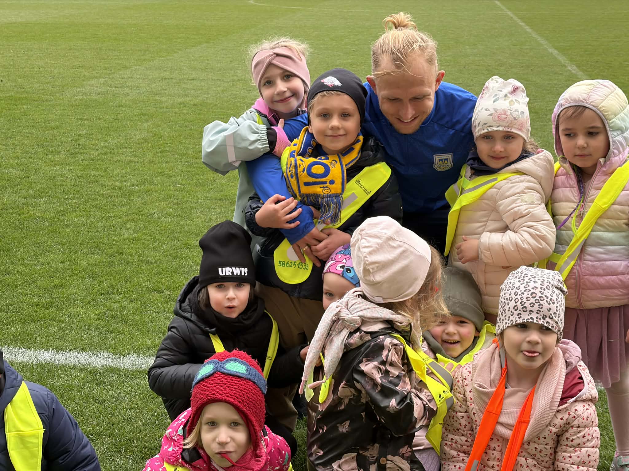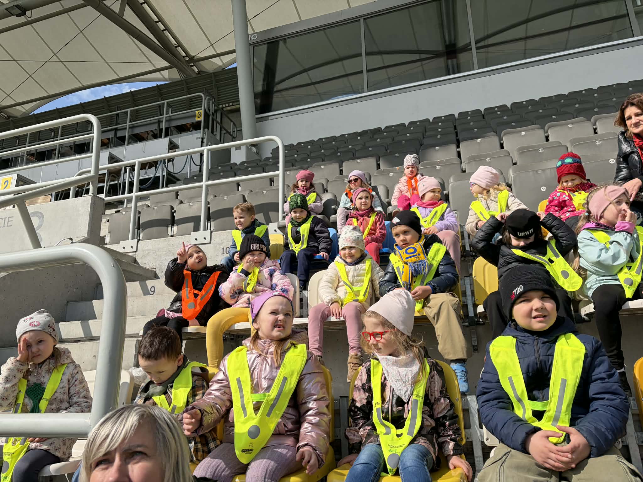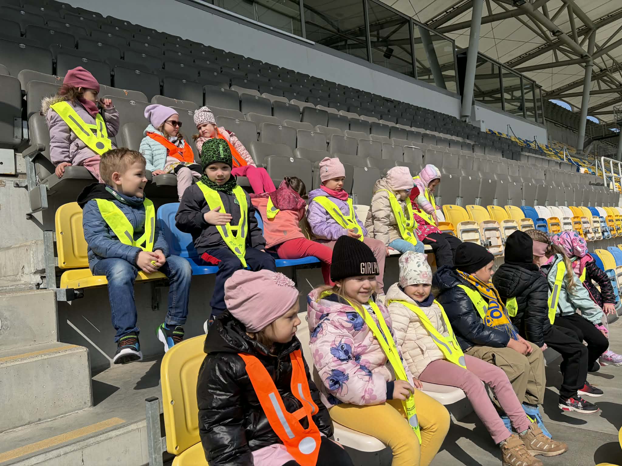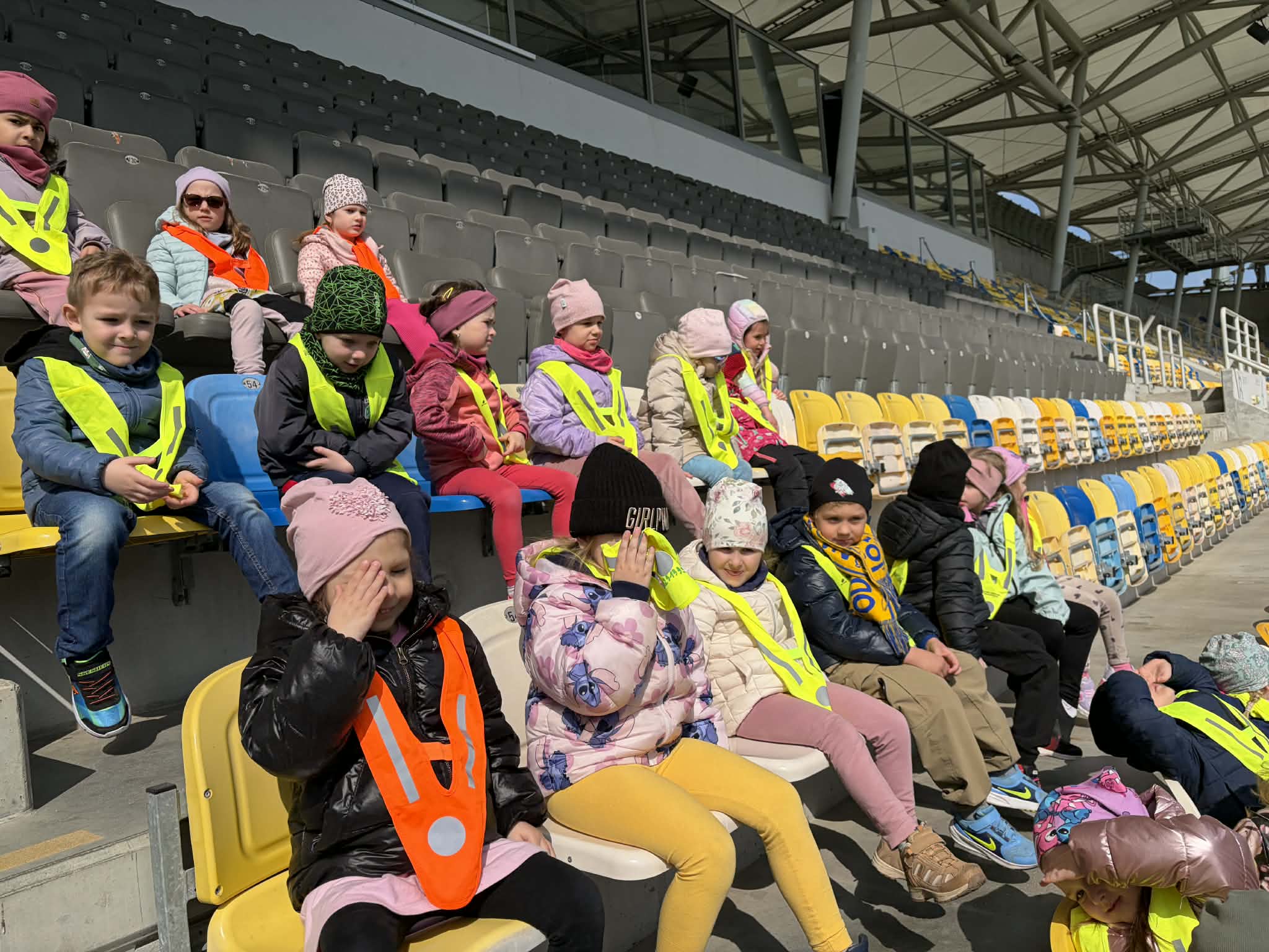 PODCZAS NASZEJ WYCIECZKI, KTÓRA ODBYŁA SIĘ 16 KWIETNIA, MIELIŚMY OKAZJĘ ZWIEDZIĆ STADION MIEJSKI. ZOBACZYLIŚMY RECEPCJĘ, SALĘ KONFERENCYJNĄ ORAZ KORYTARZE Z WYJĄTKOWYMI FOTOGRAFIAMI PRZEDSTAWIAJĄCYMI ETAPY BUDOWY STADIONU. ODWIEDZILIŚMY TAKŻE SZATNIĘ PIŁKARZY GOŚCI, SIŁOWNIĘ I TRYBUNĘ VIP, Z KTÓREJ BYŁ ŚWIETNY WIDOK NA STADION. JAKO KIBICE MOGLIŚMY OBEJRZEĆ TRENING PIŁKARZY, A NAWET WEJŚĆ NA MURAWĘ — NAJWIĘKSZĄ ATRAKCJĄ BYŁO TURLANIE SIĘ PO NIEJ. NA KONIEC UDAŁO NAM SIĘ ZROBIĆ ZDJĘCIE Z DAWIDEM GOJNĄ- KAPITANEM DRUŻYNY.