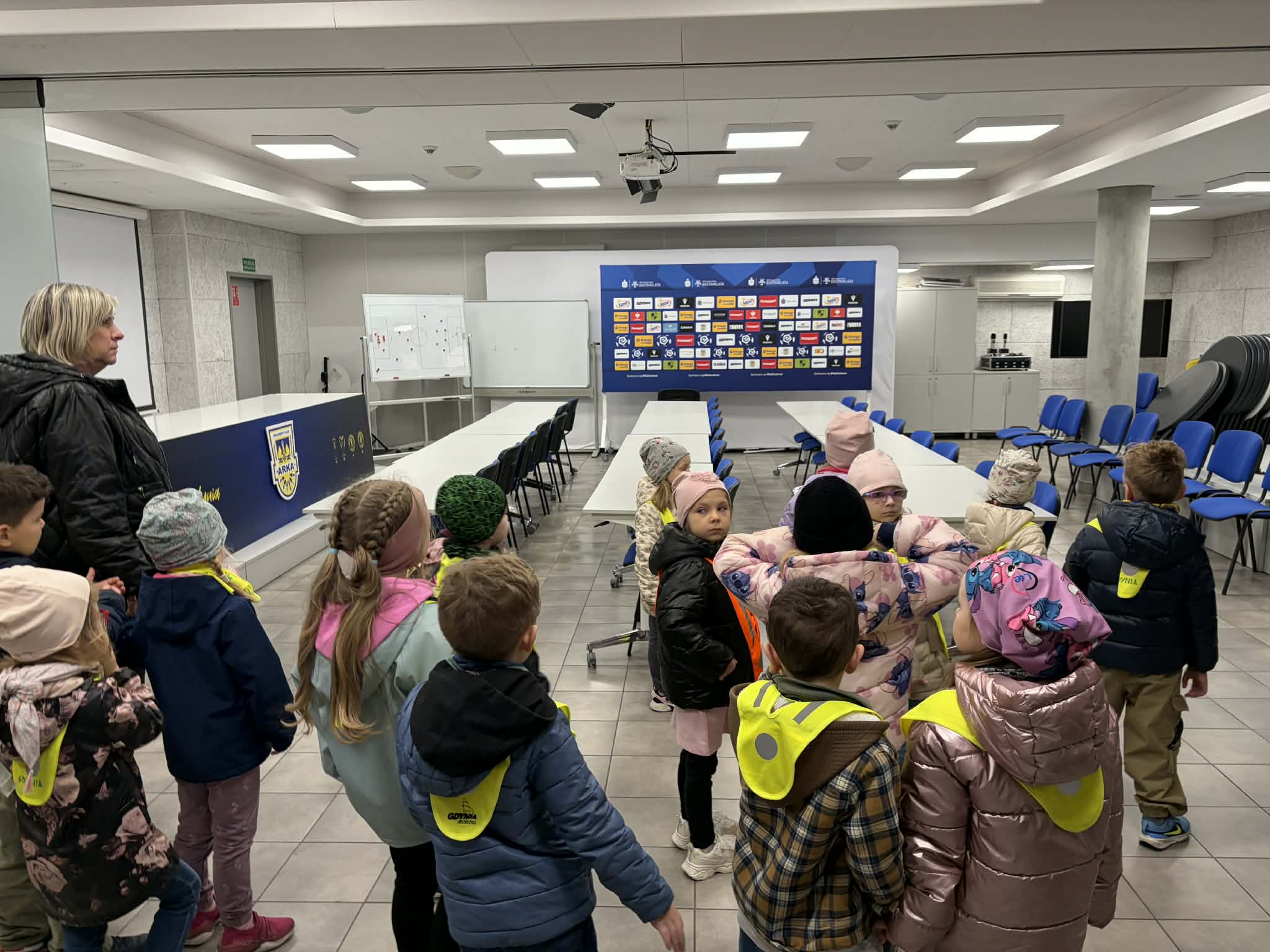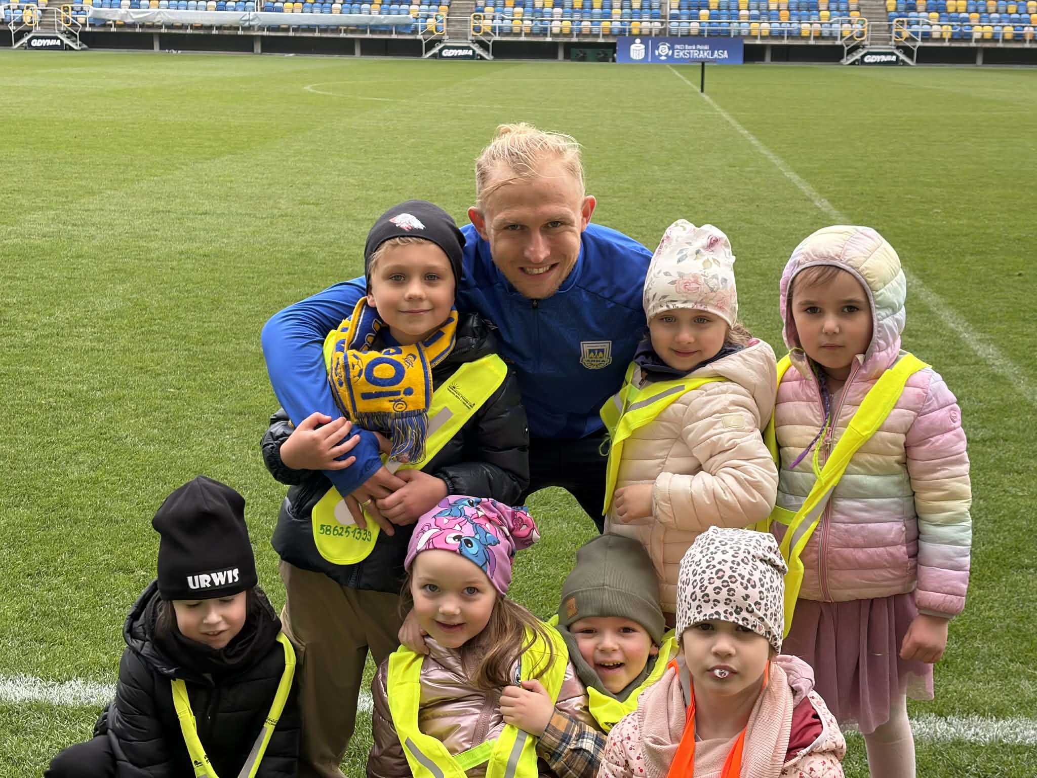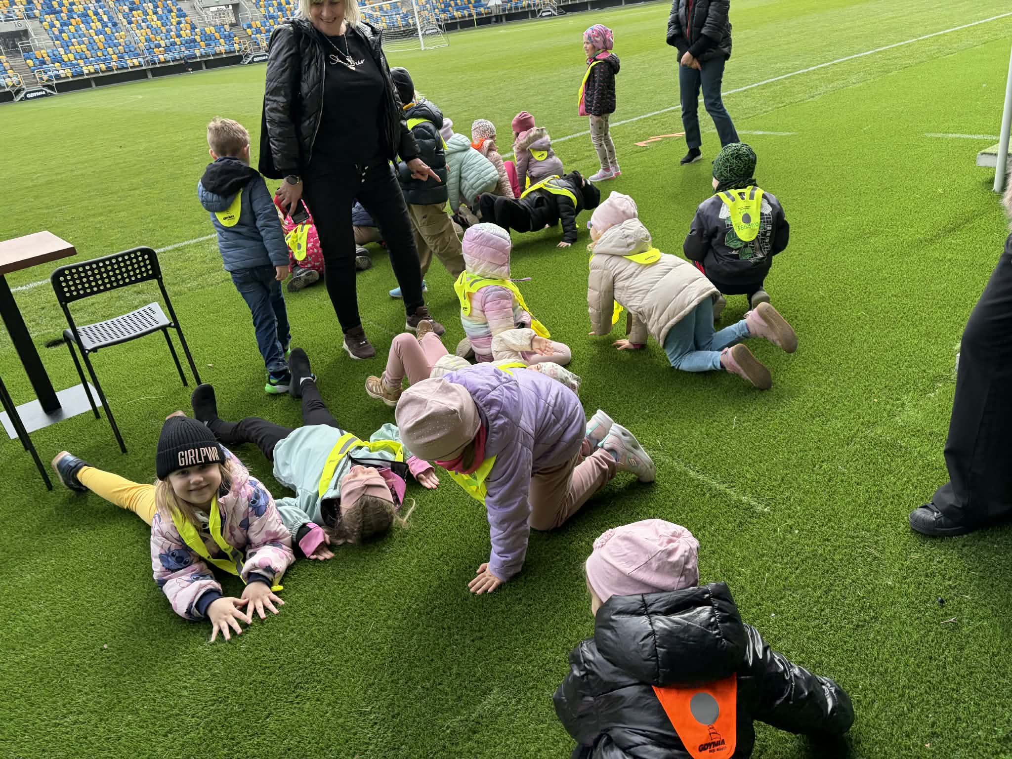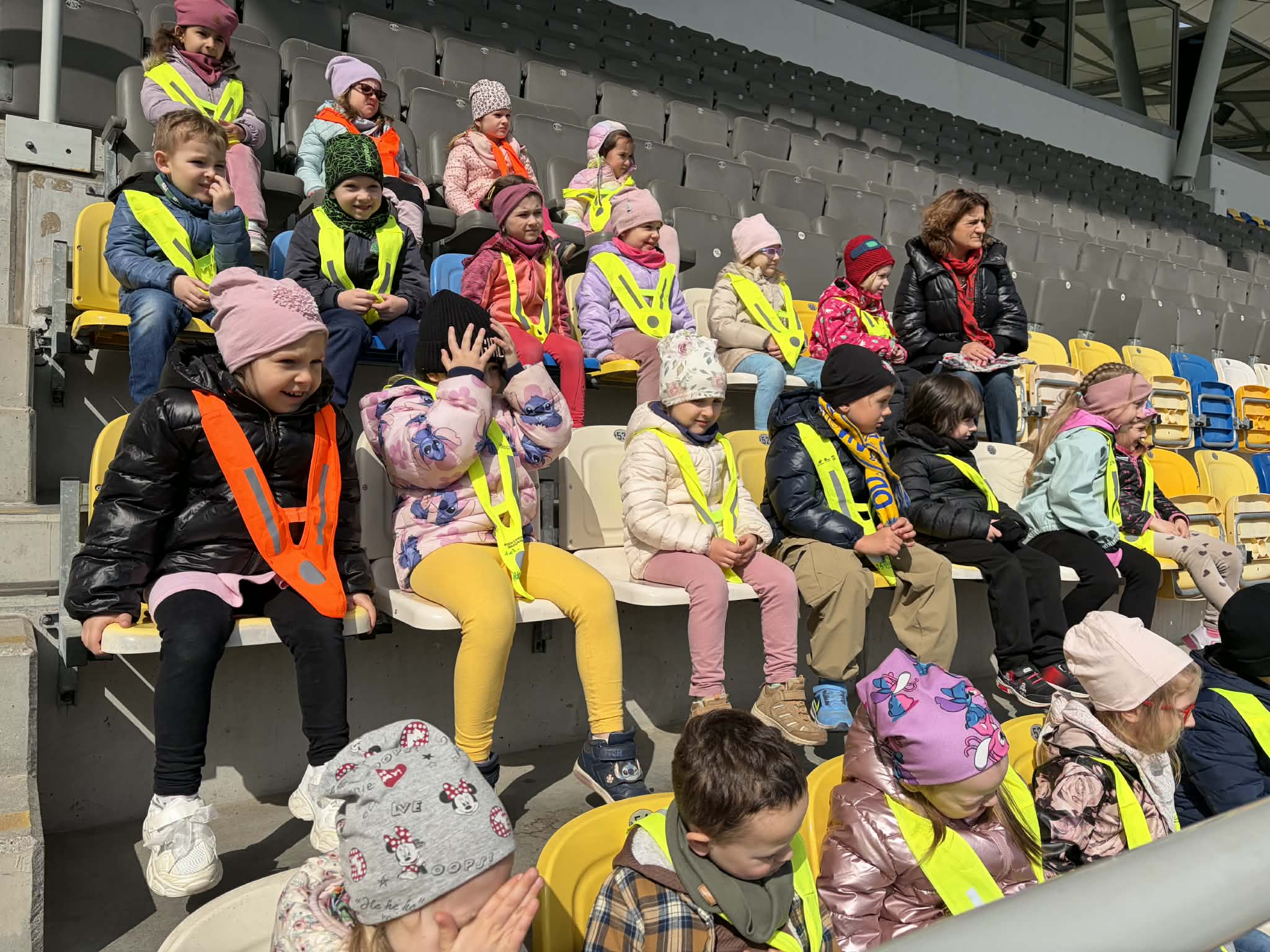 PODCZAS NASZEJ WYCIECZKI, KTÓRA ODBYŁA SIĘ 16 KWIETNIA, MIELIŚMY OKAZJĘ ZWIEDZIĆ STADION MIEJSKI. ZOBACZYLIŚMY RECEPCJĘ, SALĘ KONFERENCYJNĄ ORAZ KORYTARZE Z WYJĄTKOWYMI FOTOGRAFIAMI PRZEDSTAWIAJĄCYMI ETAPY BUDOWY STADIONU. ODWIEDZILIŚMY TAKŻE SZATNIĘ PIŁKARZY GOŚCI, SIŁOWNIĘ I TRYBUNĘ VIP, Z KTÓREJ BYŁ ŚWIETNY WIDOK NA STADION. JAKO KIBICE MOGLIŚMY OBEJRZEĆ TRENING PIŁKARZY, A NAWET WEJŚĆ NA MURAWĘ — NAJWIĘKSZĄ ATRAKCJĄ BYŁO TURLANIE SIĘ PO NIEJ. NA KONIEC UDAŁO NAM SIĘ ZROBIĆ ZDJĘCIE Z DAWIDEM GOJNĄ- KAPITANEM DRUŻYNY.