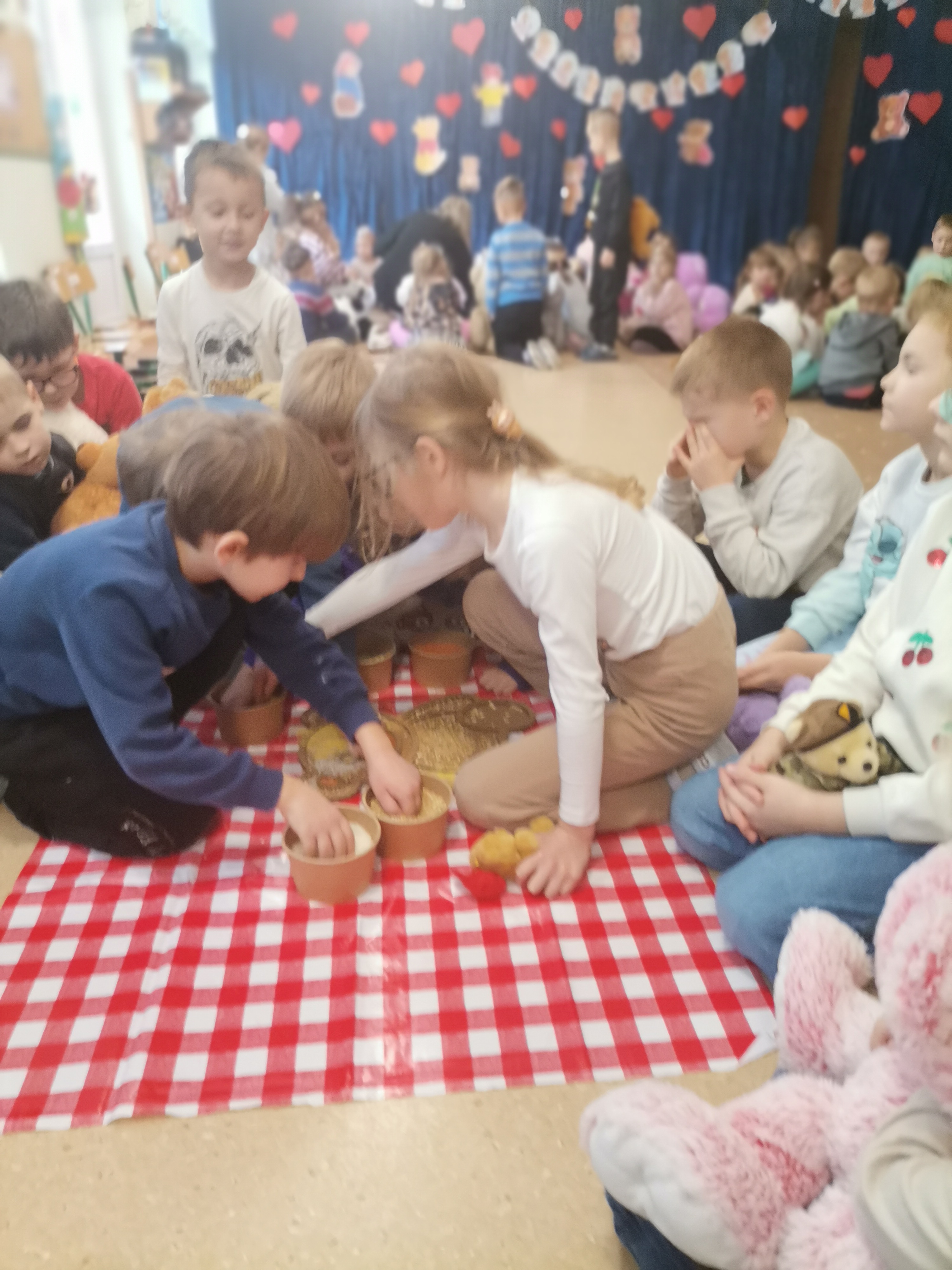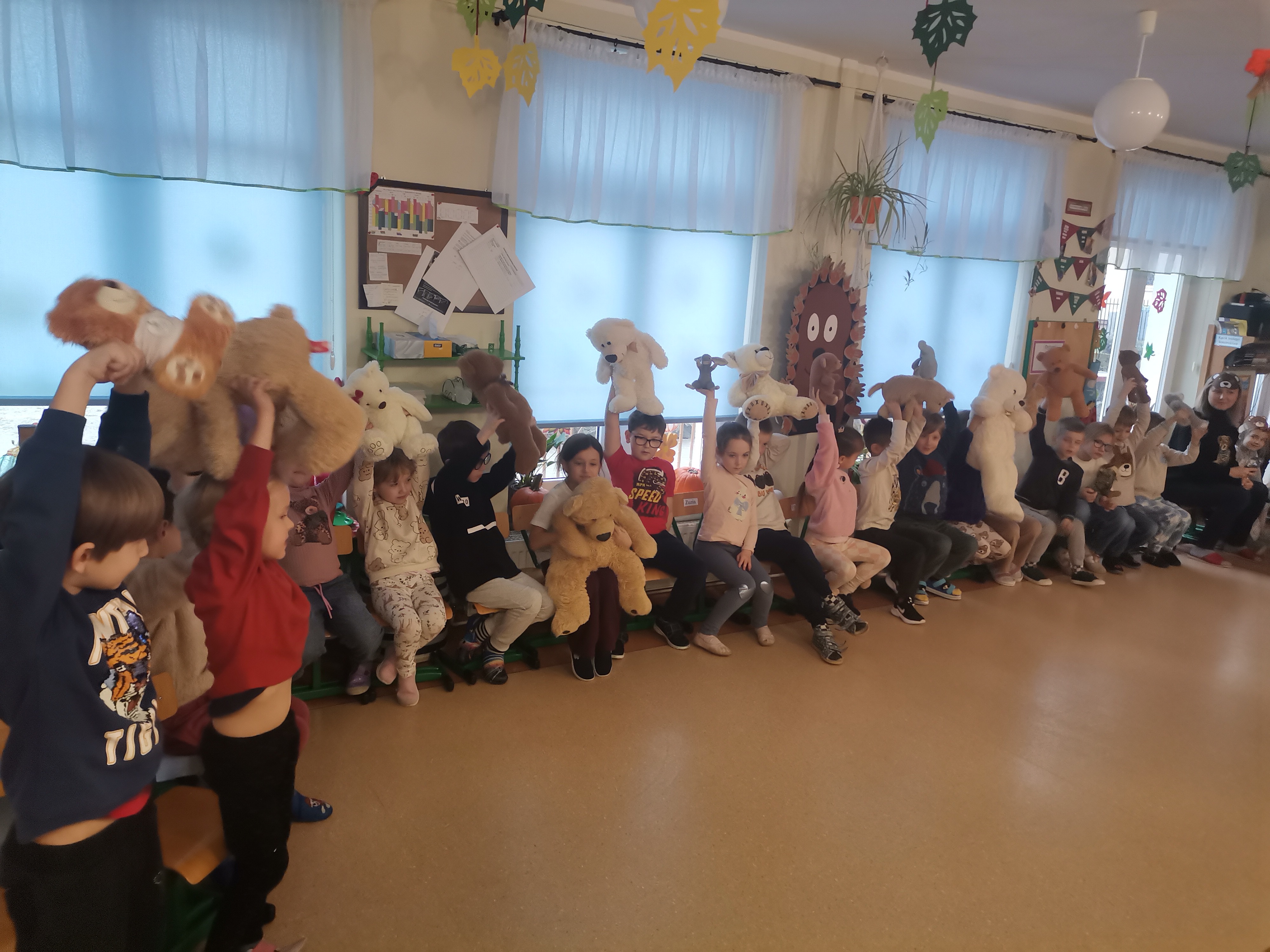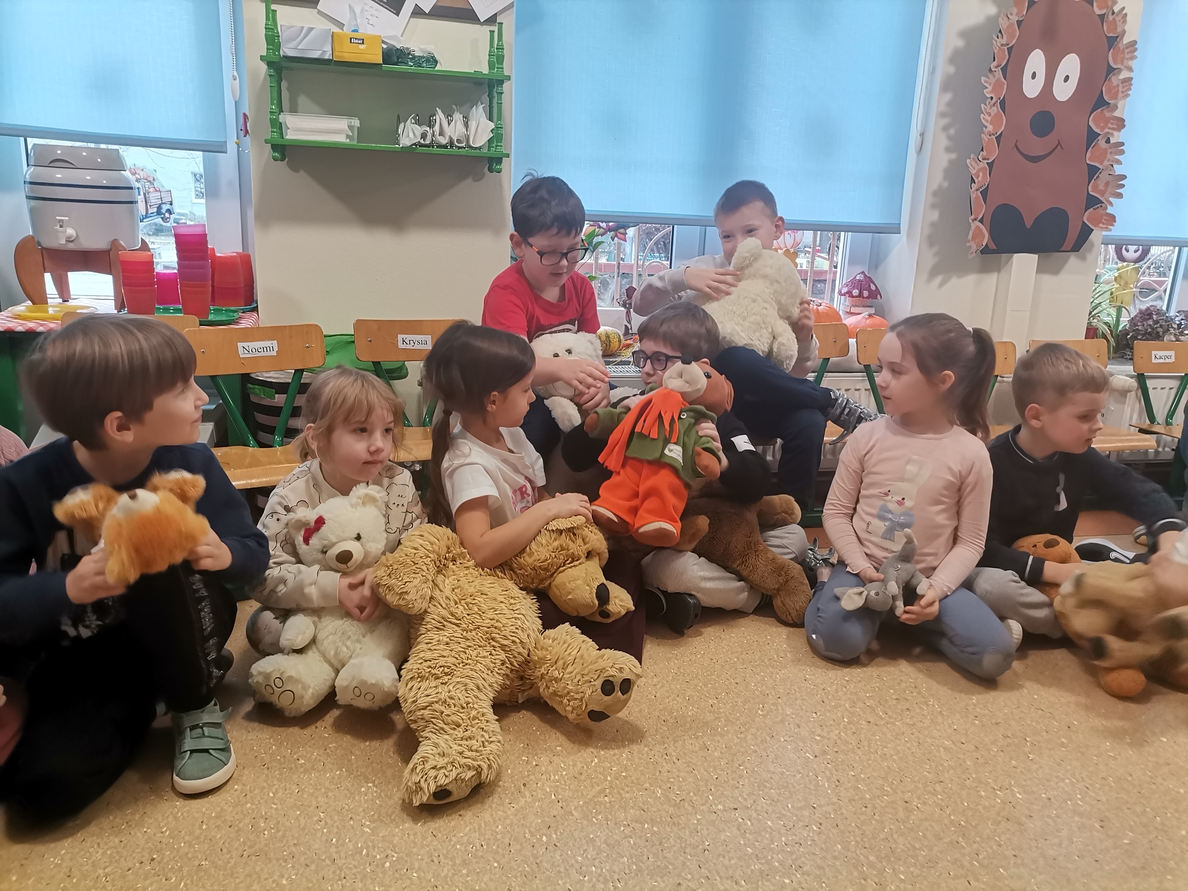 Dzisiaj był dzień zabaw z misiami w naszej sali i w grupie Biedronek.