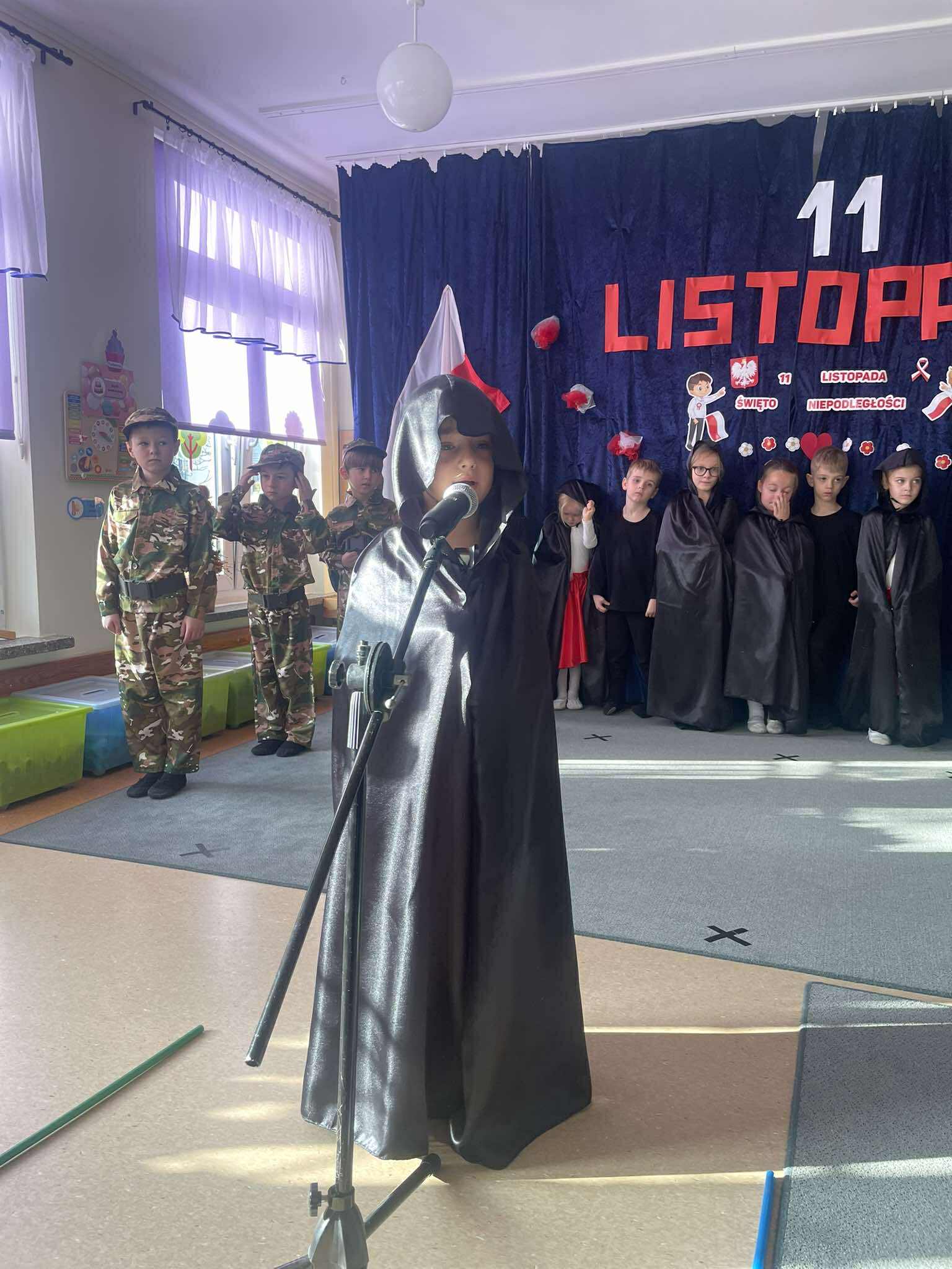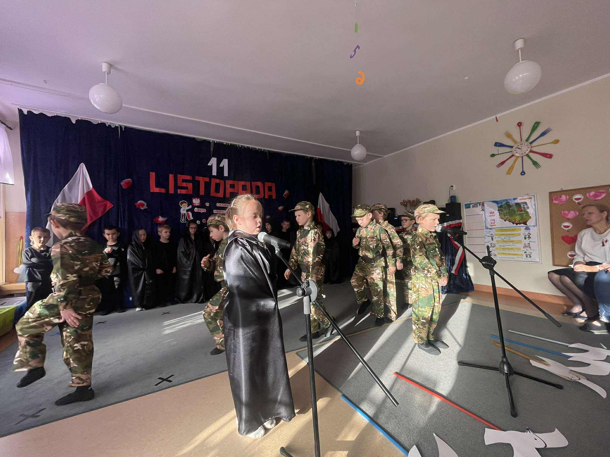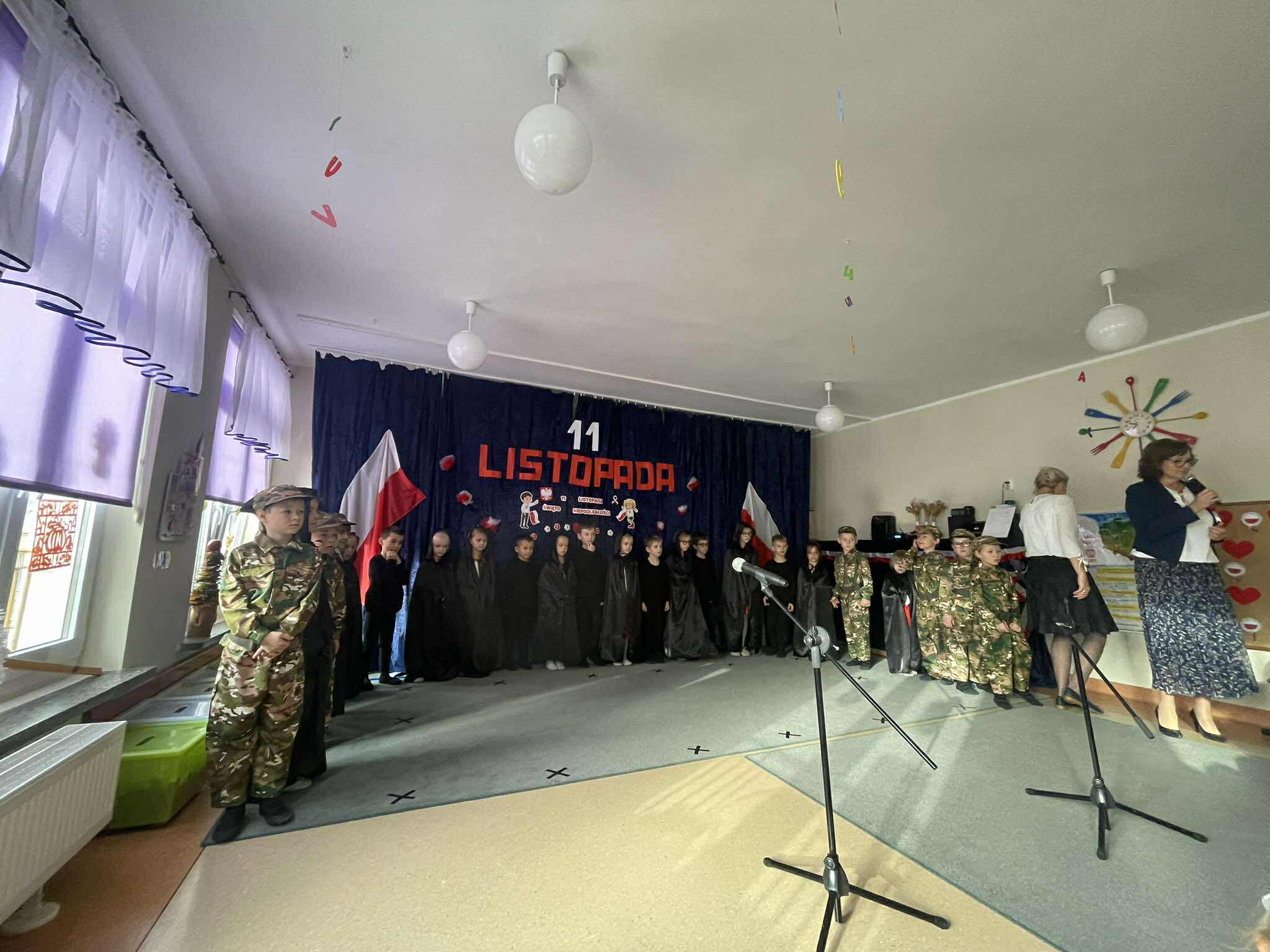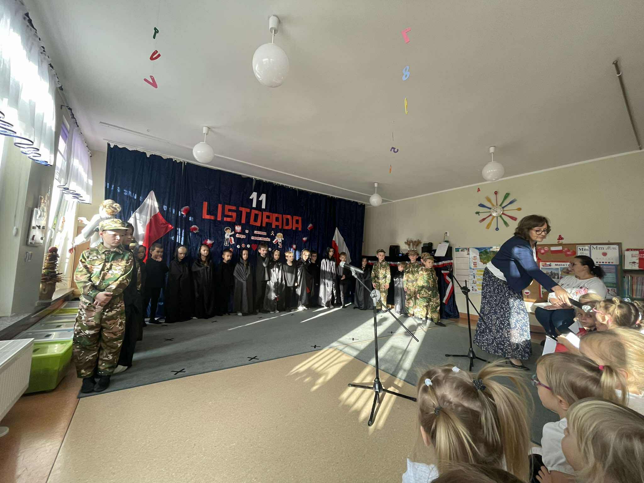W piątek 7 listopada obchodziliśmy w przedszkolu Dzień odzyskania niepodległości przez Polskę. Grupa Muchomorków wystąpiła przed wszystkimi dziećmi przedszkolnymi z programem patriotycznym. Znalazły się w nim piosenki z Przeglądu Piosenki Patriotycznej z zeszłego roku oraz piosenki przygotowywane na tegoroczne widowisko w kinie Grom. Potem wystąpiły z krótkim programem artystycznym dzieci z innych grup. Na koniec wszyscy razem zaśpiewaliśmy 4 zwrotki Mazurka Dąbrowskiego.
