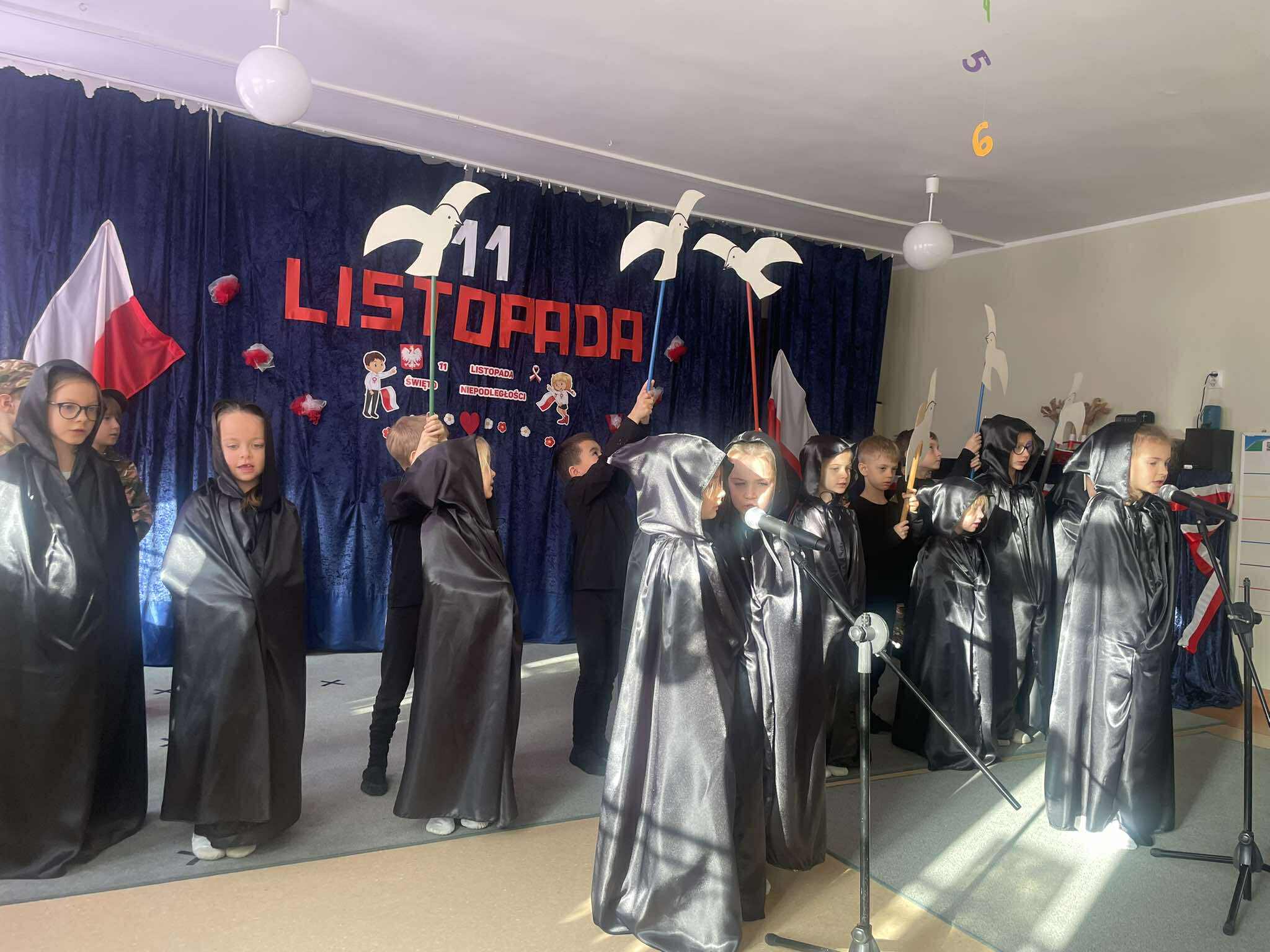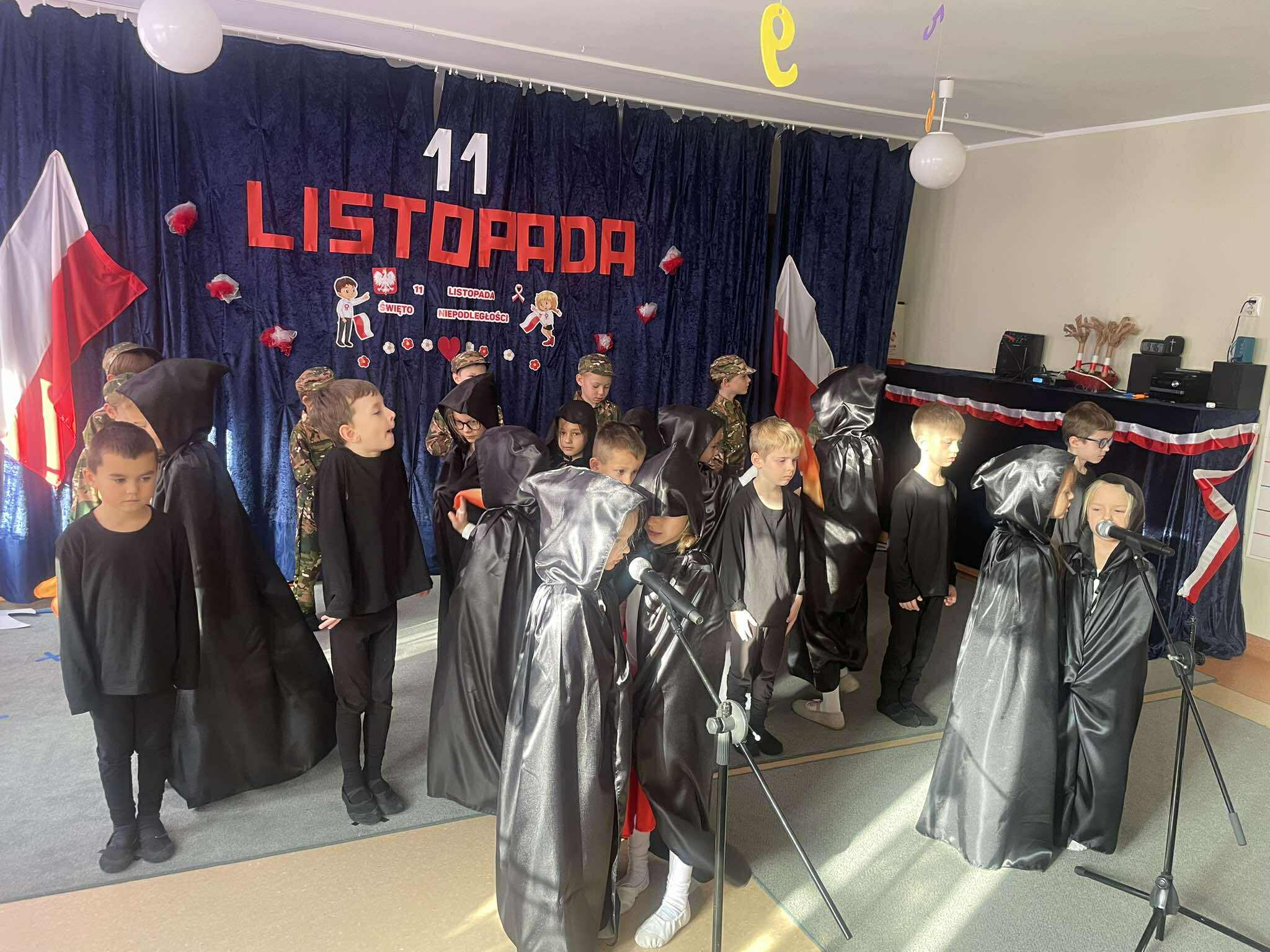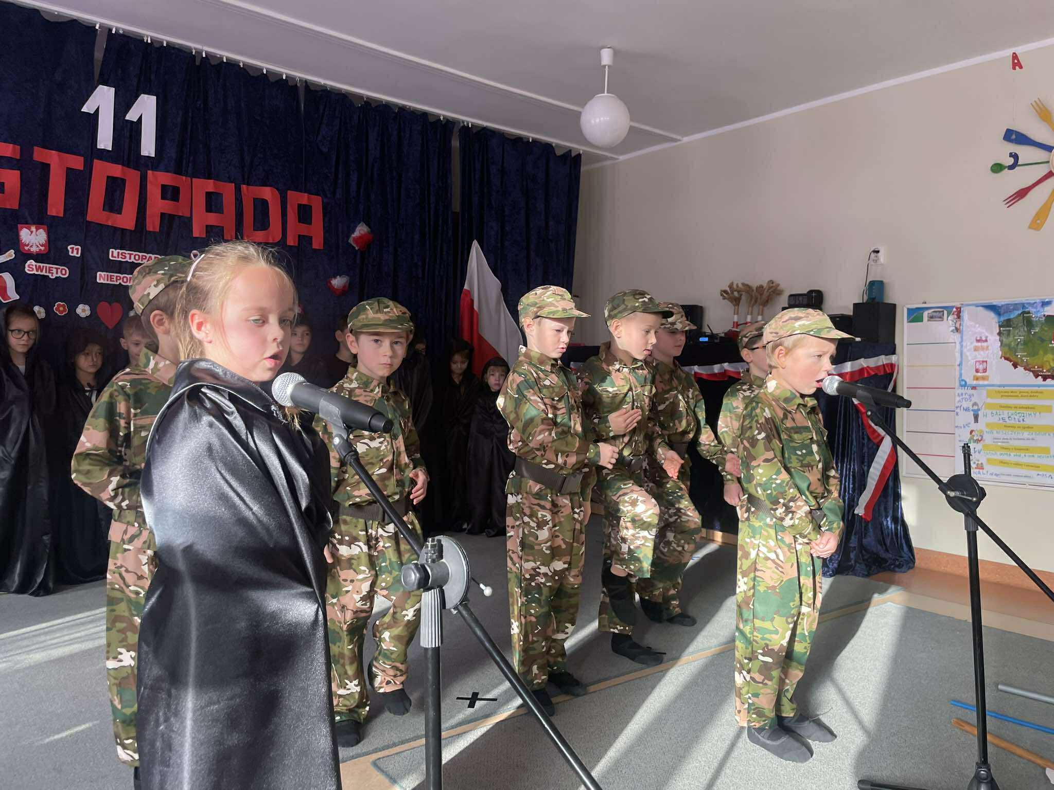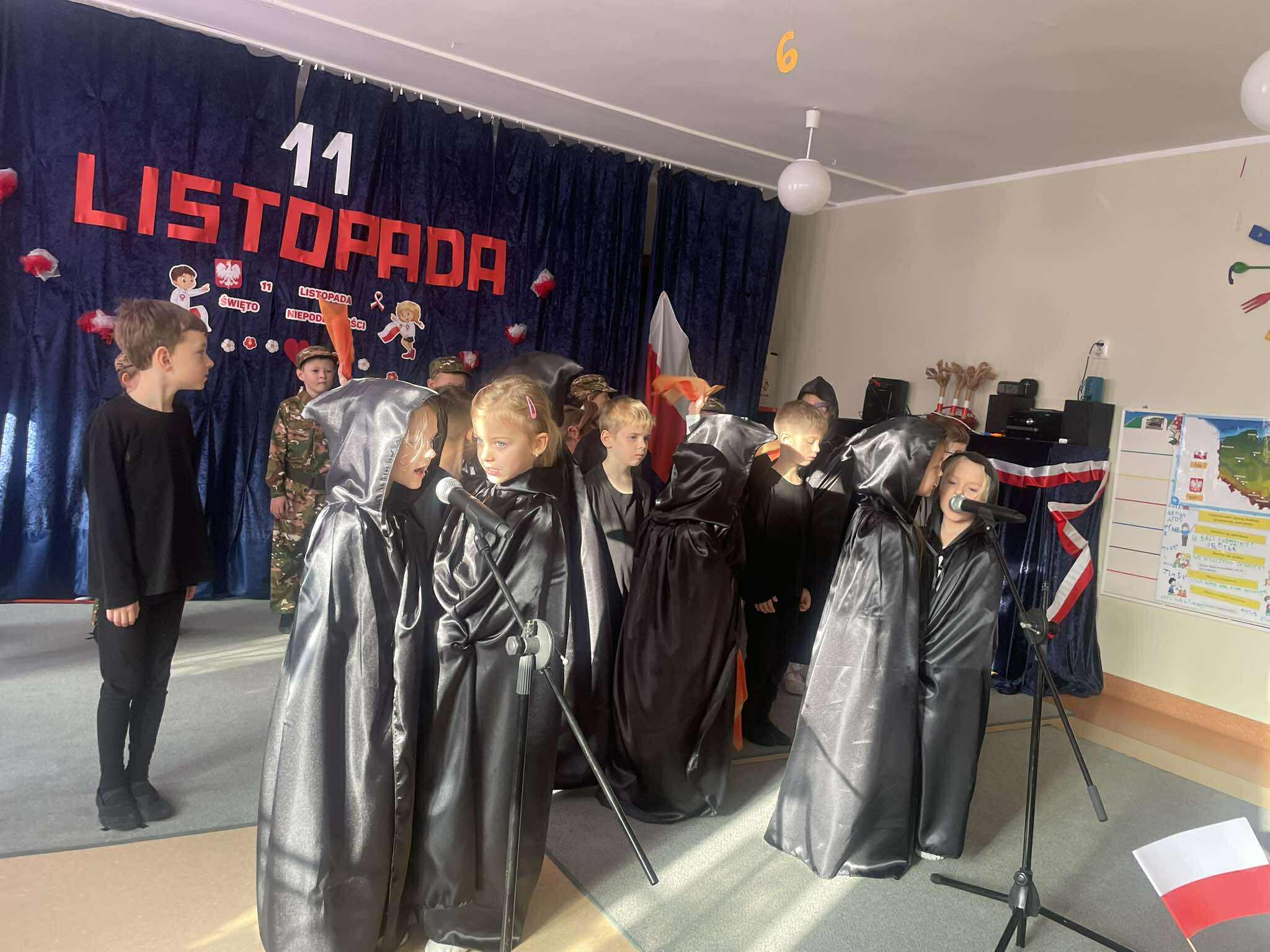 W piątek 7 listopada obchodziliśmy w przedszkolu Dzień odzyskania niepodległości przez Polskę. Grupa Muchomorków wystąpiła przed wszystkimi dziećmi przedszkolnymi z programem patriotycznym. Znalazły się w nim piosenki z Przeglądu Piosenki Patriotycznej z zeszłego roku oraz piosenki przygotowywane na tegoroczne widowisko w kinie Grom. Potem wystąpiły z krótkim programem artystycznym dzieci z innych grup. Na koniec wszyscy razem zaśpiewaliśmy 4 zwrotki Mazurka Dąbrowskiego.