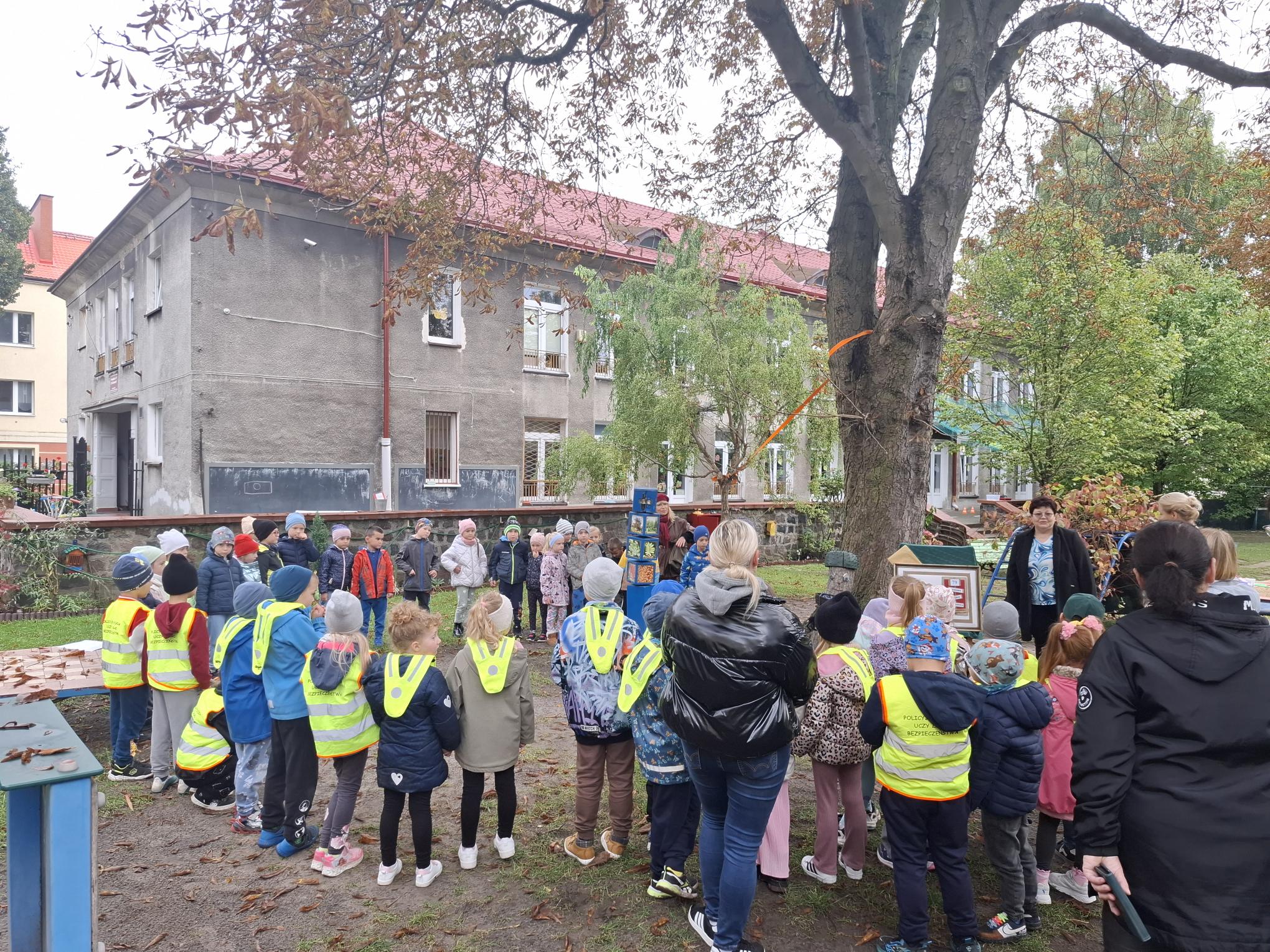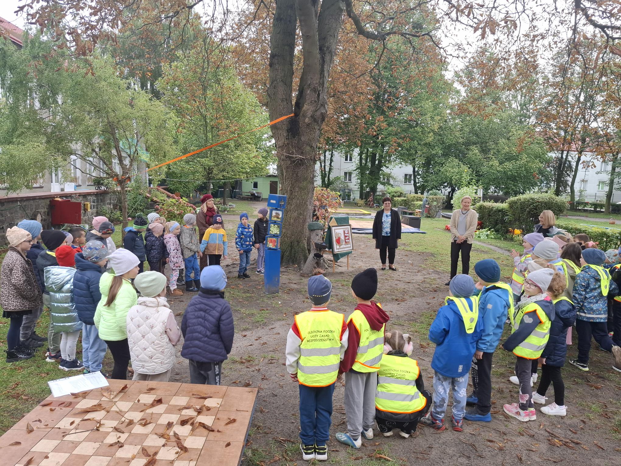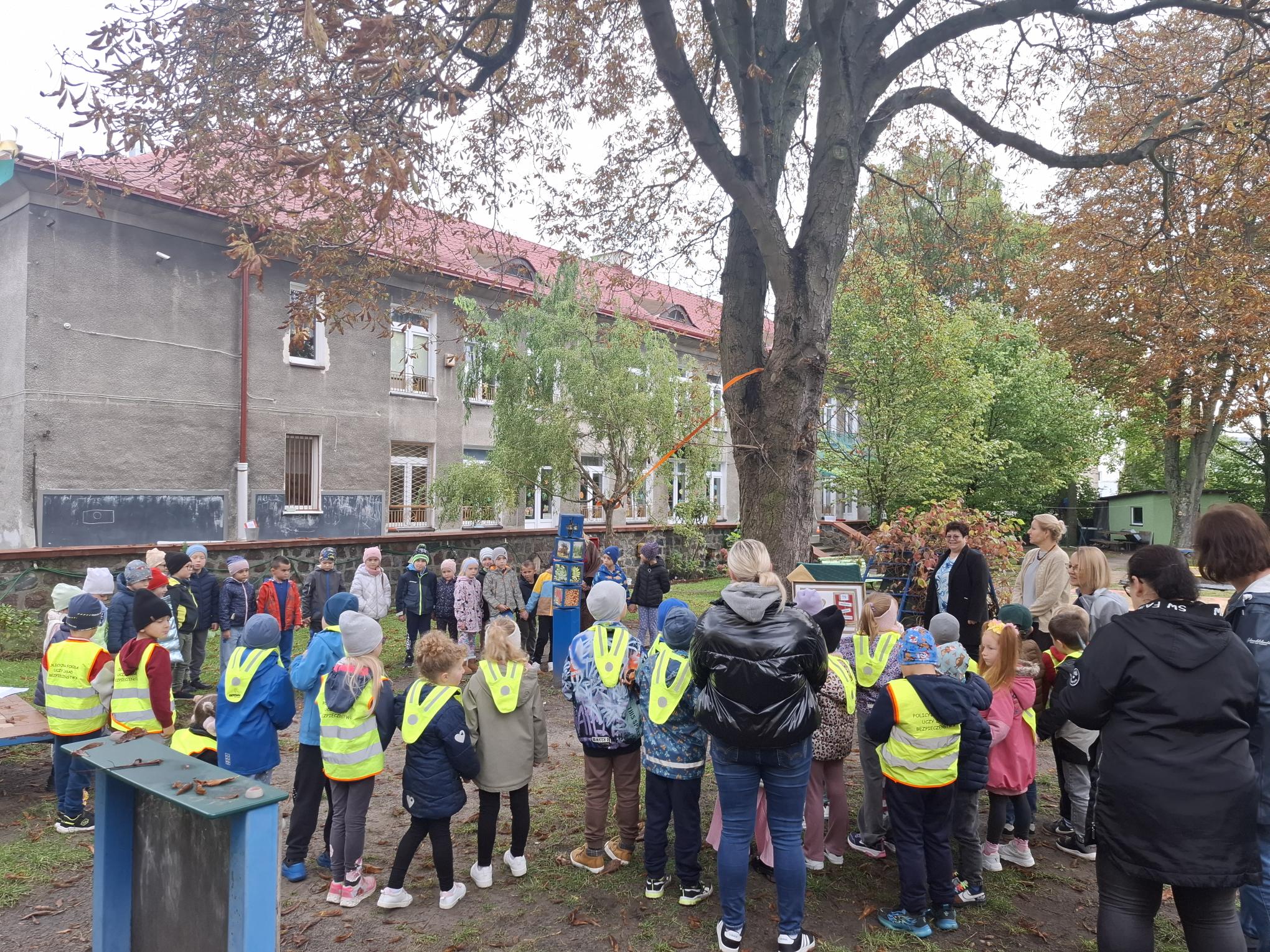 Październik to miesiąc, w którym świętujemy urodziny naszego Przedszkola. 79 urodziny rozpoczęliśmy od spotkania z naszymi przyjaciółmi z Przedszkola nr 35 "Pod Żaglami". Spotkaniu tradycyjnie towarzyszyły zabawy w ogrodzie przedszkolnym w szczególnym towarzystwie naszych trzech kasztanowców oraz z wykorzystaniem ich owoców czyli kasztanów. Zabawy sprawnościowe, zręcznościowe, konstrukcyjne i plastyczne sprawiły, że czas spotkania minął bardzo szybko. Potem przyszedł moment życzeń, prezentów i poczęstunku. Dziękujemy naszym gościom, że przyjęli zaproszenie grupy Muchomorków i wspólnie z nimi świętowali to wyjątkowe dla naszej społeczności wydarzenie.