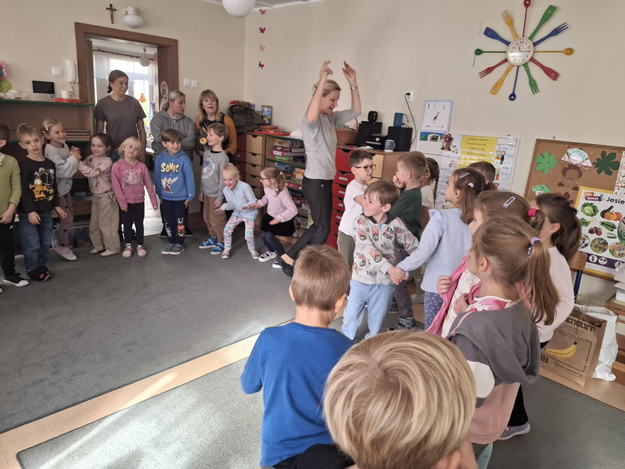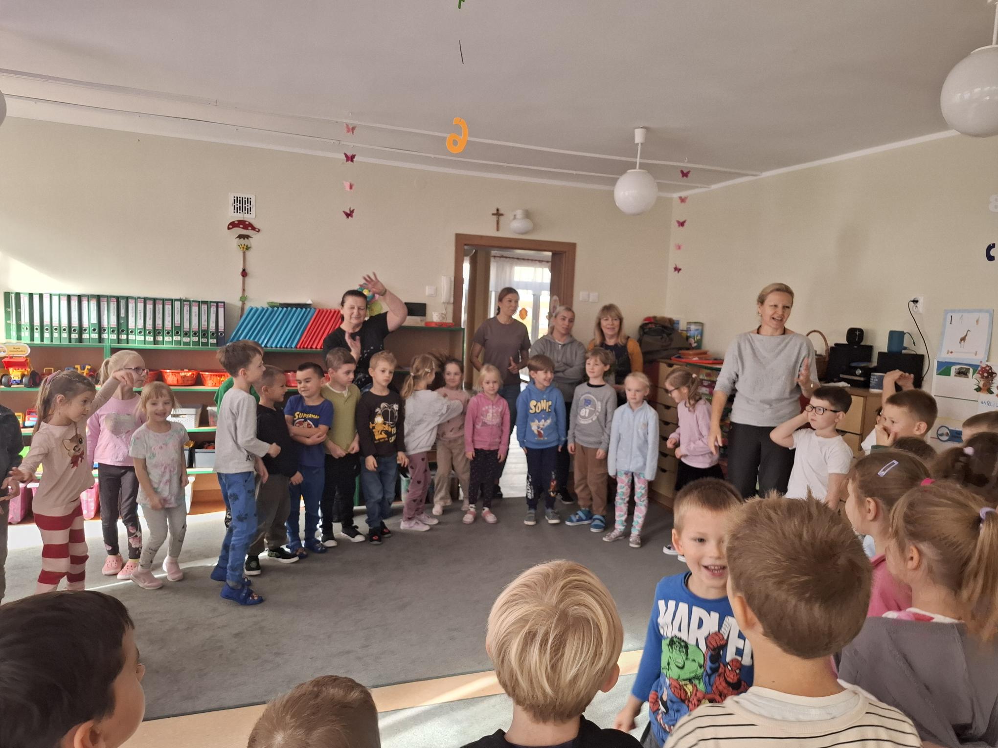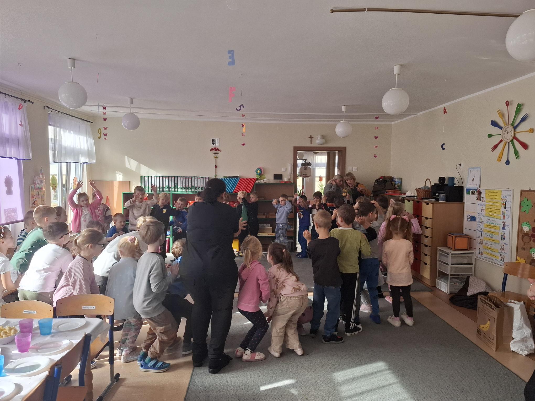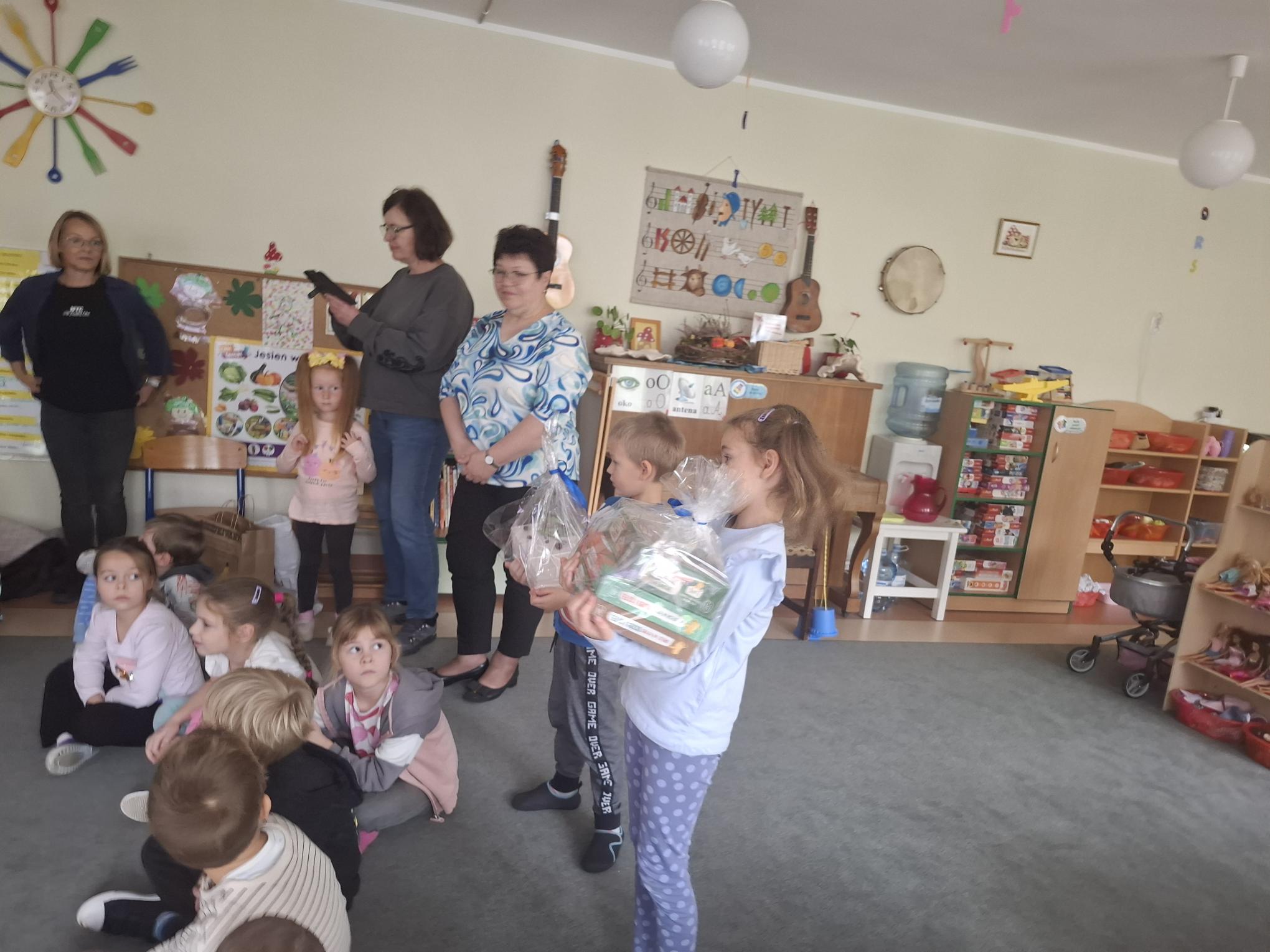 Październik to miesiąc, w którym świętujemy urodziny naszego Przedszkola. 79 urodziny rozpoczęliśmy od spotkania z naszymi przyjaciółmi z Przedszkola nr 35 "Pod Żaglami". Spotkaniu tradycyjnie towarzyszyły zabawy w ogrodzie przedszkolnym w szczególnym towarzystwie naszych trzech kasztanowców oraz z wykorzystaniem ich owoców czyli kasztanów. Zabawy sprawnościowe, zręcznościowe, konstrukcyjne i plastyczne sprawiły, że czas spotkania minął bardzo szybko. Potem przyszedł moment życzeń, prezentów i poczęstunku. Dziękujemy naszym gościom, że przyjęli zaproszenie grupy Muchomorków i wspólnie z nimi świętowali to wyjątkowe dla naszej społeczności wydarzenie.