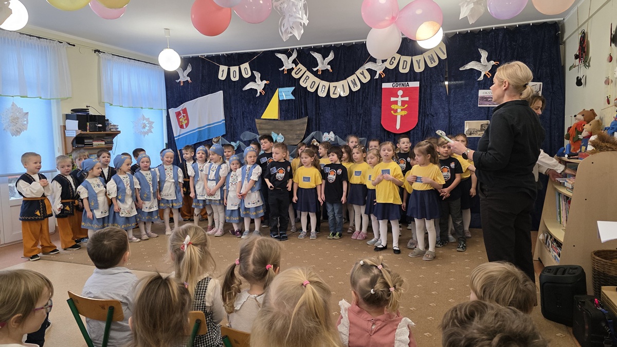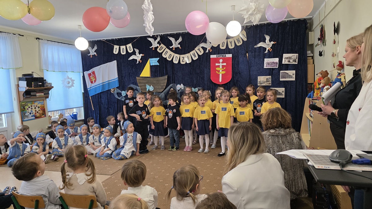 Z okazji 100 urodzin Gdyni 10 lutego spotkaliśmy się w grupie Biedronek na uroczystości przedszkolej, którą przygotowały Biedronki i Pszczółki, ale Krasnoludki i my również przyłączyliśmy się do występu. Następnie sprawdzaliśmy swoją wiedzę na podstawie slajdów.