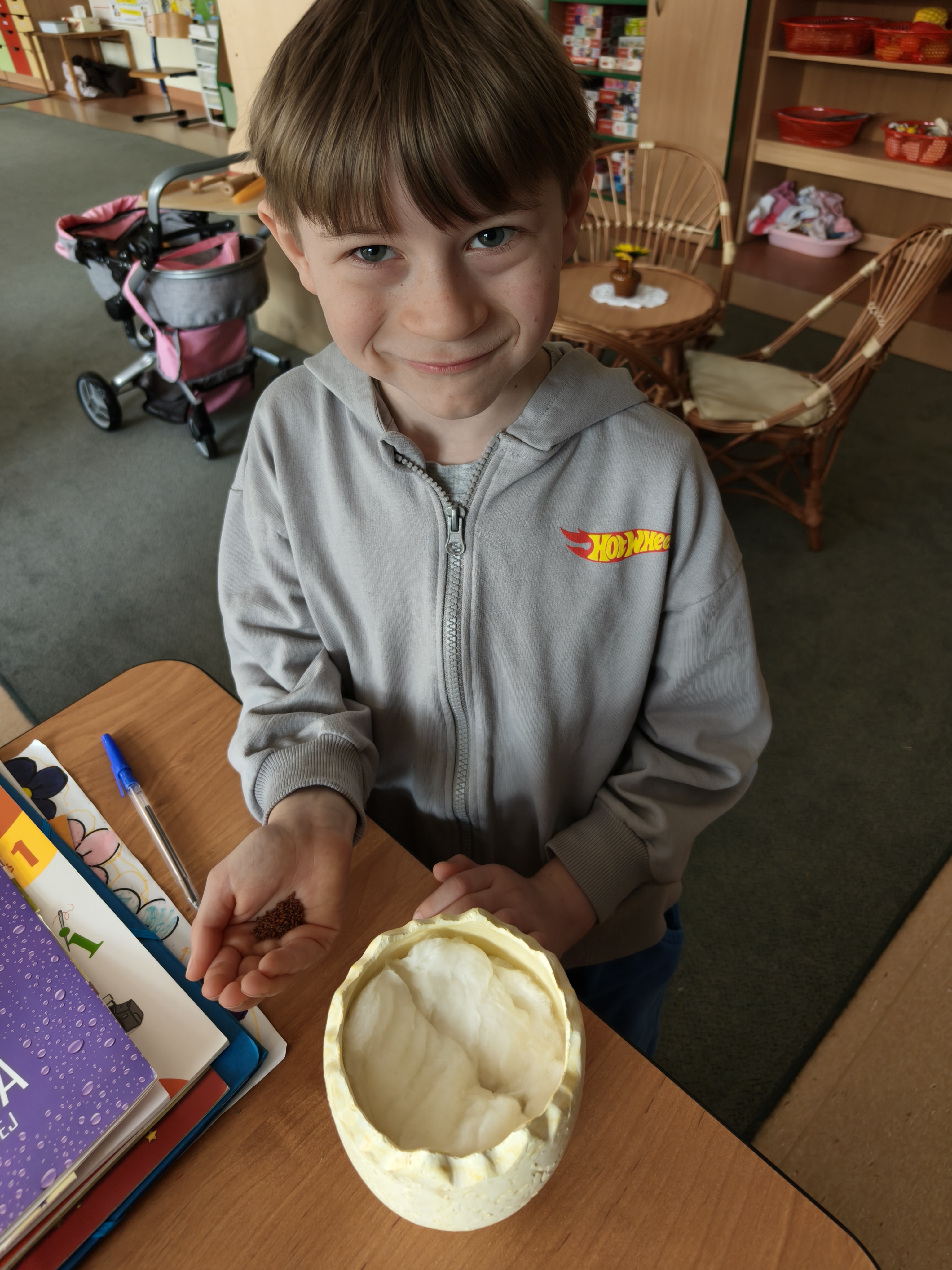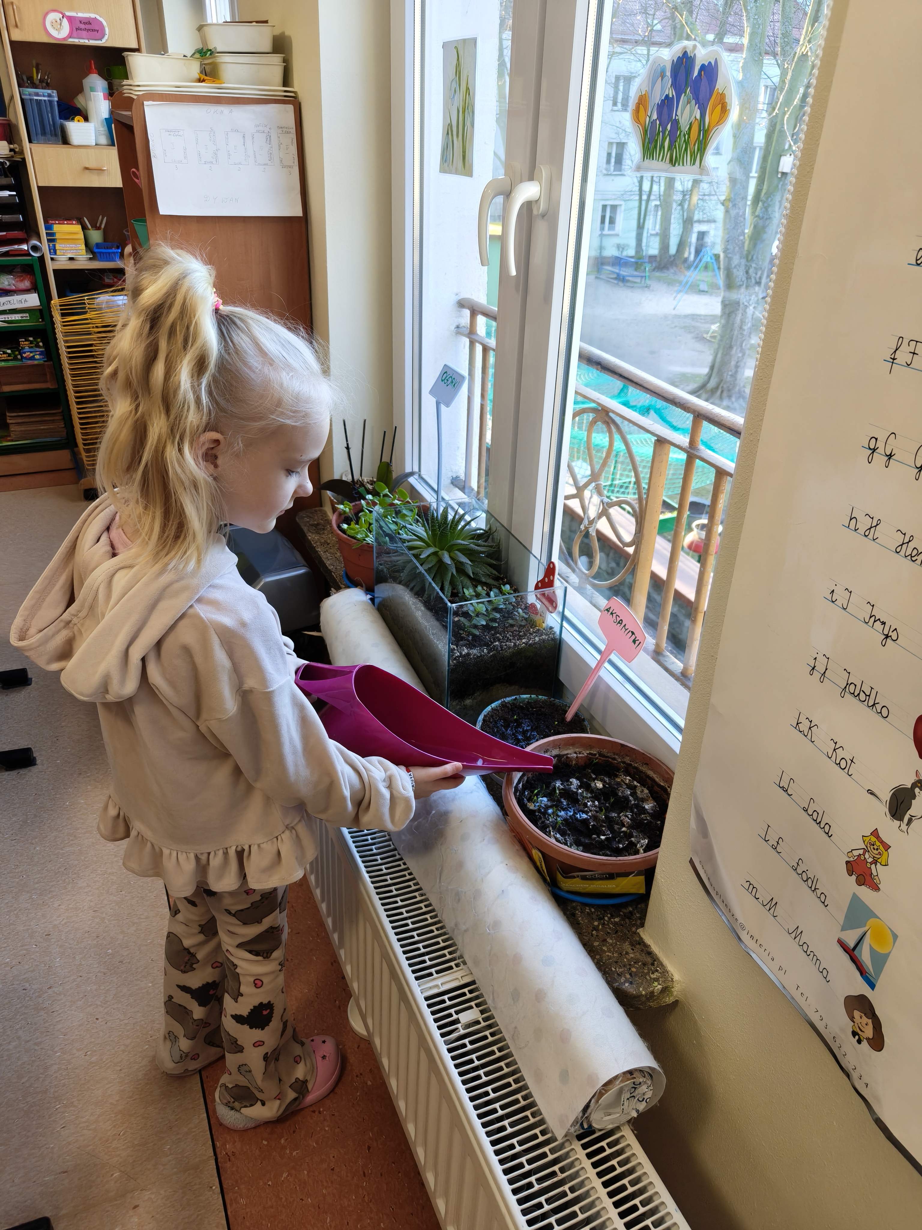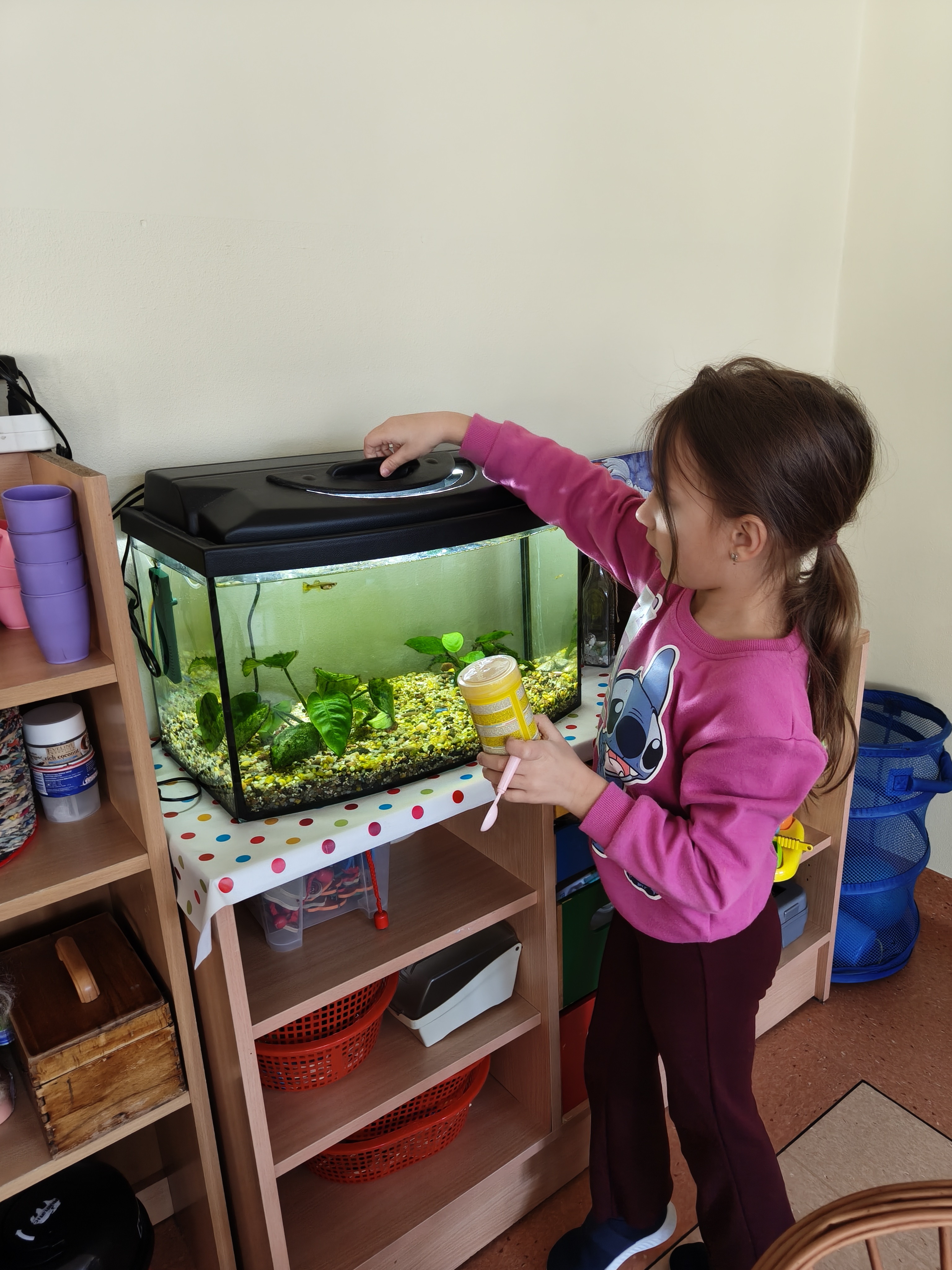 W naszej sali dbamy również o rybki i roślinki w kaciku przyrody.