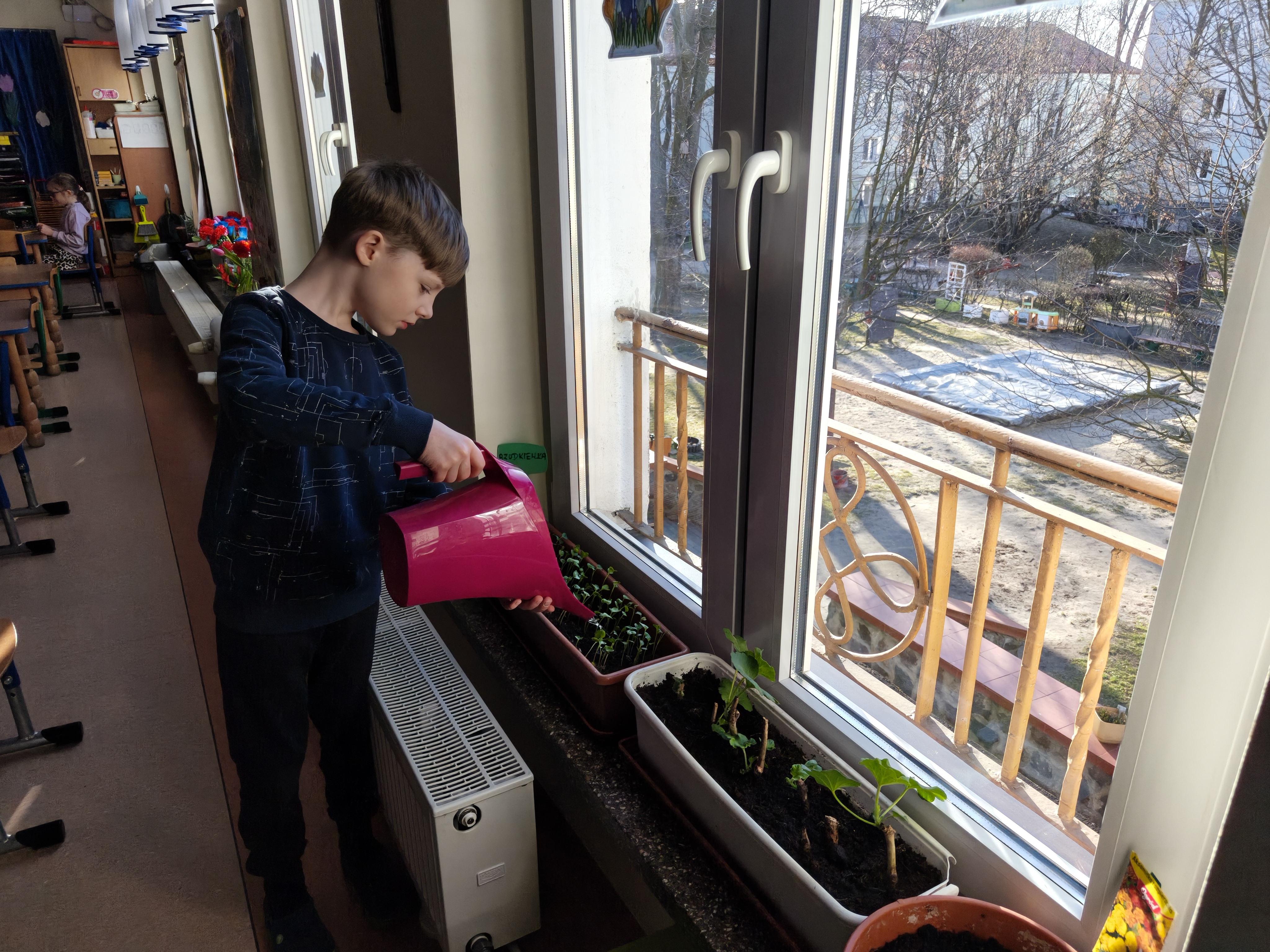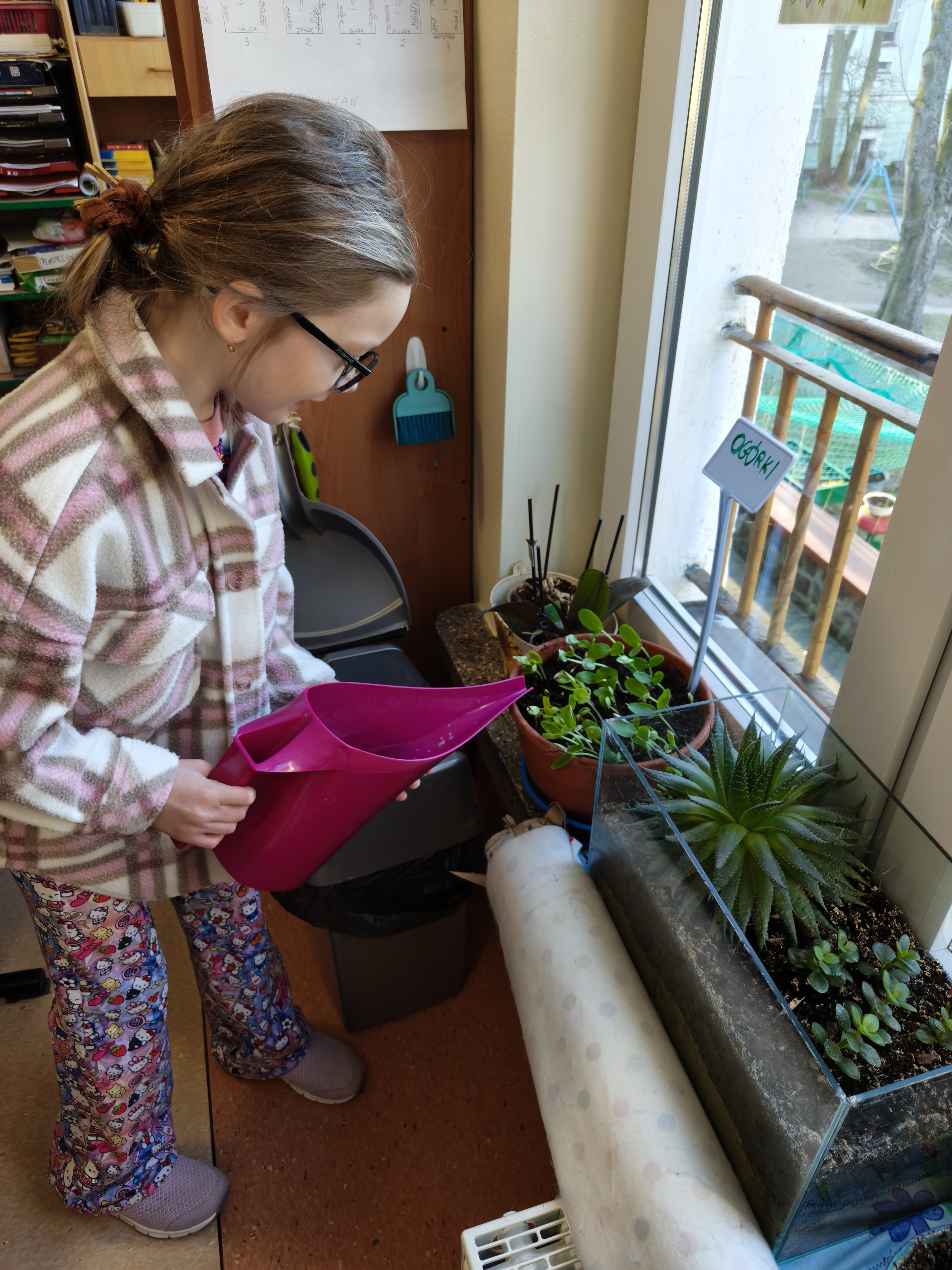 Wyrosły już: ogórki, dymka, rzodkiewki, rzeżucha, aksamitki oraz pelargonie.
