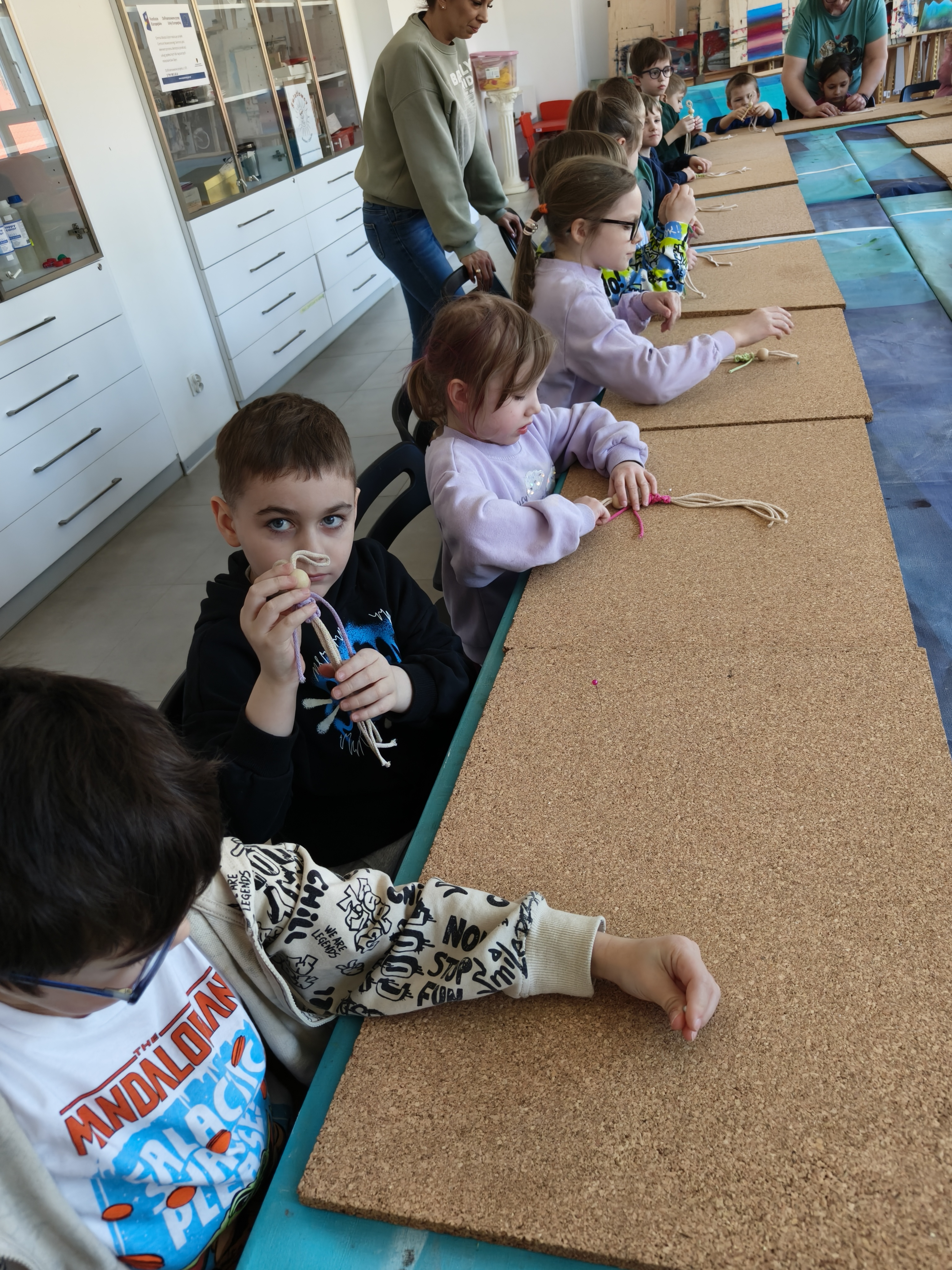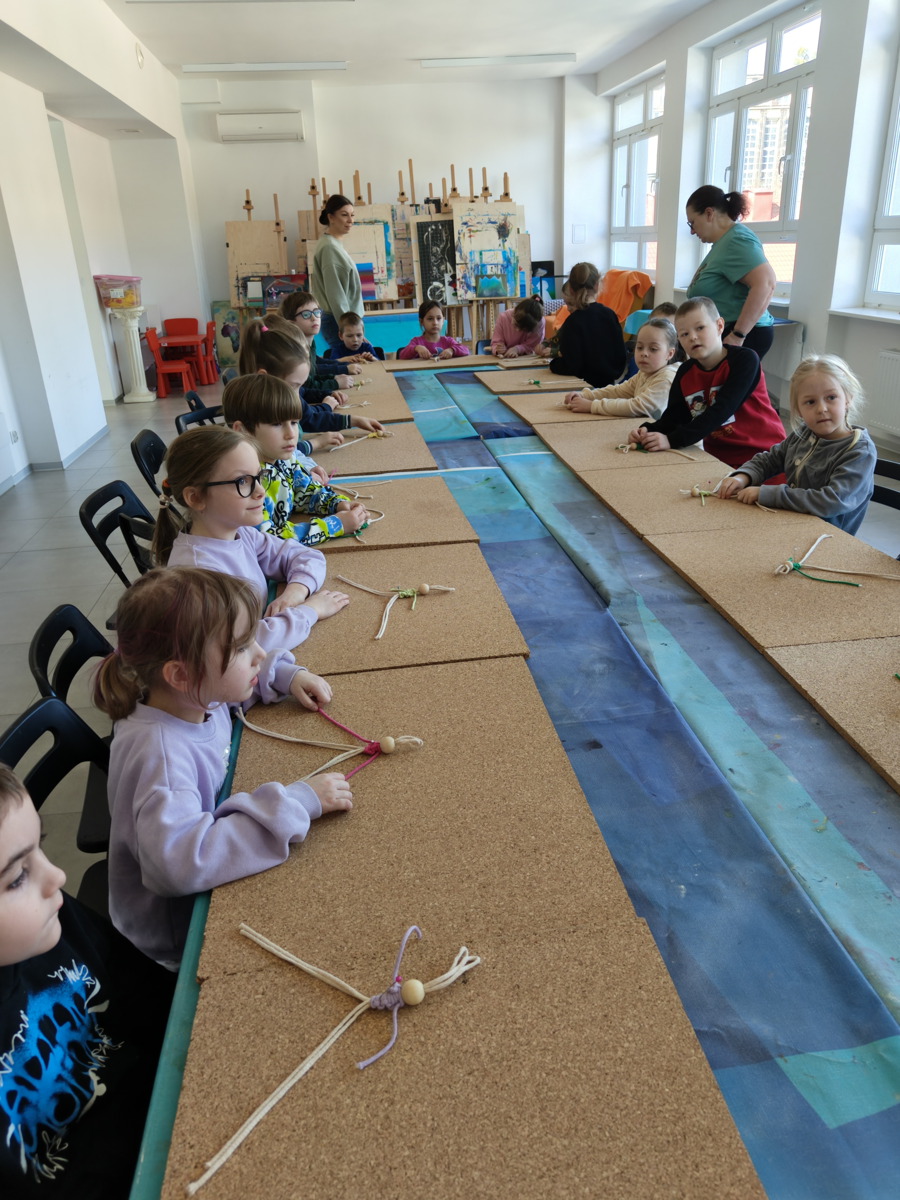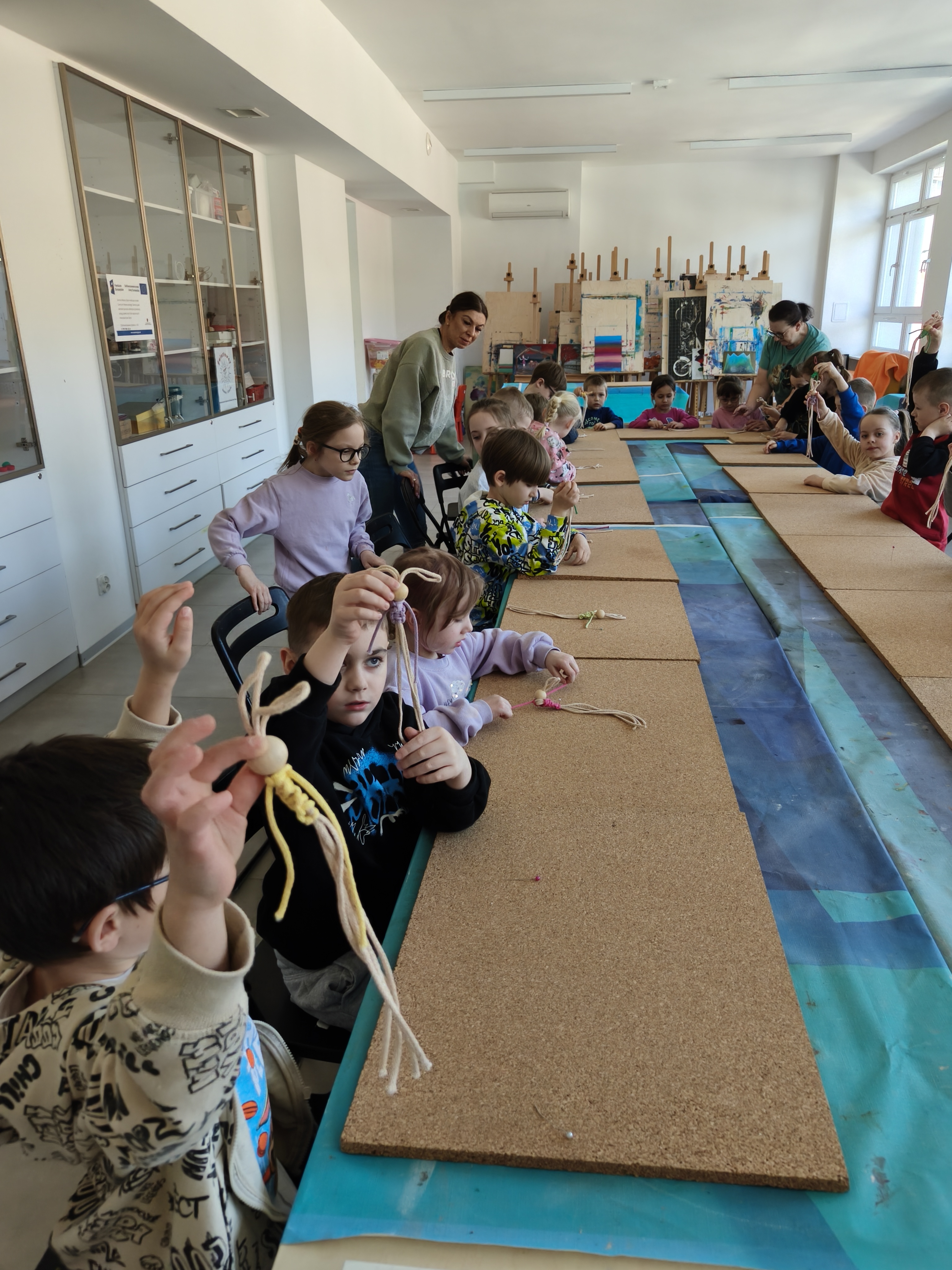Dzieci były bardzo zainteresowane i przejęte wykonywaniem kolejnych etapów makramy.